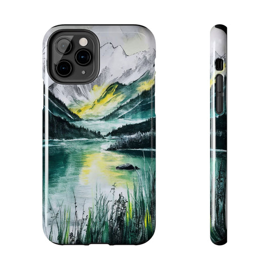 Tranquil Mountain Landscape Charcoal Sketch Tough Phone Case