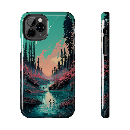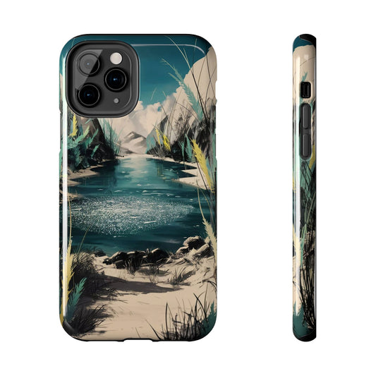 Tranquil Mountain River Charcoal Sketch Tough Phone Case