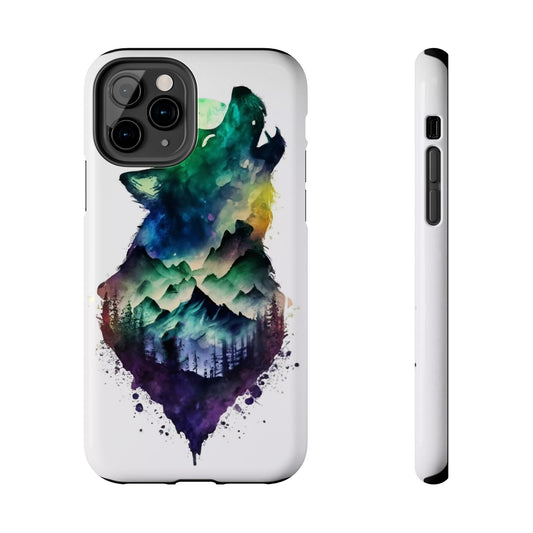 Moonlit Howling Wolf Double Exposure Tough Phone Case