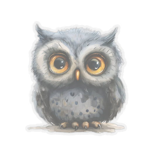 Whimsical Gray Owl Watercolor Cartoon Sticker