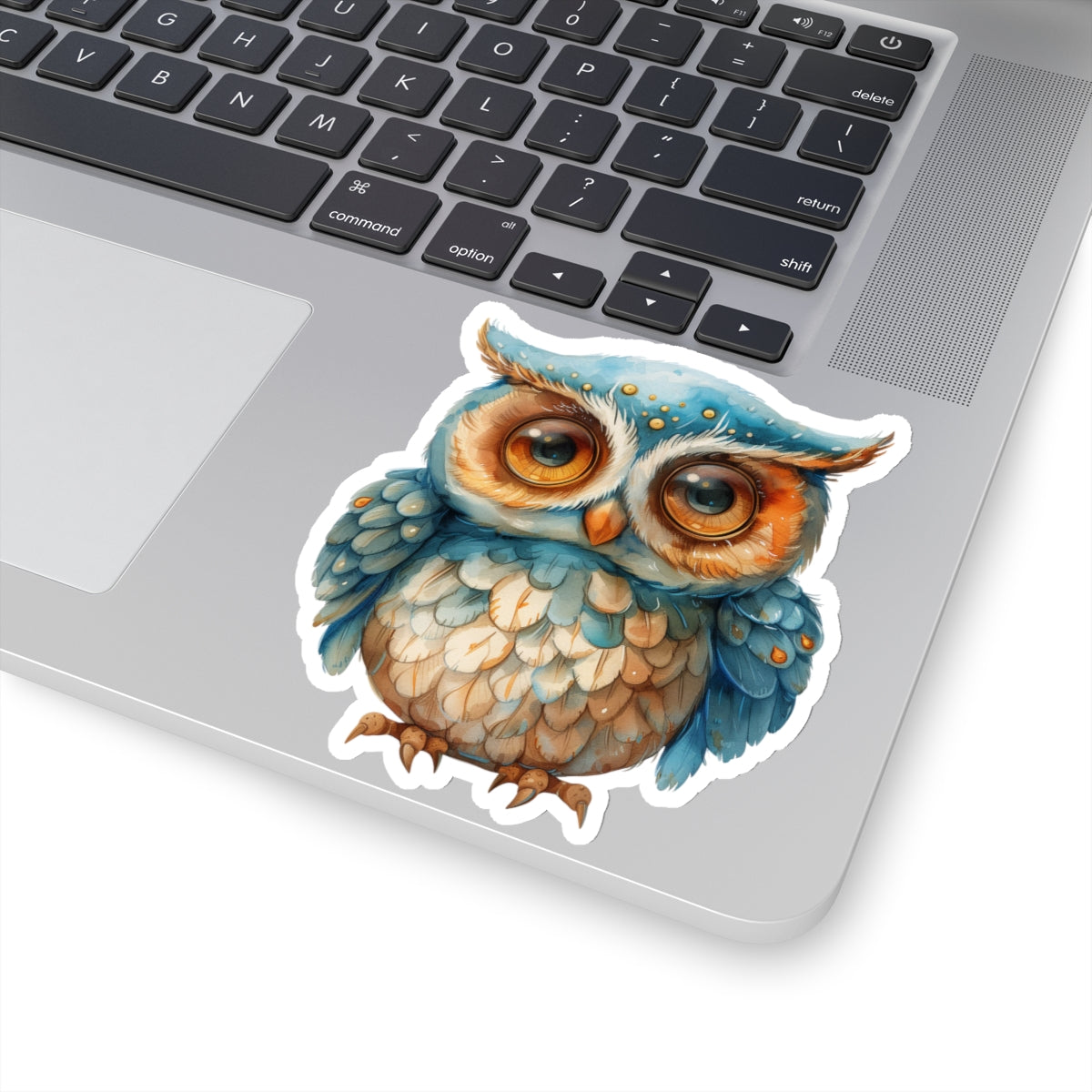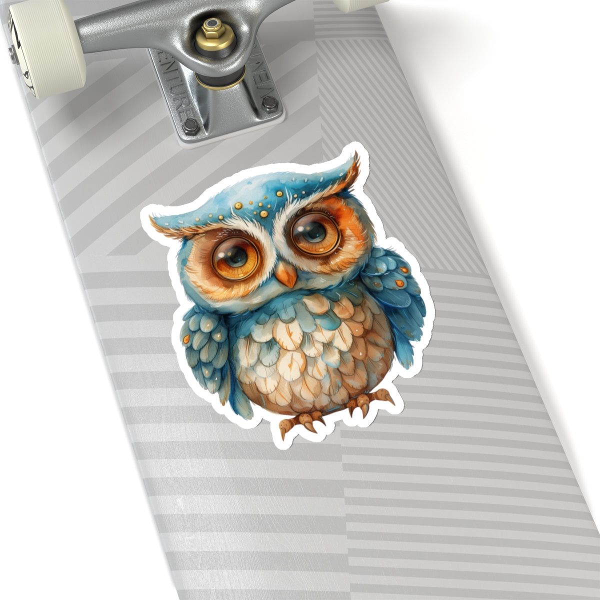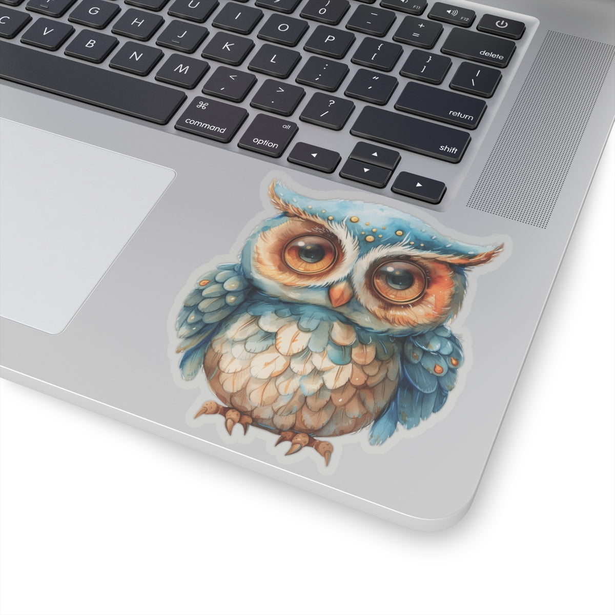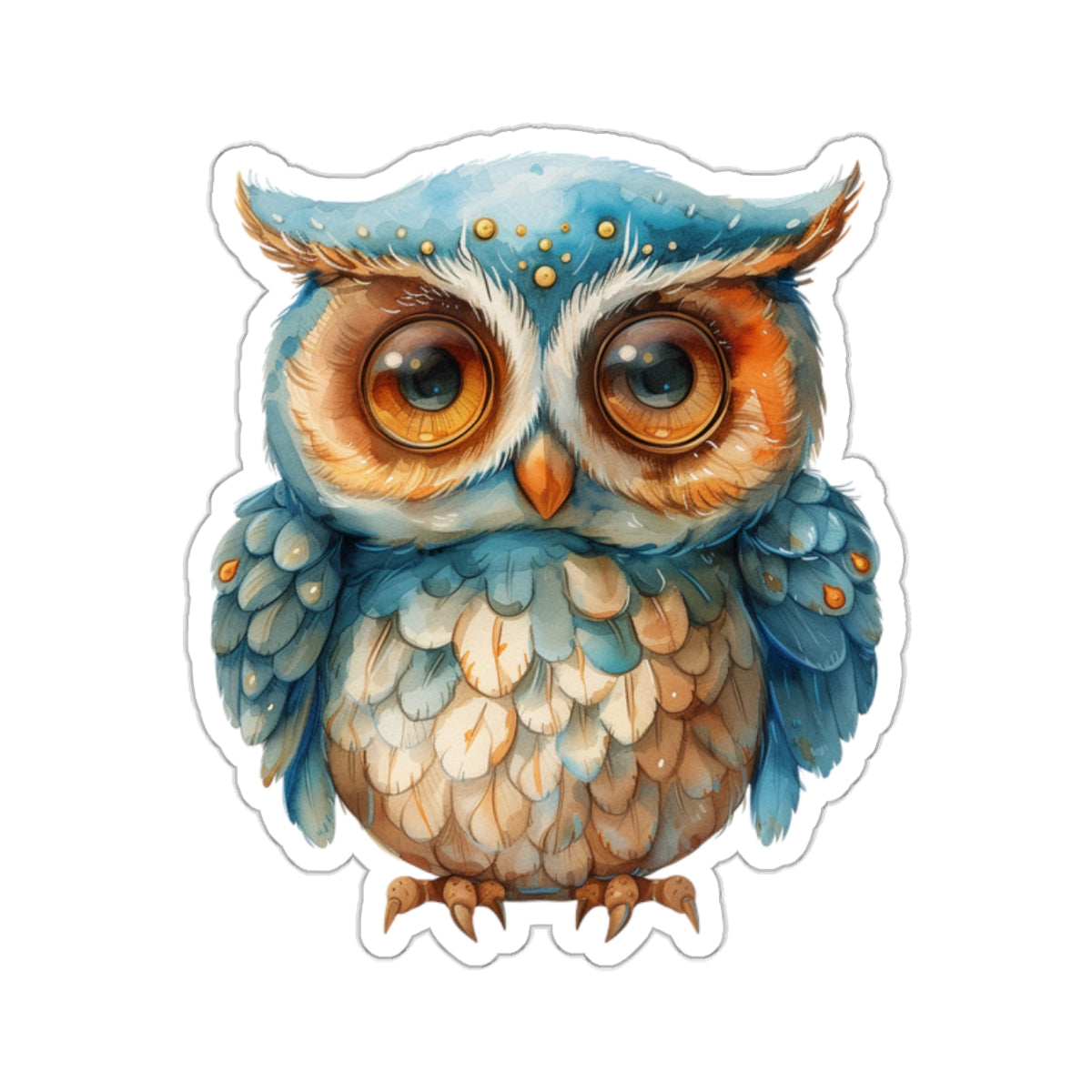 charming watercolor depiction of a cute blue and white owl, perfect for adorning laptops, notebooks, and more. Crafted from durable vinyl with