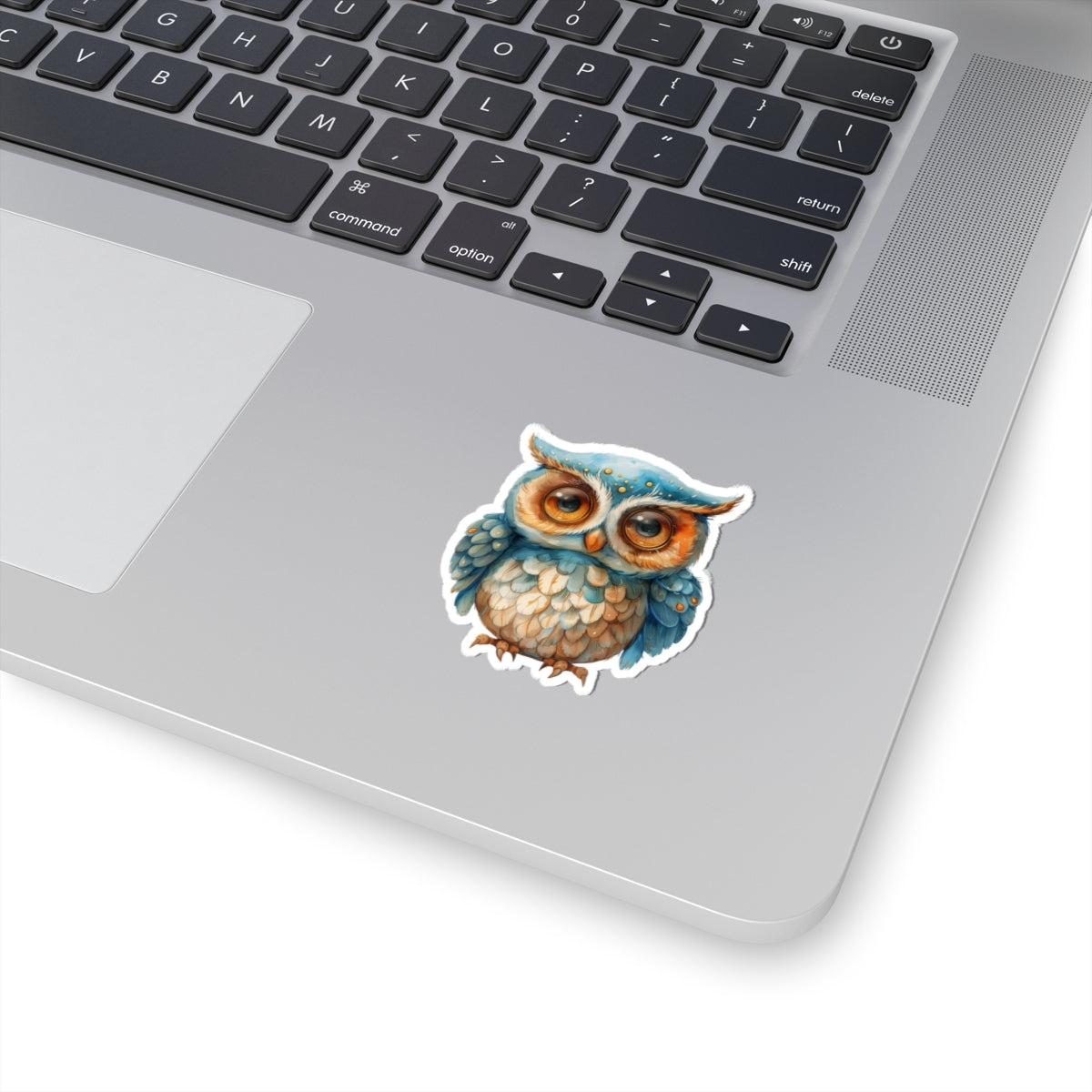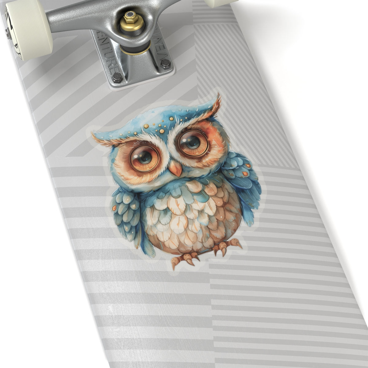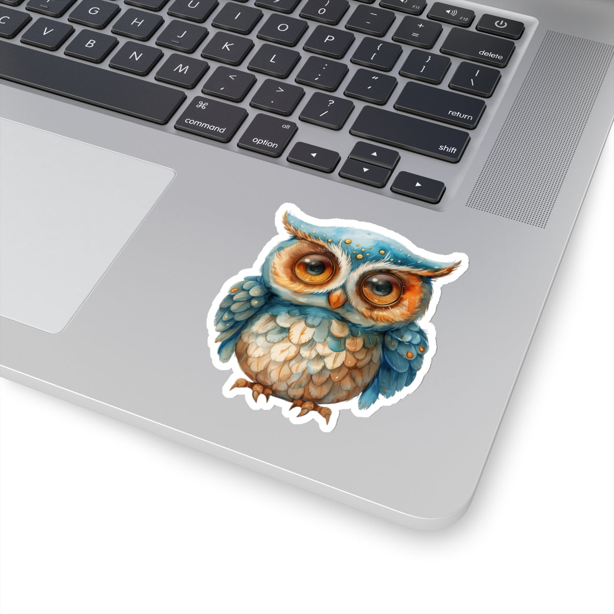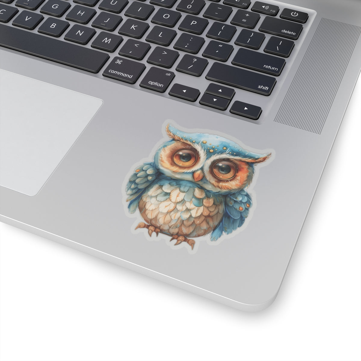 charming watercolor depiction of a cute blue and white owl, perfect for adorning laptops, notebooks, and more. Crafted from durable vinyl with