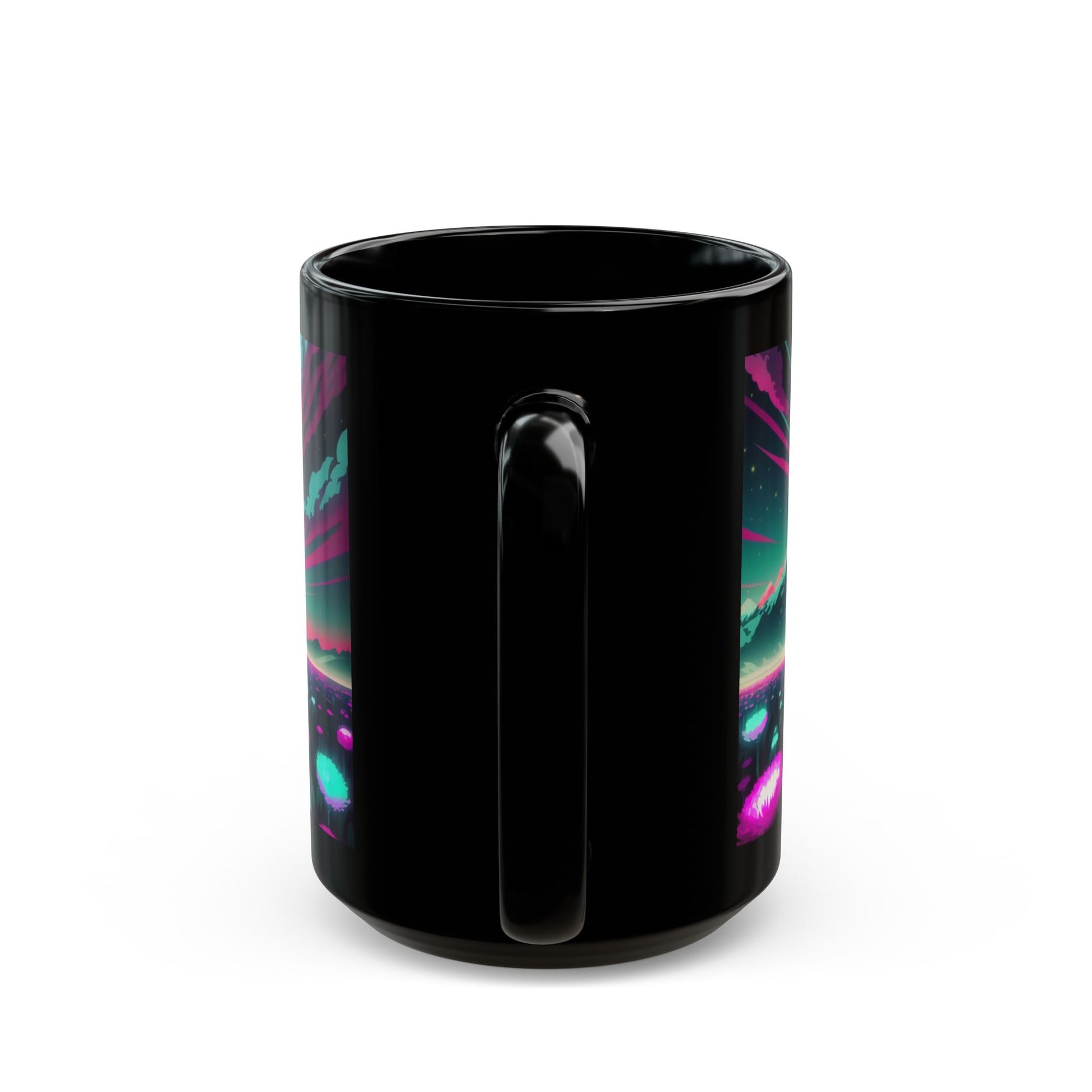 Step into the surreal with this ceramic coffee mug featuring a bold and vibrant Bigfoot rocking stylish shades. Set against a dazzling, star-filled sky, a distant mountain range, and a field of neon flowers, this design brings the essence of vaporwave to your mornings. Crafted with an electric color palette on a durable white ceramic mug, it’s available in 11oz and 15oz sizes, BPA and lead-free, microwave and dishwasher safe. Perfect for those who embrace the bold and irreverent—add a splash of retro-futuristic fun to your day!