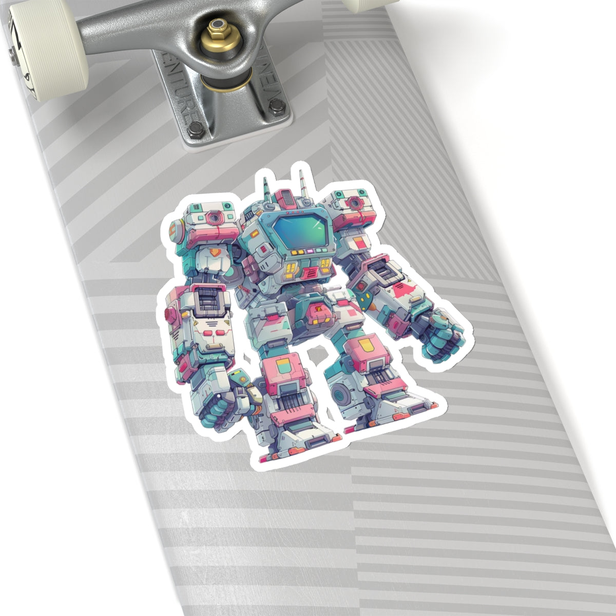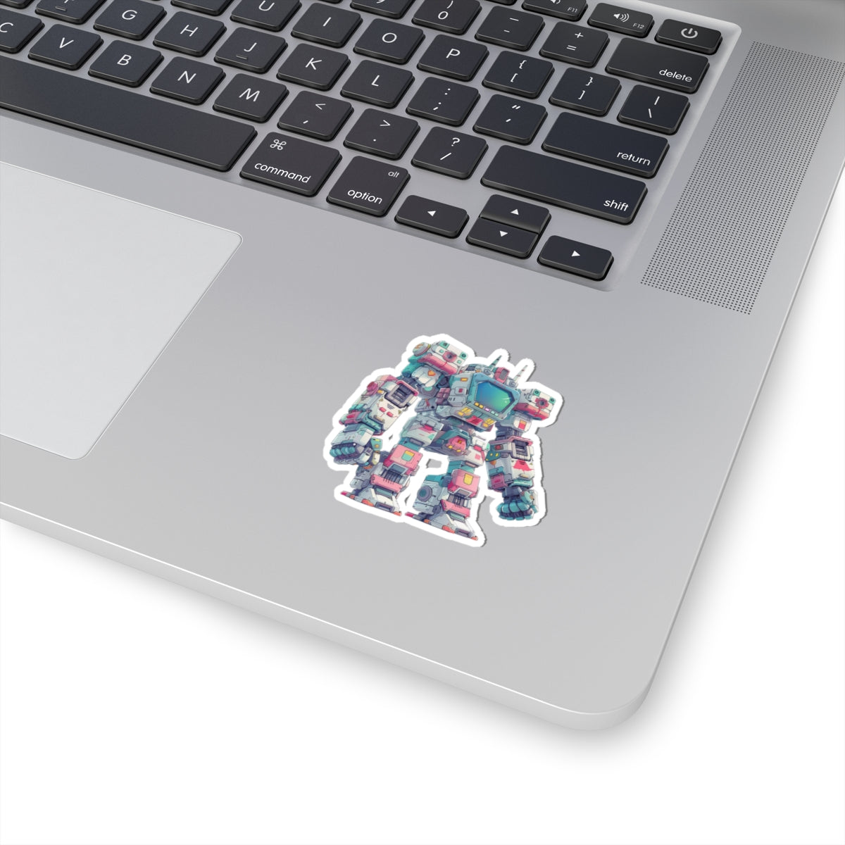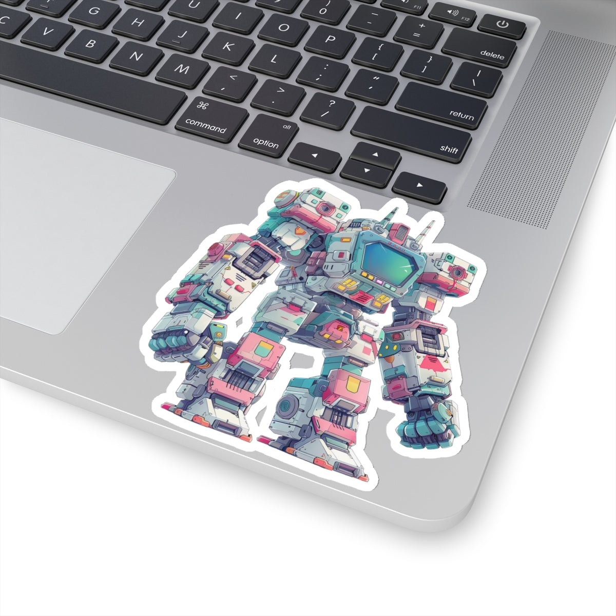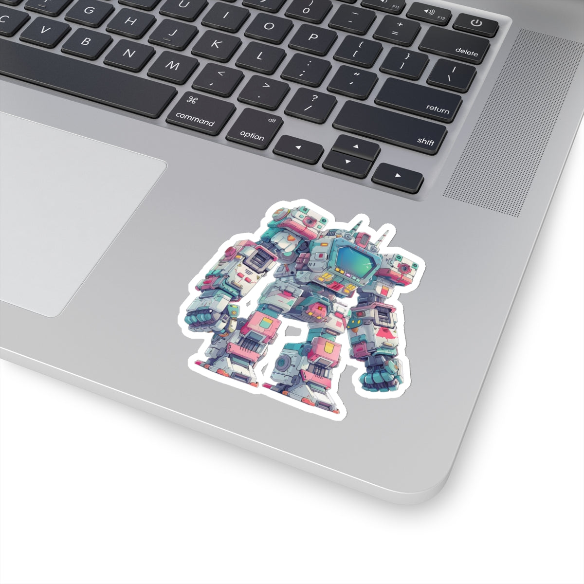 Dive into the retro-futuristic world with our Blocky Bot Blast Sticker. This sticker showcases a charmingly blocky robot design in vibrant teal