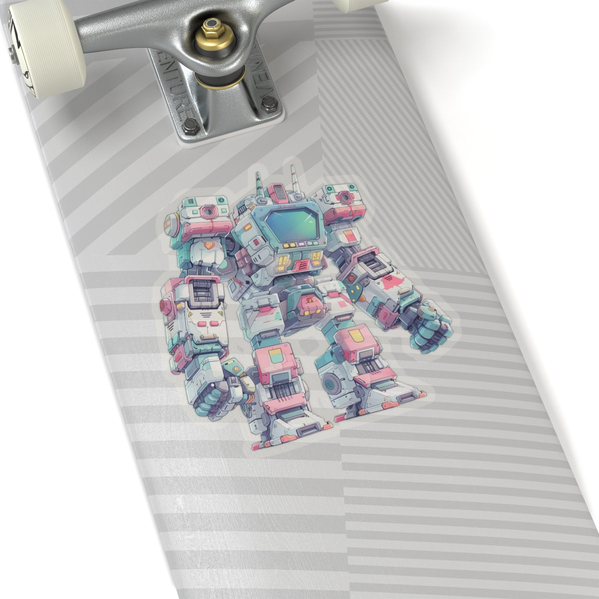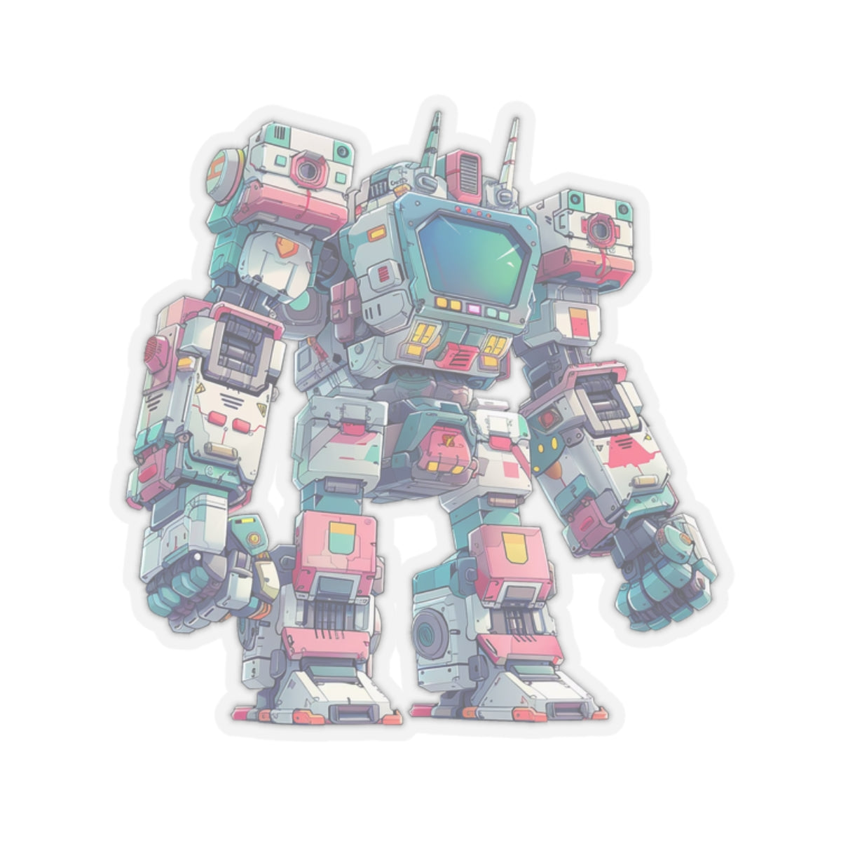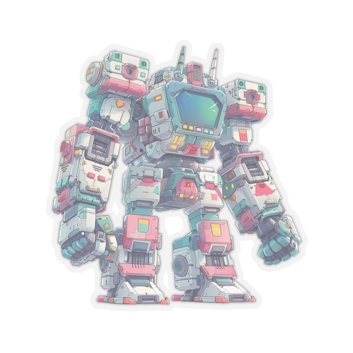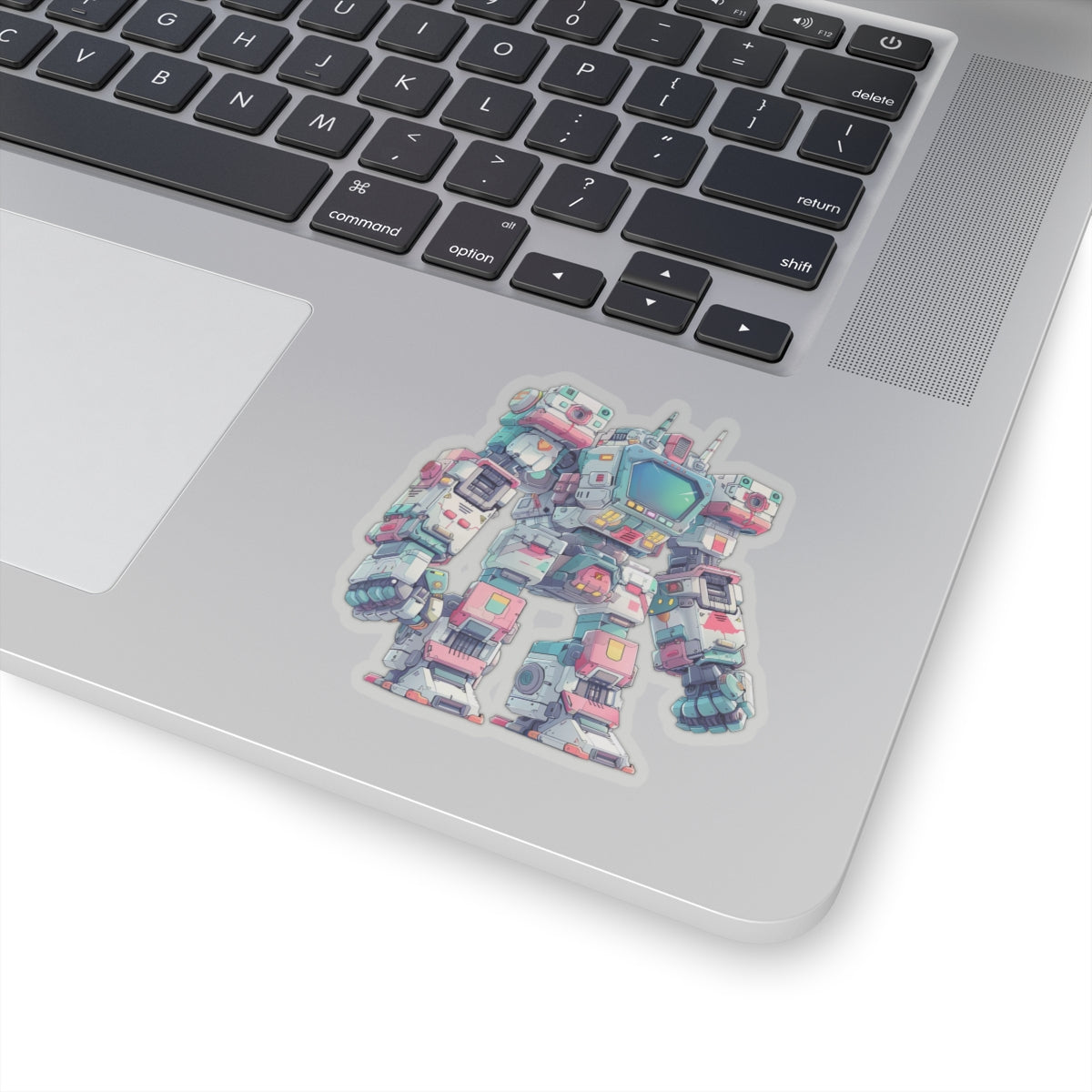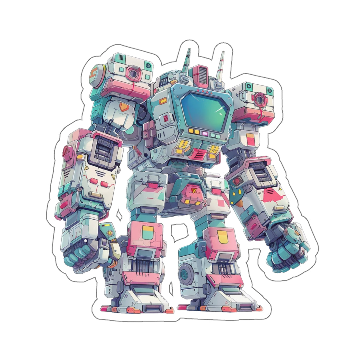Dive into the retro-futuristic world with our Blocky Bot Blast Sticker. This sticker showcases a charmingly blocky robot design in vibrant teal