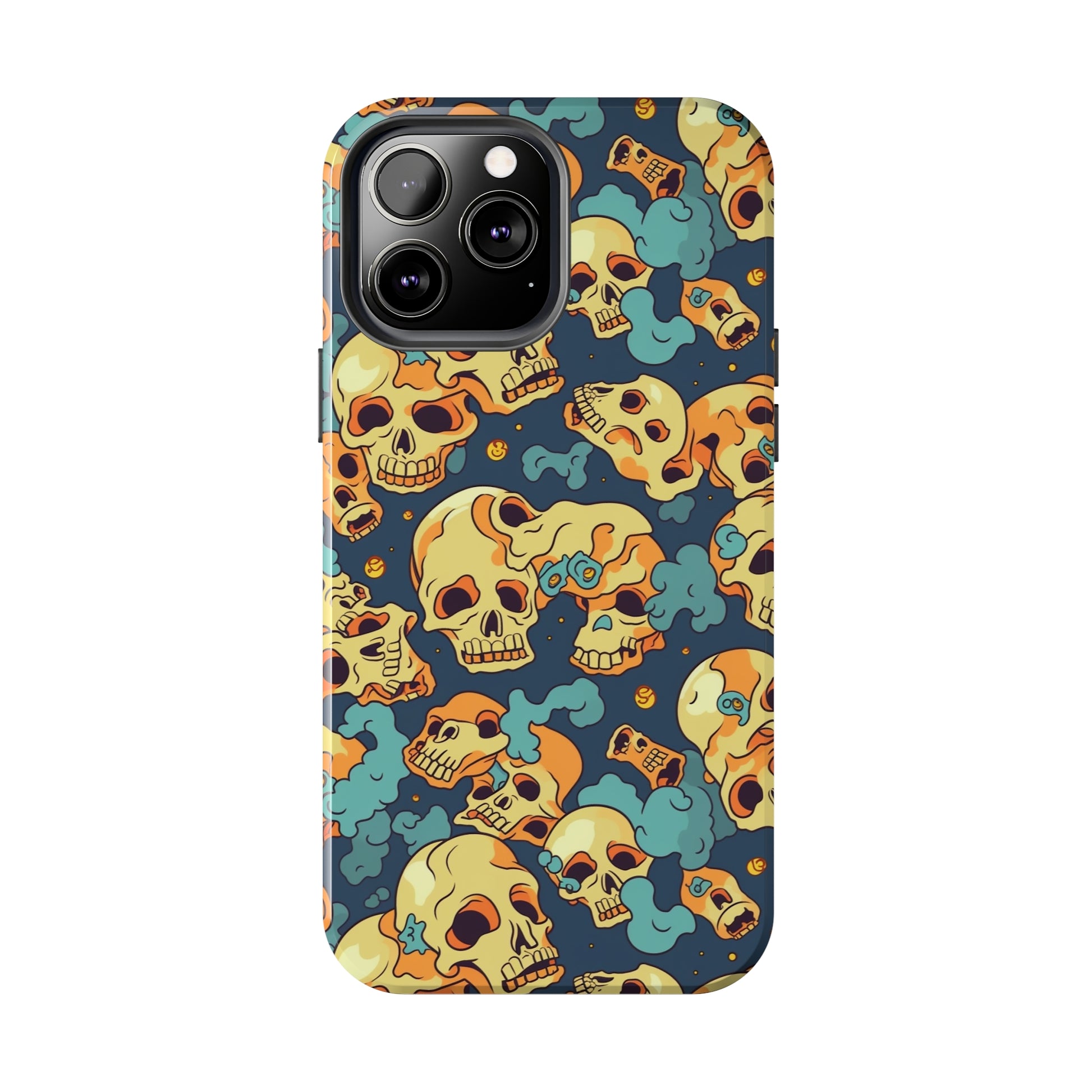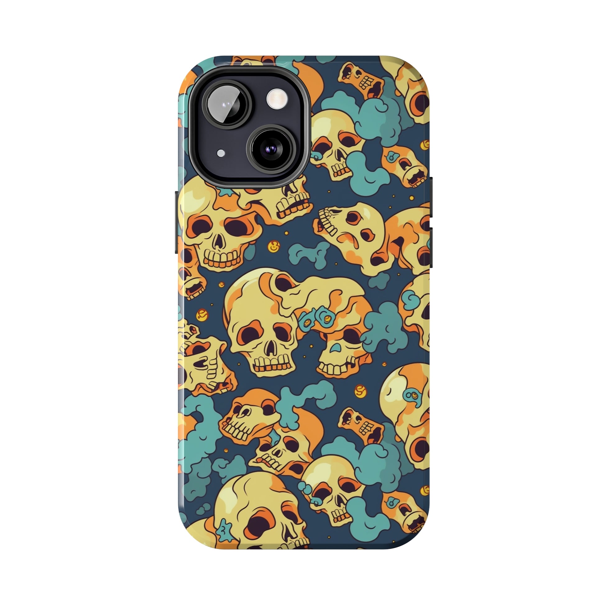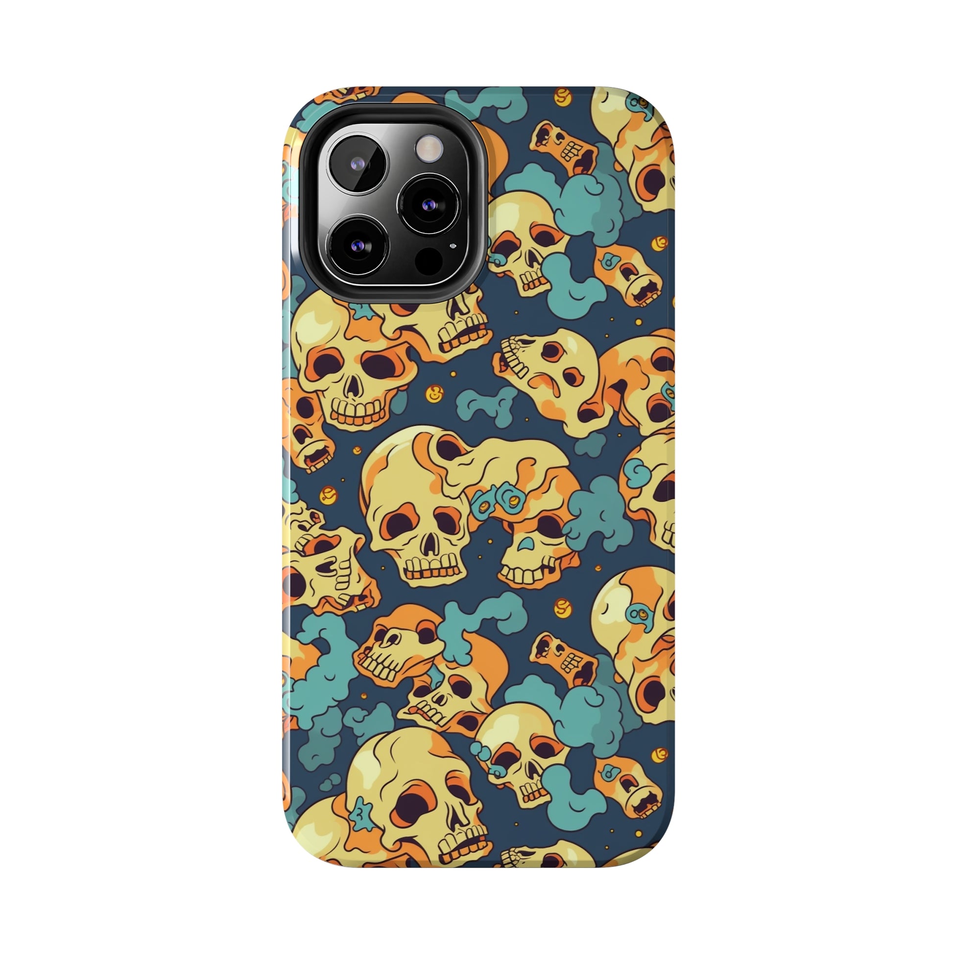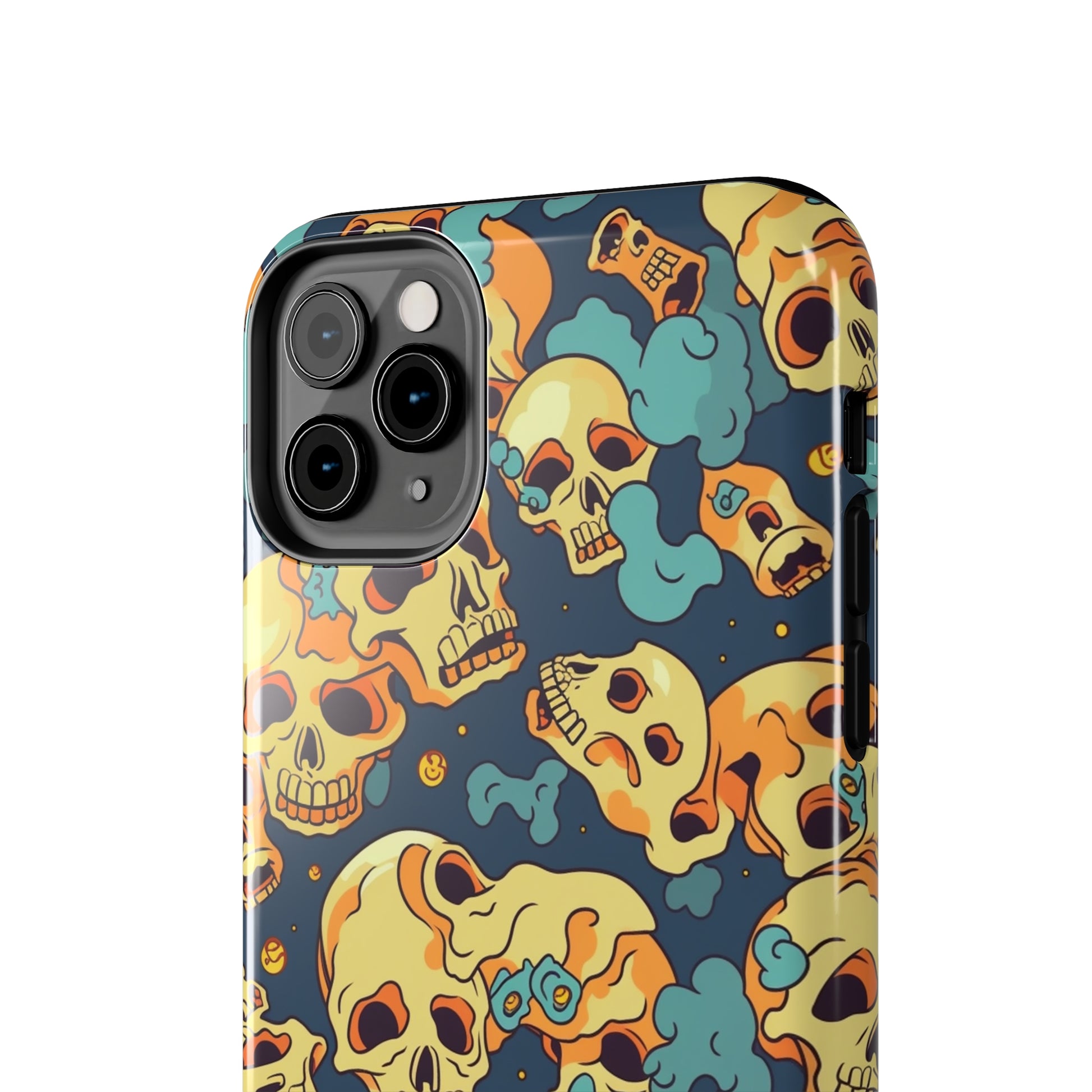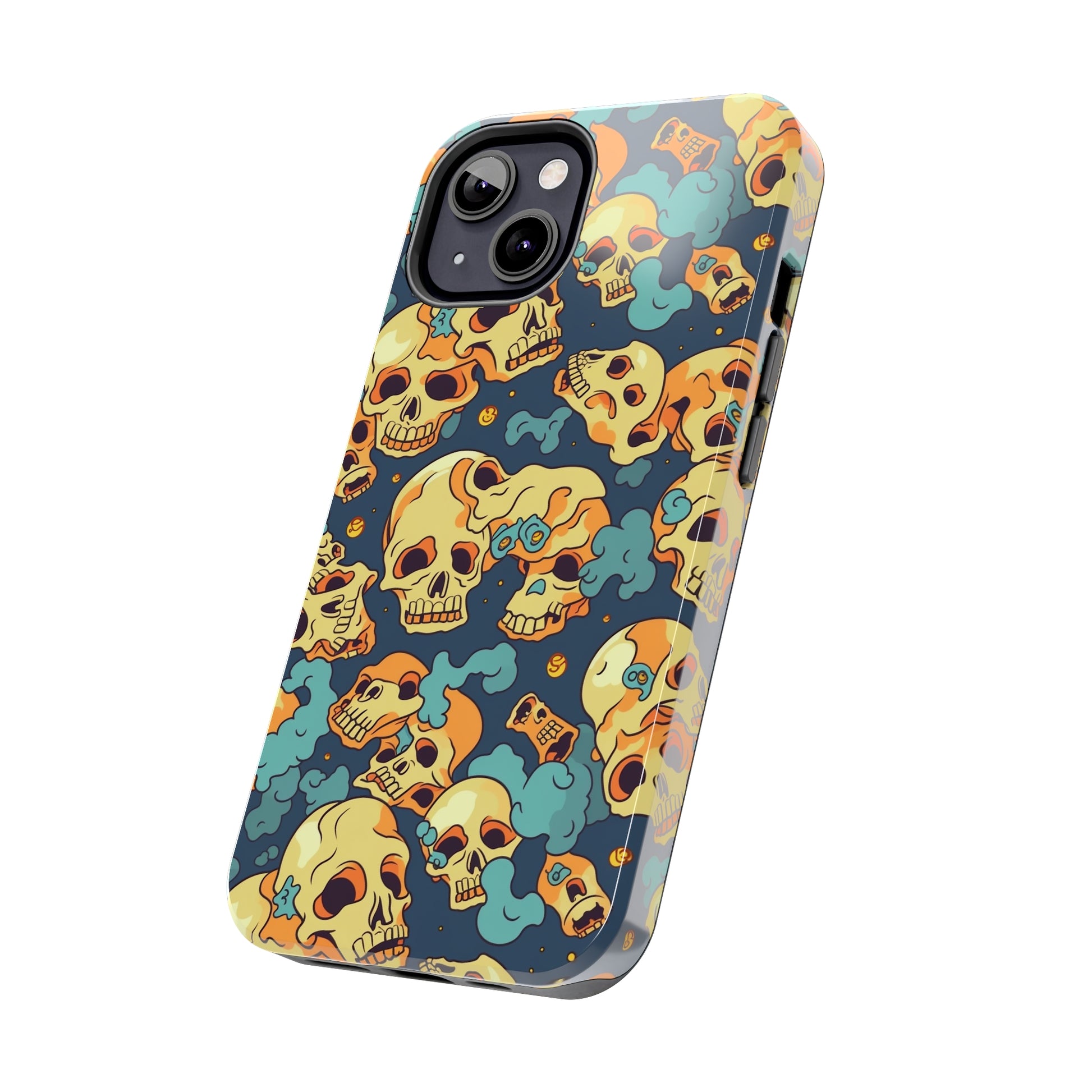 The Bone Chill - Deathly Protection - Tough Phone Cases by Case-Mate, the ultimate accessory to safeguard your phone from life's bumps and knocks. Featuring a unique design of yellowish cream-colored melting skulls on an icy blue background, this phone case offers a sleek and stylish look while providing maximum protection for your device.