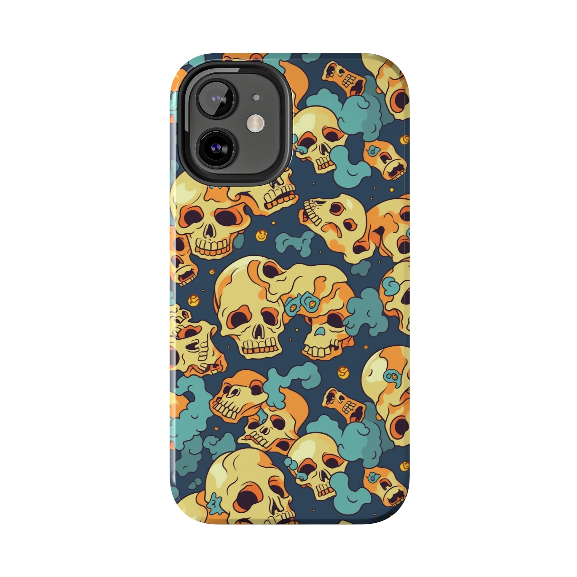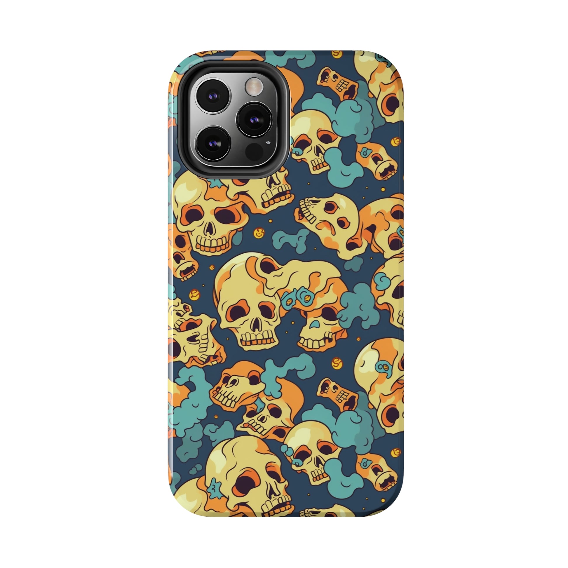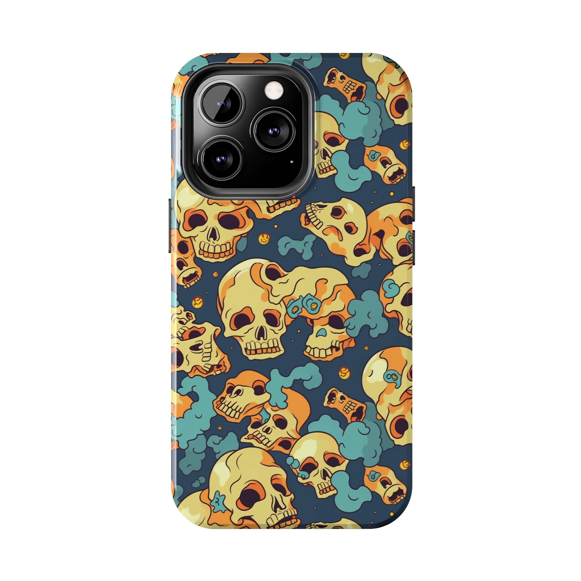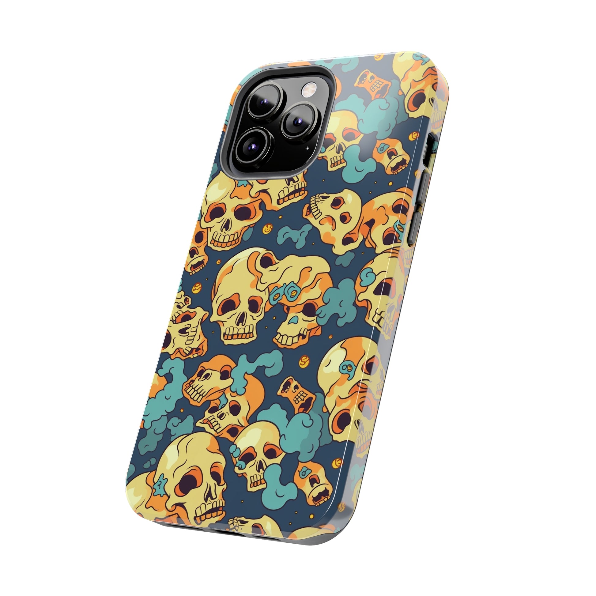 The Bone Chill - Deathly Protection - Tough Phone Cases by Case-Mate, the ultimate accessory to safeguard your phone from life's bumps and knocks. Featuring a unique design of yellowish cream-colored melting skulls on an icy blue background, this phone case offers a sleek and stylish look while providing maximum protection for your device.