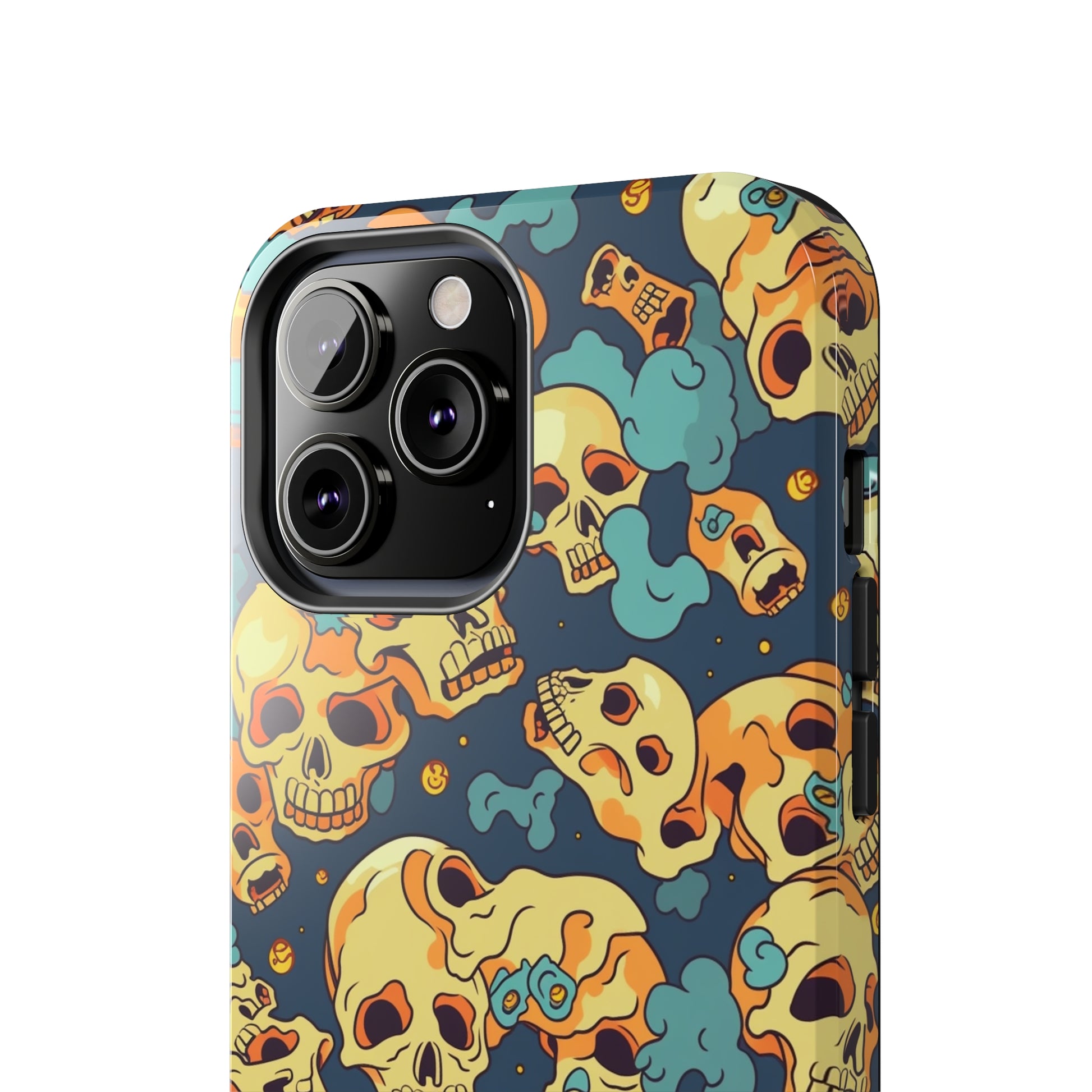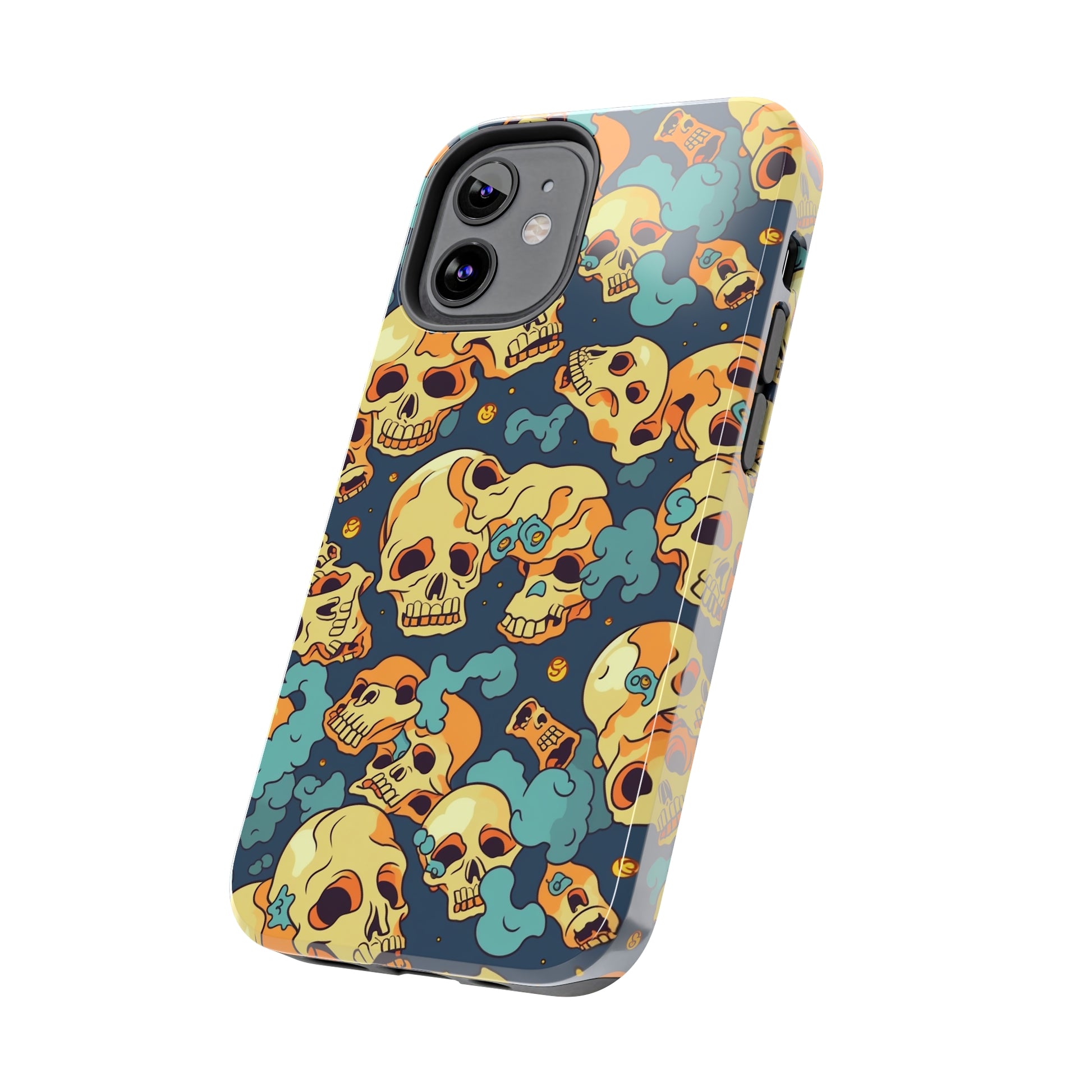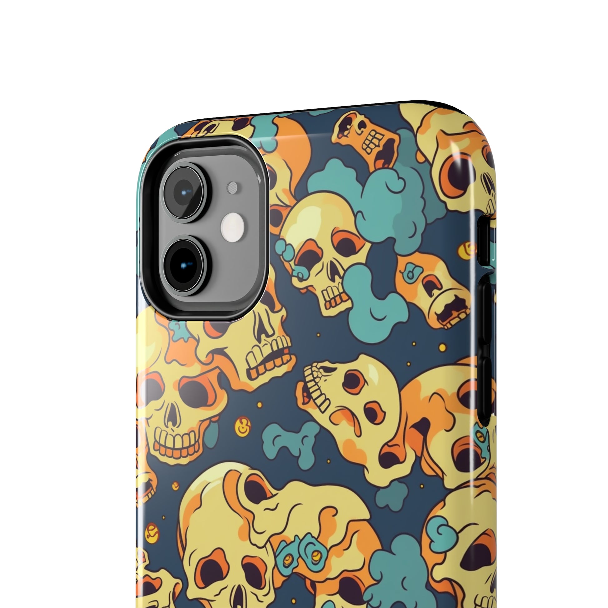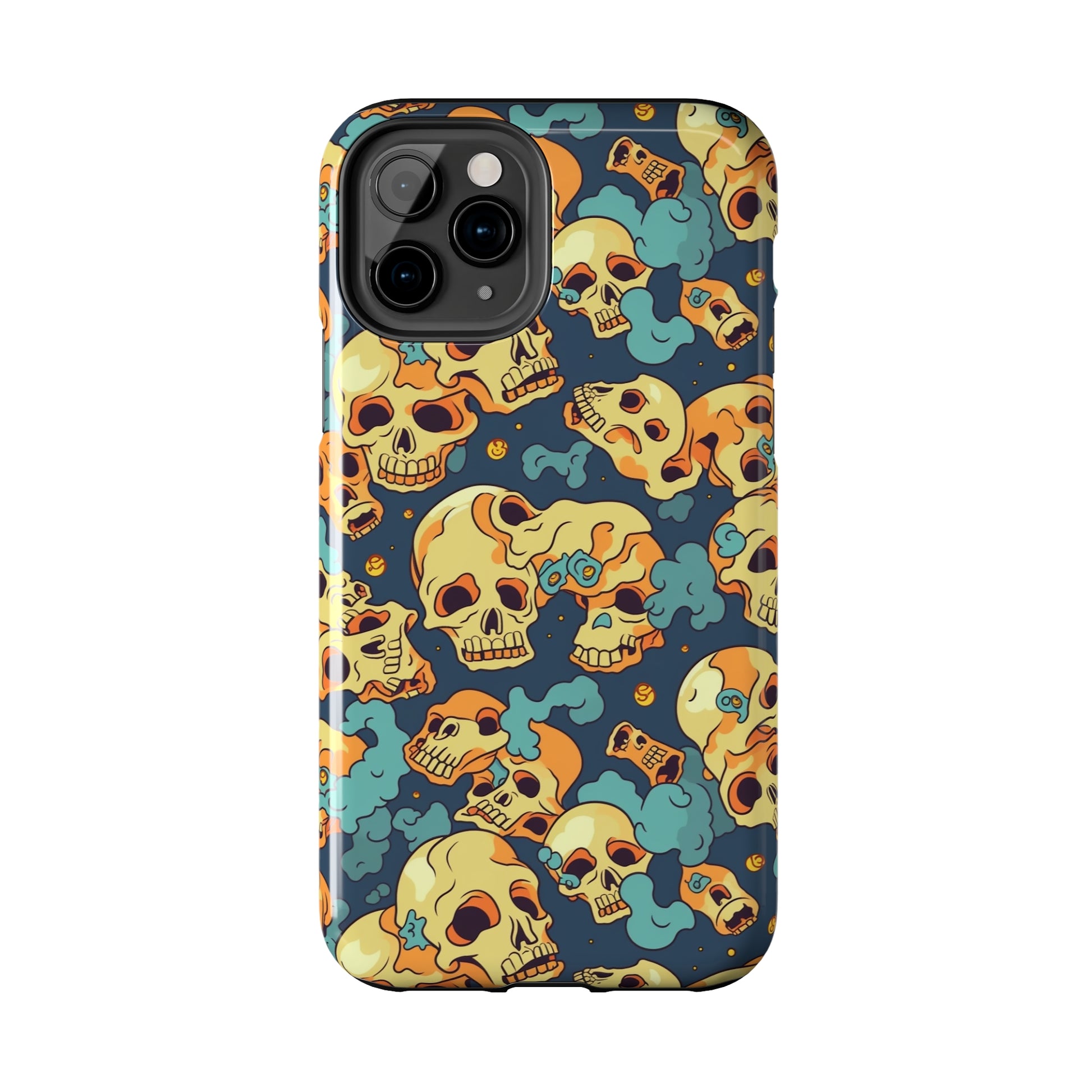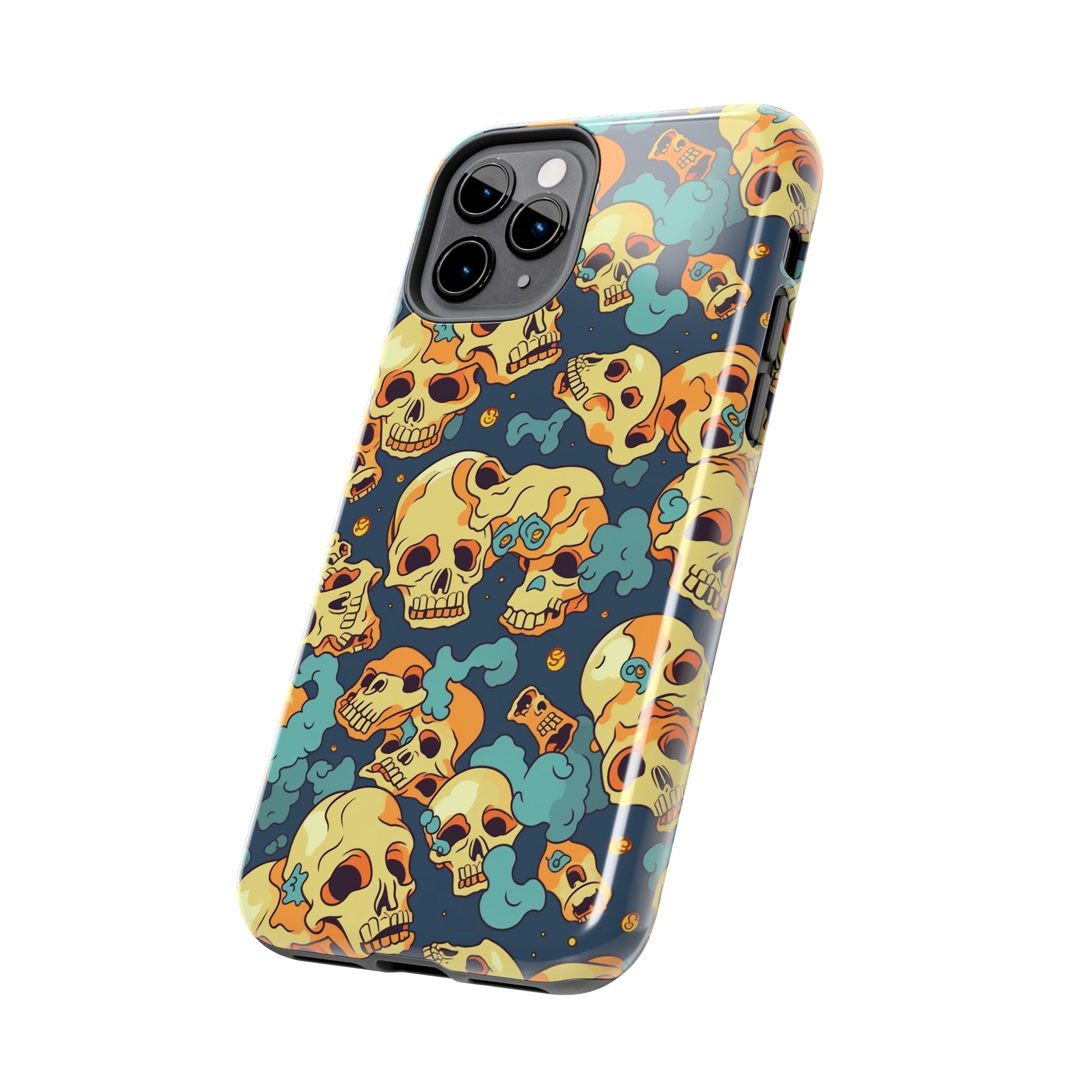 The Bone Chill - Deathly Protection - Tough Phone Cases by Case-Mate, the ultimate accessory to safeguard your phone from life's bumps and knocks. Featuring a unique design of yellowish cream-colored melting skulls on an icy blue background, this phone case offers a sleek and stylish look while providing maximum protection for your device.