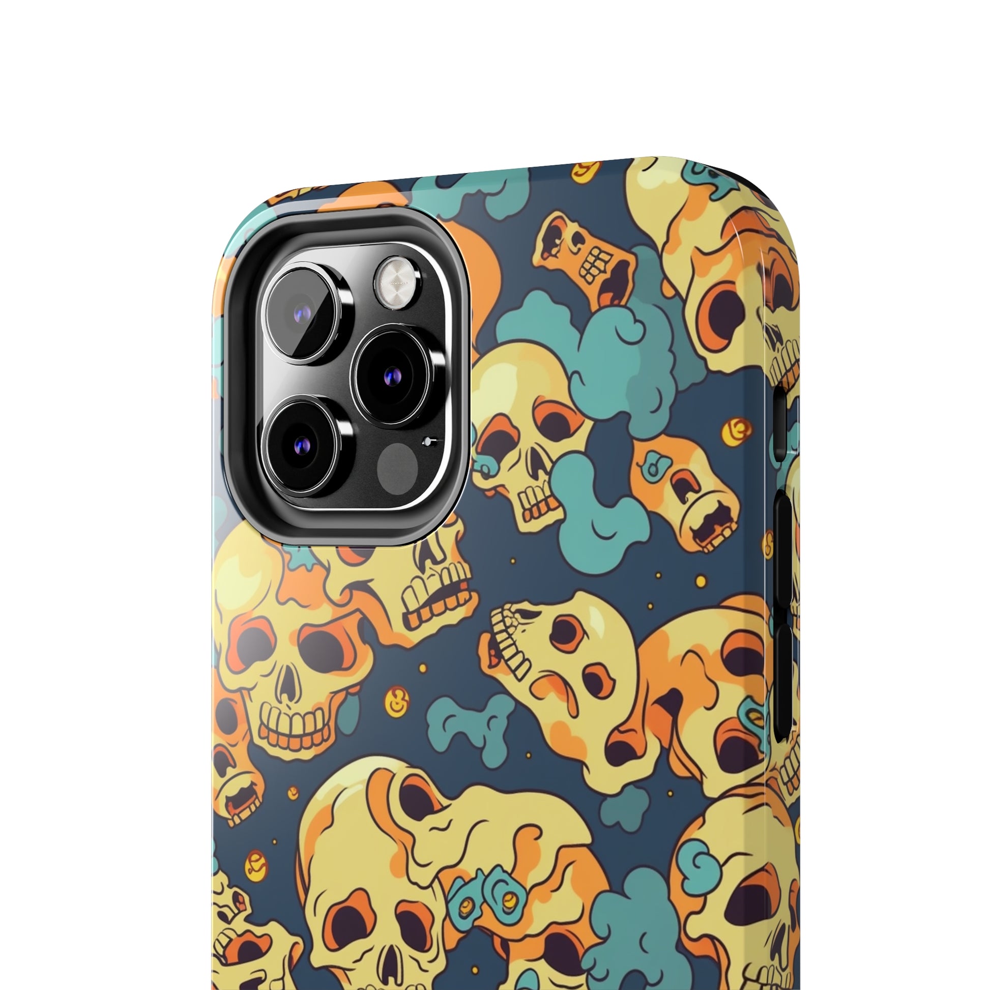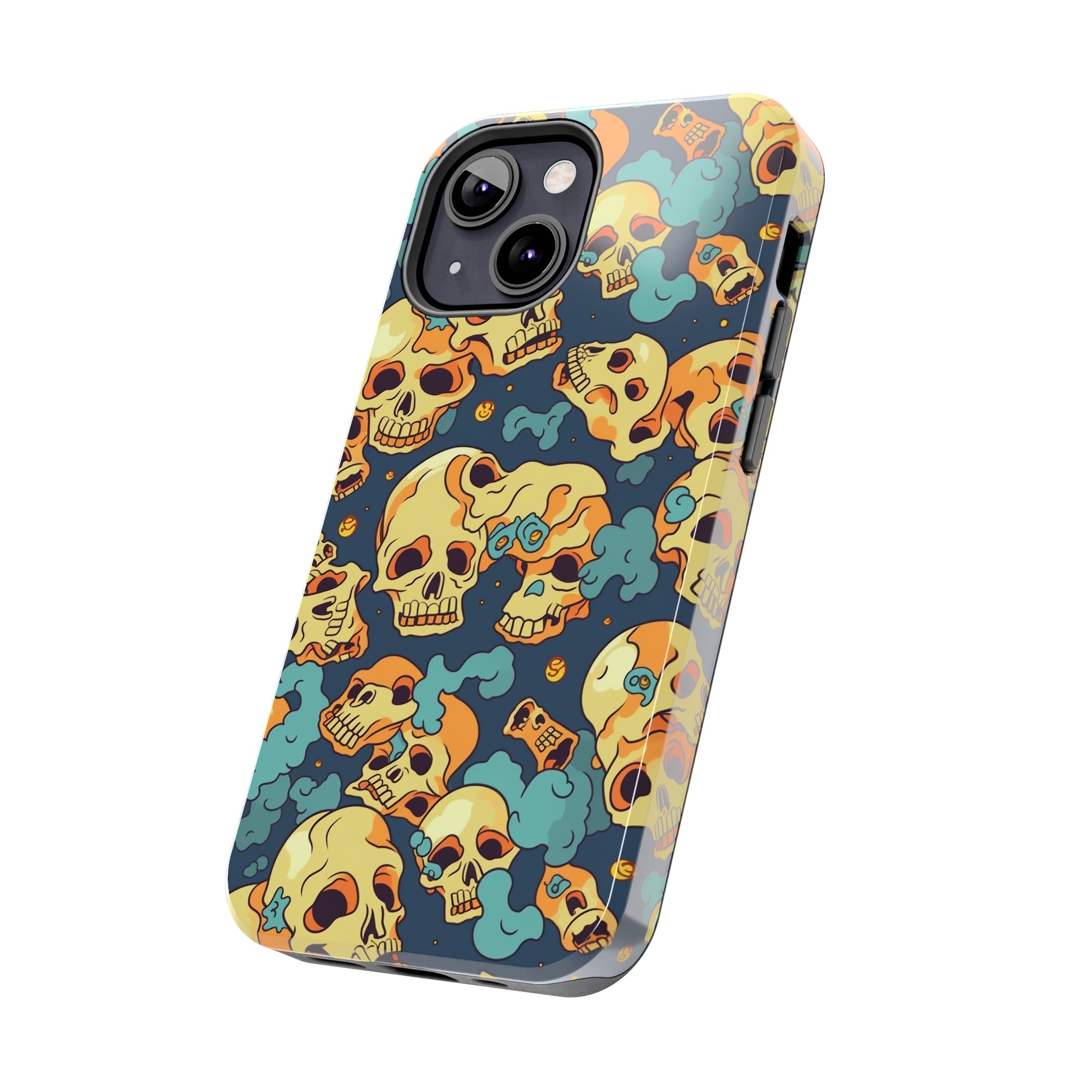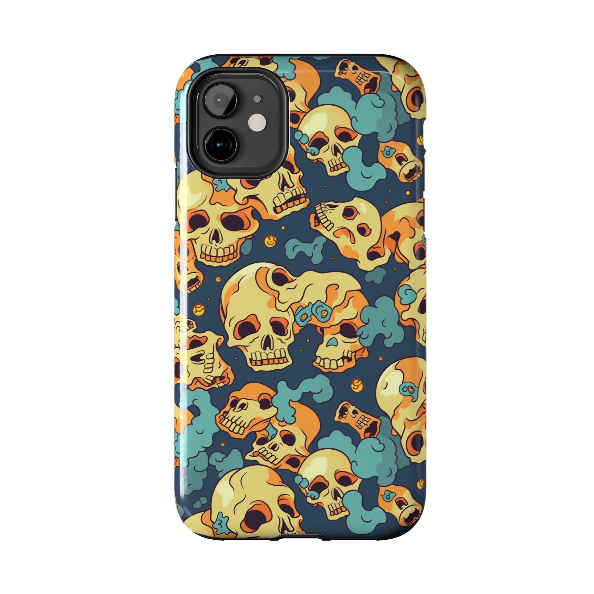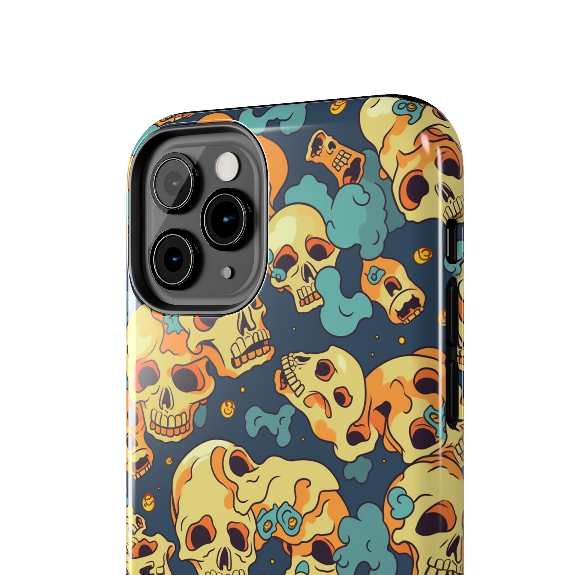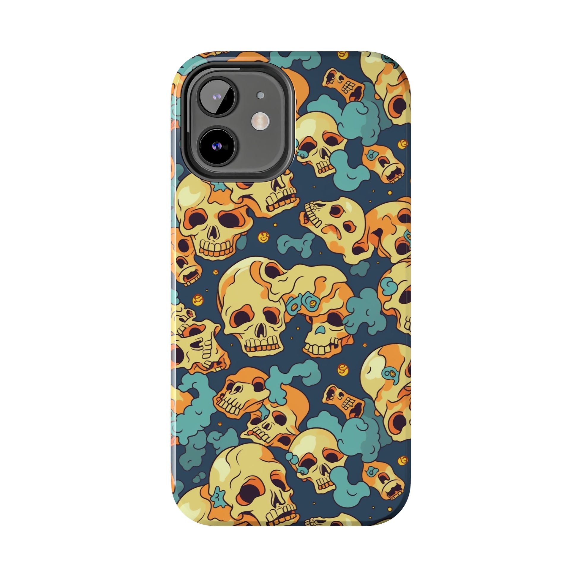 The Bone Chill - Deathly Protection - Tough Phone Cases by Case-Mate, the ultimate accessory to safeguard your phone from life's bumps and knocks. Featuring a unique design of yellowish cream-colored melting skulls on an icy blue background, this phone case offers a sleek and stylish look while providing maximum protection for your device.