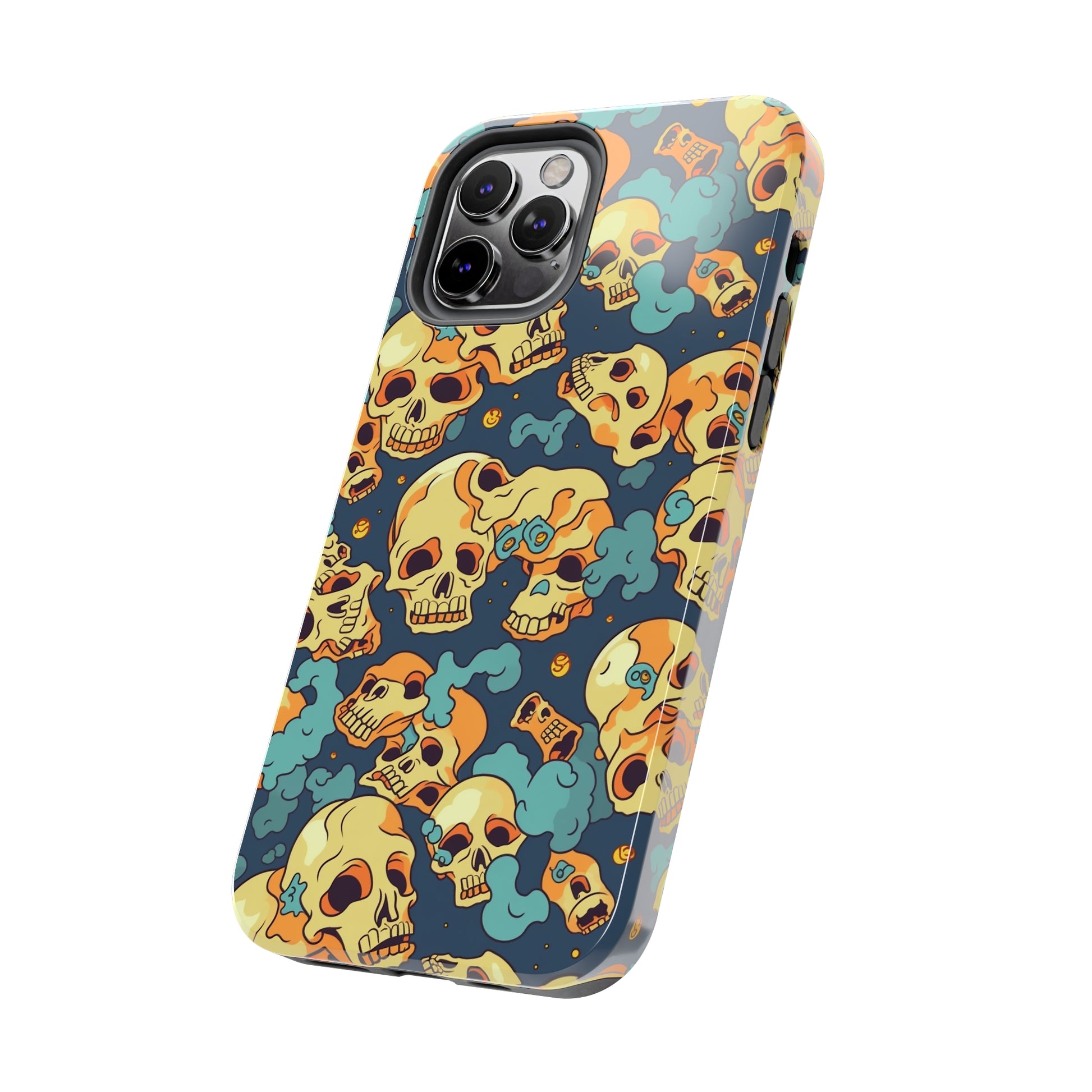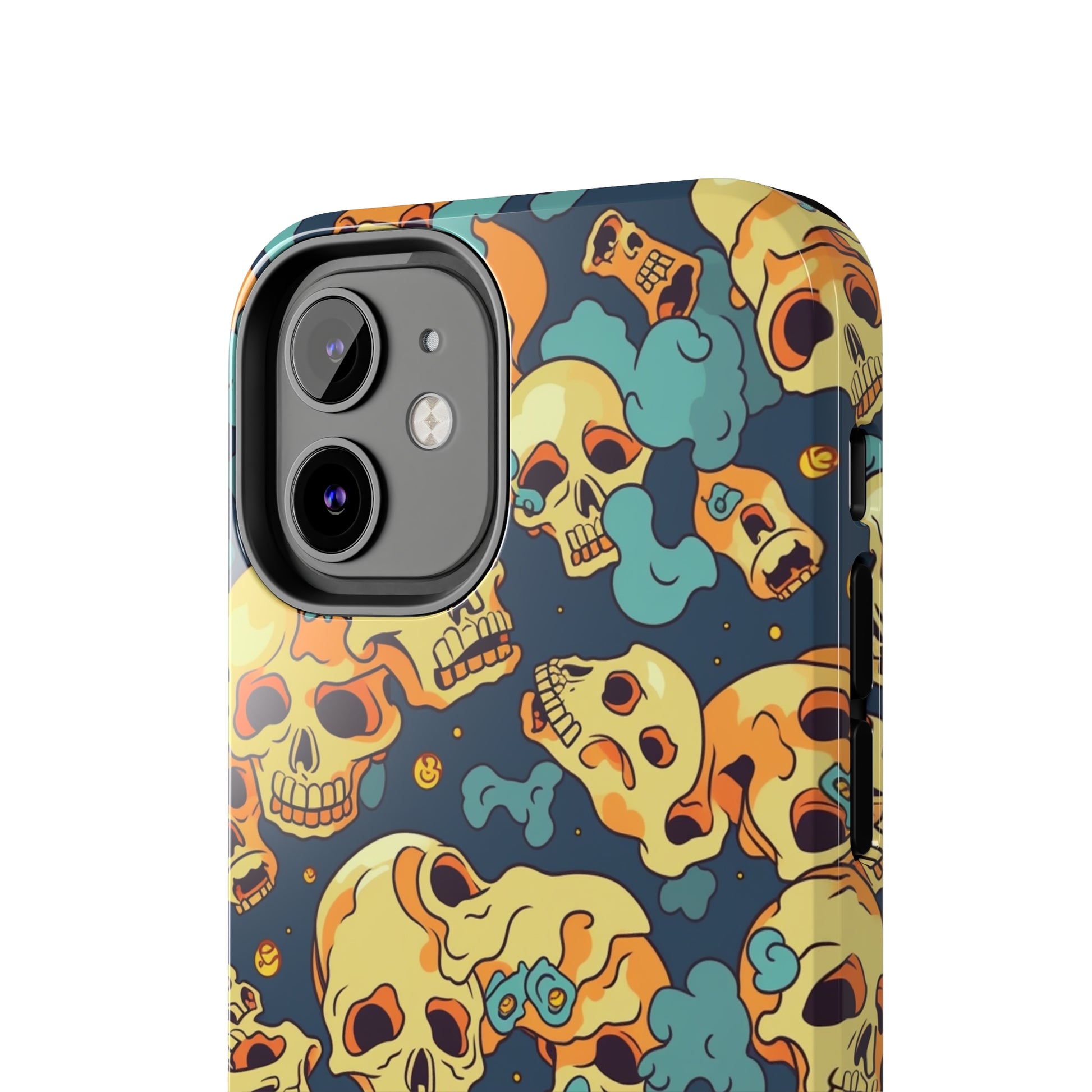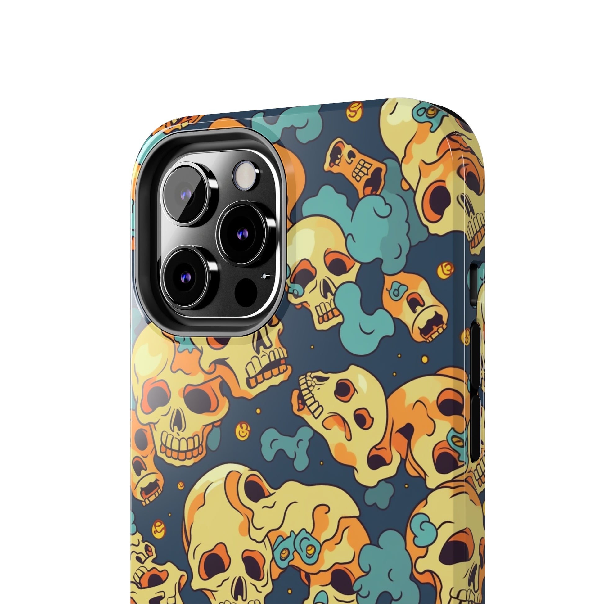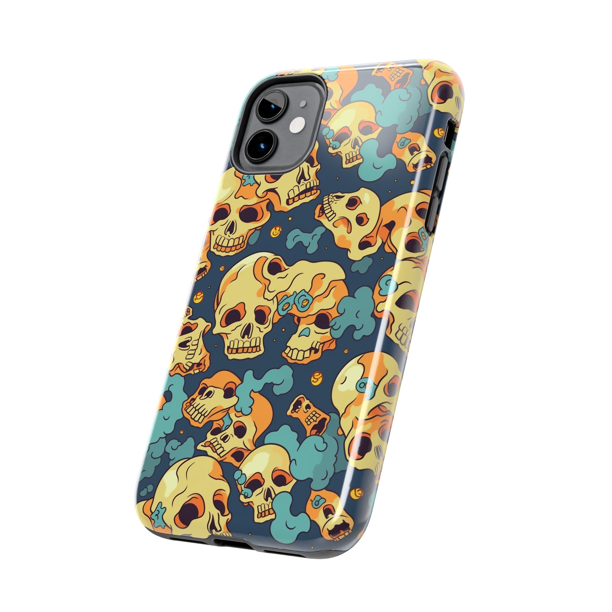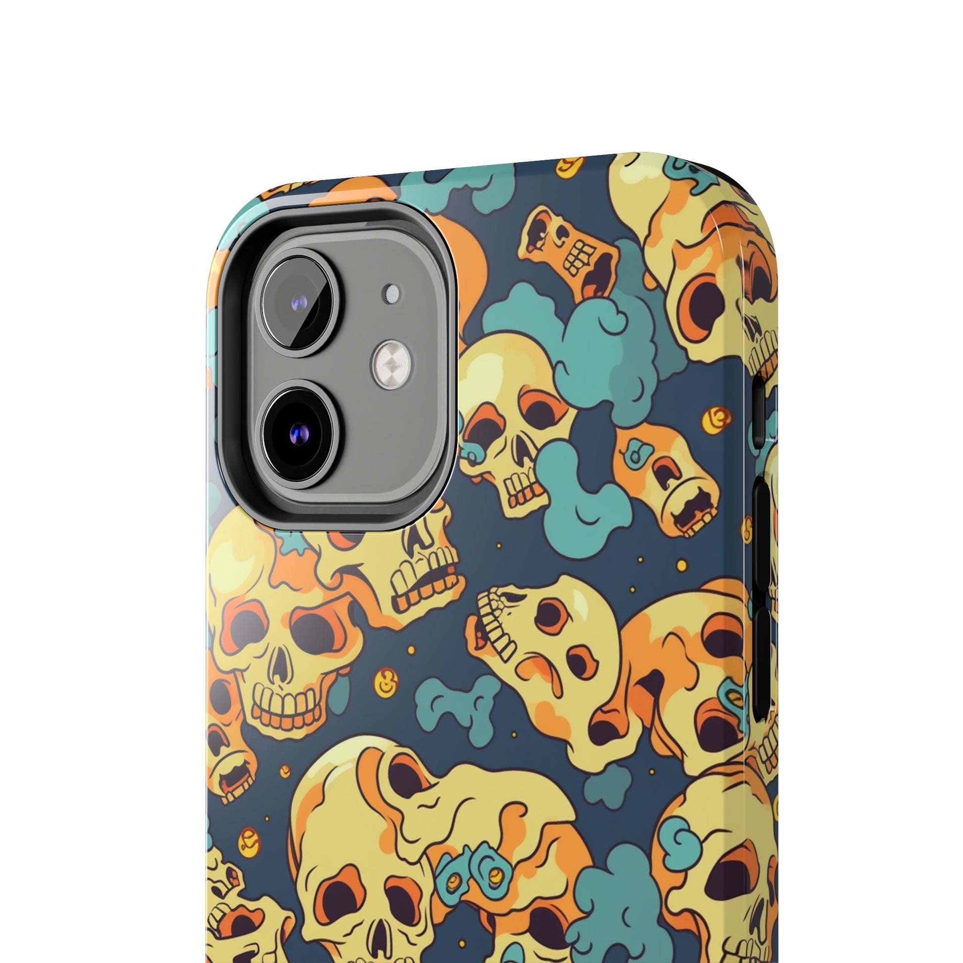 The Bone Chill - Deathly Protection - Tough Phone Cases by Case-Mate, the ultimate accessory to safeguard your phone from life's bumps and knocks. Featuring a unique design of yellowish cream-colored melting skulls on an icy blue background, this phone case offers a sleek and stylish look while providing maximum protection for your device.
