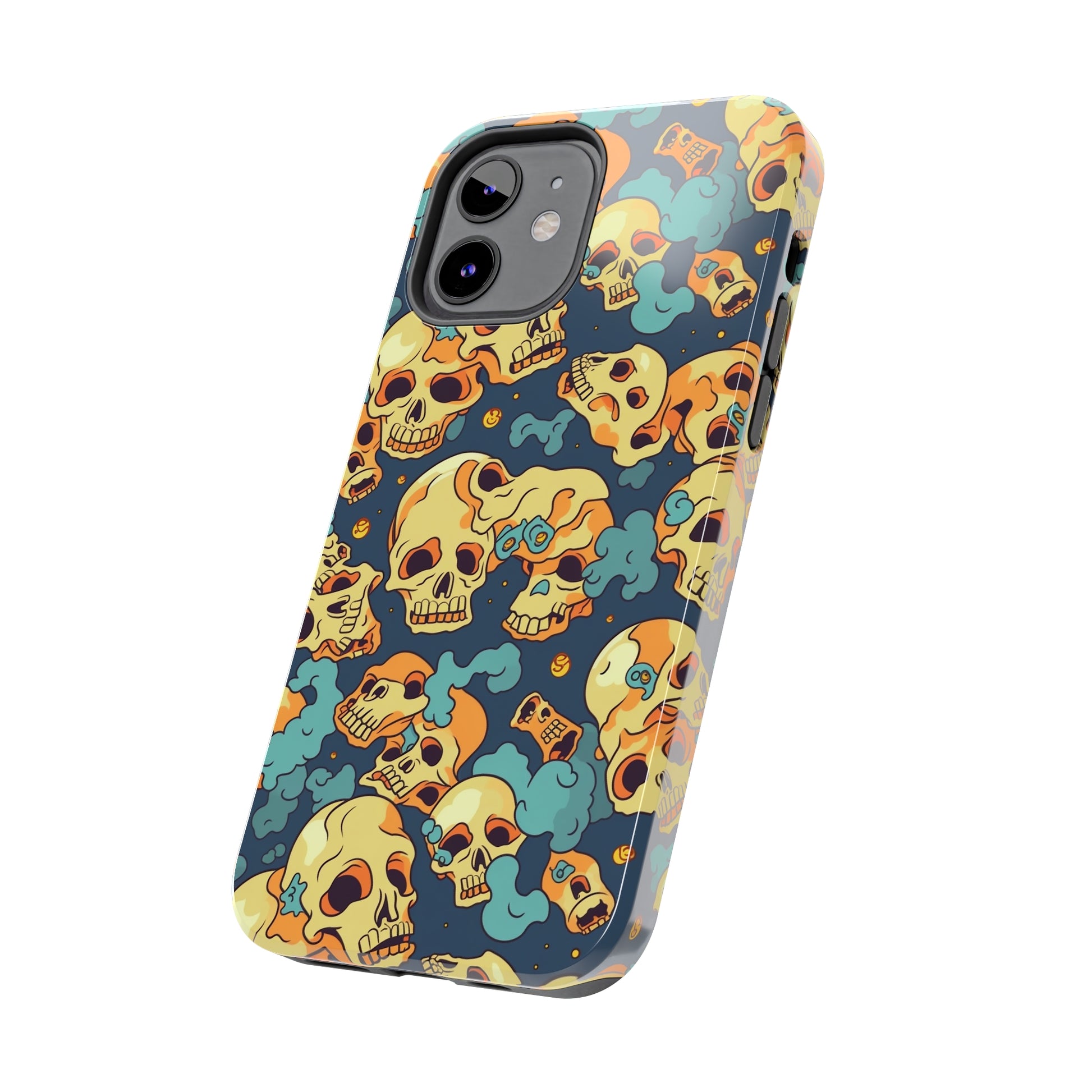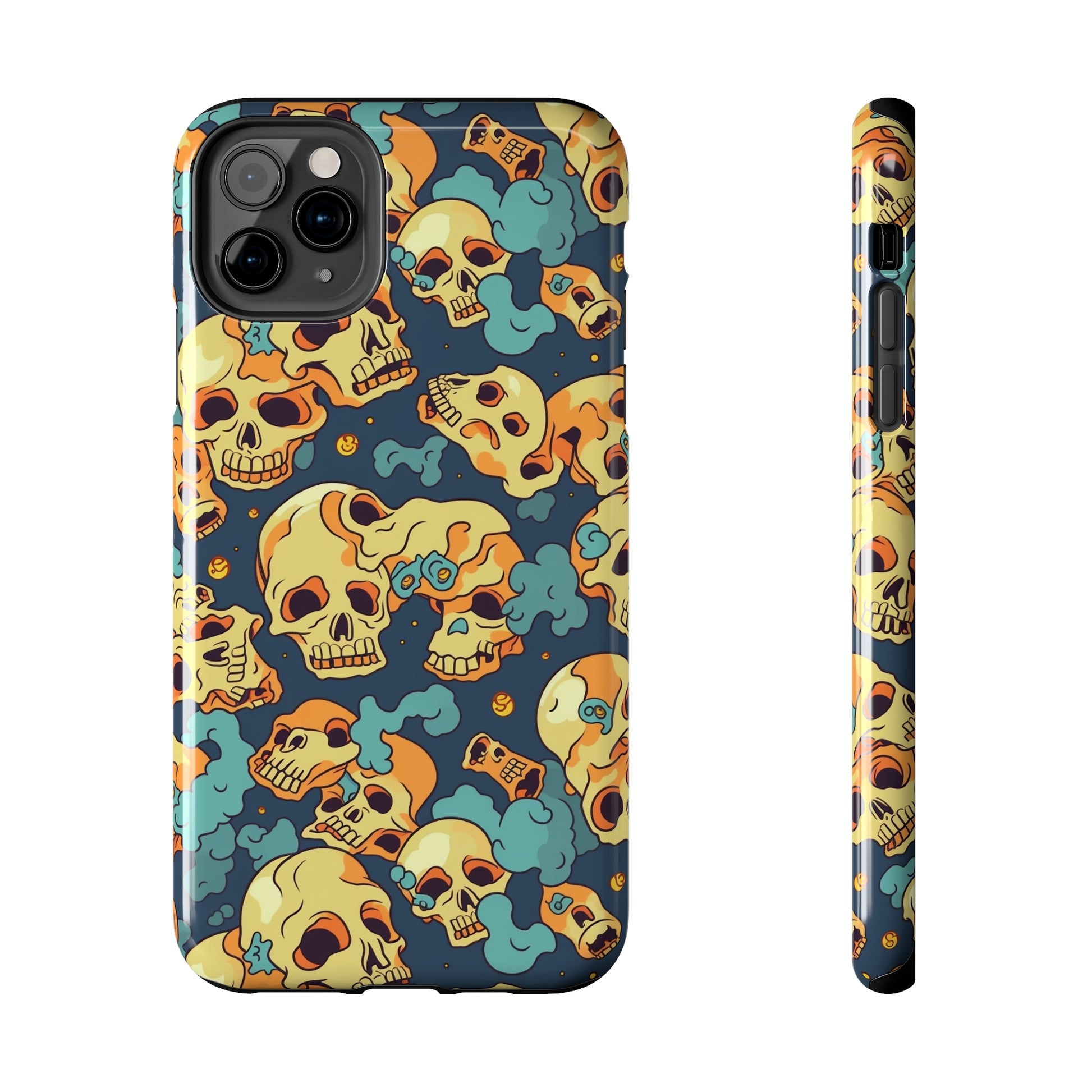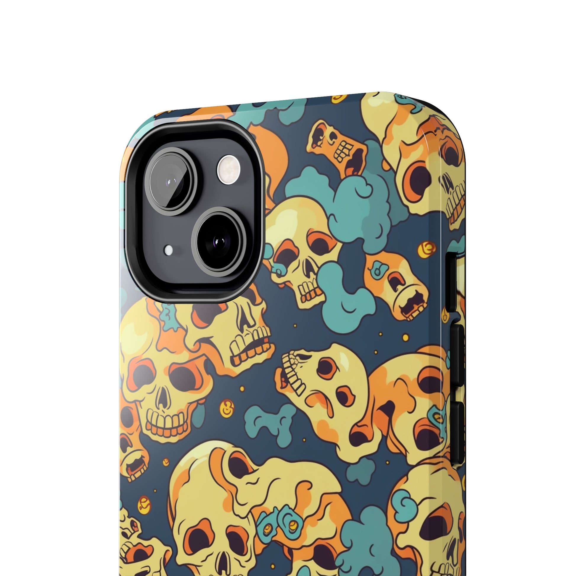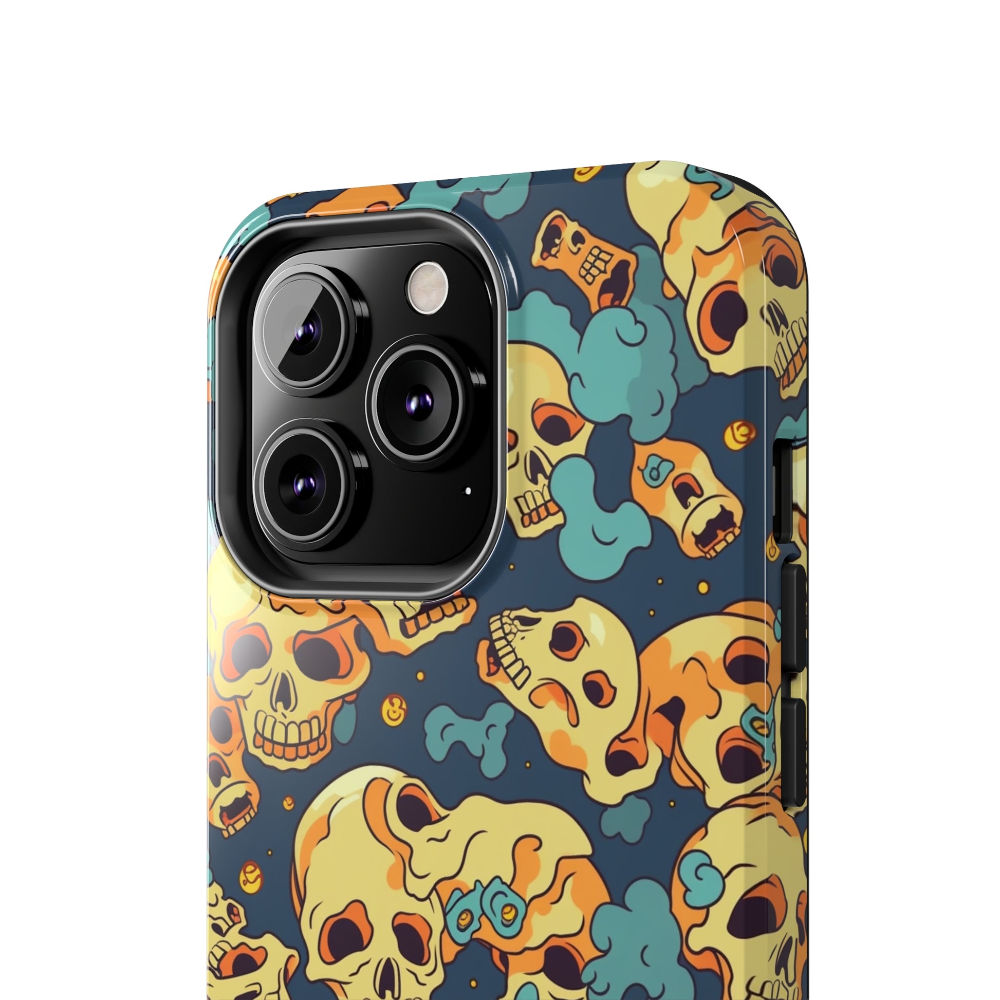 The Bone Chill - Deathly Protection - Tough Phone Cases by Case-Mate, the ultimate accessory to safeguard your phone from life's bumps and knocks. Featuring a unique design of yellowish cream-colored melting skulls on an icy blue background, this phone case offers a sleek and stylish look while providing maximum protection for your device.