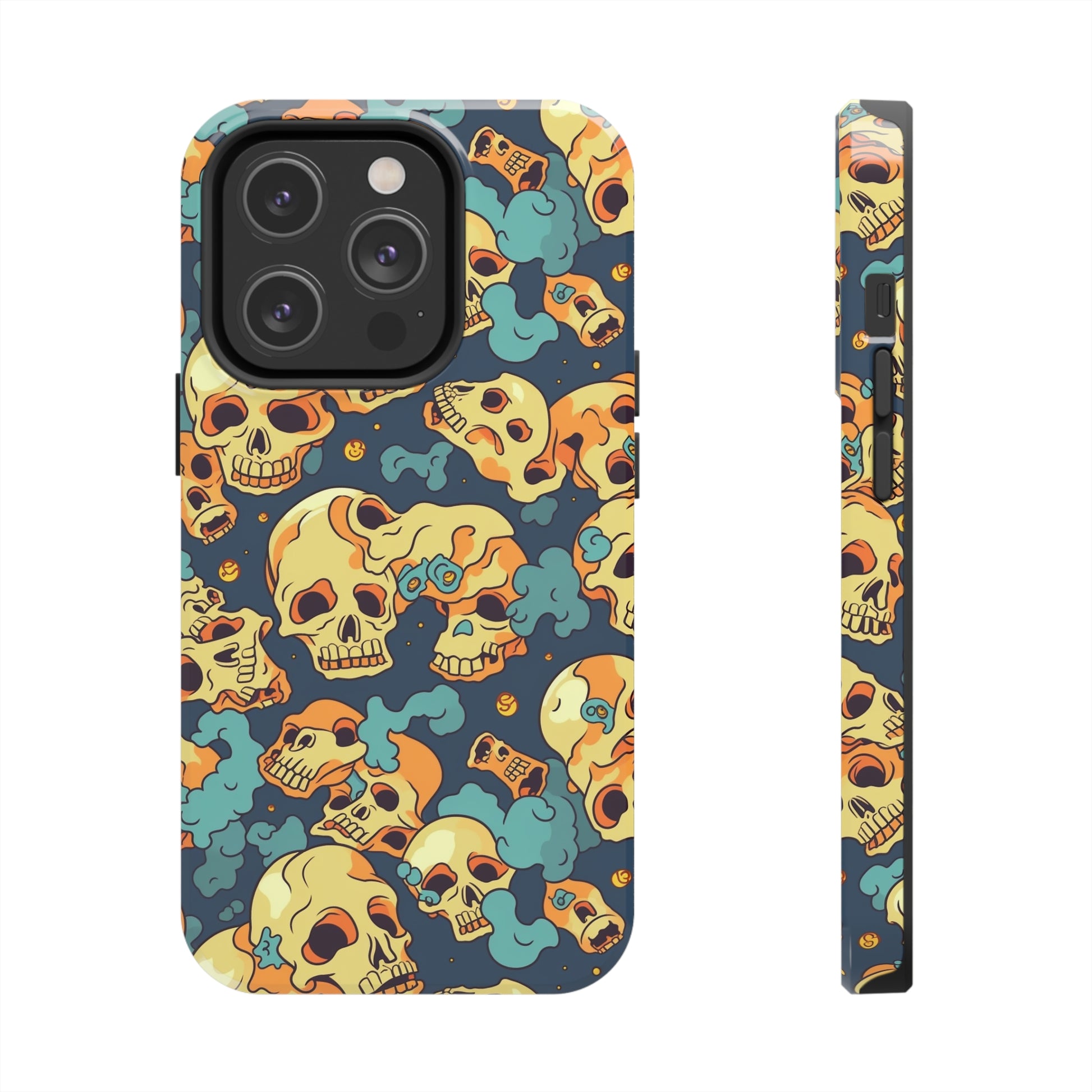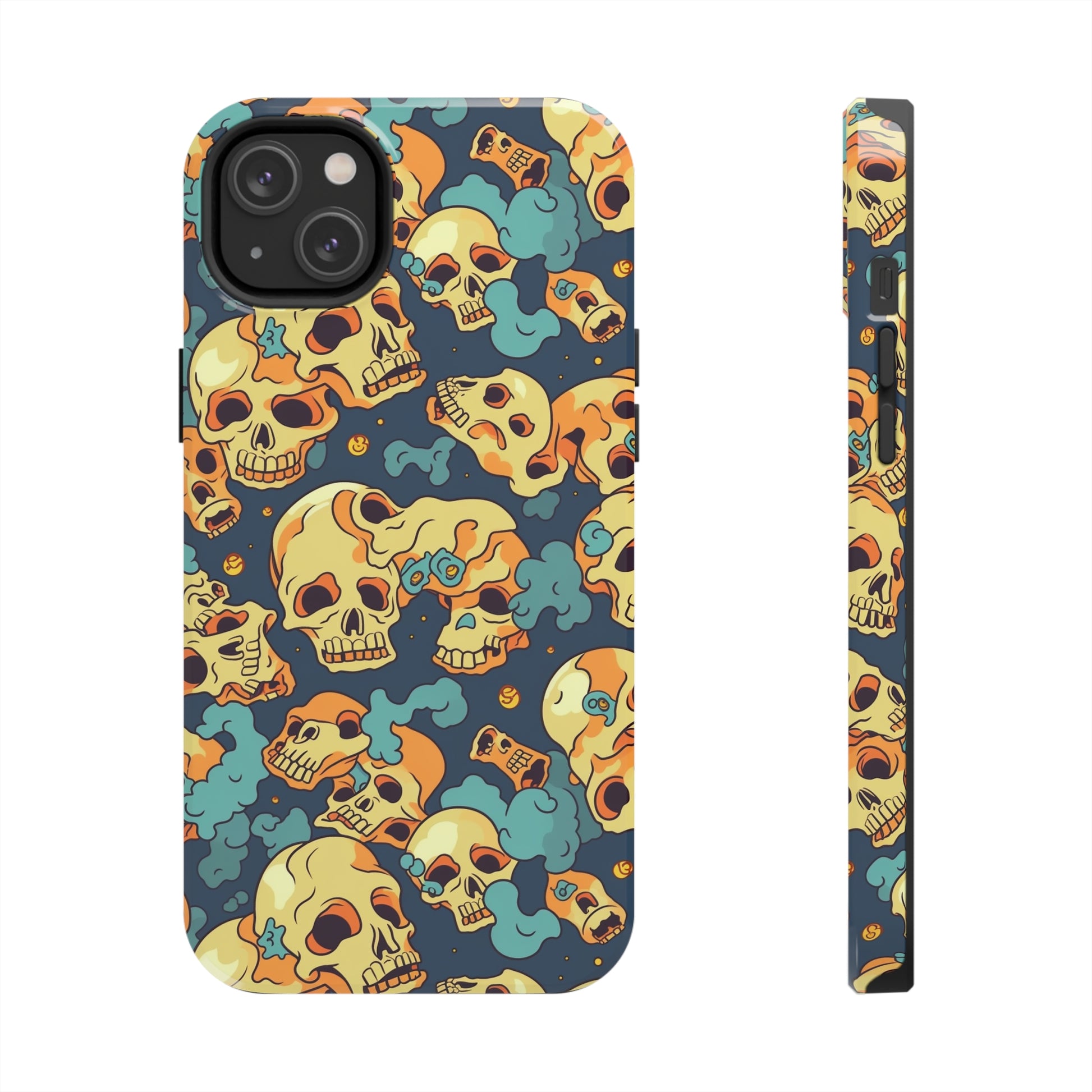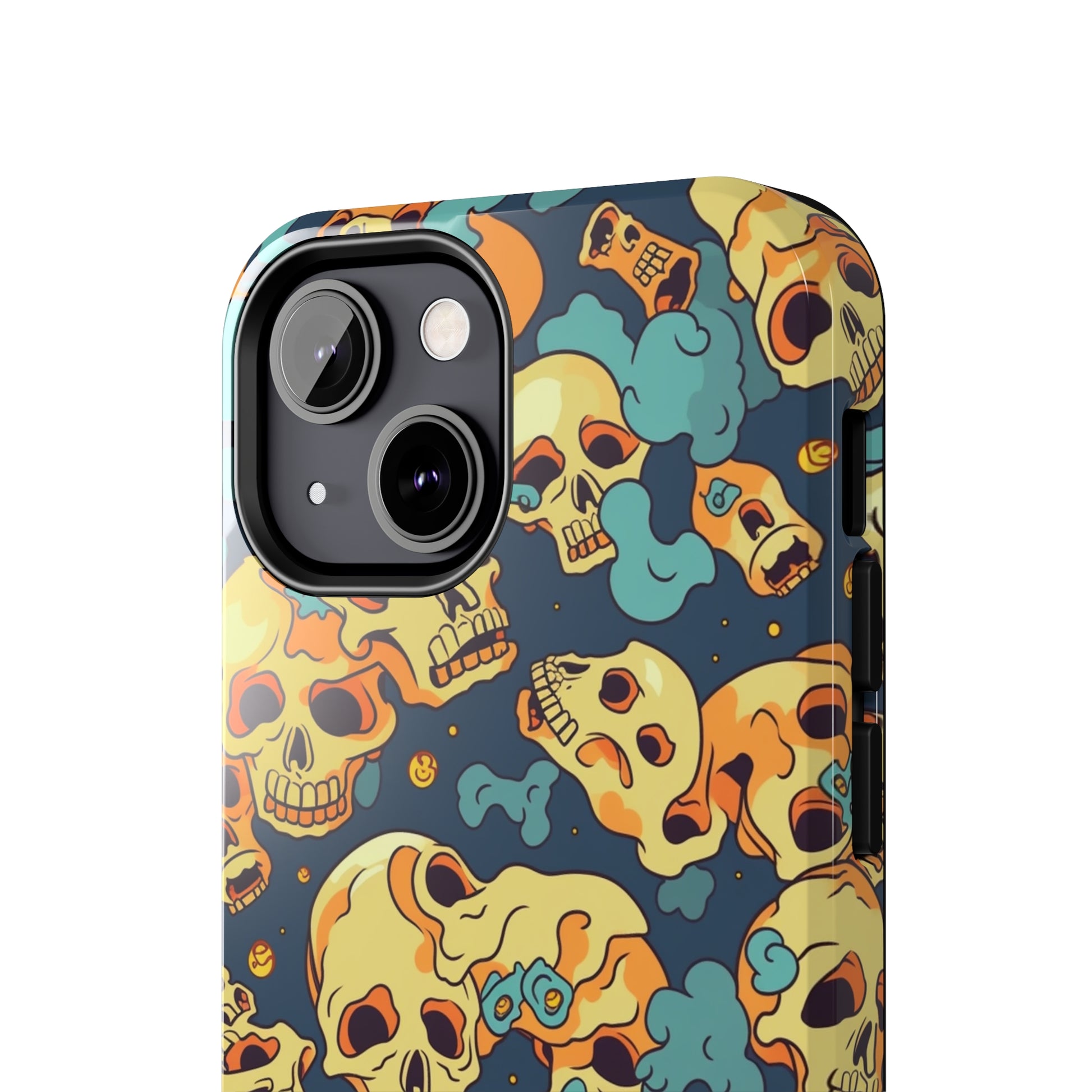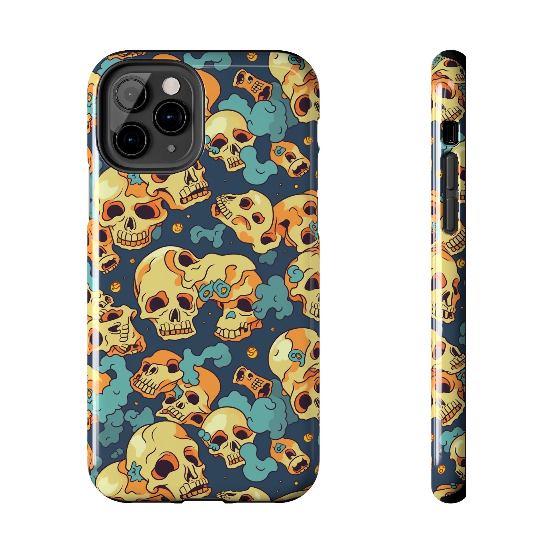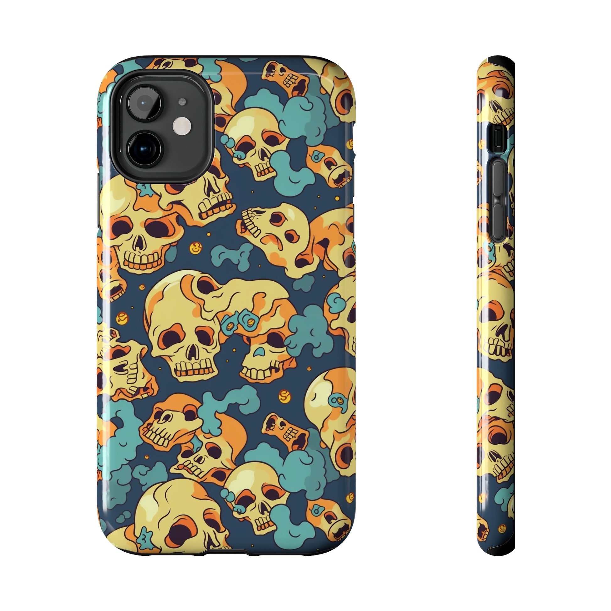 The Bone Chill - Deathly Protection - Tough Phone Cases by Case-Mate, the ultimate accessory to safeguard your phone from life's bumps and knocks. Featuring a unique design of yellowish cream-colored melting skulls on an icy blue background, this phone case offers a sleek and stylish look while providing maximum protection for your device.
