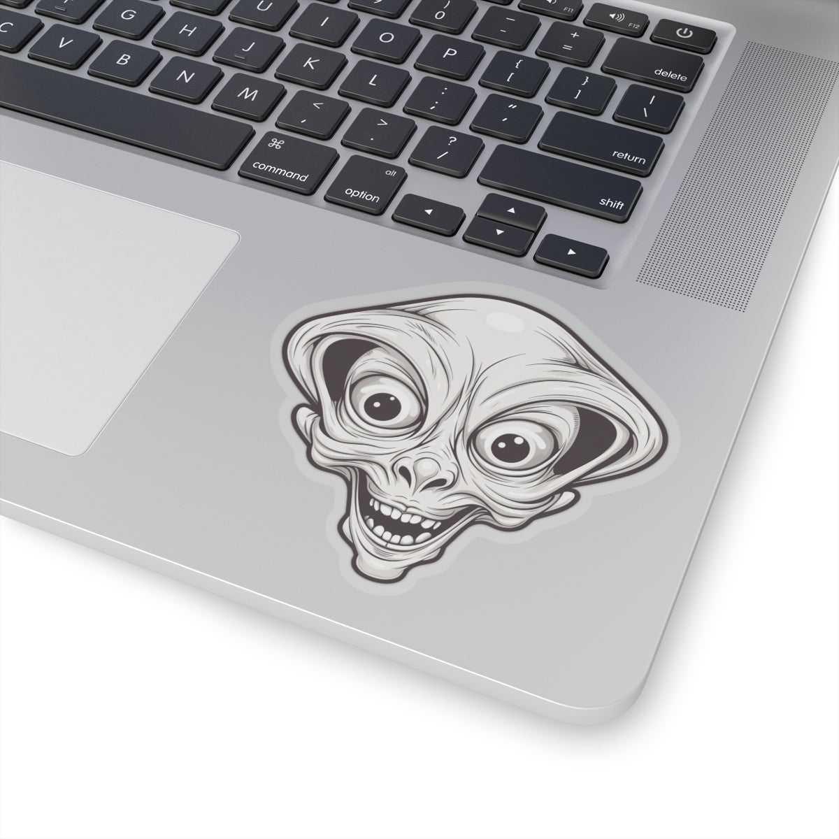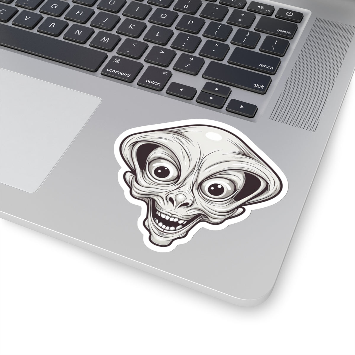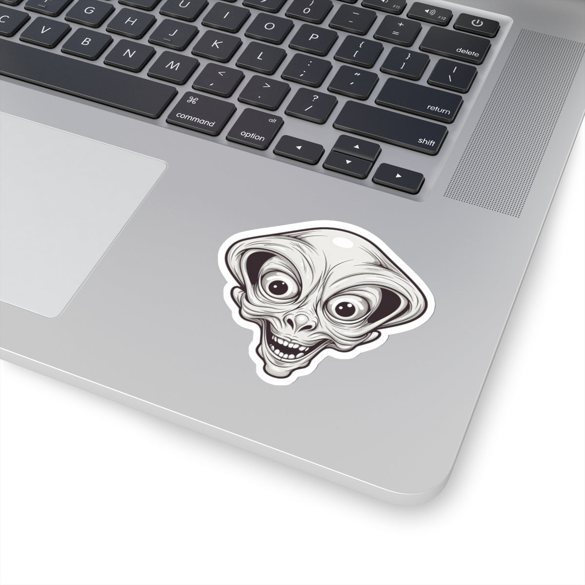 Explore the depths of the cosmos with our Bulging Eyes Alien Head Vinyl Sticker! This captivating sticker features the head of an otherworldly being in striking black and white, adding an eerie and mysterious charm to any surface. The alien's bulging eyes evoke a sense of cosmic intrigue, inviting you to peer into the unknown. Perfect for sci-fi enthusiasts and lovers of the extraterrestrial, this sticker brings a touch of the unknown to laptops, notebooks, and more. Crafted from durable vinyl with strong 3M adhesive for long-lasting attachment, the kiss-cut design allows for easy customization of shapes. Available in multiple sizes to suit your preferences, with a thickness of 0.004" (1mm) and a glossy finish, this sticker adds an otherworldly allure to any surface. Please note, these stickers are not waterproof but are perfect for indoor decor.