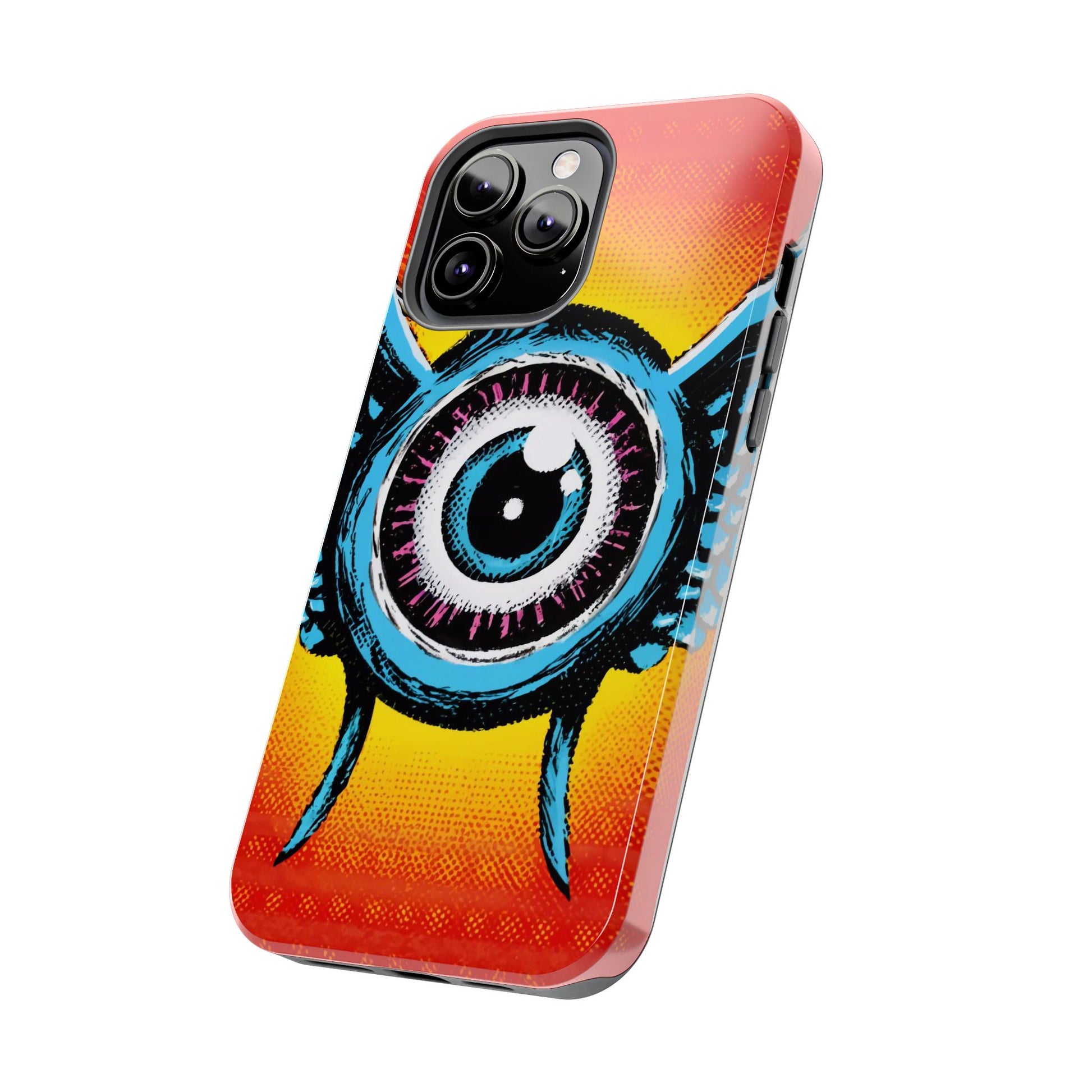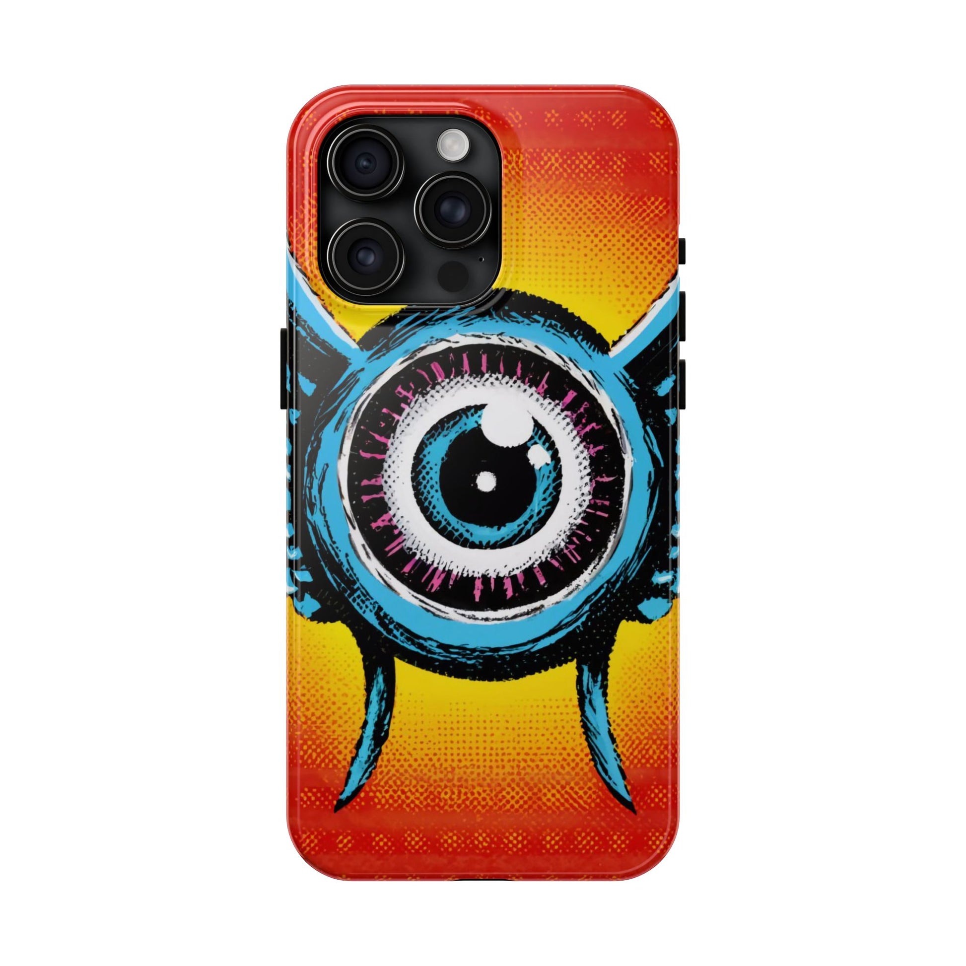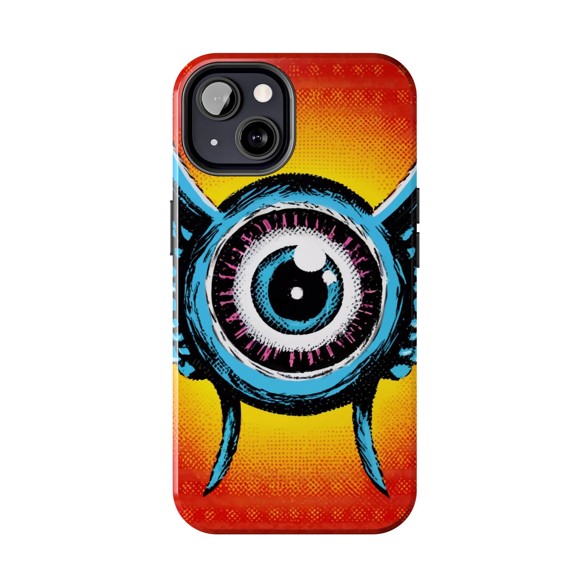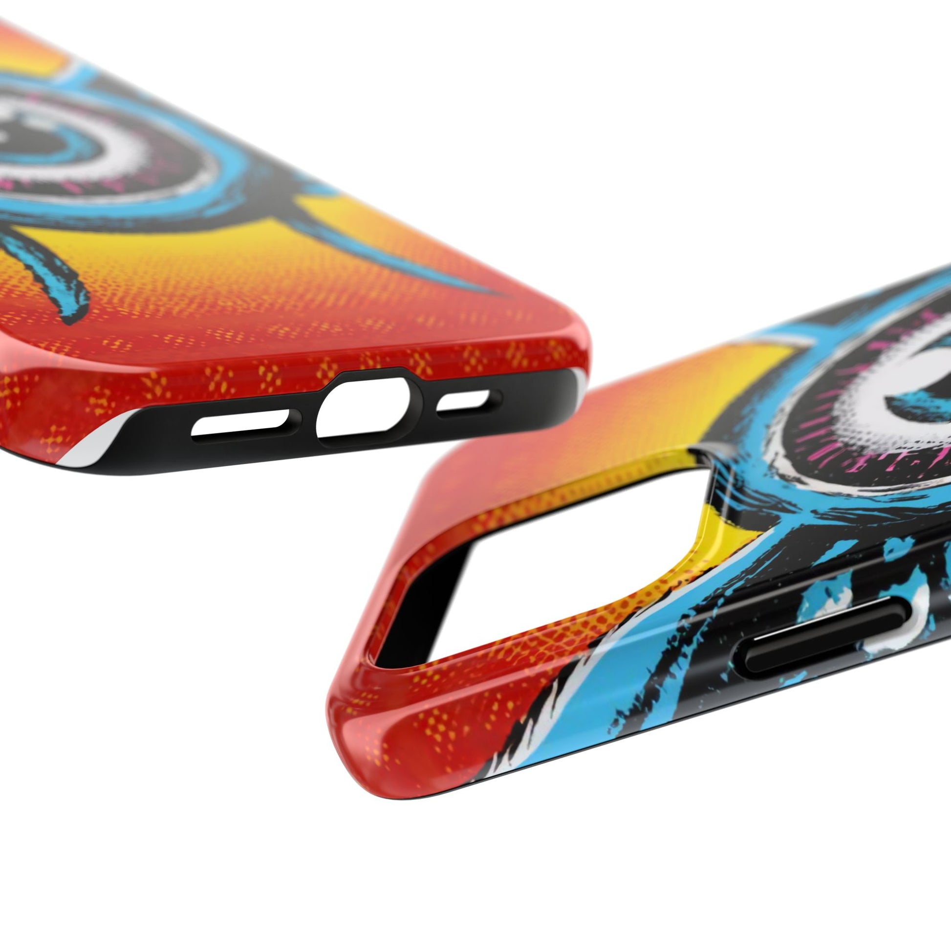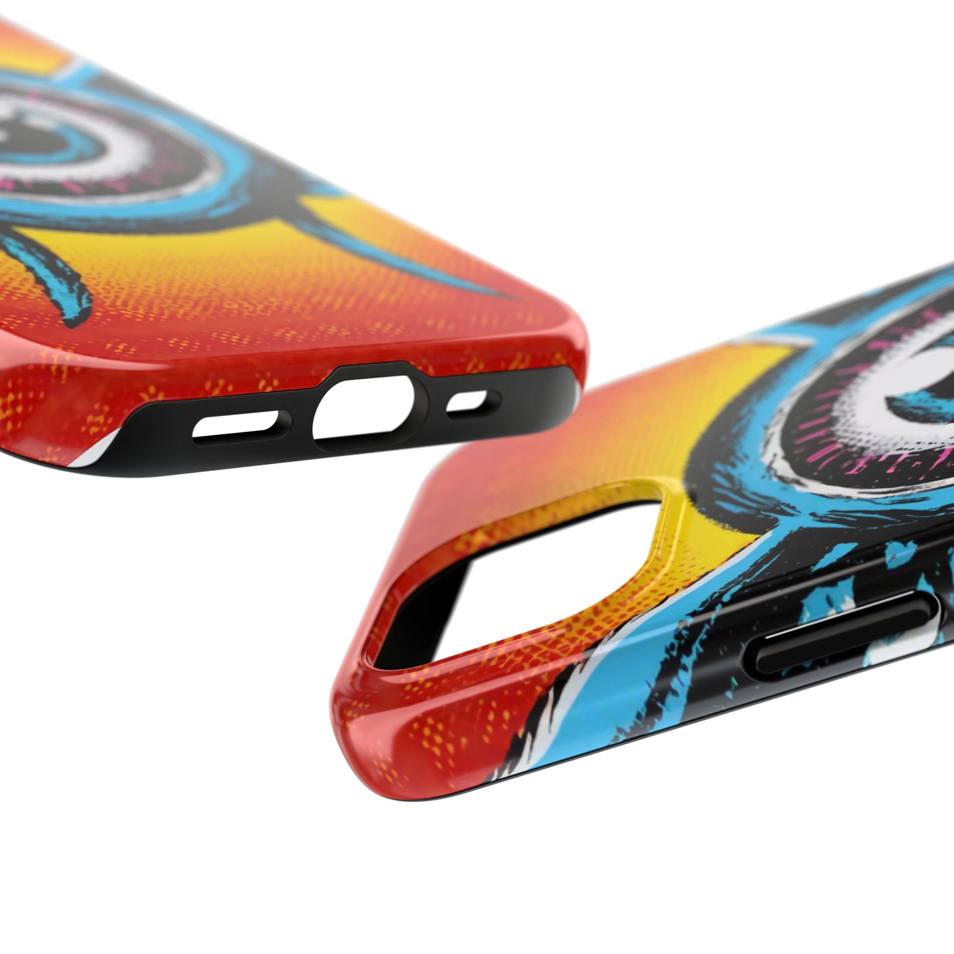 Add a burst of artistic flair to your iPhone with the "Bursting Vision Winged Eye iPhone Case." Featuring a blue eyeball surrounded by a pink outer rim, blue eyelids, and vibrant blue wings, this pop art design radiates energy. The yellow circular burst and orange background, enhanced with halftone textures, create a dazzling and dynamic visual that commands attention.Vivid Pop Art Design: Bold colors and retro halftones come together for a standout aesthetic.Durable Protection: Built tough to safeguard your iPhone against drops, scratches, and impacts.Perfect Fit: Crafted for iPhone models, ensuring easy access to buttons and wireless charging capability.Embrace vibrant creativity with the "Bursting Vision Winged Eye iPhone Case" and protect your phone in style!