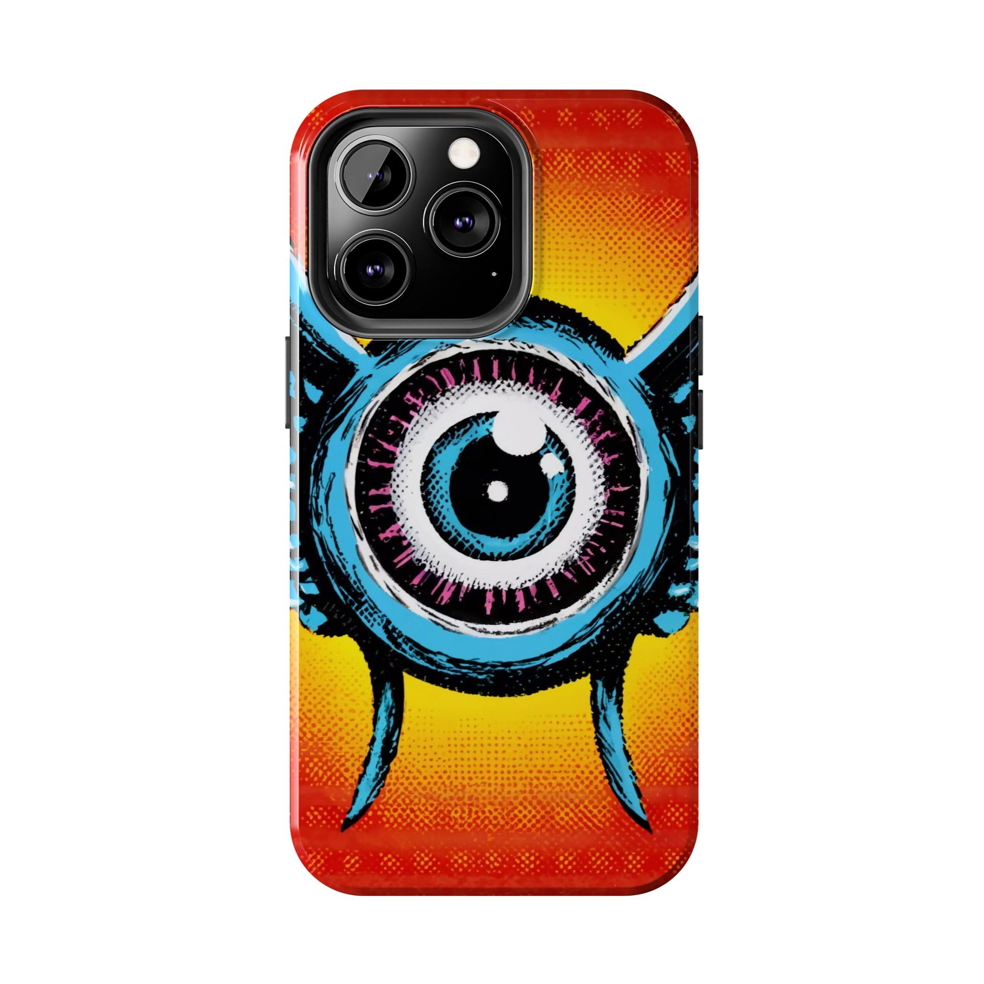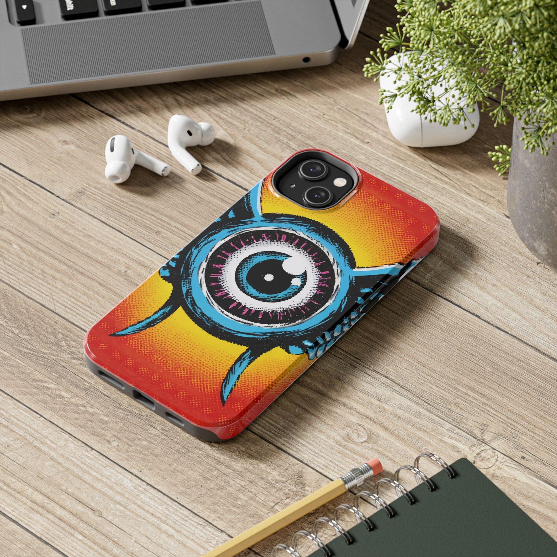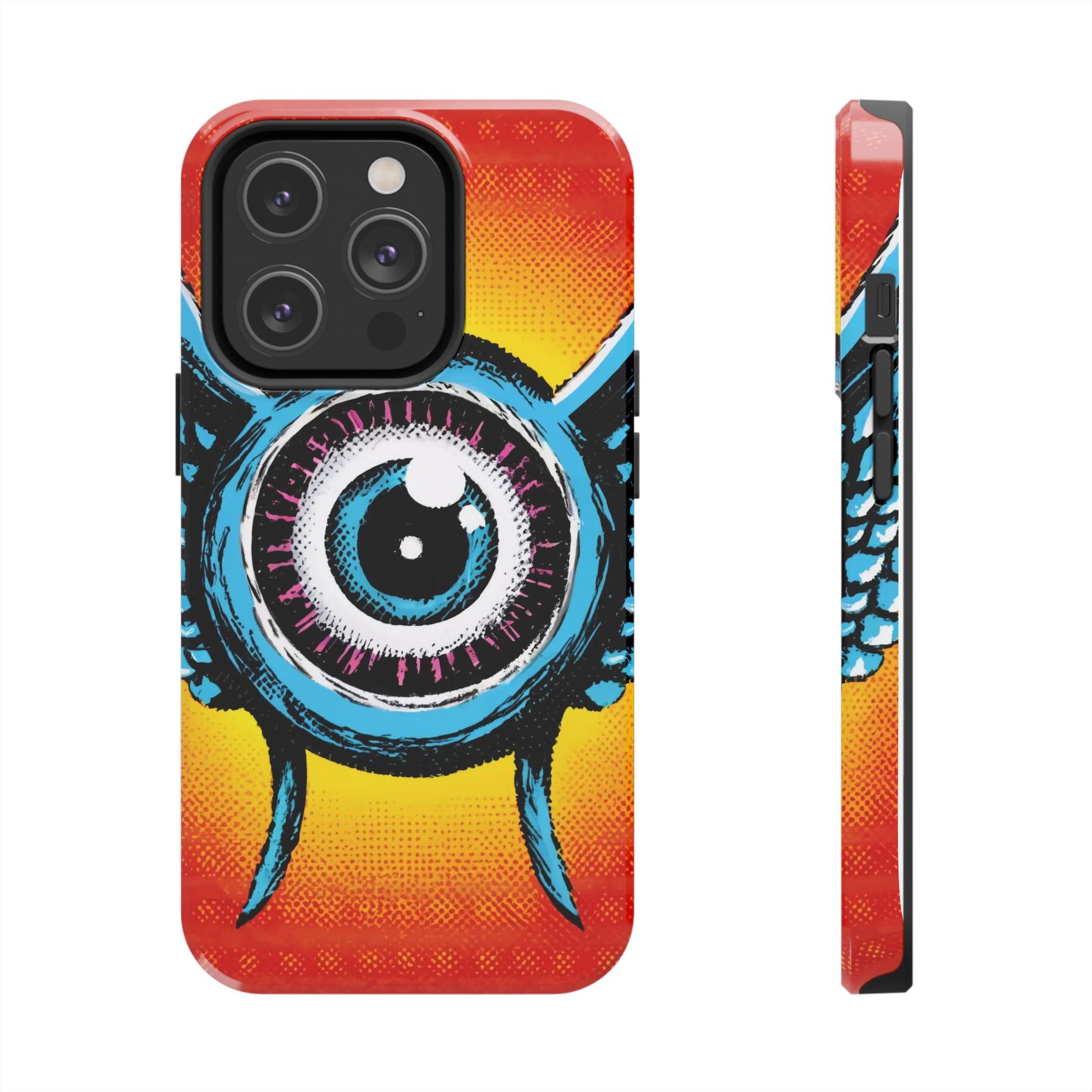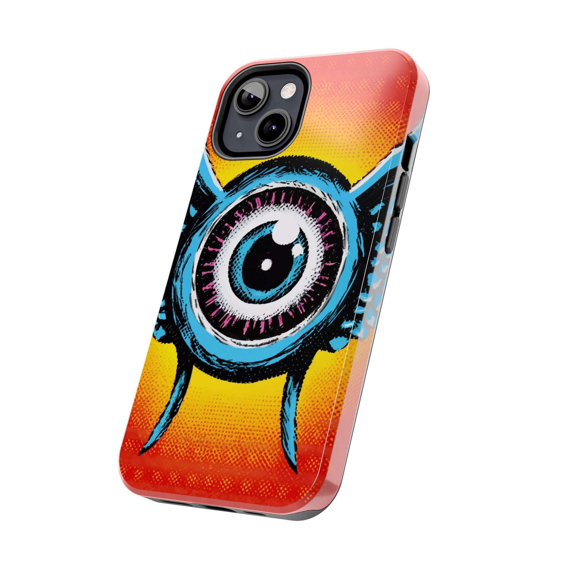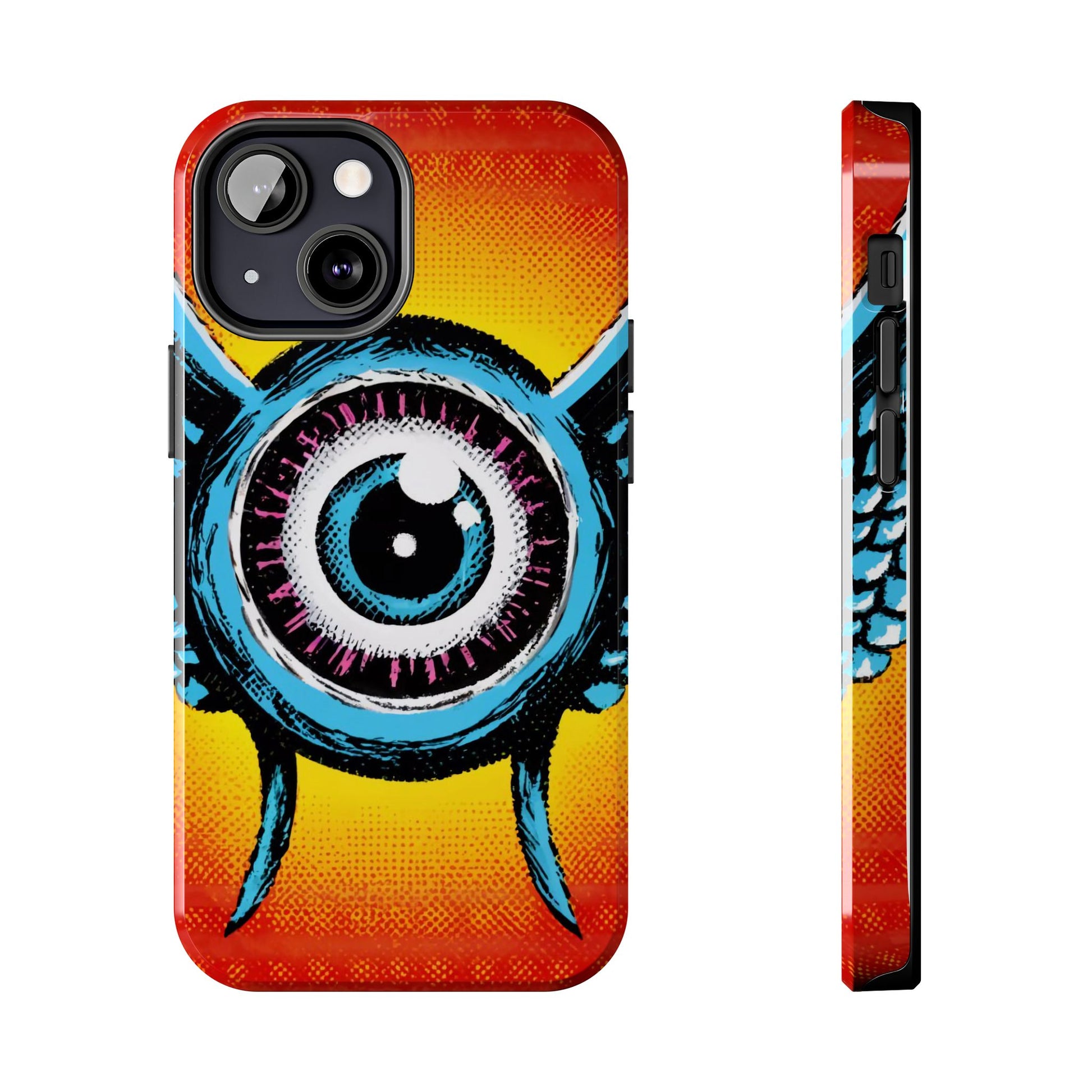 Add a burst of artistic flair to your iPhone with the "Bursting Vision Winged Eye iPhone Case." Featuring a blue eyeball surrounded by a pink outer rim, blue eyelids, and vibrant blue wings, this pop art design radiates energy. The yellow circular burst and orange background, enhanced with halftone textures, create a dazzling and dynamic visual that commands attention.Vivid Pop Art Design: Bold colors and retro halftones come together for a standout aesthetic.Durable Protection: Built tough to safeguard your iPhone against drops, scratches, and impacts.Perfect Fit: Crafted for iPhone models, ensuring easy access to buttons and wireless charging capability.Embrace vibrant creativity with the "Bursting Vision Winged Eye iPhone Case" and protect your phone in style!
