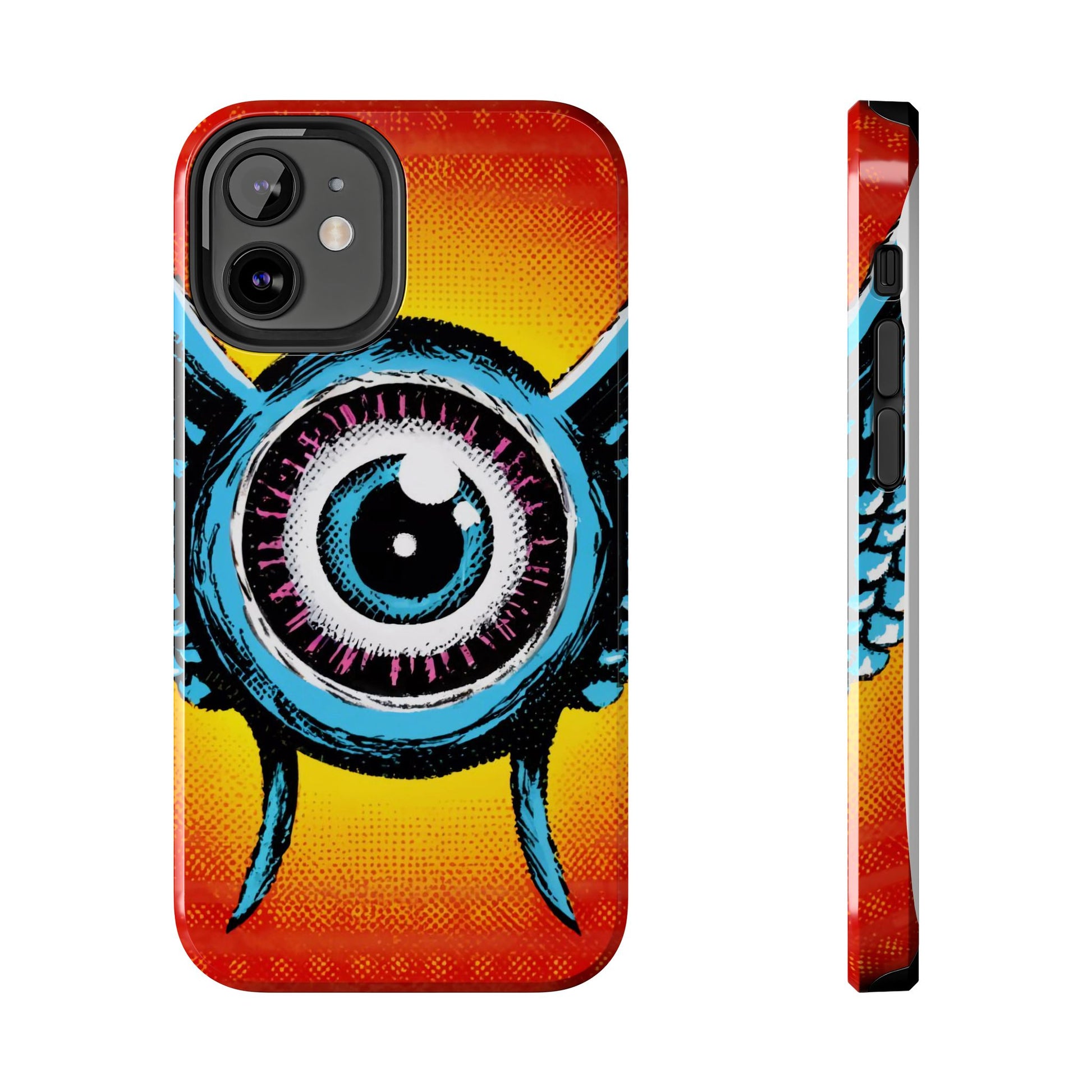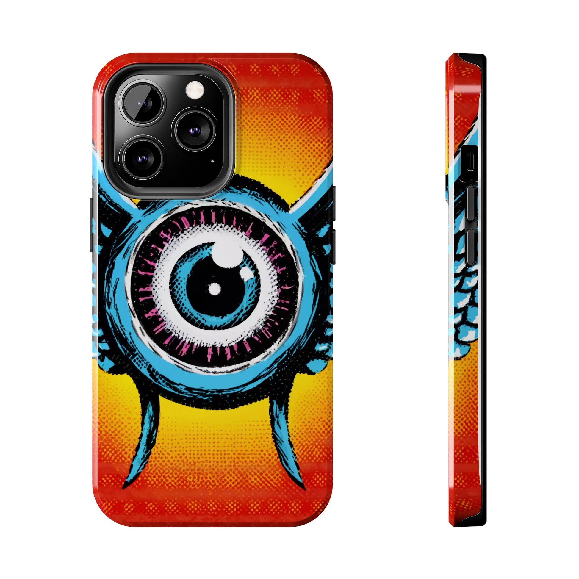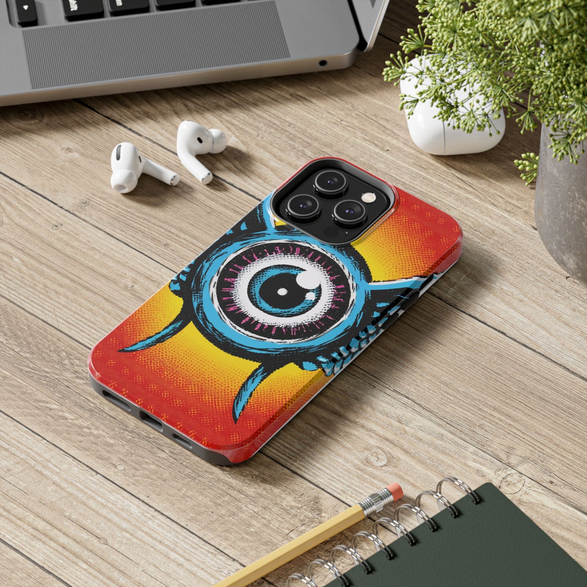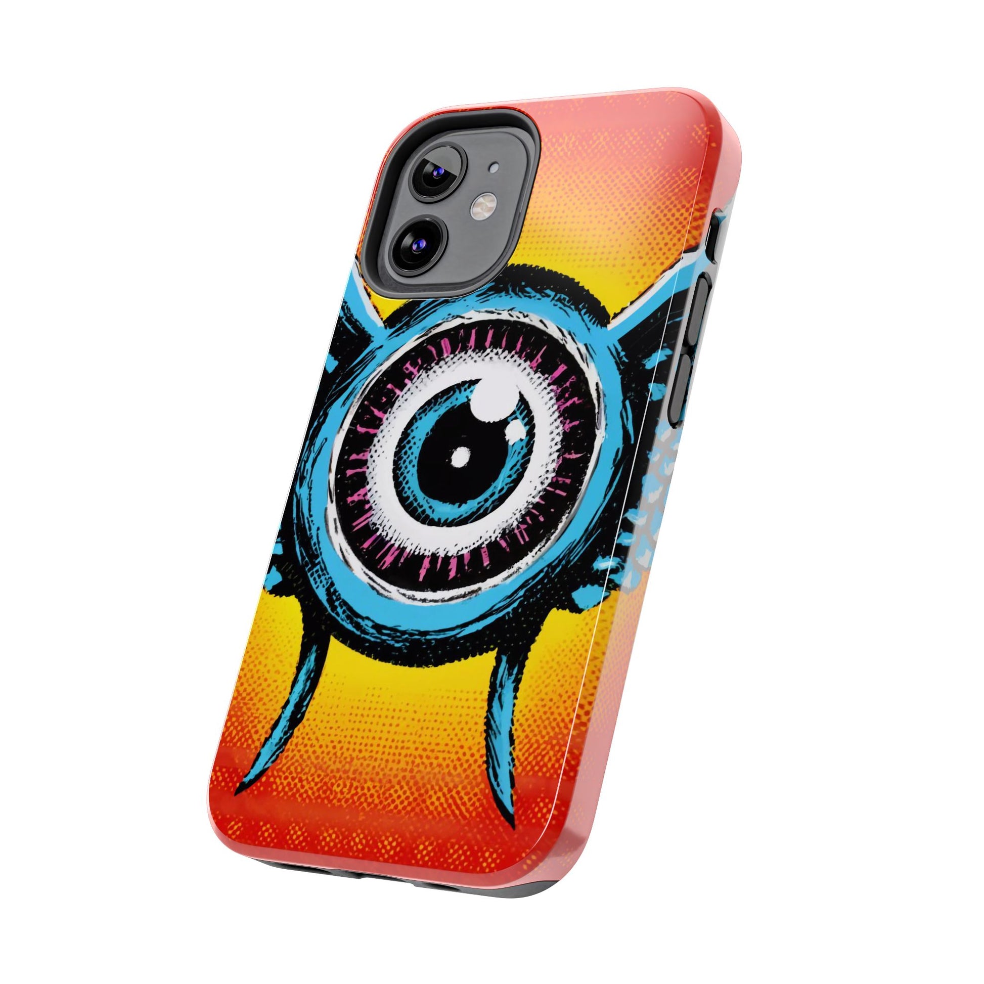 Add a burst of artistic flair to your iPhone with the "Bursting Vision Winged Eye iPhone Case." Featuring a blue eyeball surrounded by a pink outer rim, blue eyelids, and vibrant blue wings, this pop art design radiates energy. The yellow circular burst and orange background, enhanced with halftone textures, create a dazzling and dynamic visual that commands attention.Vivid Pop Art Design: Bold colors and retro halftones come together for a standout aesthetic.Durable Protection: Built tough to safeguard your iPhone against drops, scratches, and impacts.Perfect Fit: Crafted for iPhone models, ensuring easy access to buttons and wireless charging capability.Embrace vibrant creativity with the "Bursting Vision Winged Eye iPhone Case" and protect your phone in style!