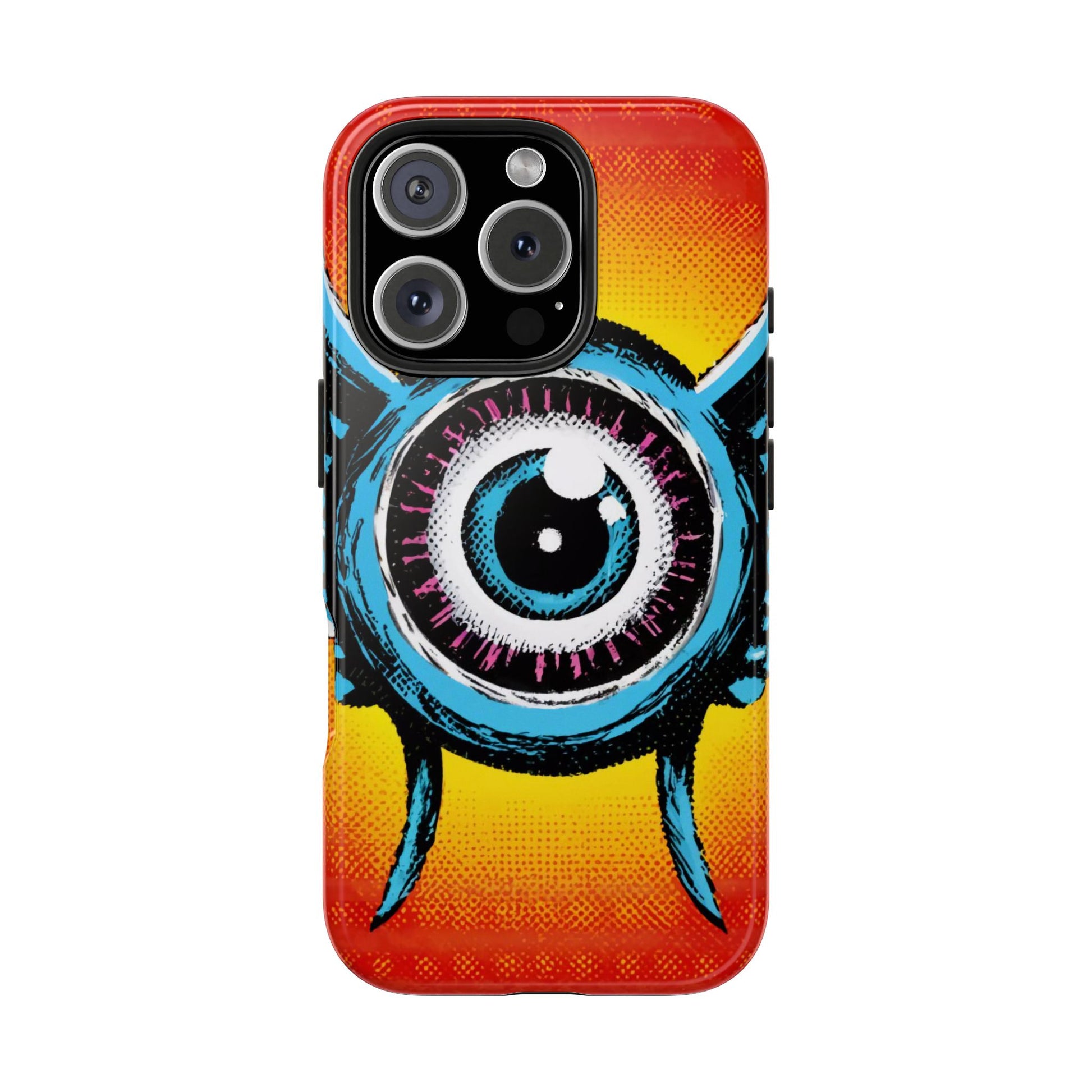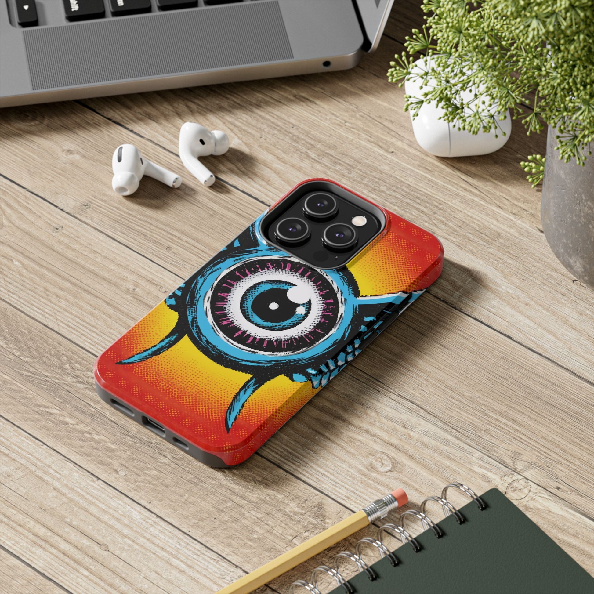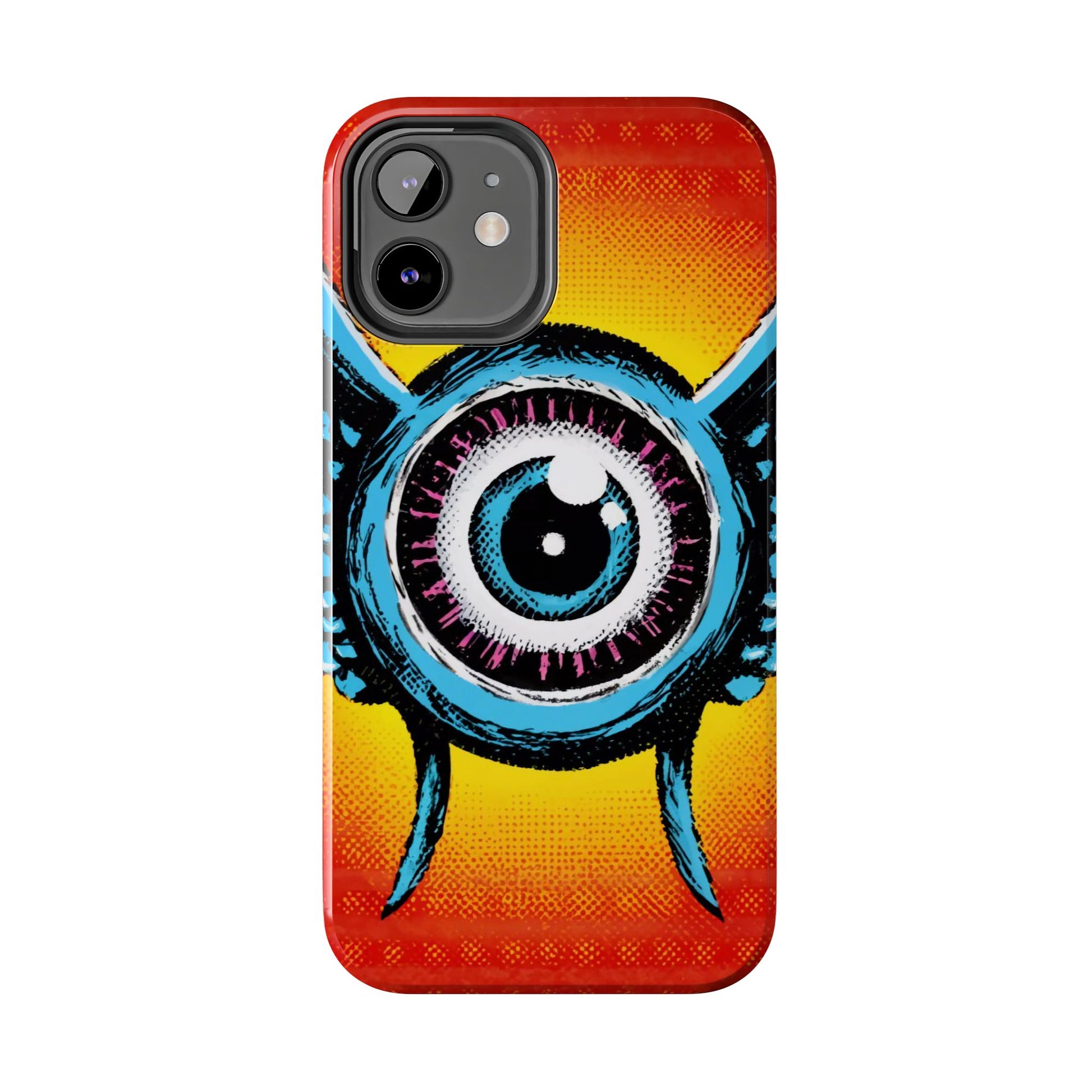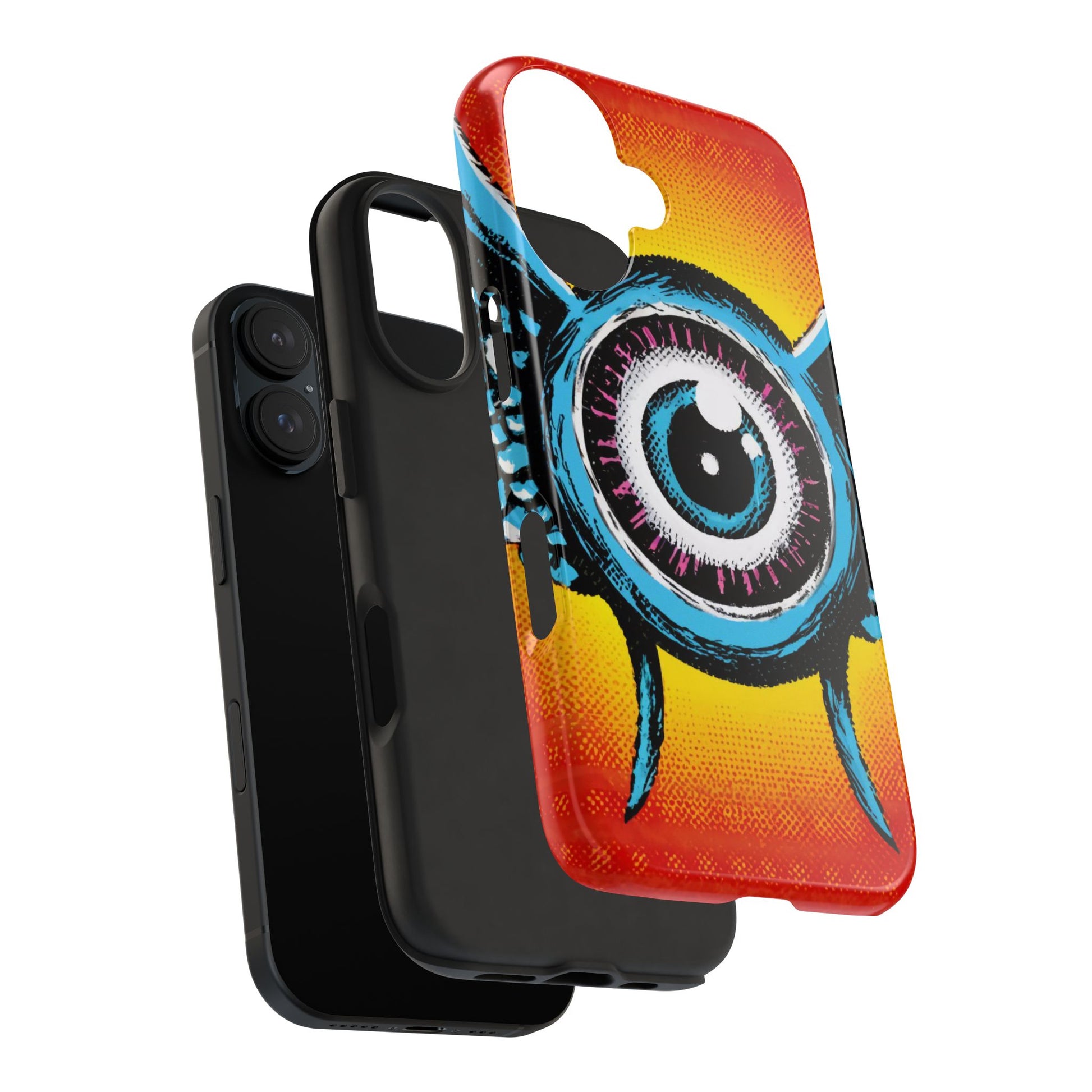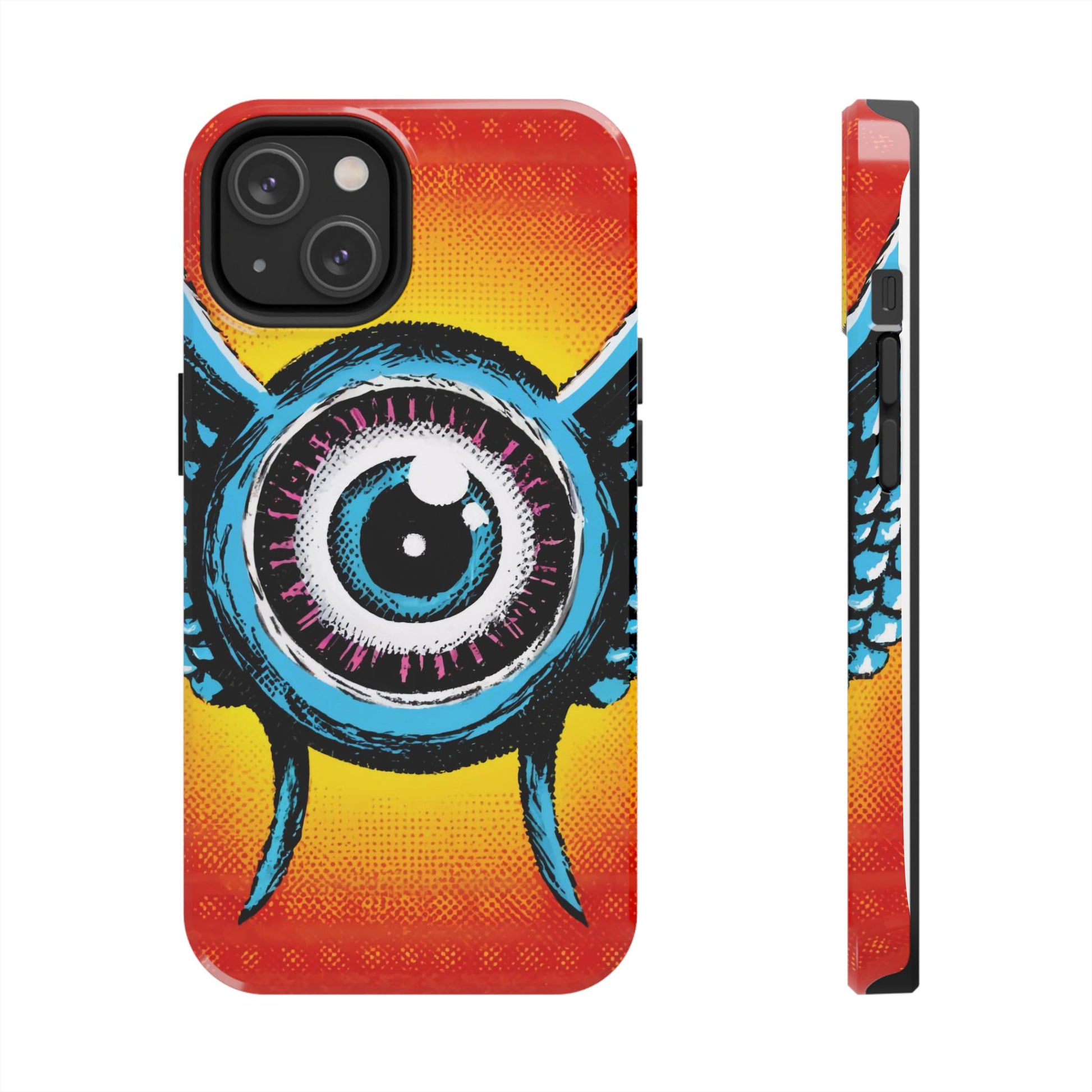 Add a burst of artistic flair to your iPhone with the "Bursting Vision Winged Eye iPhone Case." Featuring a blue eyeball surrounded by a pink outer rim, blue eyelids, and vibrant blue wings, this pop art design radiates energy. The yellow circular burst and orange background, enhanced with halftone textures, create a dazzling and dynamic visual that commands attention.Vivid Pop Art Design: Bold colors and retro halftones come together for a standout aesthetic.Durable Protection: Built tough to safeguard your iPhone against drops, scratches, and impacts.Perfect Fit: Crafted for iPhone models, ensuring easy access to buttons and wireless charging capability.Embrace vibrant creativity with the "Bursting Vision Winged Eye iPhone Case" and protect your phone in style!