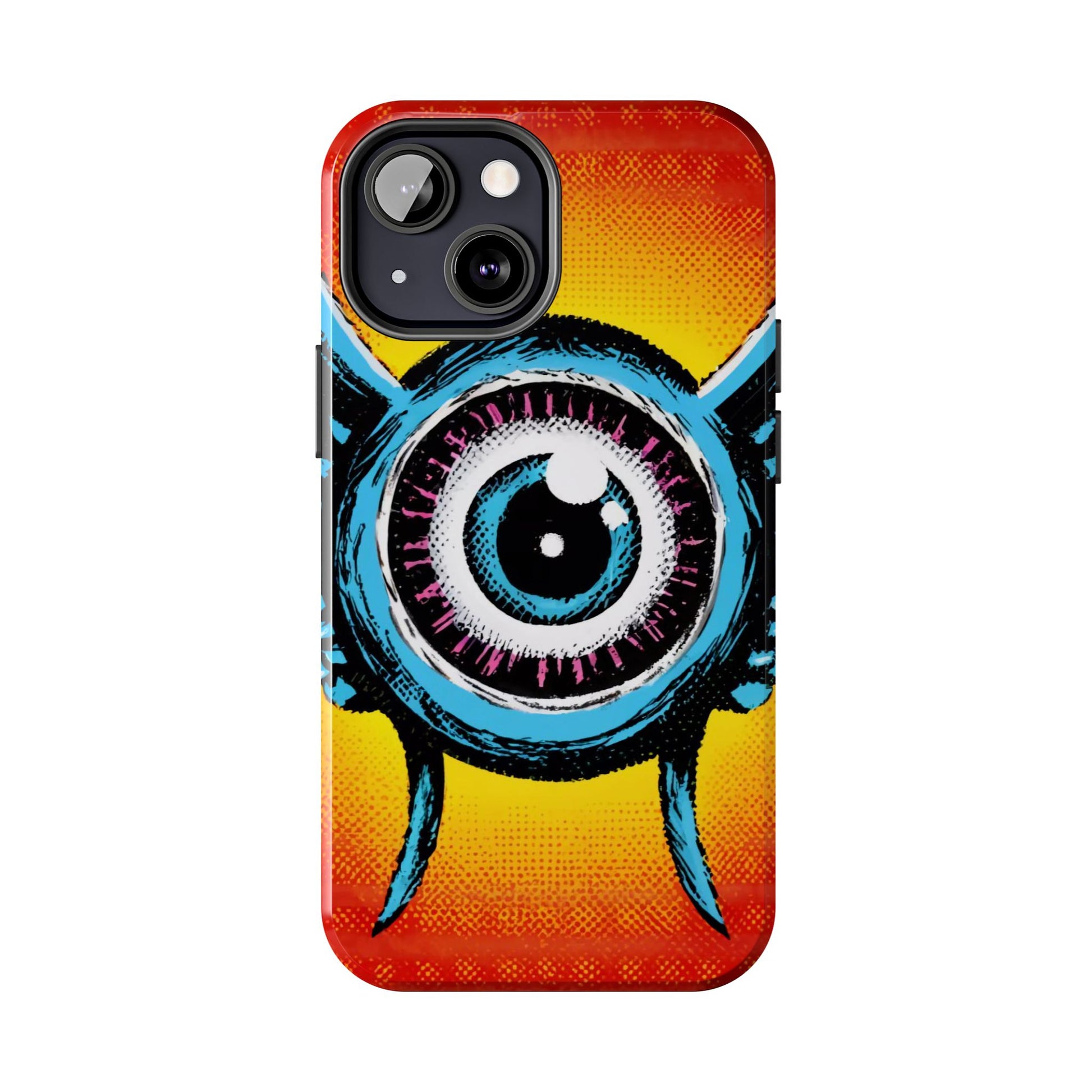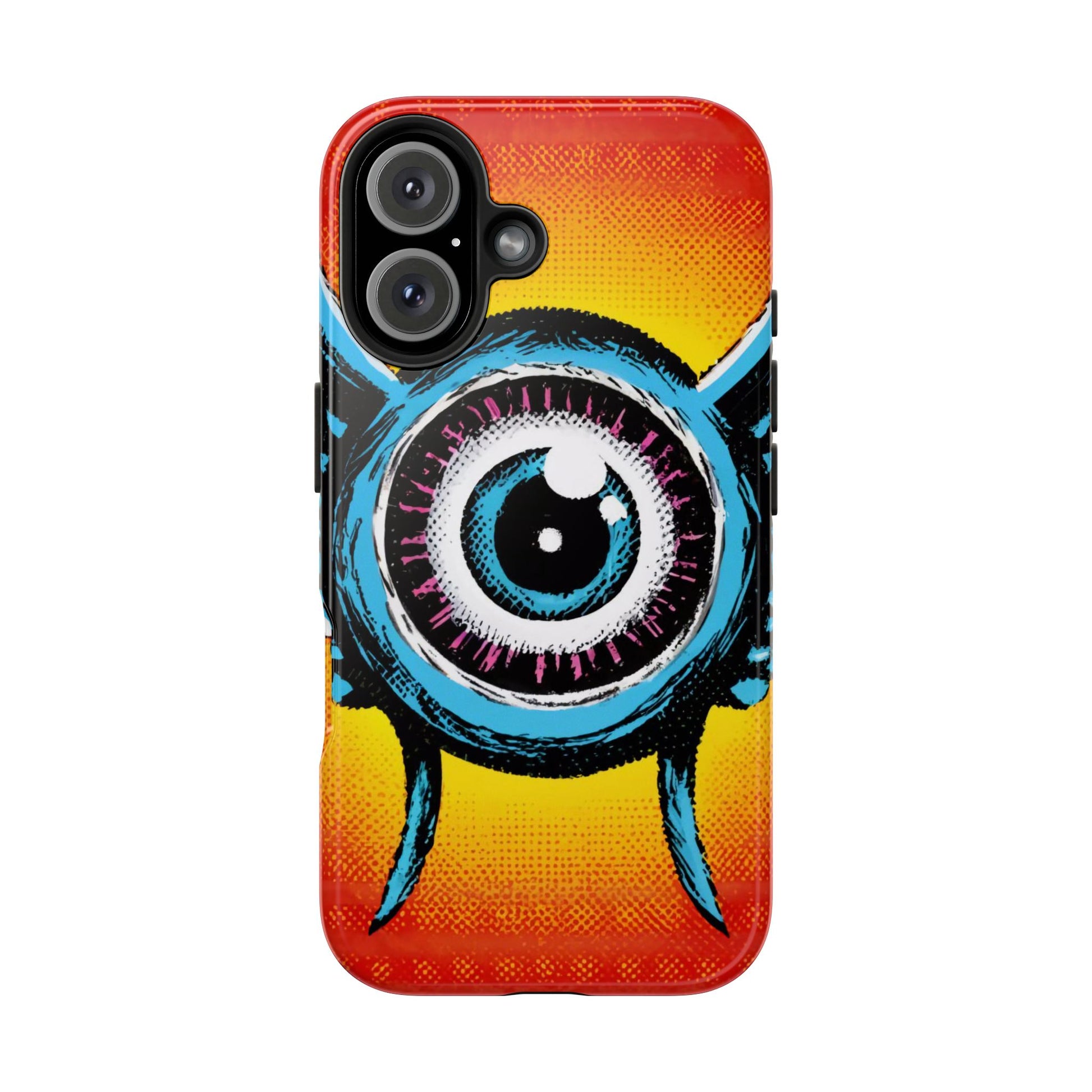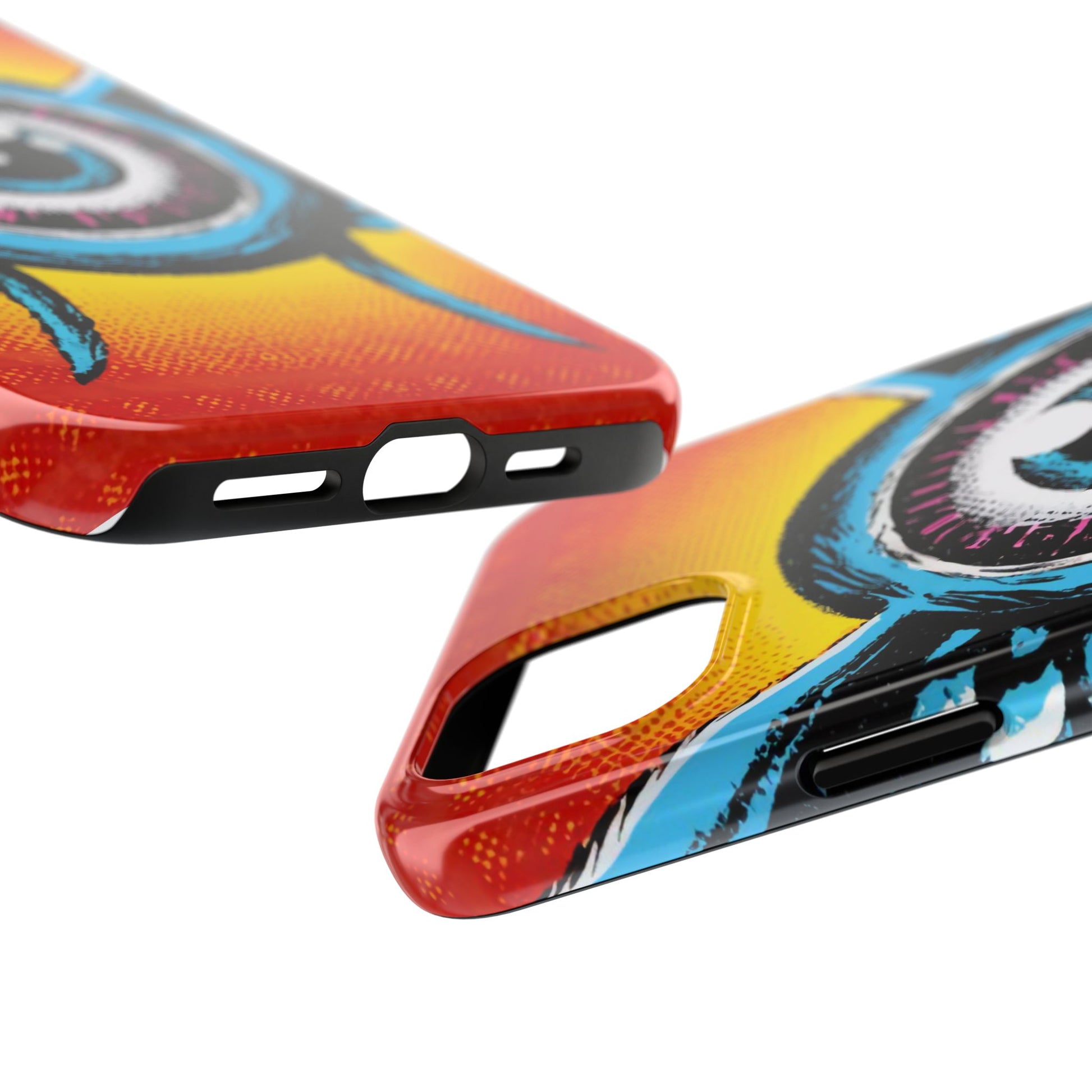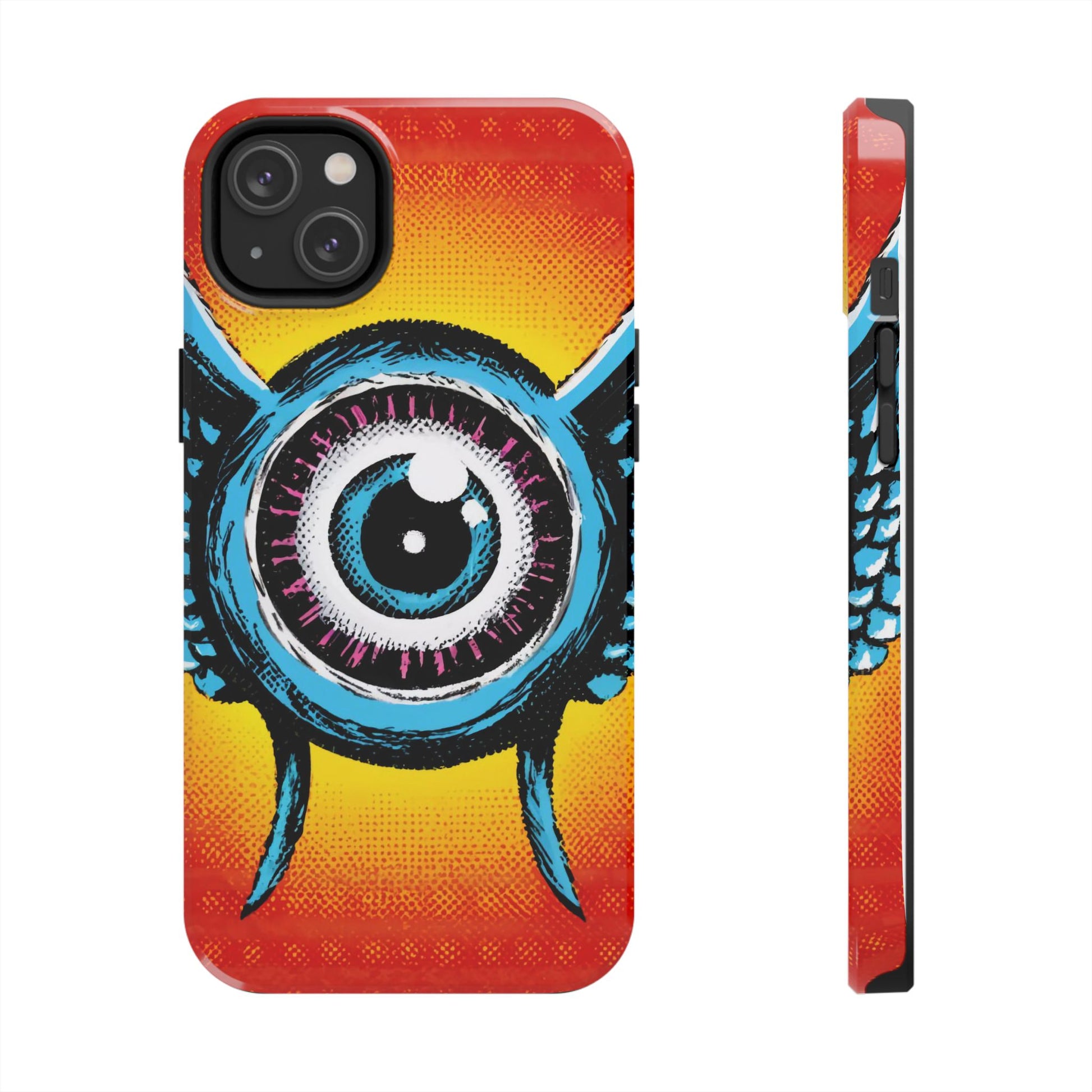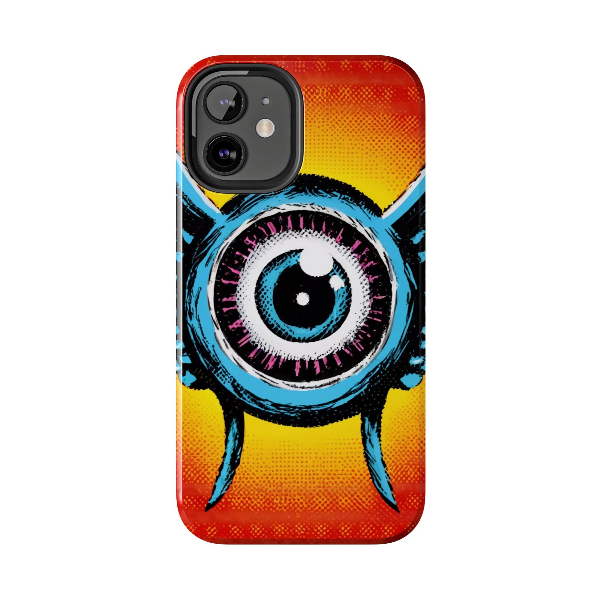 Add a burst of artistic flair to your iPhone with the "Bursting Vision Winged Eye iPhone Case." Featuring a blue eyeball surrounded by a pink outer rim, blue eyelids, and vibrant blue wings, this pop art design radiates energy. The yellow circular burst and orange background, enhanced with halftone textures, create a dazzling and dynamic visual that commands attention.Vivid Pop Art Design: Bold colors and retro halftones come together for a standout aesthetic.Durable Protection: Built tough to safeguard your iPhone against drops, scratches, and impacts.Perfect Fit: Crafted for iPhone models, ensuring easy access to buttons and wireless charging capability.Embrace vibrant creativity with the "Bursting Vision Winged Eye iPhone Case" and protect your phone in style!