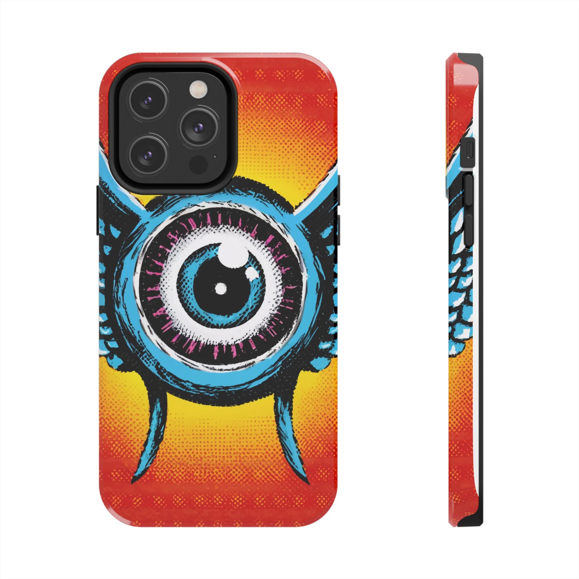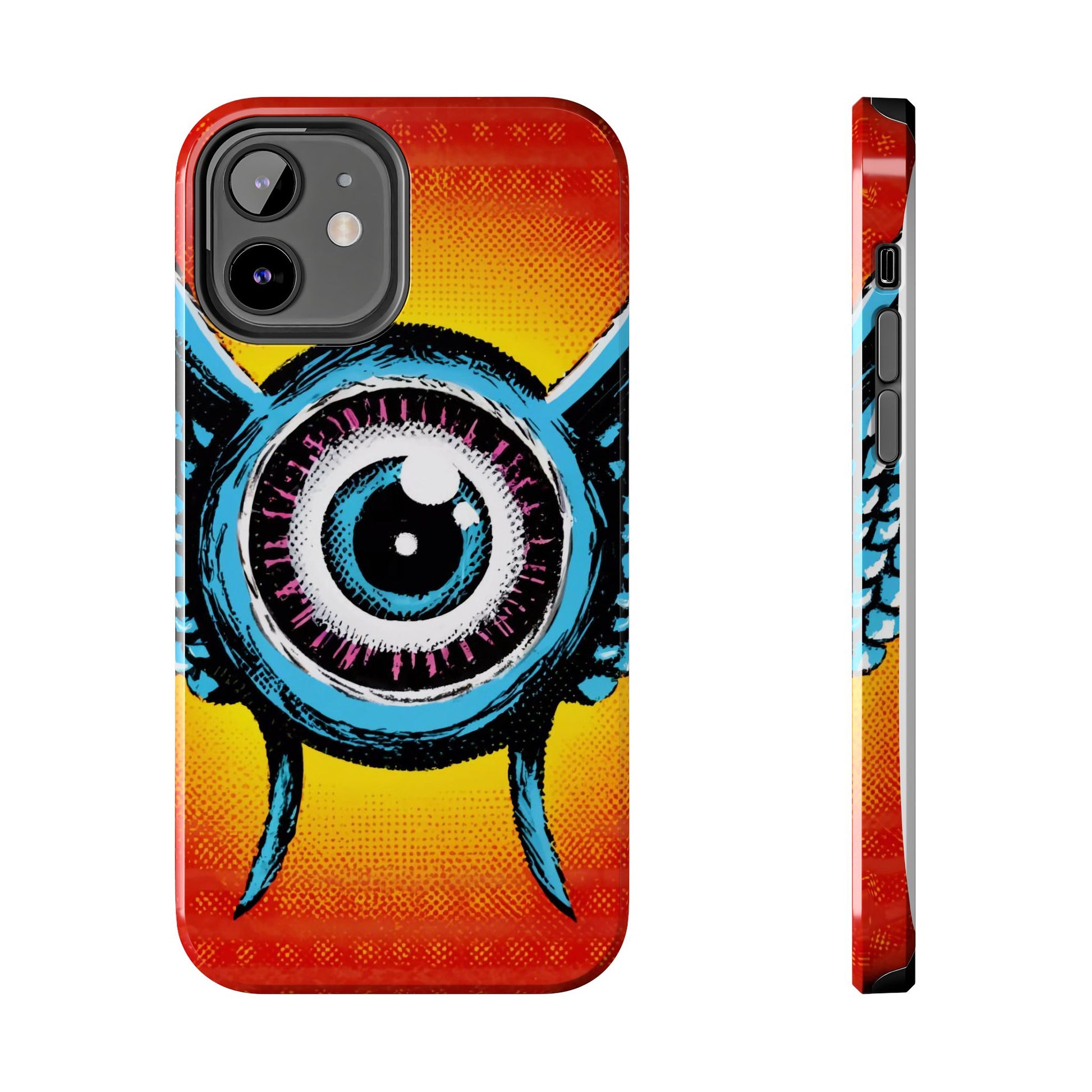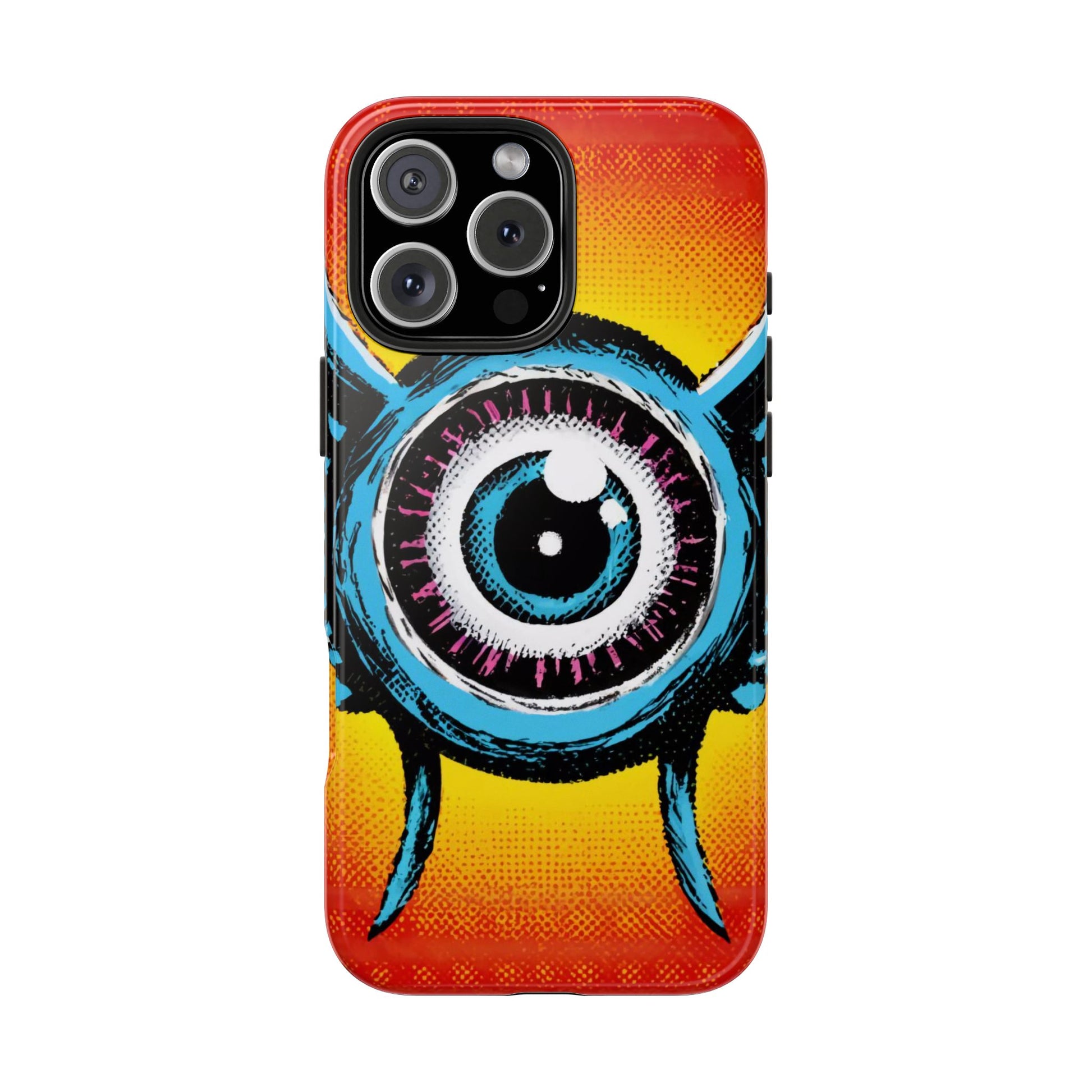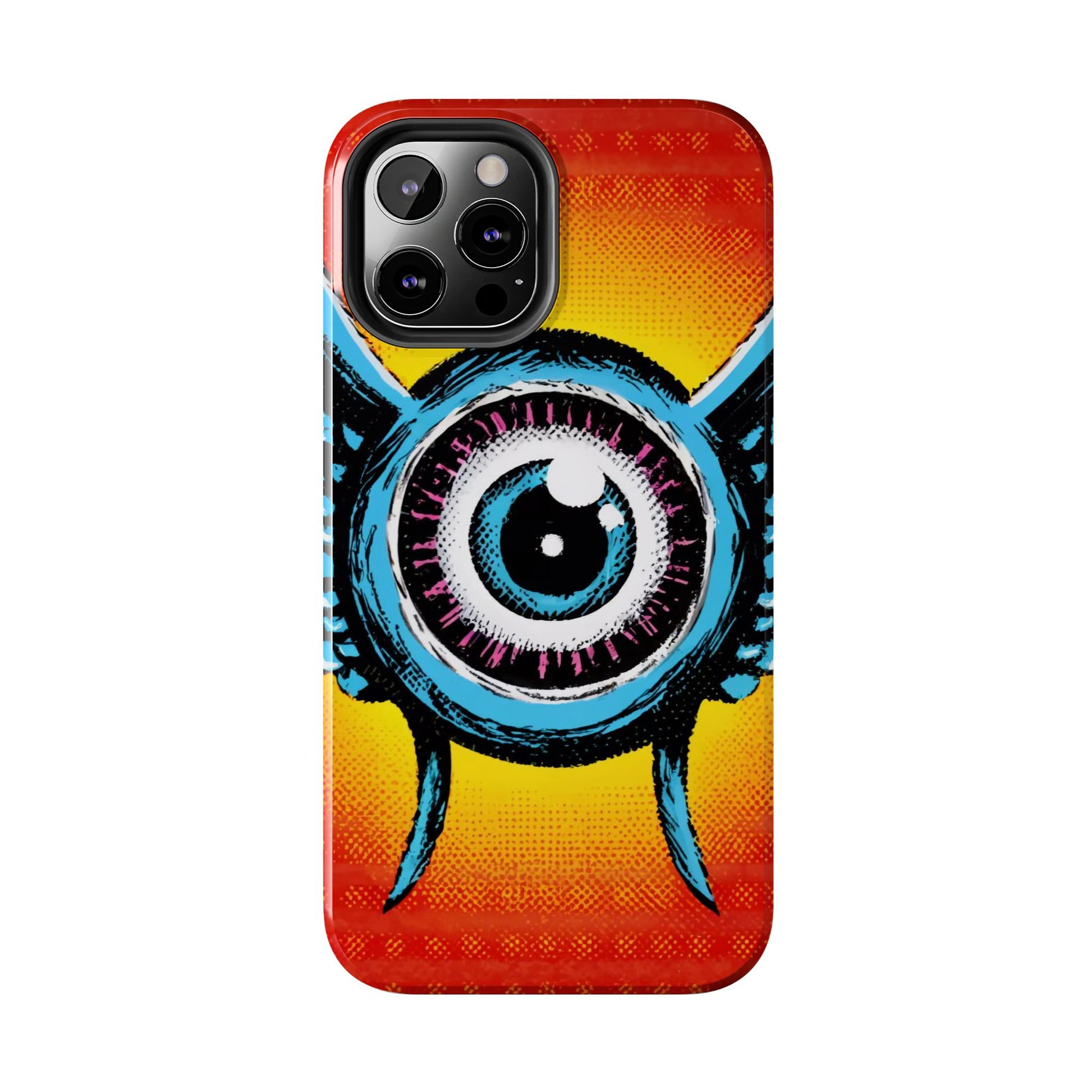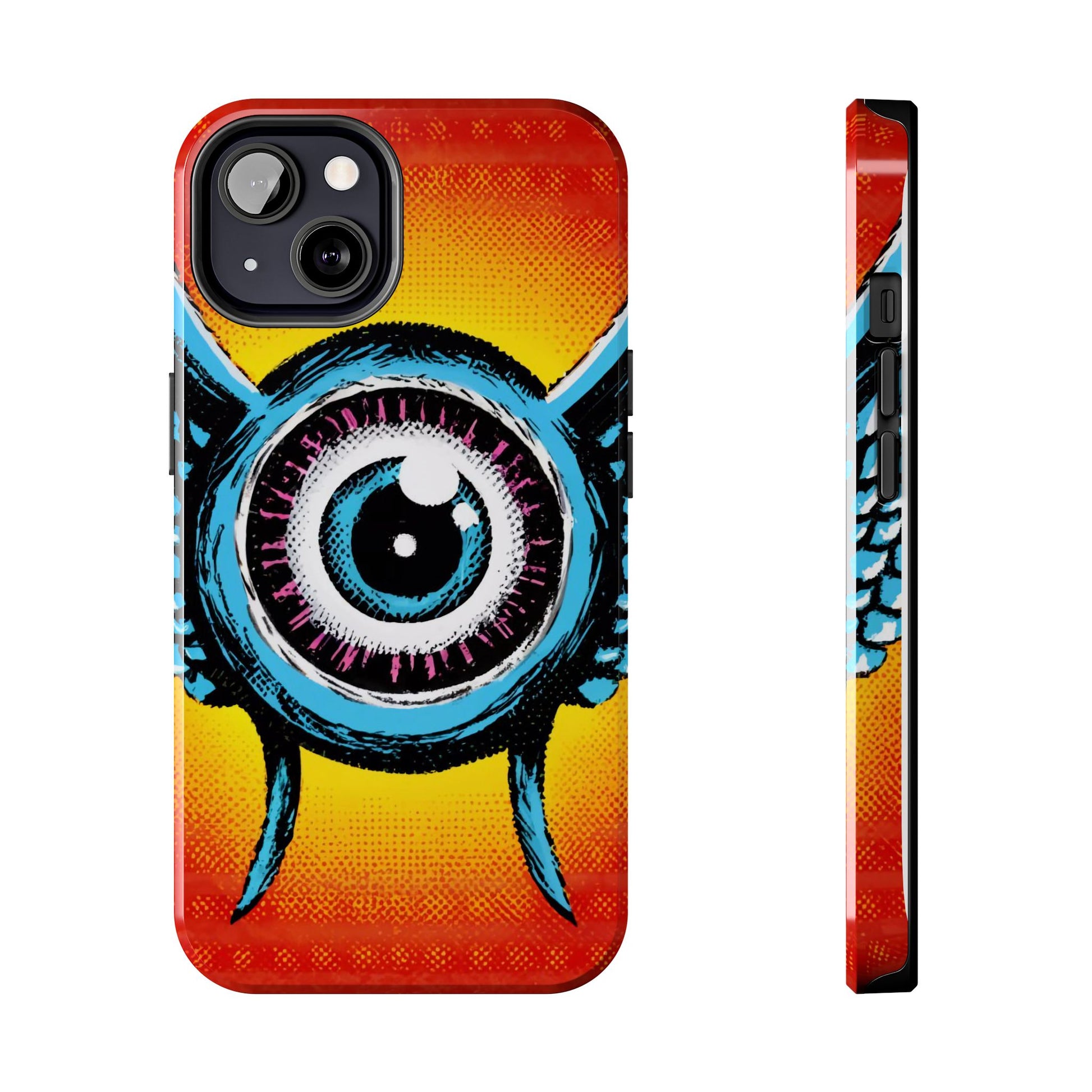 Add a burst of artistic flair to your iPhone with the "Bursting Vision Winged Eye iPhone Case." Featuring a blue eyeball surrounded by a pink outer rim, blue eyelids, and vibrant blue wings, this pop art design radiates energy. The yellow circular burst and orange background, enhanced with halftone textures, create a dazzling and dynamic visual that commands attention.Vivid Pop Art Design: Bold colors and retro halftones come together for a standout aesthetic.Durable Protection: Built tough to safeguard your iPhone against drops, scratches, and impacts.Perfect Fit: Crafted for iPhone models, ensuring easy access to buttons and wireless charging capability.Embrace vibrant creativity with the "Bursting Vision Winged Eye iPhone Case" and protect your phone in style!