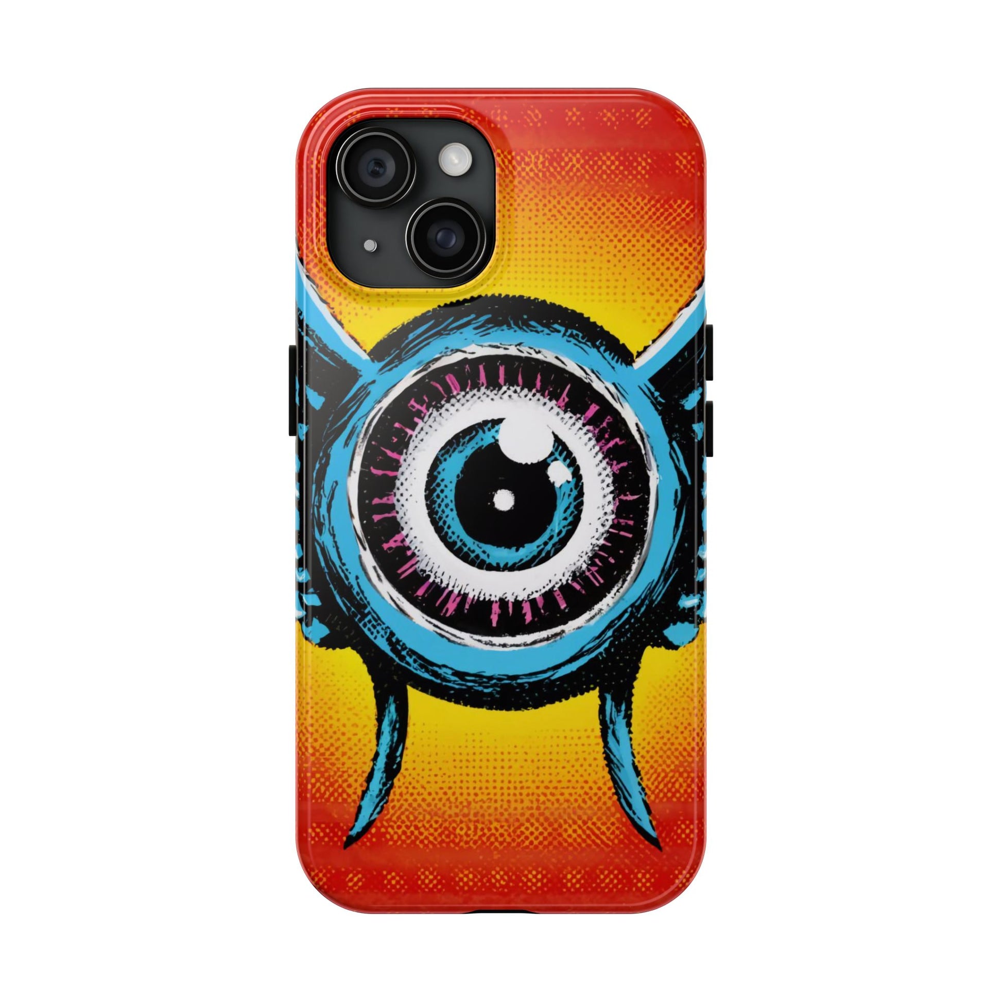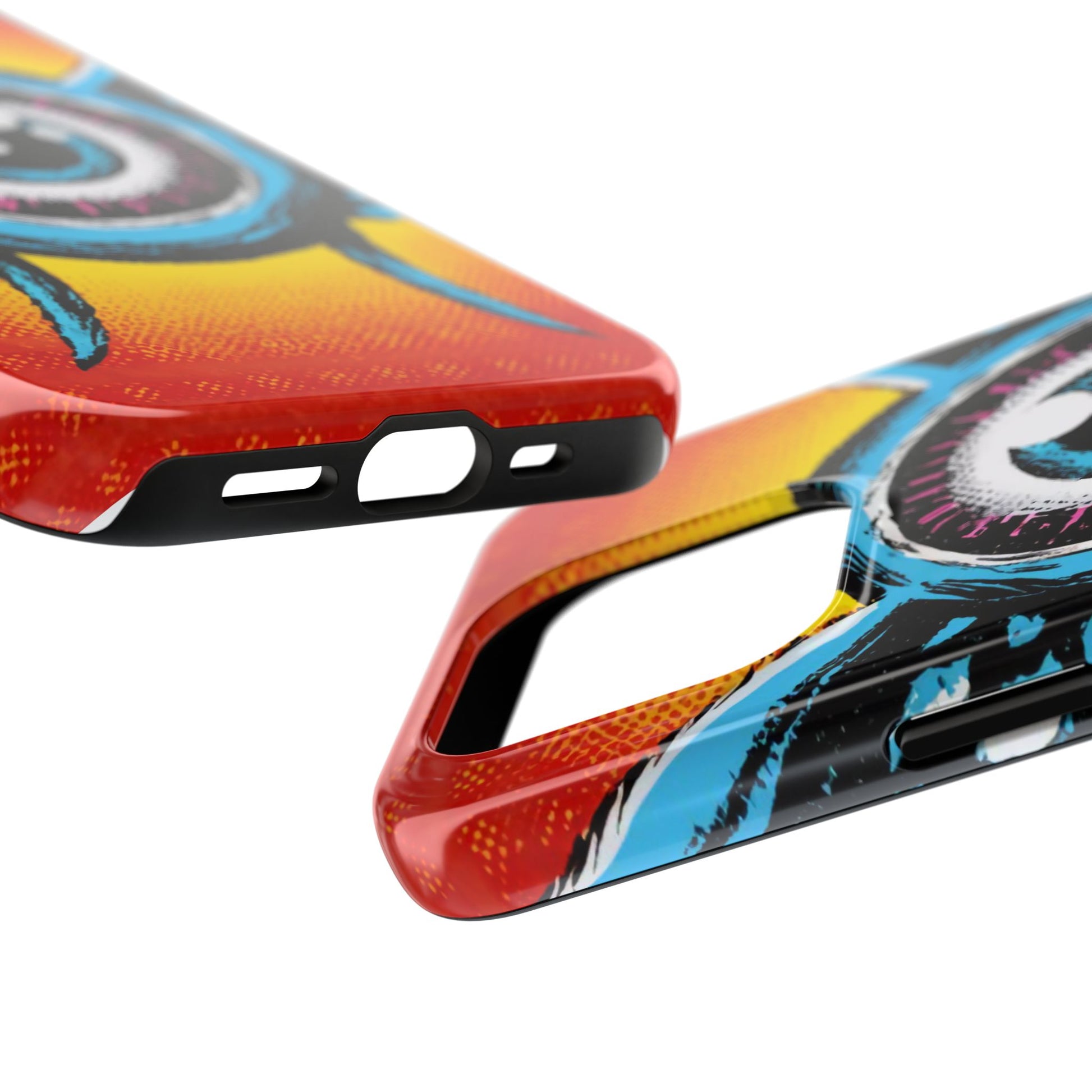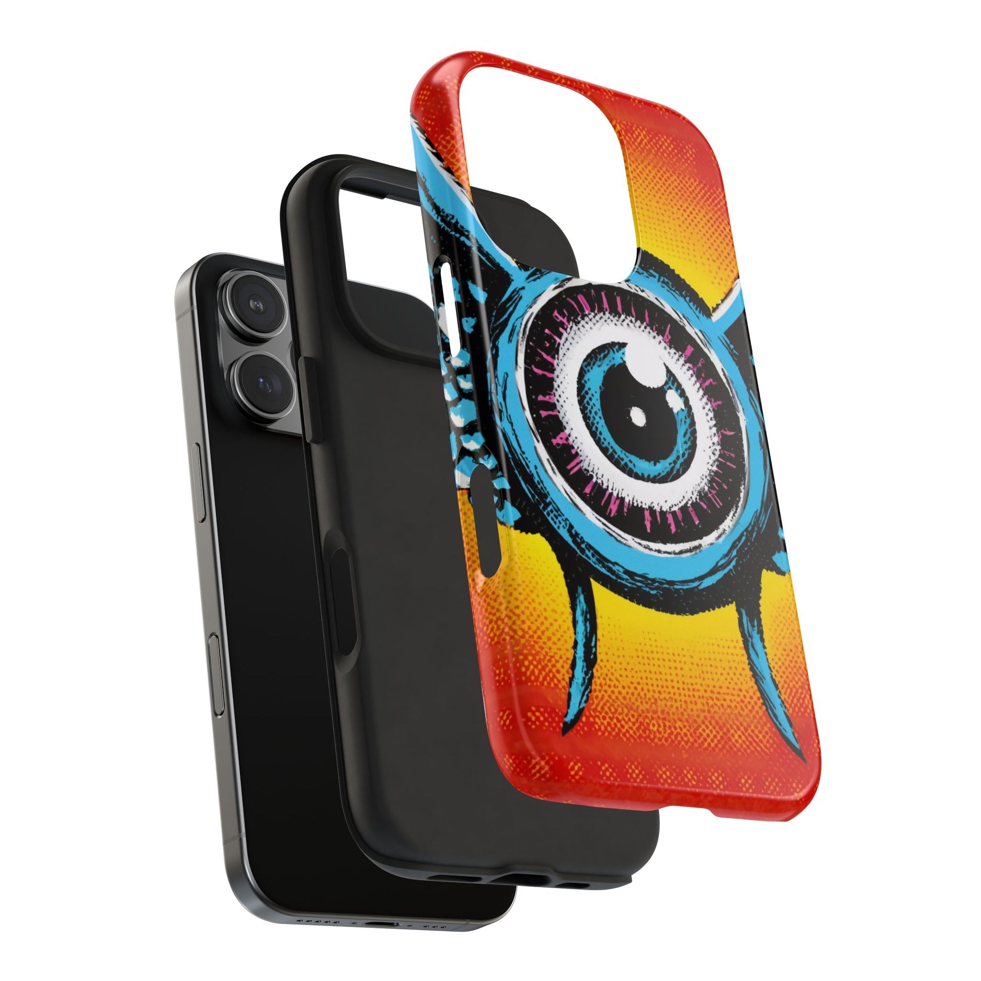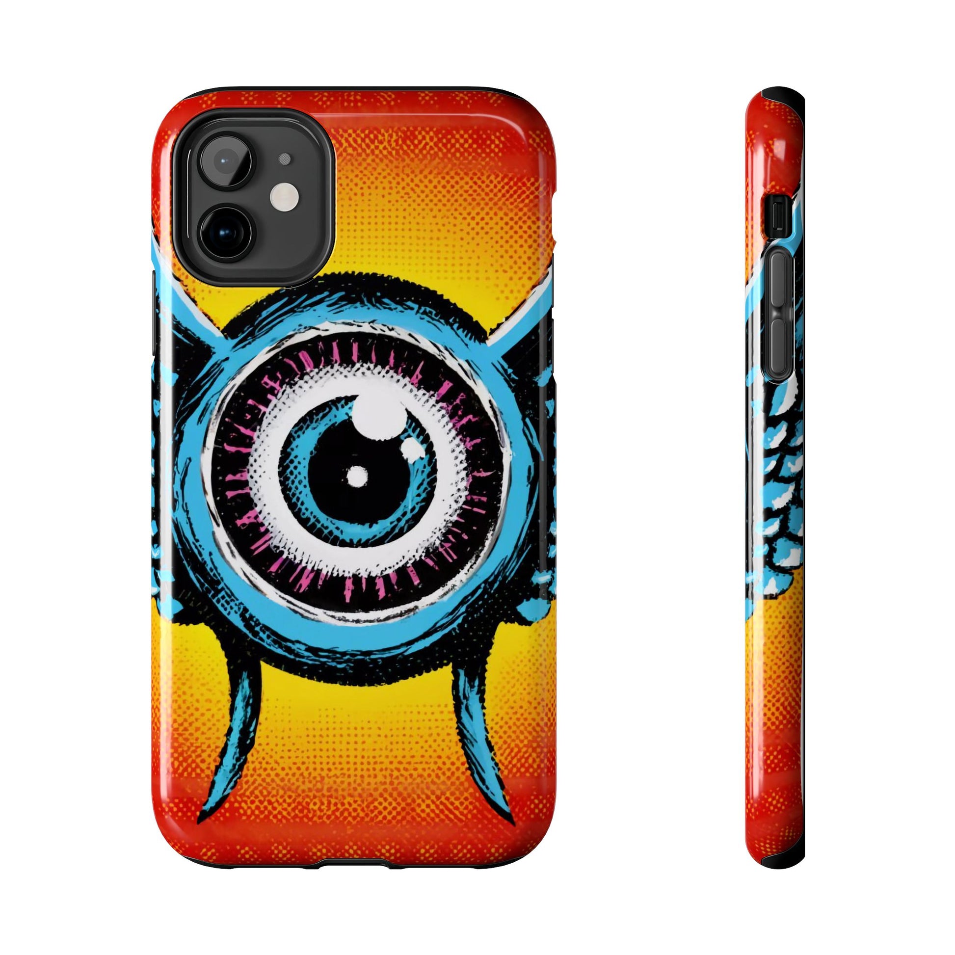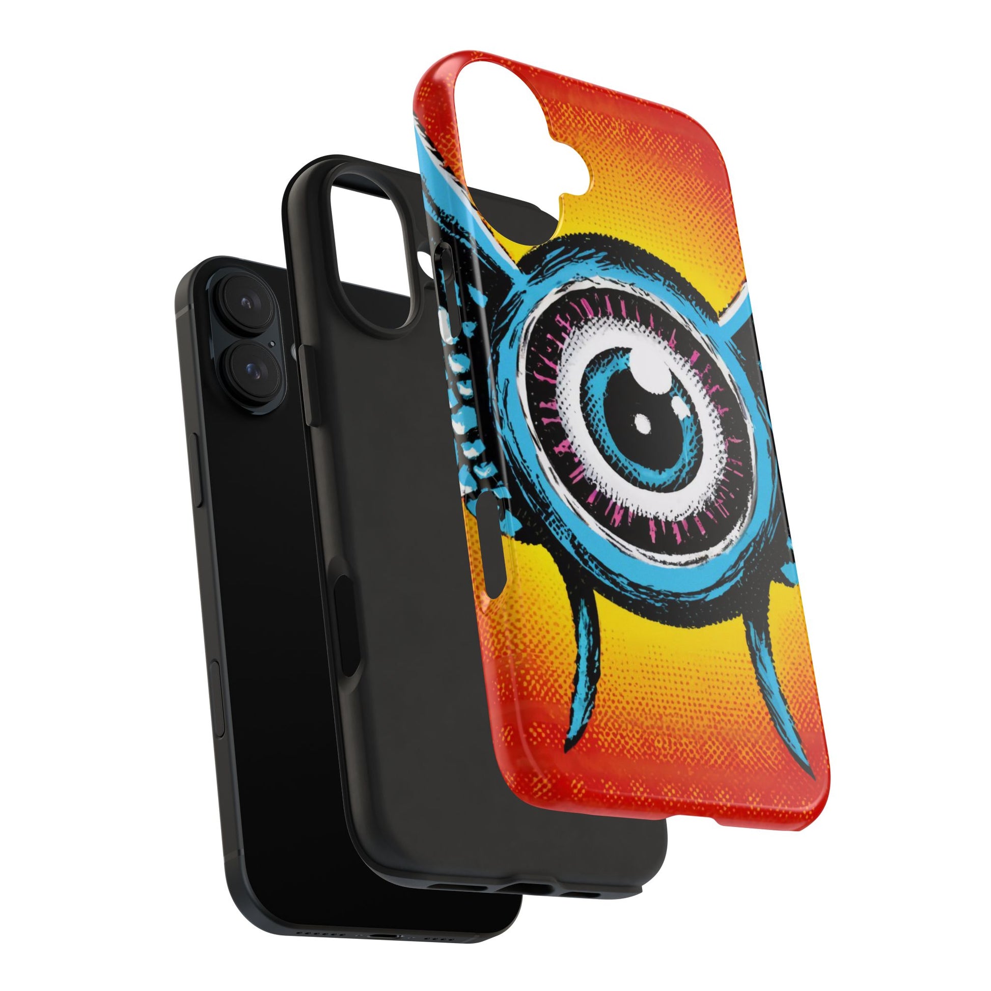 Add a burst of artistic flair to your iPhone with the "Bursting Vision Winged Eye iPhone Case." Featuring a blue eyeball surrounded by a pink outer rim, blue eyelids, and vibrant blue wings, this pop art design radiates energy. The yellow circular burst and orange background, enhanced with halftone textures, create a dazzling and dynamic visual that commands attention.Vivid Pop Art Design: Bold colors and retro halftones come together for a standout aesthetic.Durable Protection: Built tough to safeguard your iPhone against drops, scratches, and impacts.Perfect Fit: Crafted for iPhone models, ensuring easy access to buttons and wireless charging capability.Embrace vibrant creativity with the "Bursting Vision Winged Eye iPhone Case" and protect your phone in style!
