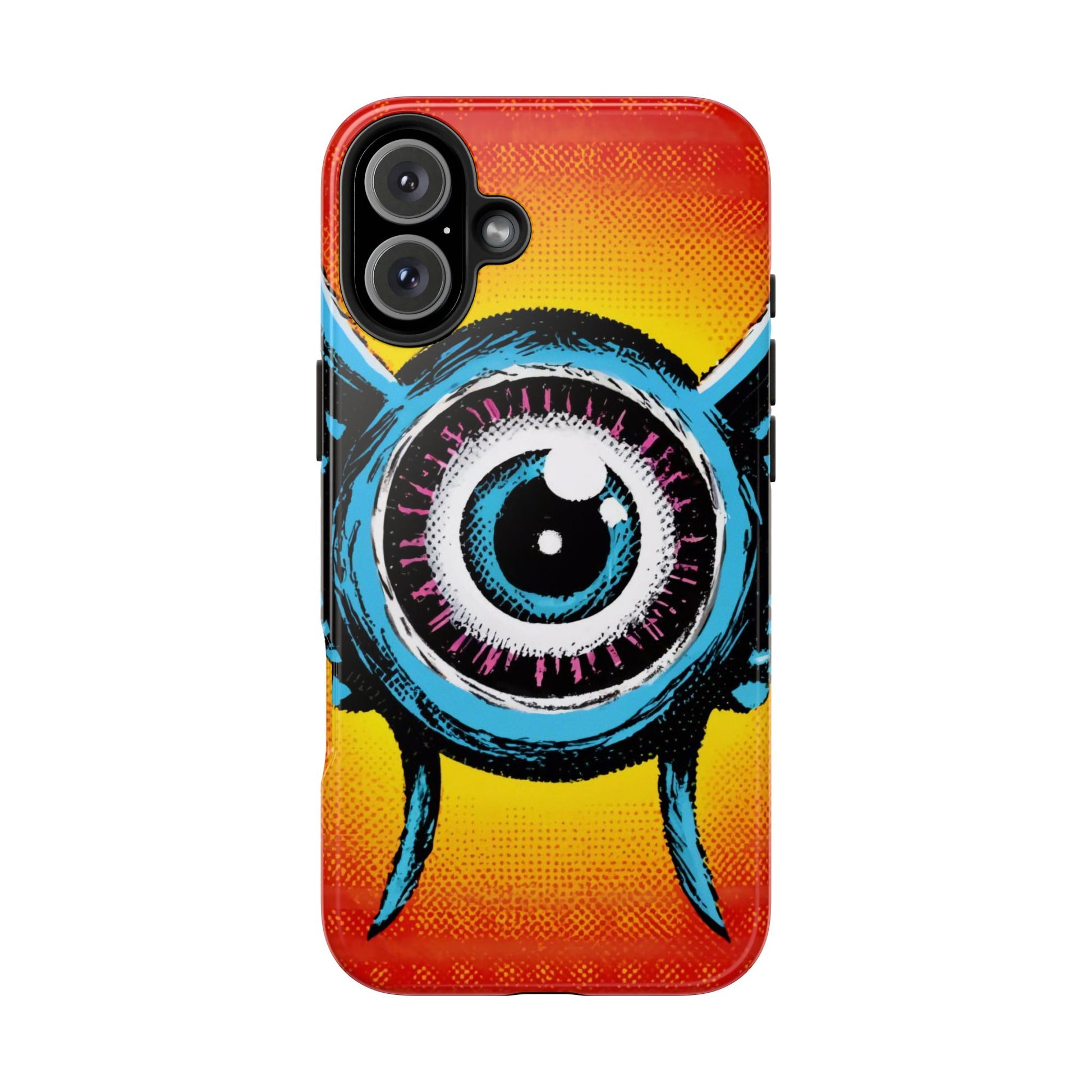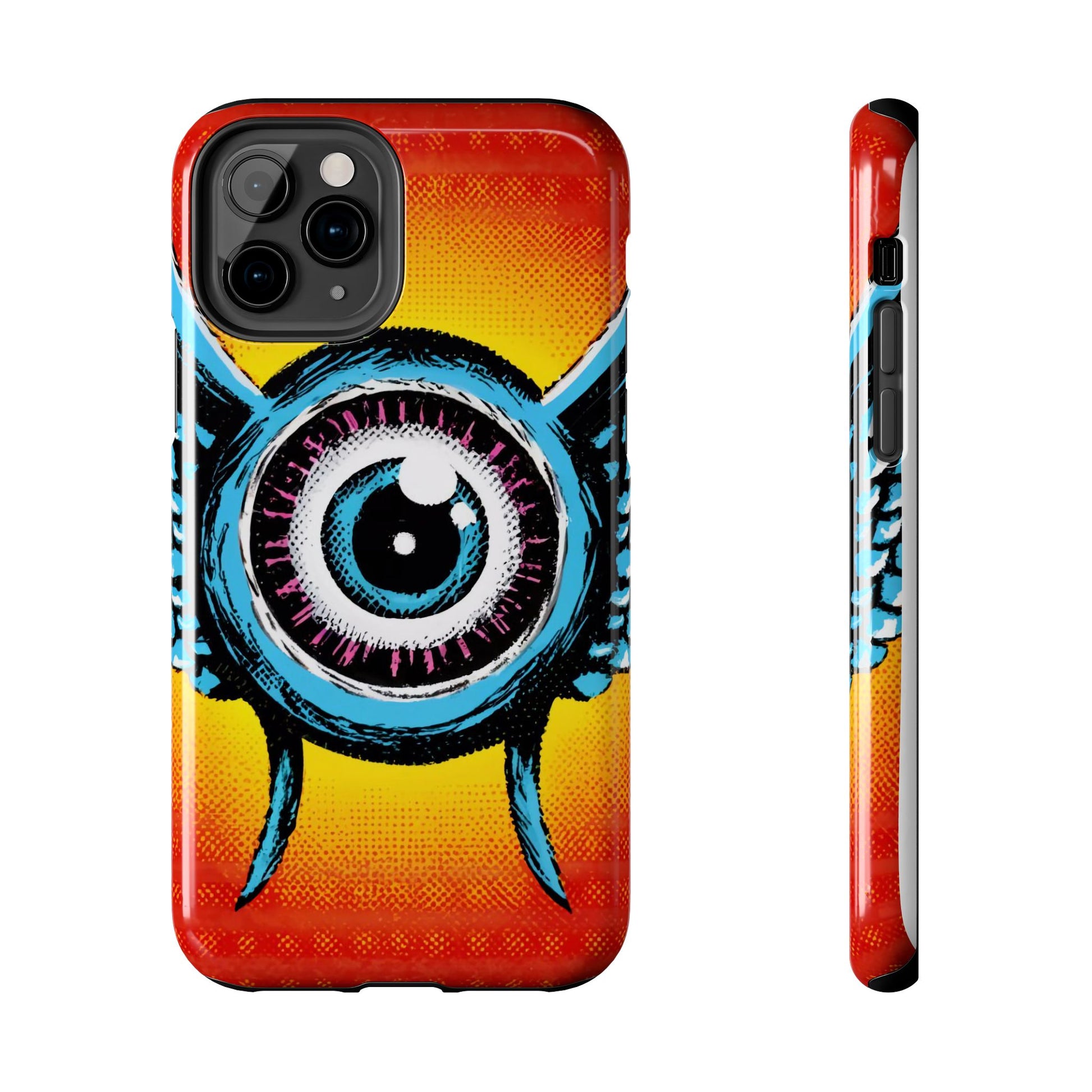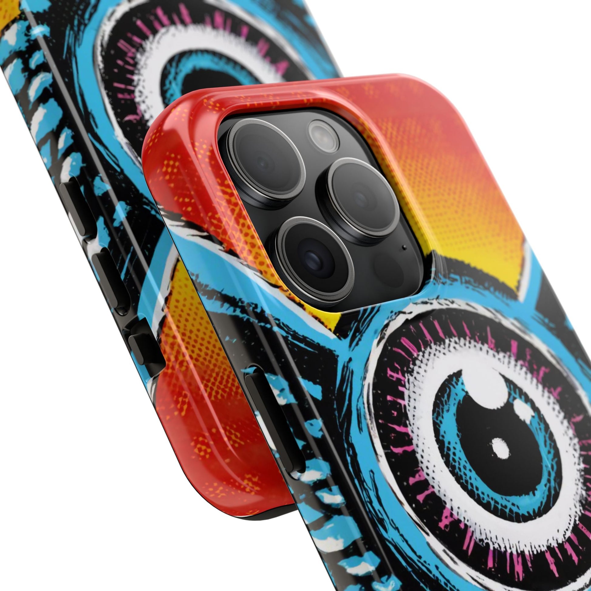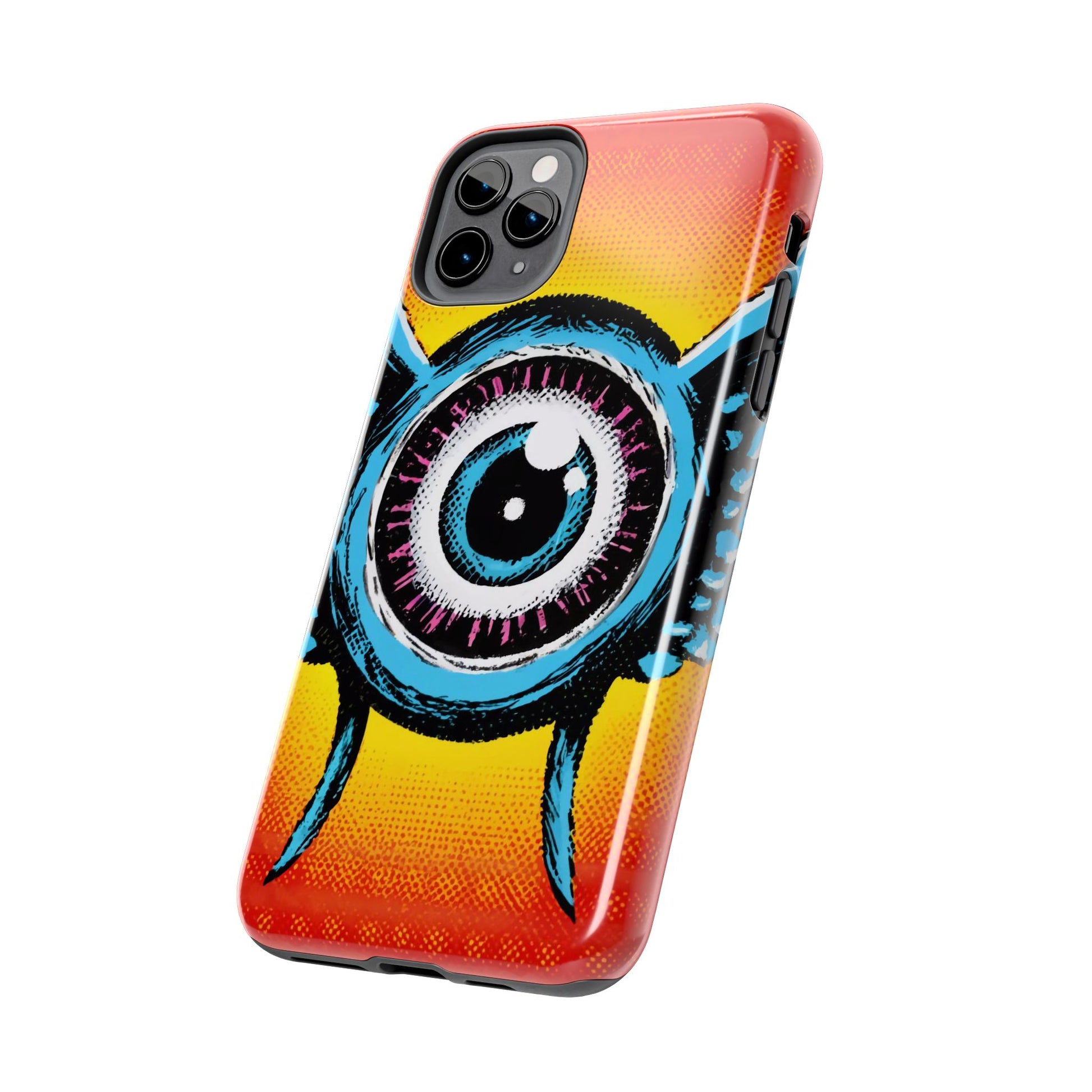 Add a burst of artistic flair to your iPhone with the "Bursting Vision Winged Eye iPhone Case." Featuring a blue eyeball surrounded by a pink outer rim, blue eyelids, and vibrant blue wings, this pop art design radiates energy. The yellow circular burst and orange background, enhanced with halftone textures, create a dazzling and dynamic visual that commands attention.Vivid Pop Art Design: Bold colors and retro halftones come together for a standout aesthetic.Durable Protection: Built tough to safeguard your iPhone against drops, scratches, and impacts.Perfect Fit: Crafted for iPhone models, ensuring easy access to buttons and wireless charging capability.Embrace vibrant creativity with the "Bursting Vision Winged Eye iPhone Case" and protect your phone in style!