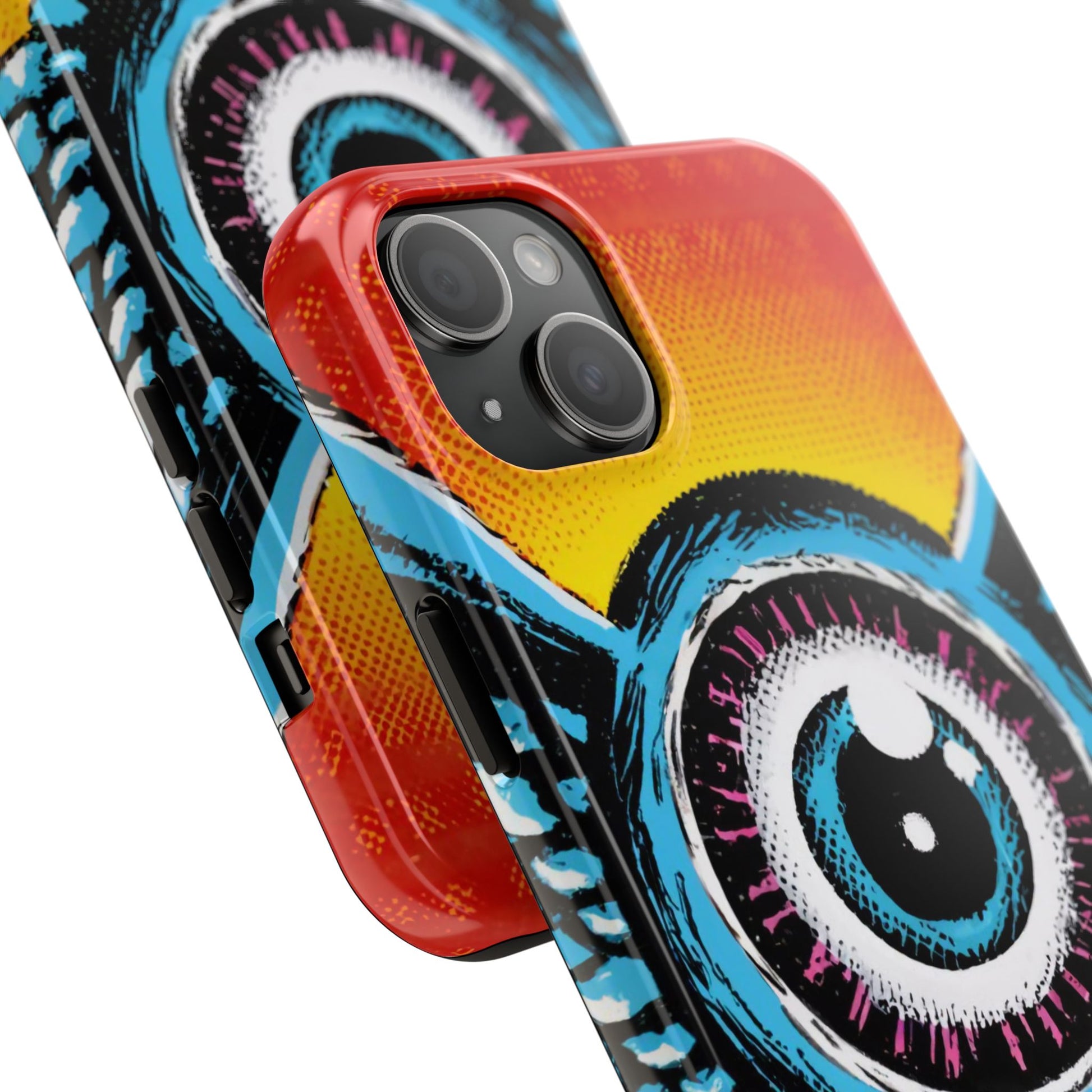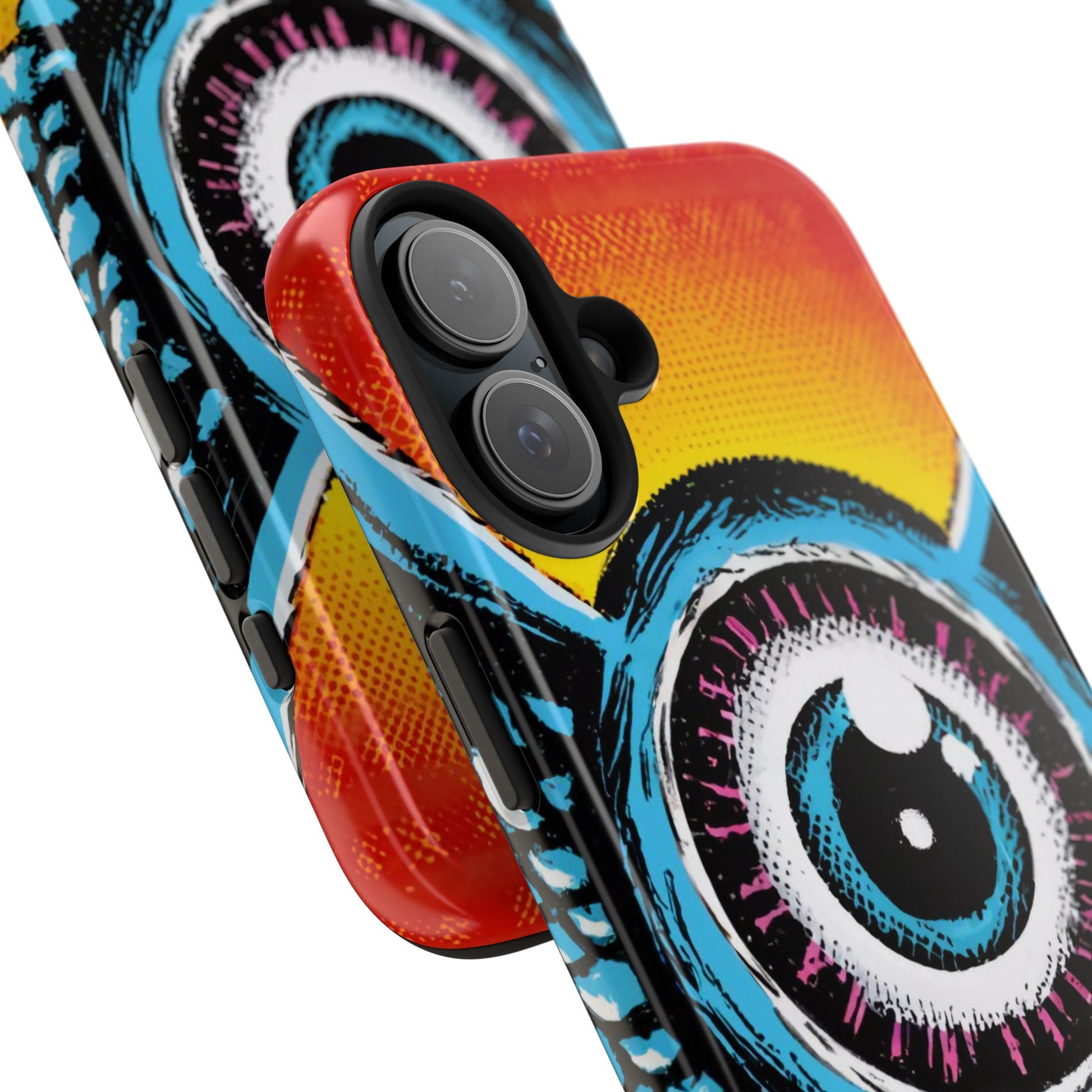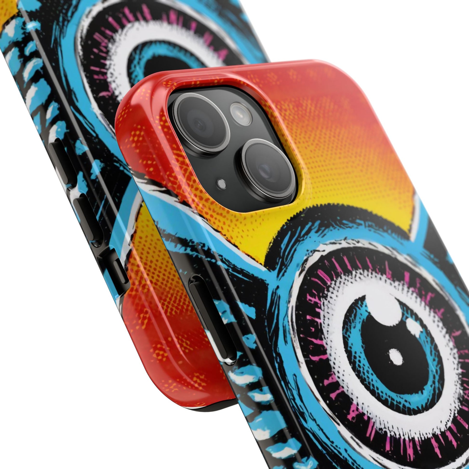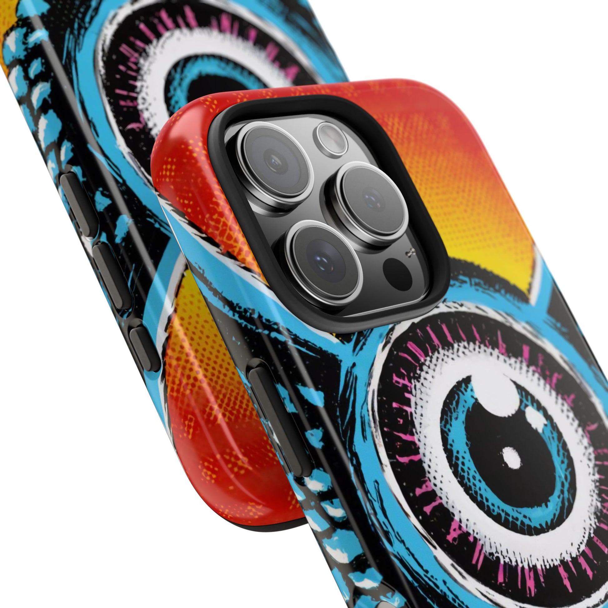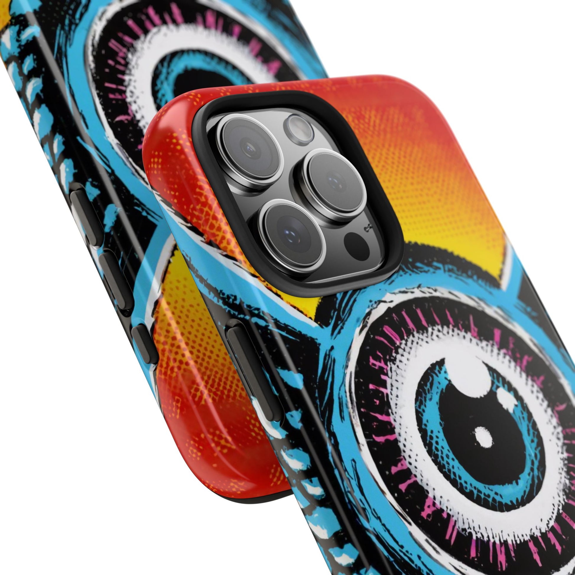 Add a burst of artistic flair to your iPhone with the "Bursting Vision Winged Eye iPhone Case." Featuring a blue eyeball surrounded by a pink outer rim, blue eyelids, and vibrant blue wings, this pop art design radiates energy. The yellow circular burst and orange background, enhanced with halftone textures, create a dazzling and dynamic visual that commands attention.Vivid Pop Art Design: Bold colors and retro halftones come together for a standout aesthetic.Durable Protection: Built tough to safeguard your iPhone against drops, scratches, and impacts.Perfect Fit: Crafted for iPhone models, ensuring easy access to buttons and wireless charging capability.Embrace vibrant creativity with the "Bursting Vision Winged Eye iPhone Case" and protect your phone in style!