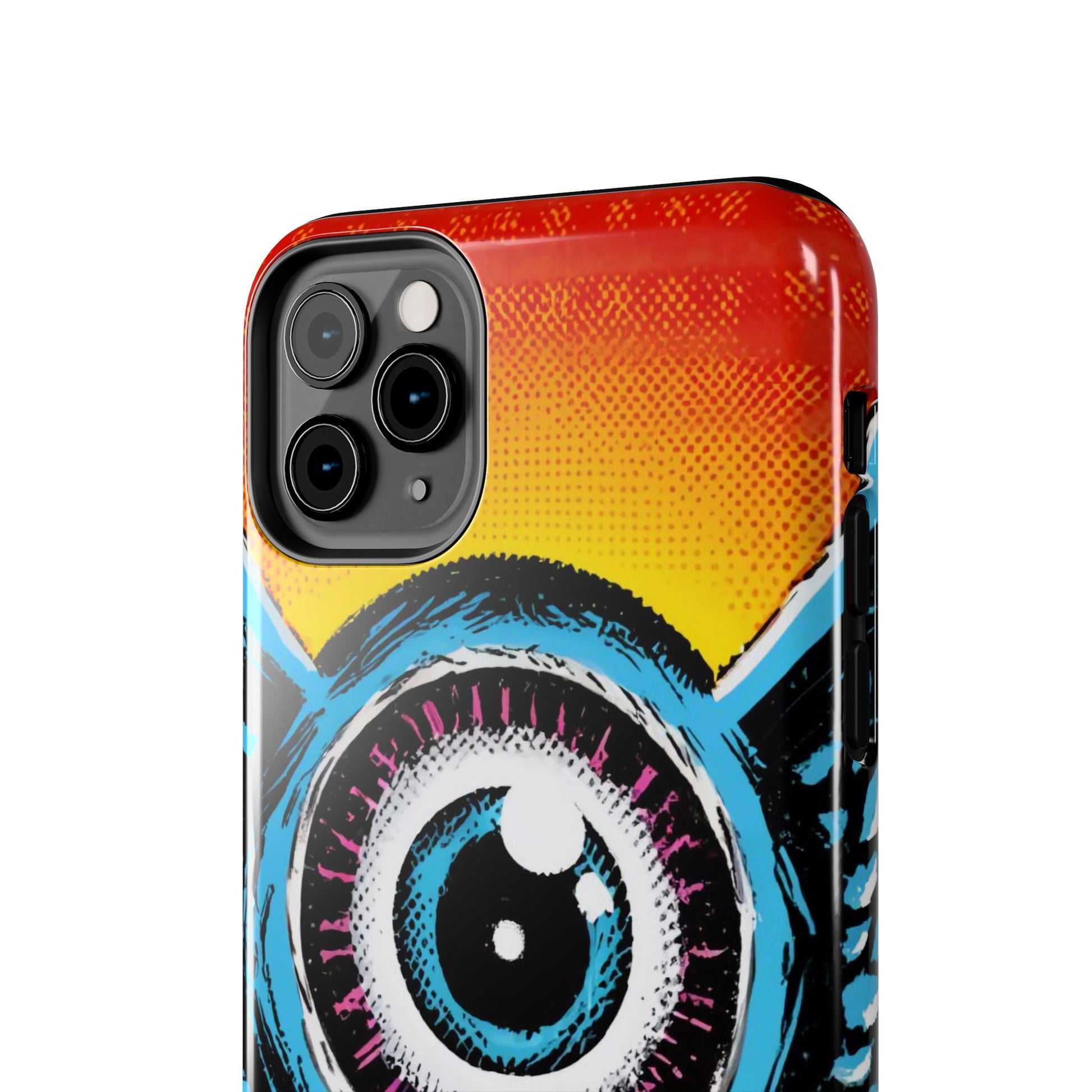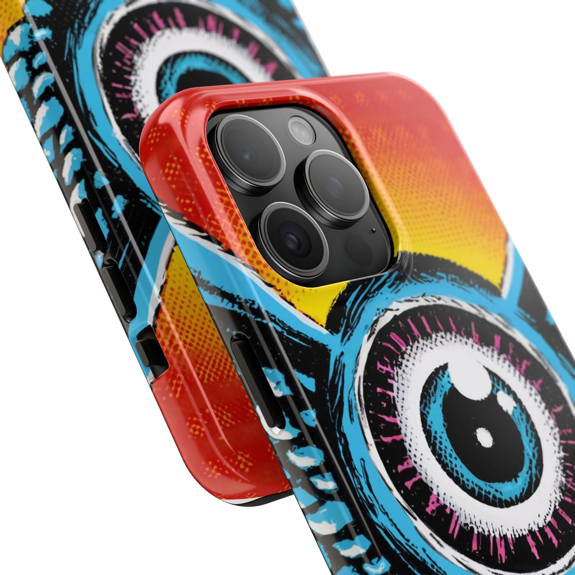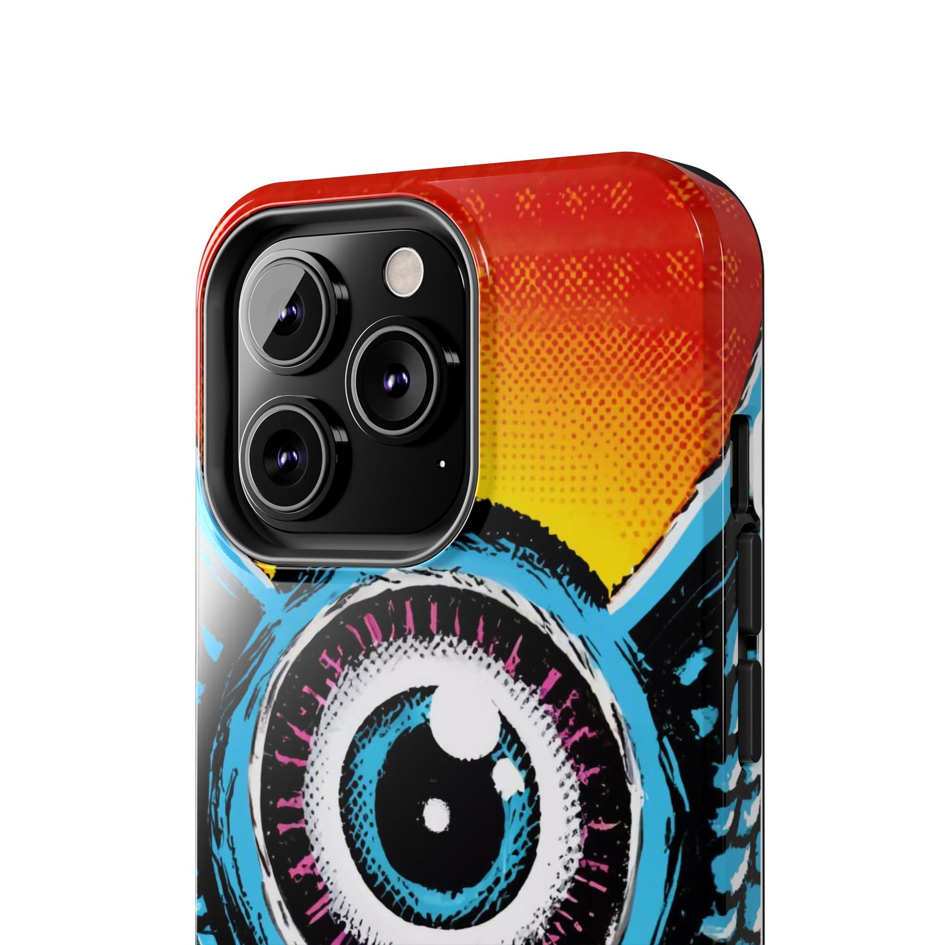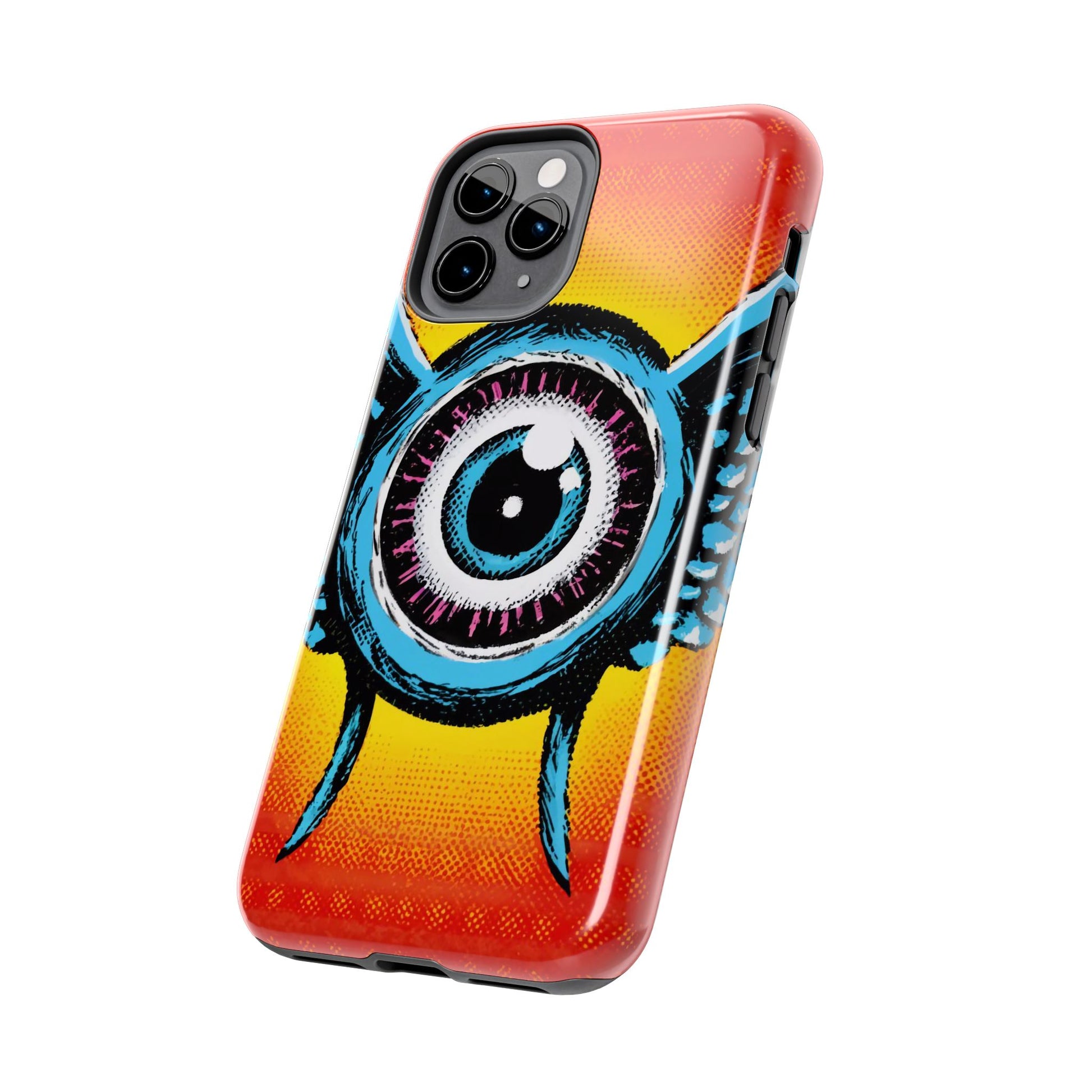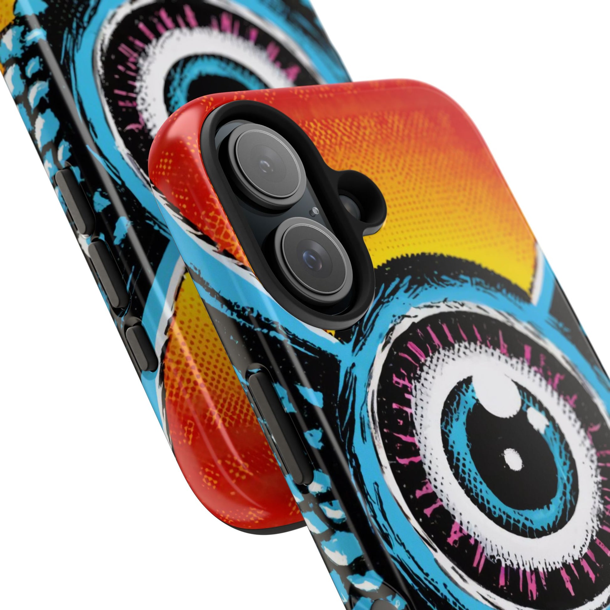 Add a burst of artistic flair to your iPhone with the "Bursting Vision Winged Eye iPhone Case." Featuring a blue eyeball surrounded by a pink outer rim, blue eyelids, and vibrant blue wings, this pop art design radiates energy. The yellow circular burst and orange background, enhanced with halftone textures, create a dazzling and dynamic visual that commands attention.Vivid Pop Art Design: Bold colors and retro halftones come together for a standout aesthetic.Durable Protection: Built tough to safeguard your iPhone against drops, scratches, and impacts.Perfect Fit: Crafted for iPhone models, ensuring easy access to buttons and wireless charging capability.Embrace vibrant creativity with the "Bursting Vision Winged Eye iPhone Case" and protect your phone in style!