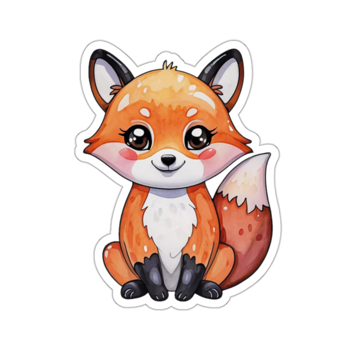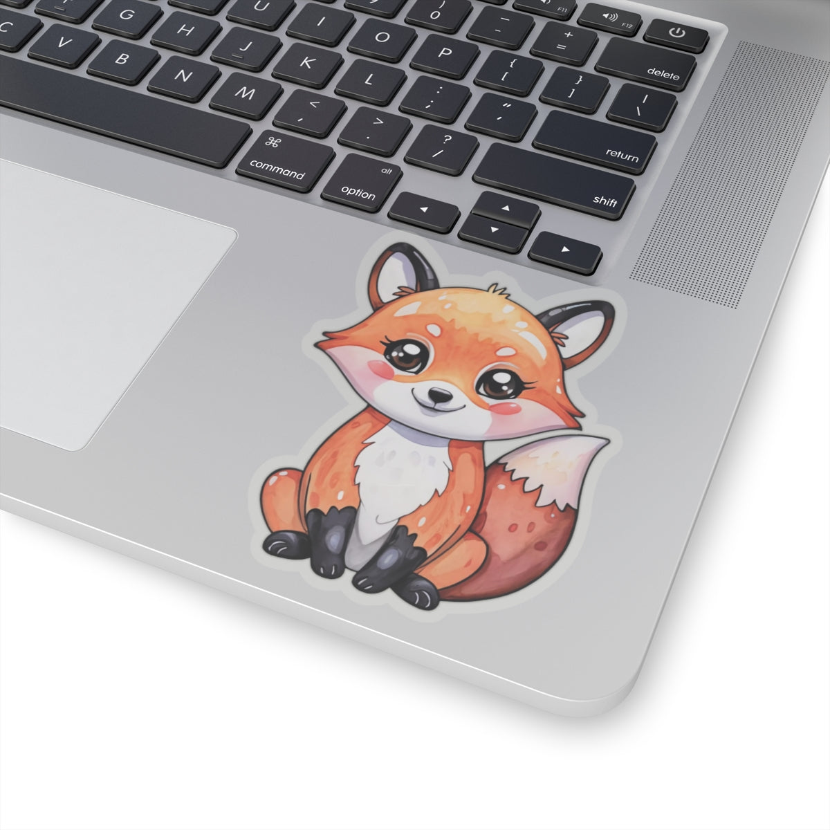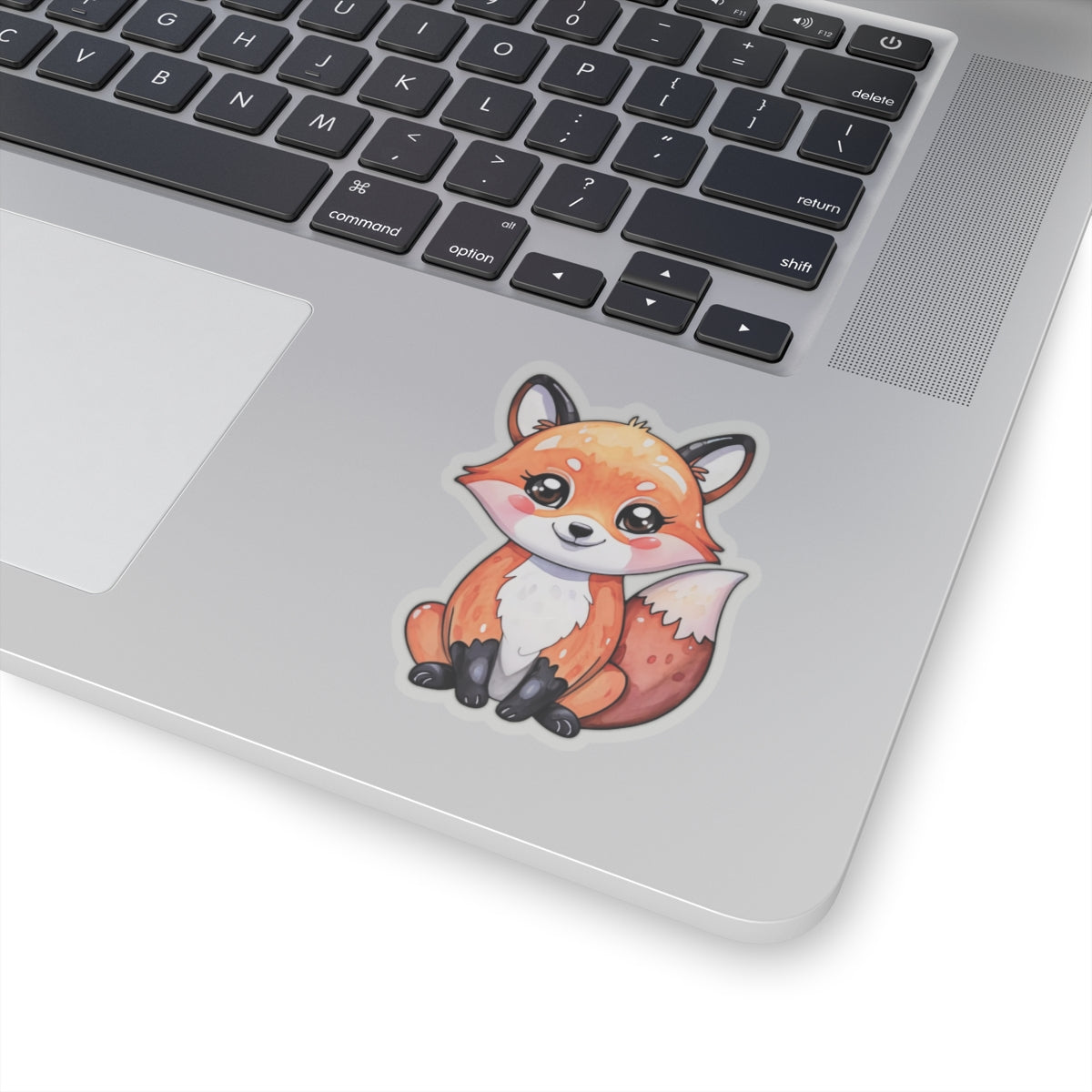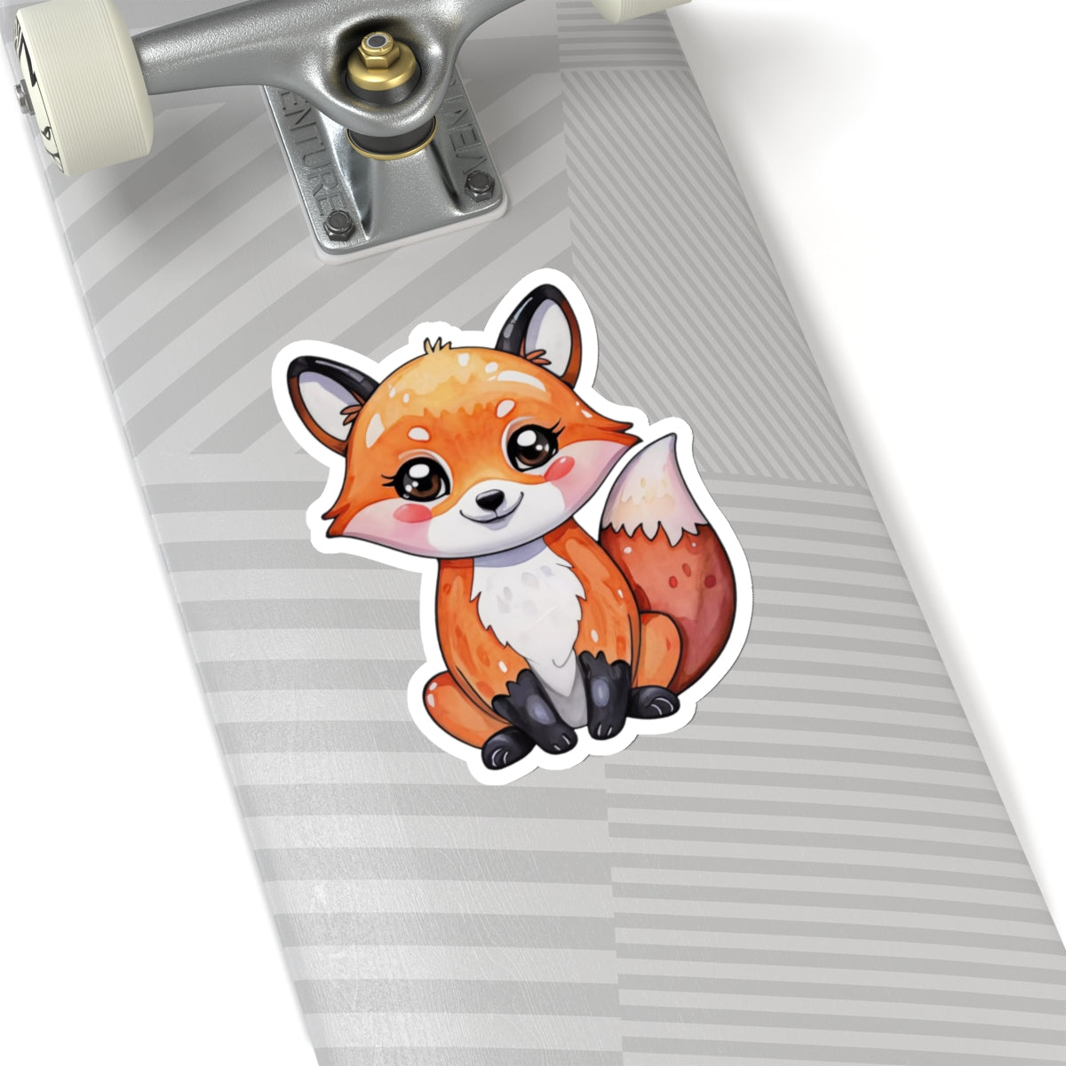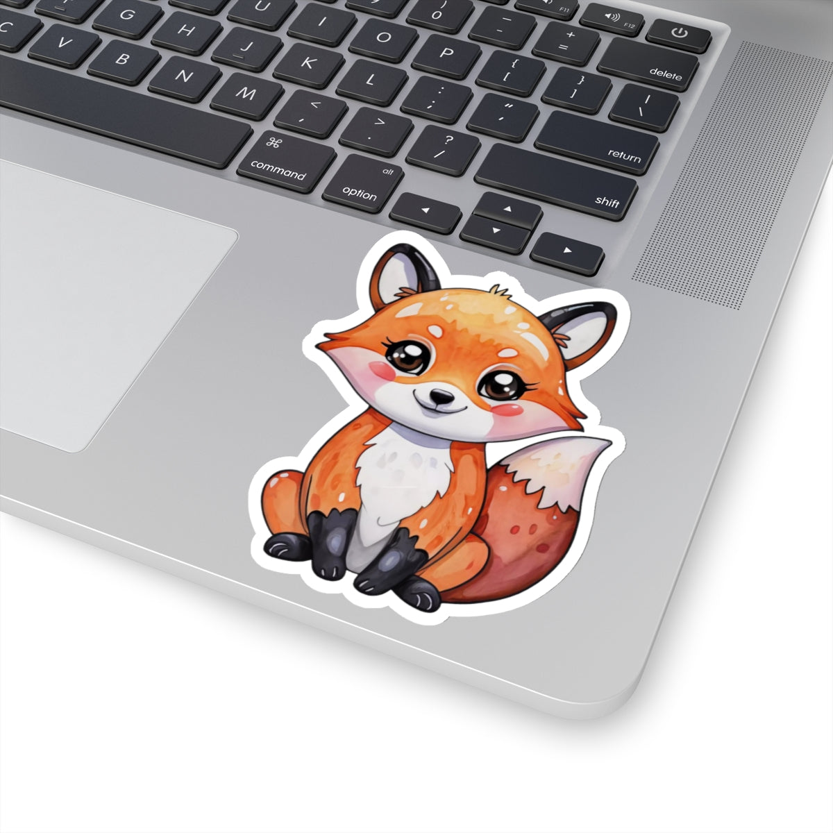 watercolor depiction of a cute fox, perfect for embellishing laptops, notebooks, and more. Crafted from durable vinyl with strong 3M adhesive,