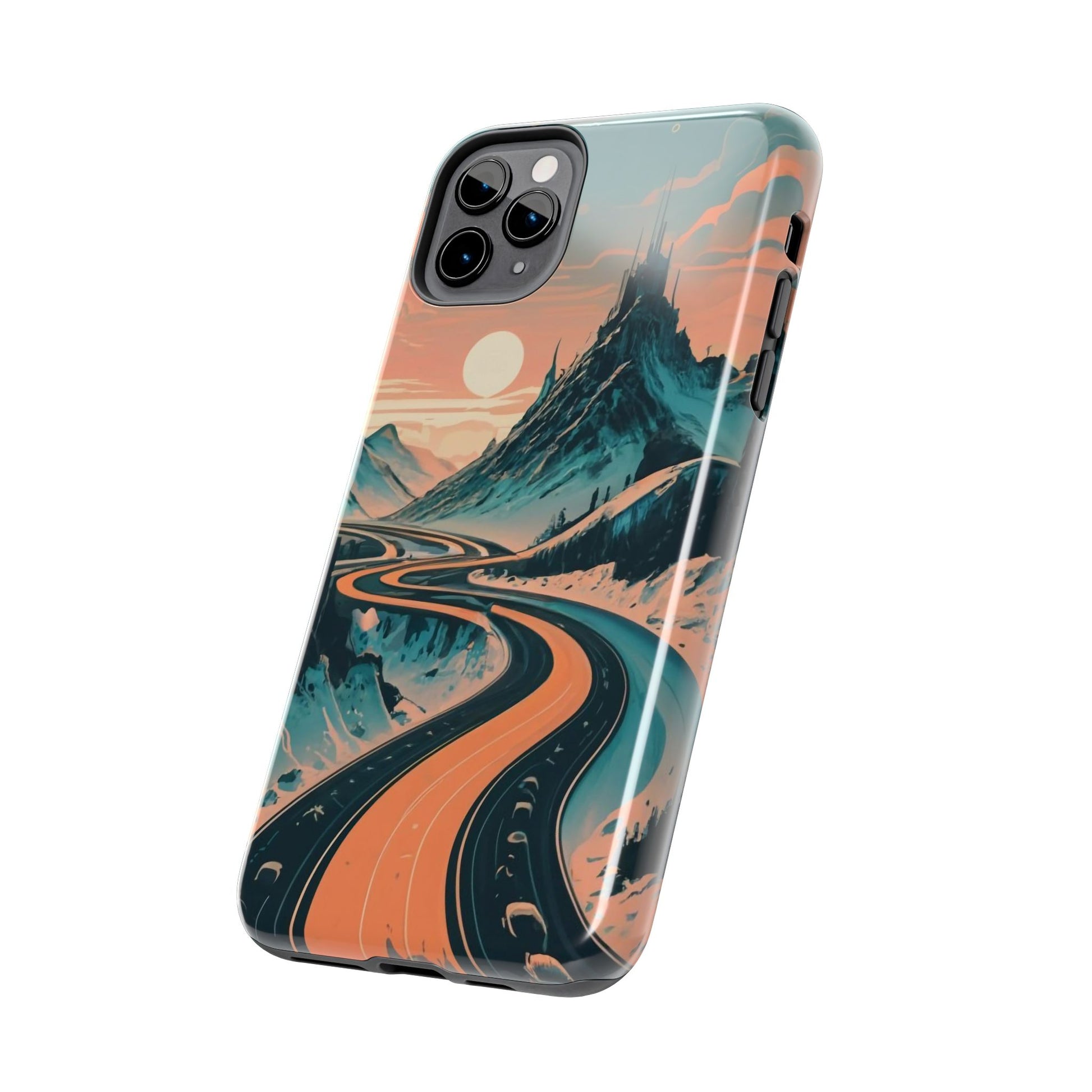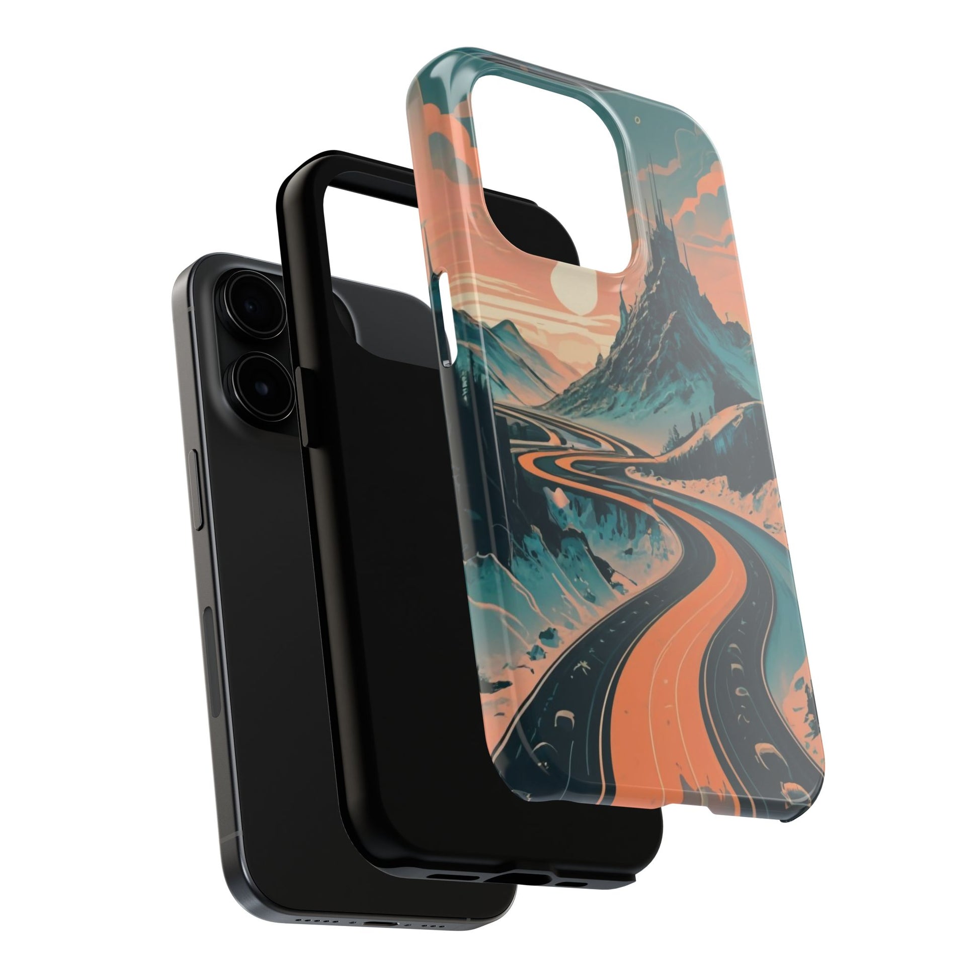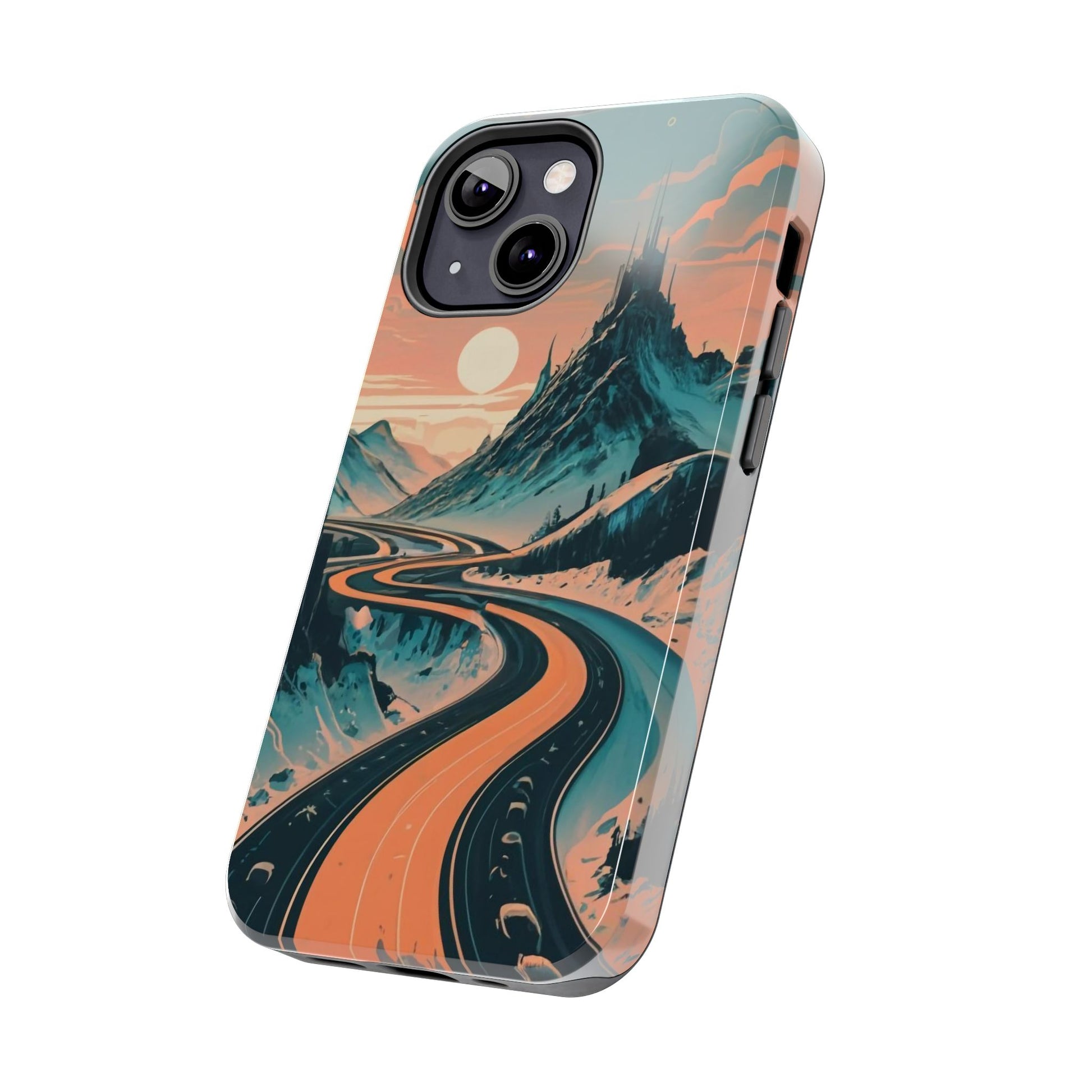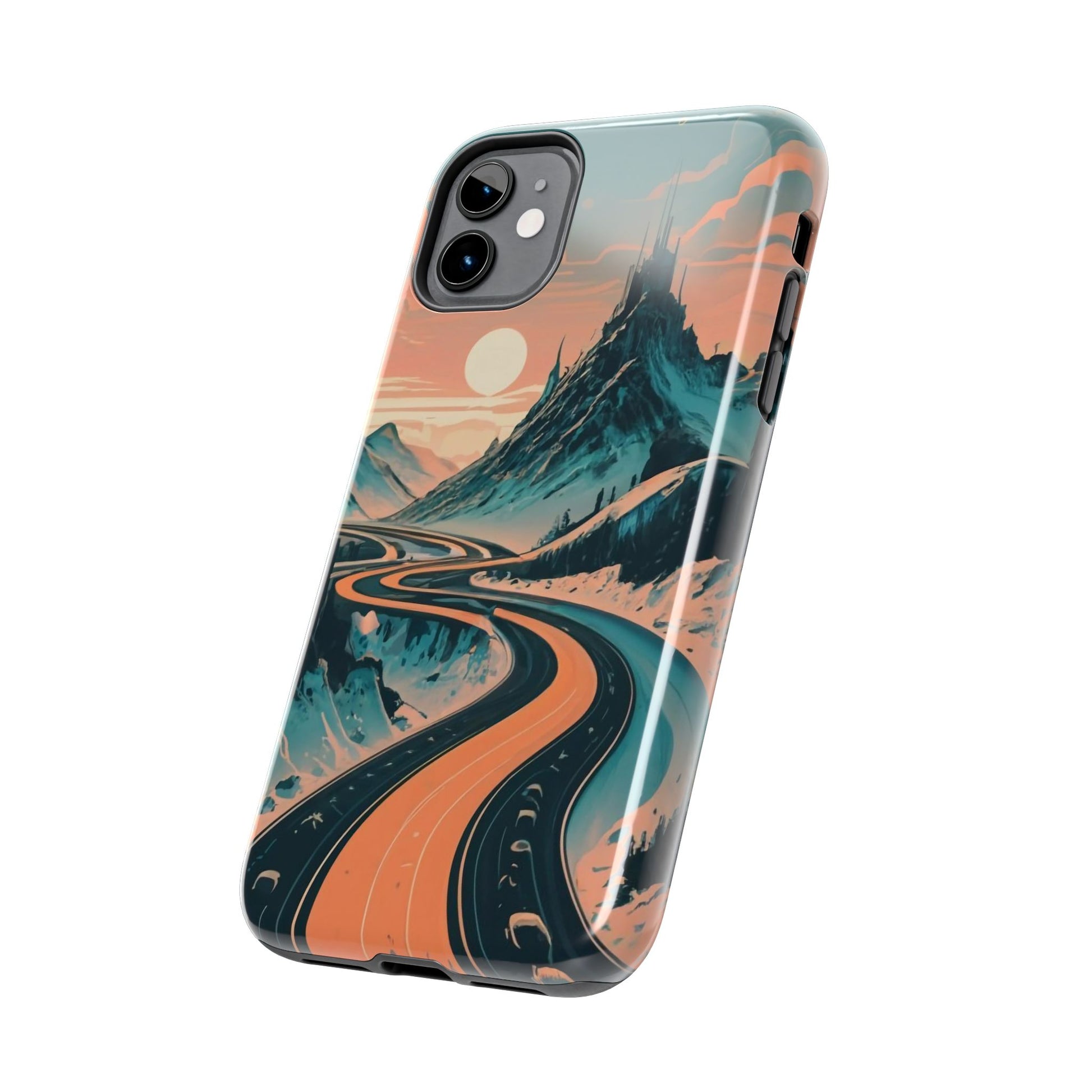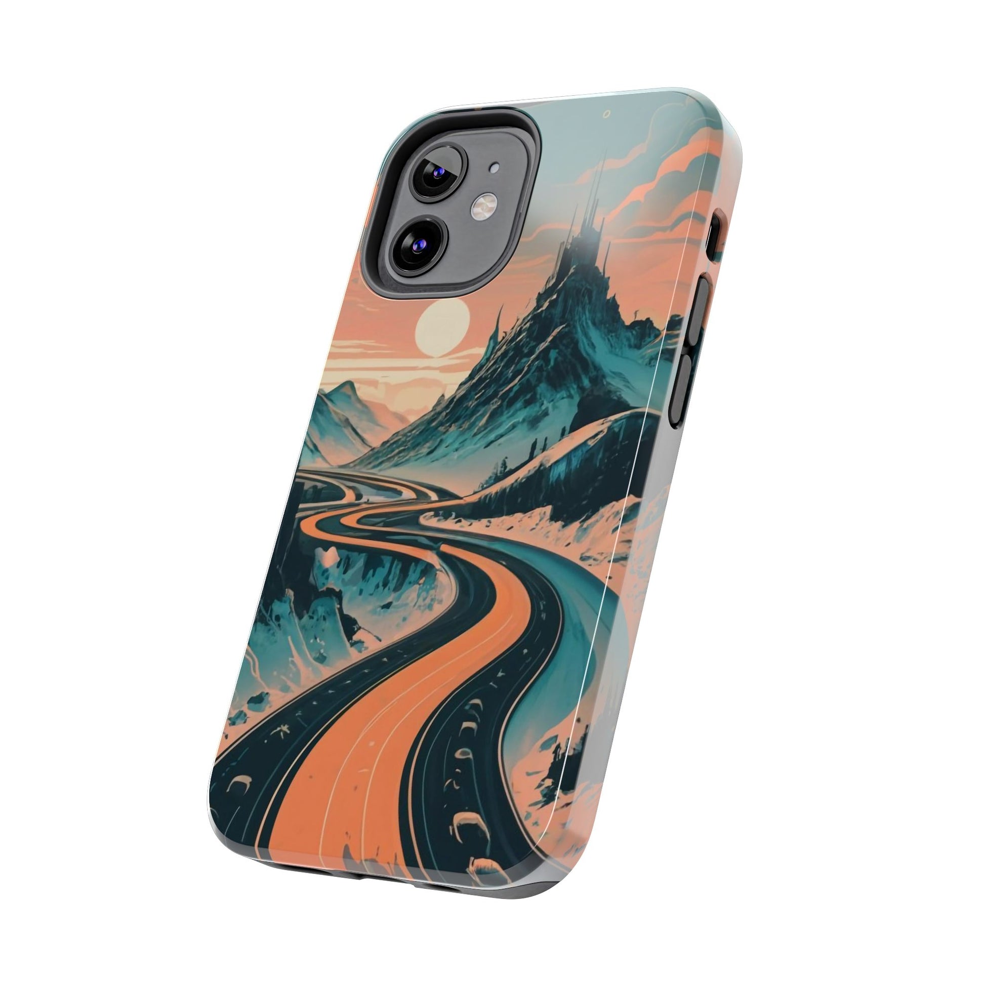 Embark on a vivid journey with the Chromatic Journey Guardian Case, a tough and visually captivating accessory featuring artwork of a scenic highway winding through majestic mountain ranges in a vibrant palette of complementary colors. This unique design captures the exhilaration of travel and the stunning beauty of natural landscapes, making your device a symbol of adventure and exploration.Guardian Case Protection: Crafted for durability, the Chromatic Journey case is fortified with advanced Guardian technology, ensuring reliable protection against drops, impacts, and daily wear. Safeguard your device with strength and style.Scenic Highway and Mountain Range Artwork: The focal point of this phone case is a vibrant portrayal of a scenic highway winding through majestic mountain ranges. The bold and complementary color palette adds depth and dimension to the dynamic landscape, creating a visually stunning composition.Exhilarating Travel: The artwork captures the exhilaration of travel and adventure, inviting you to embark on a chromatic journey every time you use your device. The vibrant colors evoke a sense of excitement and wonder for exploring new horizons.Stylish and Functional: Beyond its artistic appeal, this phone case offers a perfect blend of style and functionality. The precise fit ensures easy access to buttons and ports, allowing for a seamless and user-friendly experience.Symbol of Exploration: The scenic highway and mountain range artwork symbolize the spirit of exploration and discovery, encouraging you to embrace new experiences and seek out the beauty of the world around you.Compatibility Across Models: Compatible with various phone models, including iPhone 11, 12, 13, 14, 15, and more. Explore our range of sizes to find the perfect match for your device. Embark on a vivid journey with the Chromatic Journey Guardian Case, an Etsy exclusive that captures the exhilaration of travel and the stunning beauty of natural landscapes, creating a harmonious fusion of style and protection for your device.