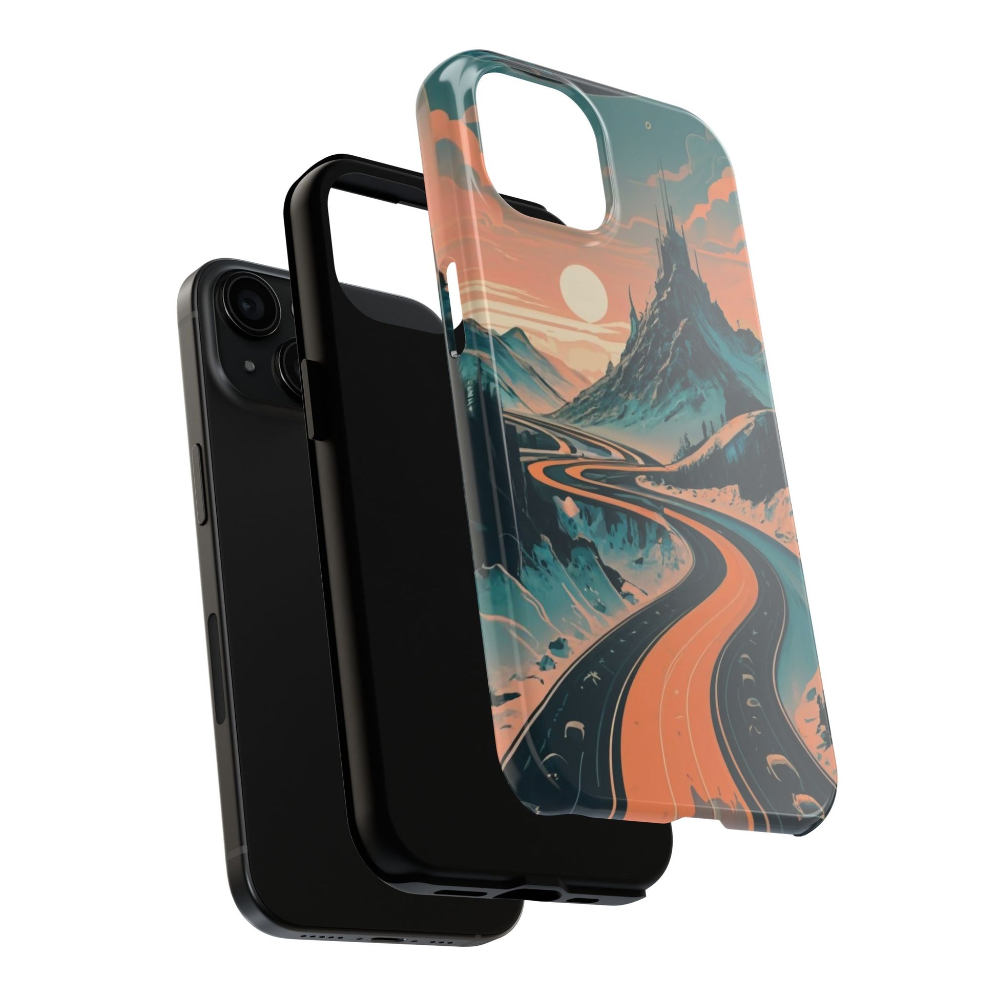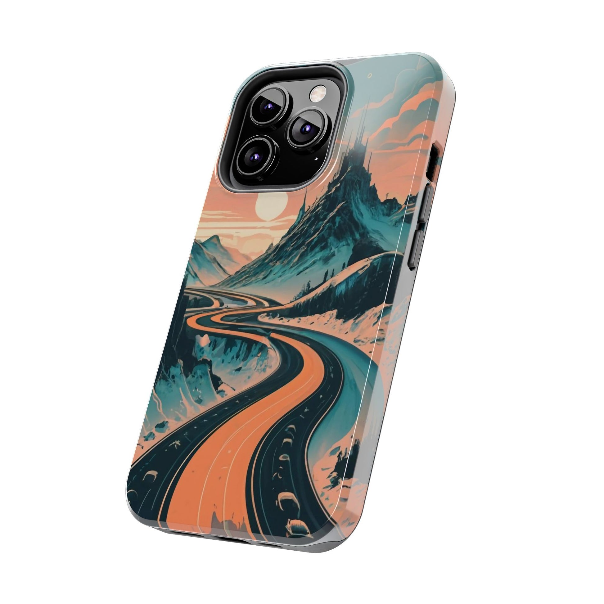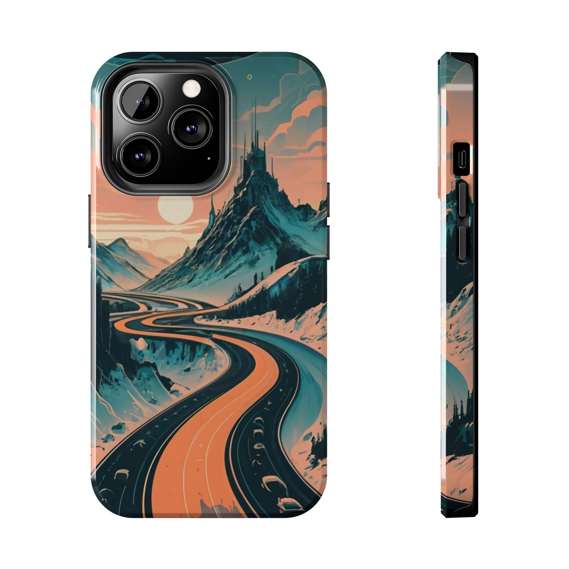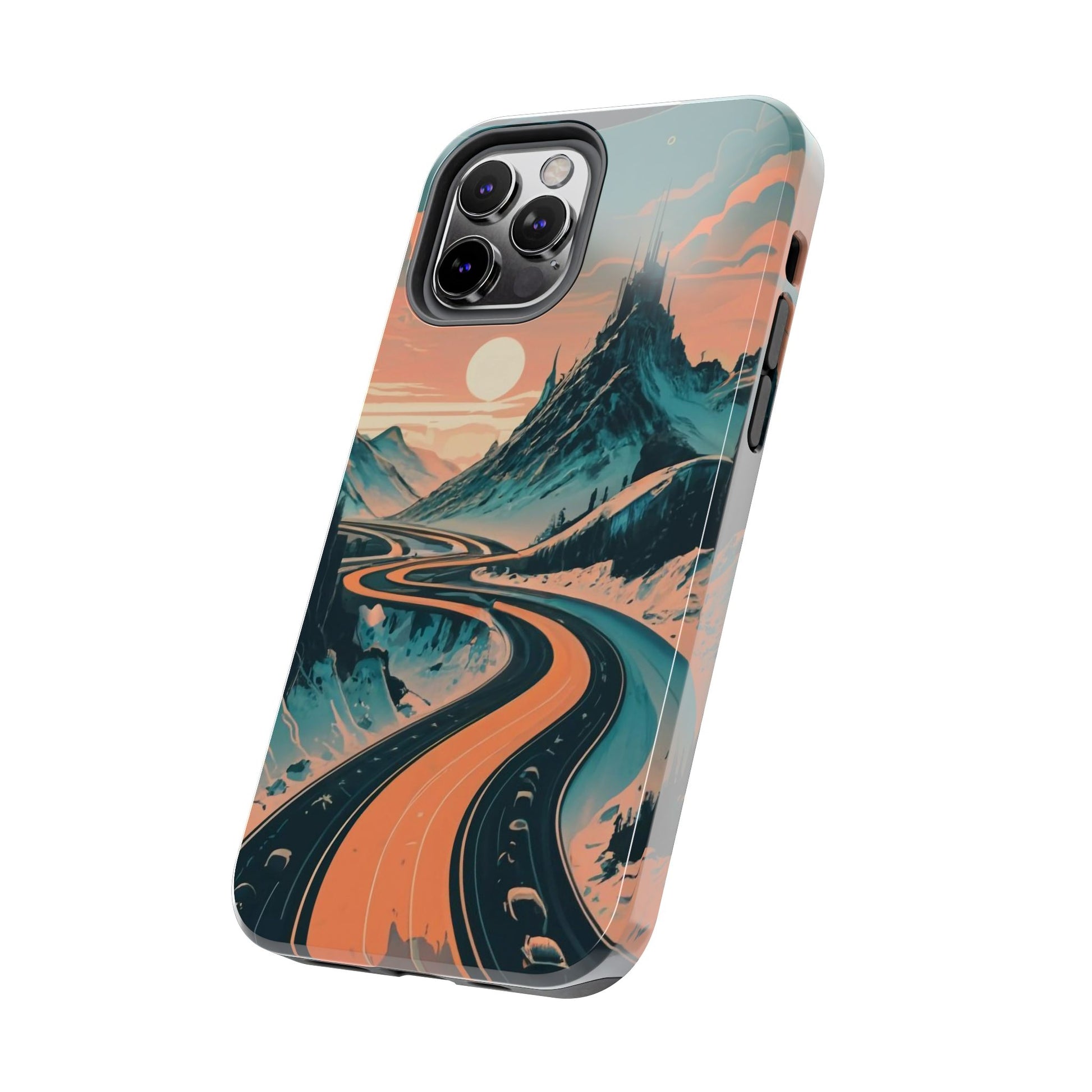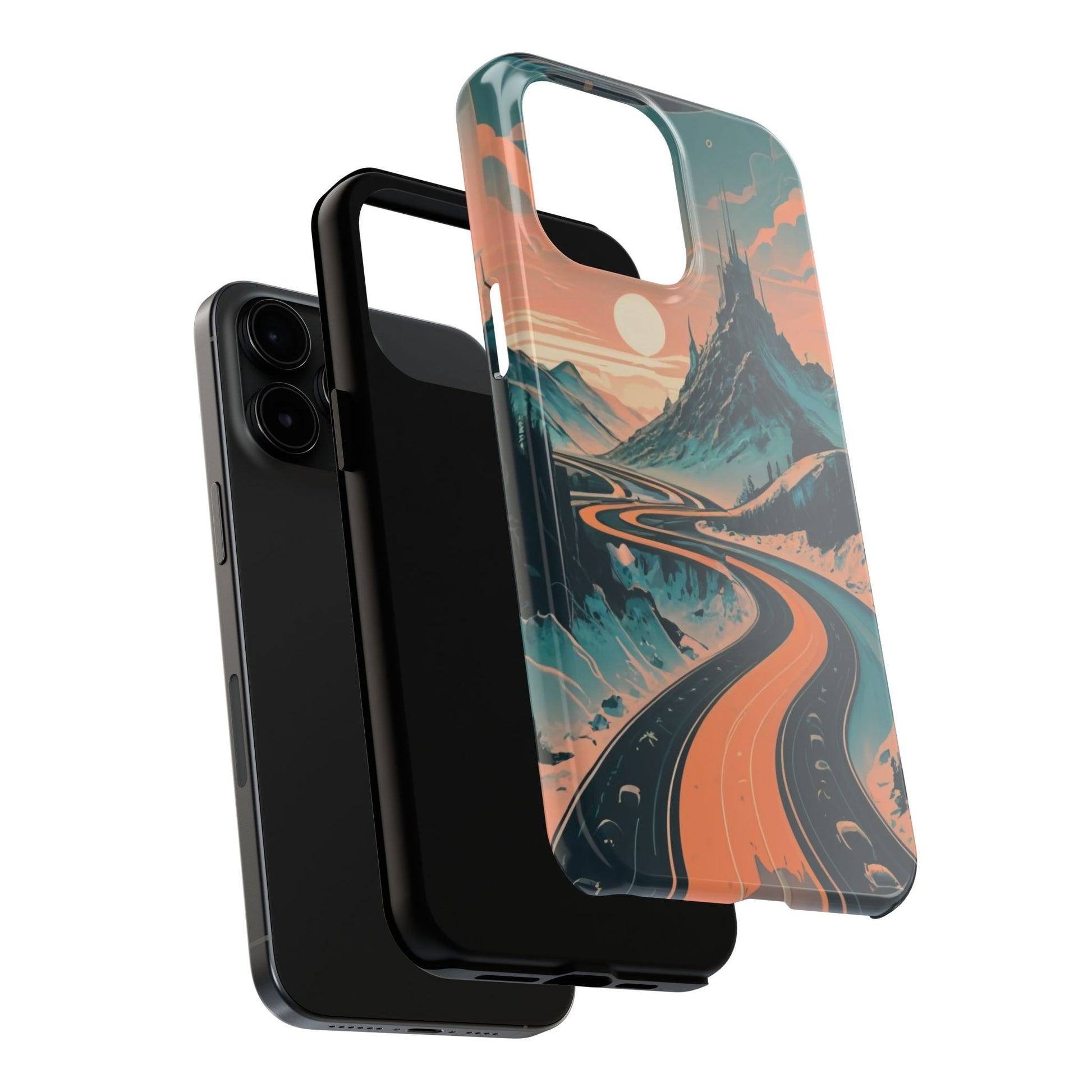 Embark on a vivid journey with the Chromatic Journey Guardian Case, a tough and visually captivating accessory featuring artwork of a scenic highway winding through majestic mountain ranges in a vibrant palette of complementary colors. This unique design captures the exhilaration of travel and the stunning beauty of natural landscapes, making your device a symbol of adventure and exploration.Guardian Case Protection: Crafted for durability, the Chromatic Journey case is fortified with advanced Guardian technology, ensuring reliable protection against drops, impacts, and daily wear. Safeguard your device with strength and style.Scenic Highway and Mountain Range Artwork: The focal point of this phone case is a vibrant portrayal of a scenic highway winding through majestic mountain ranges. The bold and complementary color palette adds depth and dimension to the dynamic landscape, creating a visually stunning composition.Exhilarating Travel: The artwork captures the exhilaration of travel and adventure, inviting you to embark on a chromatic journey every time you use your device. The vibrant colors evoke a sense of excitement and wonder for exploring new horizons.Stylish and Functional: Beyond its artistic appeal, this phone case offers a perfect blend of style and functionality. The precise fit ensures easy access to buttons and ports, allowing for a seamless and user-friendly experience.Symbol of Exploration: The scenic highway and mountain range artwork symbolize the spirit of exploration and discovery, encouraging you to embrace new experiences and seek out the beauty of the world around you.Compatibility Across Models: Compatible with various phone models, including iPhone 11, 12, 13, 14, 15, and more. Explore our range of sizes to find the perfect match for your device. Embark on a vivid journey with the Chromatic Journey Guardian Case, an Etsy exclusive that captures the exhilaration of travel and the stunning beauty of natural landscapes, creating a harmonious fusion of style and protection for your device.