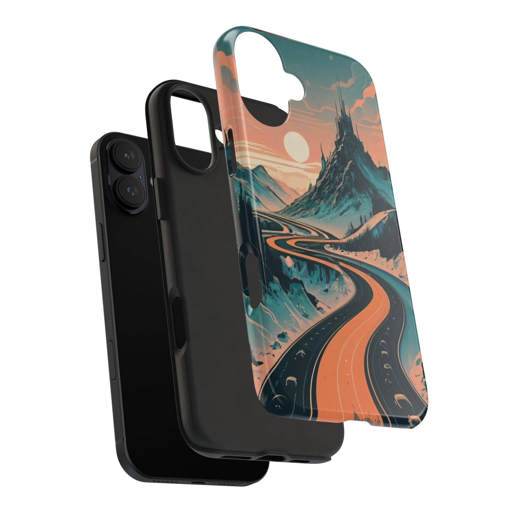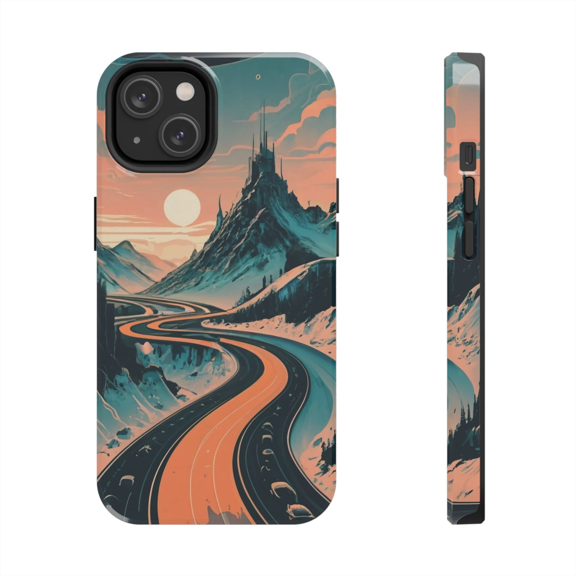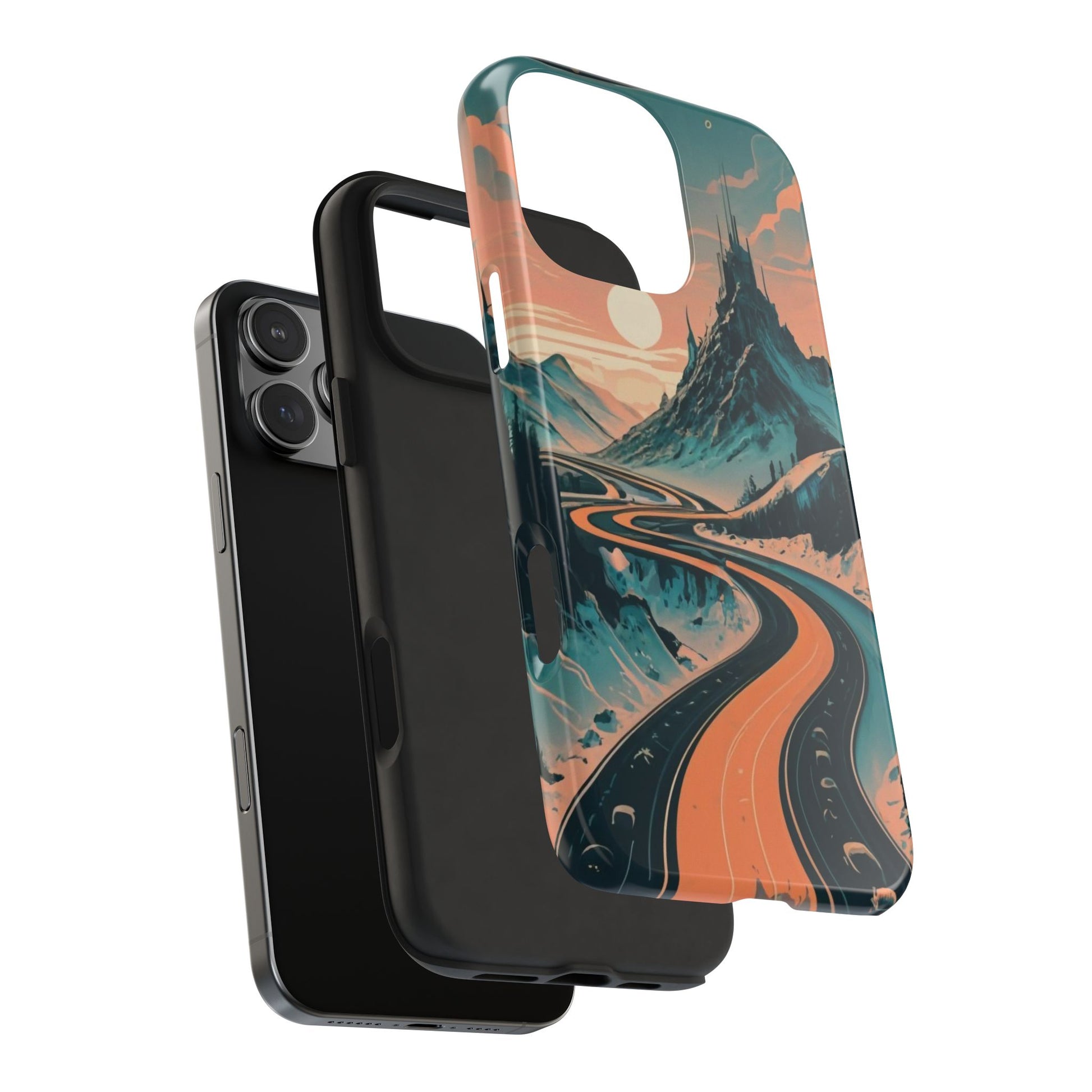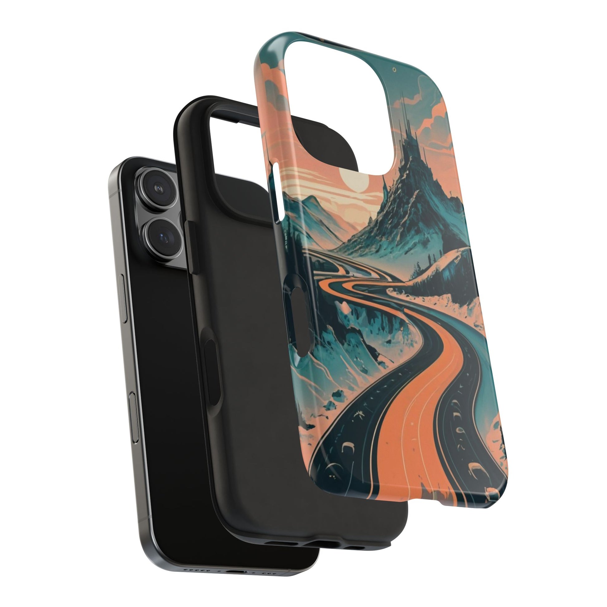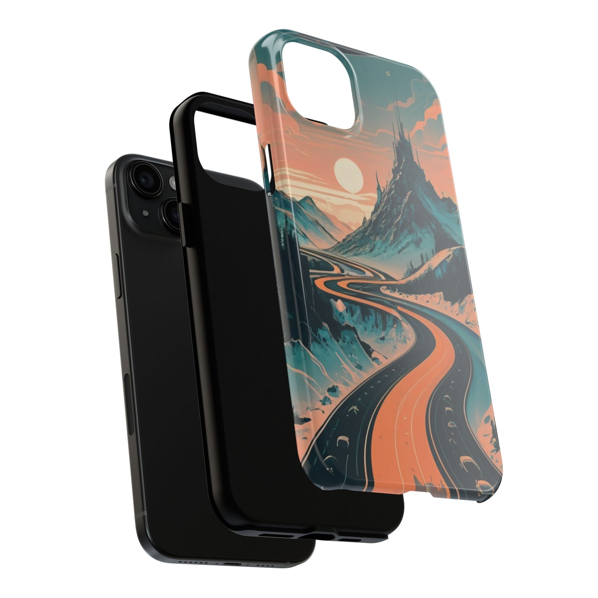 Embark on a vivid journey with the Chromatic Journey Guardian Case, a tough and visually captivating accessory featuring artwork of a scenic highway winding through majestic mountain ranges in a vibrant palette of complementary colors. This unique design captures the exhilaration of travel and the stunning beauty of natural landscapes, making your device a symbol of adventure and exploration.Guardian Case Protection: Crafted for durability, the Chromatic Journey case is fortified with advanced Guardian technology, ensuring reliable protection against drops, impacts, and daily wear. Safeguard your device with strength and style.Scenic Highway and Mountain Range Artwork: The focal point of this phone case is a vibrant portrayal of a scenic highway winding through majestic mountain ranges. The bold and complementary color palette adds depth and dimension to the dynamic landscape, creating a visually stunning composition.Exhilarating Travel: The artwork captures the exhilaration of travel and adventure, inviting you to embark on a chromatic journey every time you use your device. The vibrant colors evoke a sense of excitement and wonder for exploring new horizons.Stylish and Functional: Beyond its artistic appeal, this phone case offers a perfect blend of style and functionality. The precise fit ensures easy access to buttons and ports, allowing for a seamless and user-friendly experience.Symbol of Exploration: The scenic highway and mountain range artwork symbolize the spirit of exploration and discovery, encouraging you to embrace new experiences and seek out the beauty of the world around you.Compatibility Across Models: Compatible with various phone models, including iPhone 11, 12, 13, 14, 15, and more. Explore our range of sizes to find the perfect match for your device. Embark on a vivid journey with the Chromatic Journey Guardian Case, an Etsy exclusive that captures the exhilaration of travel and the stunning beauty of natural landscapes, creating a harmonious fusion of style and protection for your device.