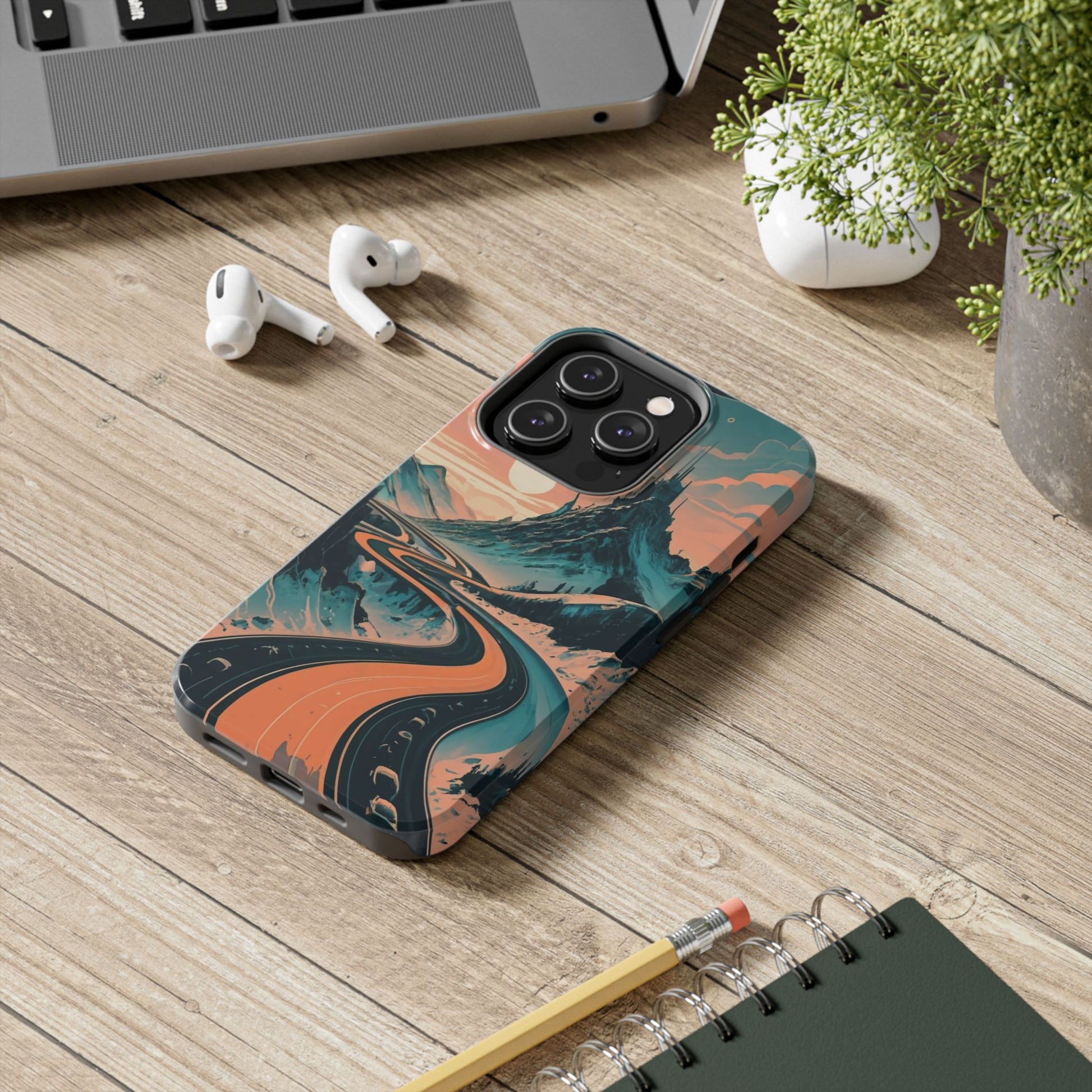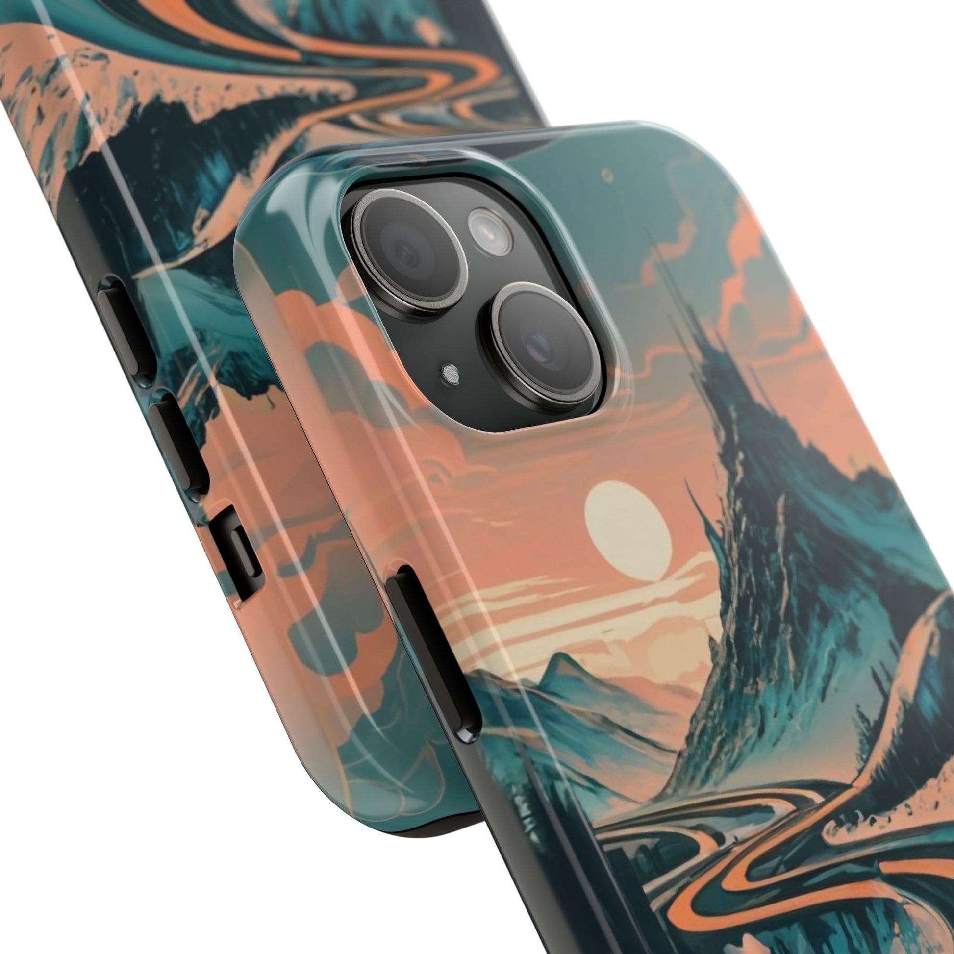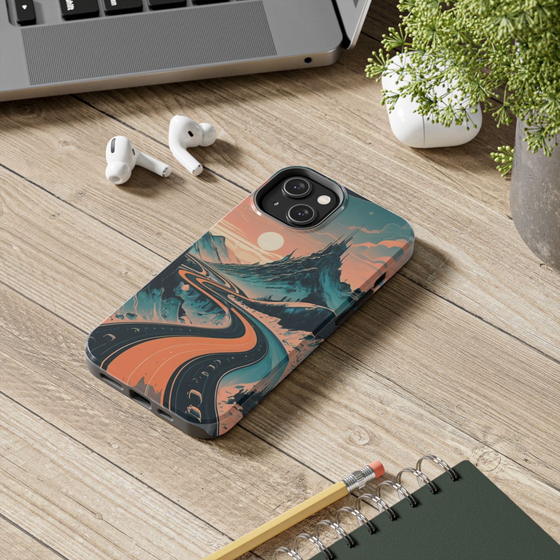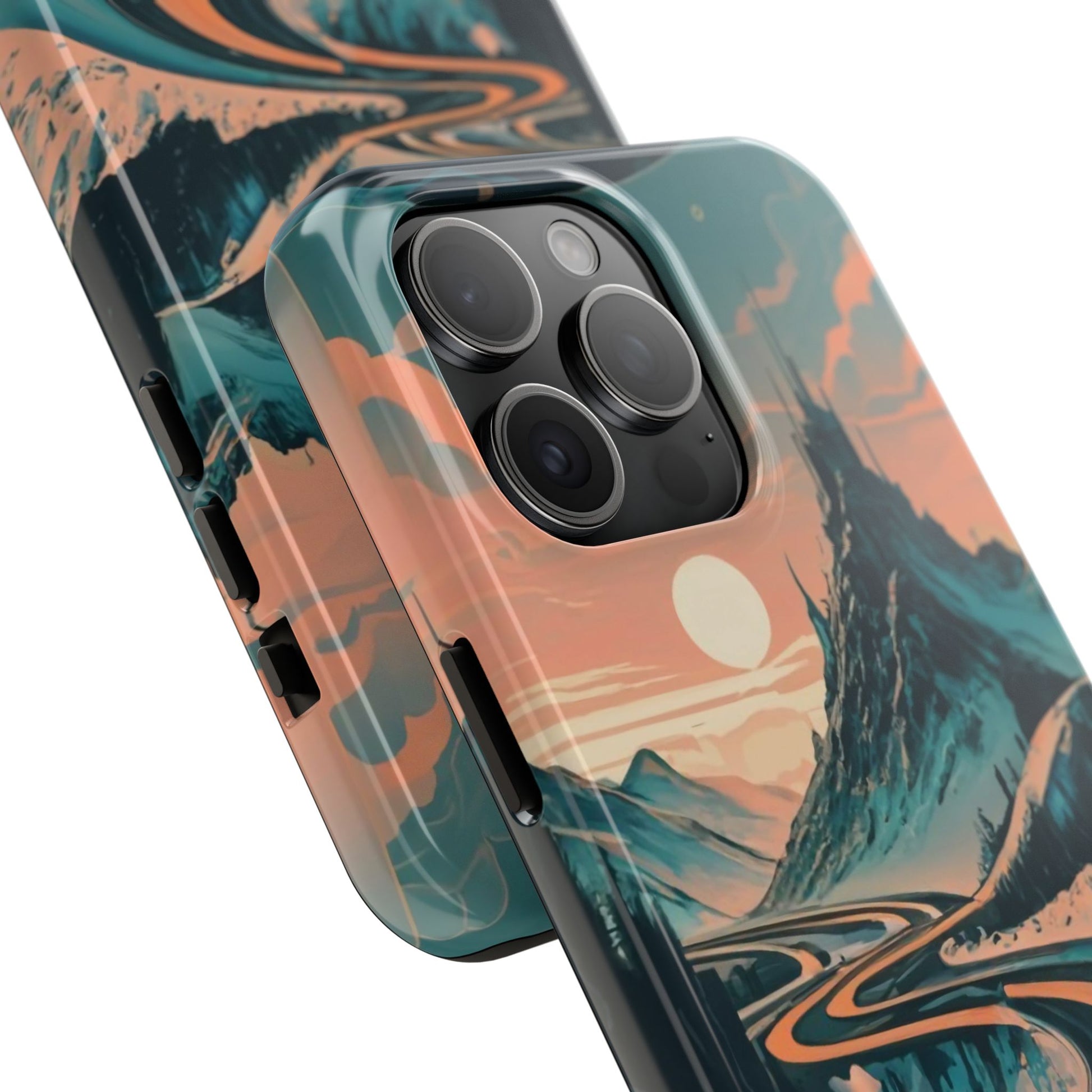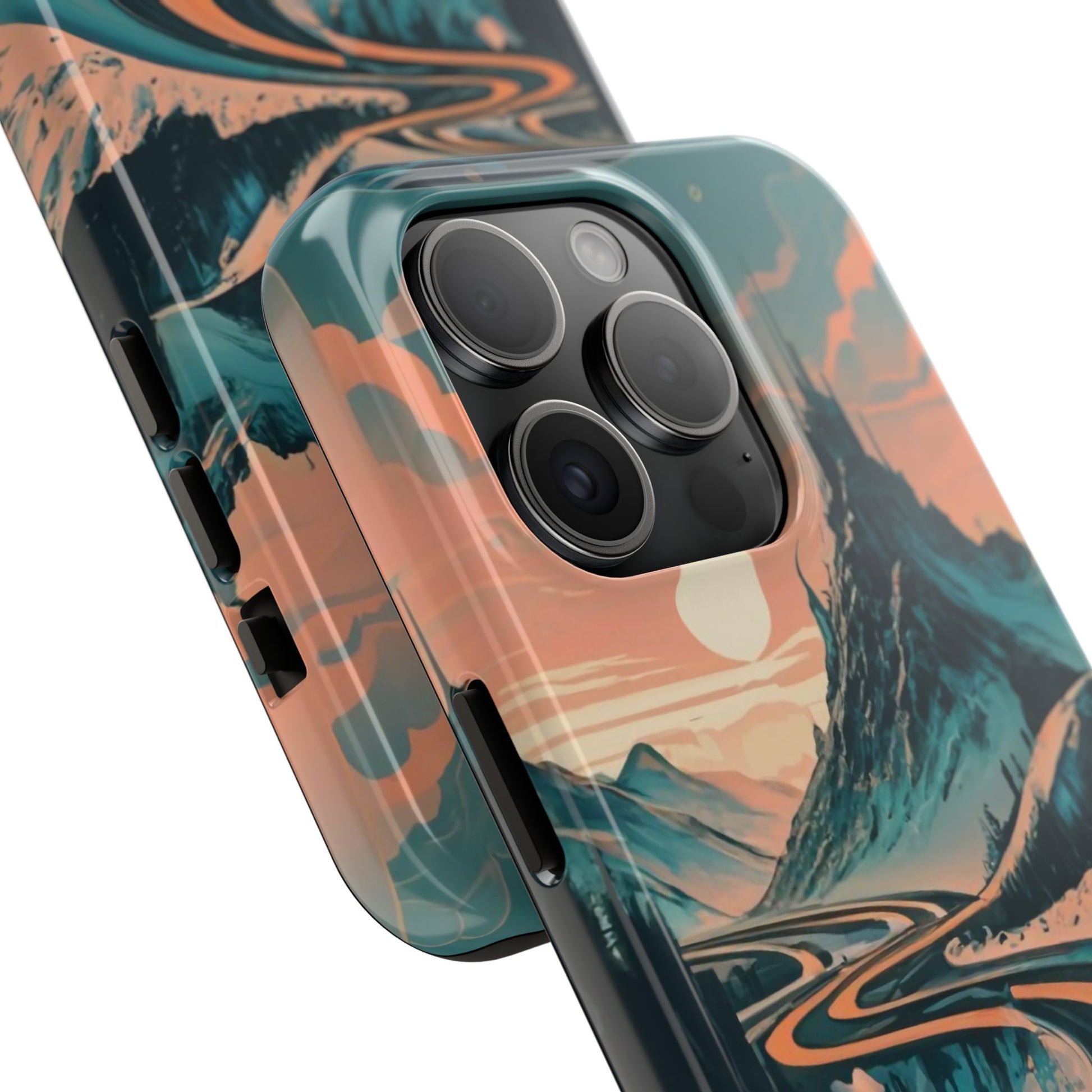 Embark on a vivid journey with the Chromatic Journey Guardian Case, a tough and visually captivating accessory featuring artwork of a scenic highway winding through majestic mountain ranges in a vibrant palette of complementary colors. This unique design captures the exhilaration of travel and the stunning beauty of natural landscapes, making your device a symbol of adventure and exploration.Guardian Case Protection: Crafted for durability, the Chromatic Journey case is fortified with advanced Guardian technology, ensuring reliable protection against drops, impacts, and daily wear. Safeguard your device with strength and style.Scenic Highway and Mountain Range Artwork: The focal point of this phone case is a vibrant portrayal of a scenic highway winding through majestic mountain ranges. The bold and complementary color palette adds depth and dimension to the dynamic landscape, creating a visually stunning composition.Exhilarating Travel: The artwork captures the exhilaration of travel and adventure, inviting you to embark on a chromatic journey every time you use your device. The vibrant colors evoke a sense of excitement and wonder for exploring new horizons.Stylish and Functional: Beyond its artistic appeal, this phone case offers a perfect blend of style and functionality. The precise fit ensures easy access to buttons and ports, allowing for a seamless and user-friendly experience.Symbol of Exploration: The scenic highway and mountain range artwork symbolize the spirit of exploration and discovery, encouraging you to embrace new experiences and seek out the beauty of the world around you.Compatibility Across Models: Compatible with various phone models, including iPhone 11, 12, 13, 14, 15, and more. Explore our range of sizes to find the perfect match for your device. Embark on a vivid journey with the Chromatic Journey Guardian Case, an Etsy exclusive that captures the exhilaration of travel and the stunning beauty of natural landscapes, creating a harmonious fusion of style and protection for your device.