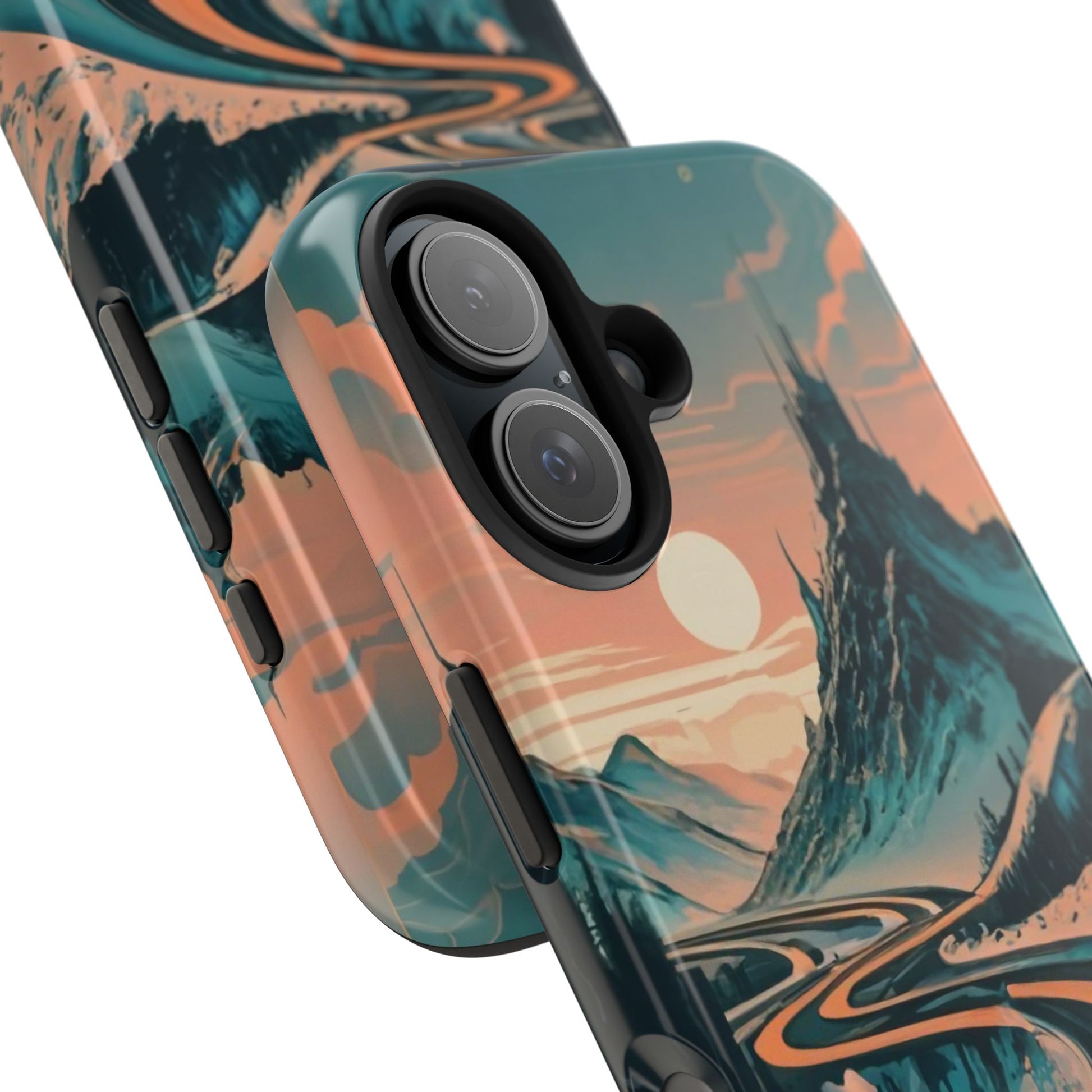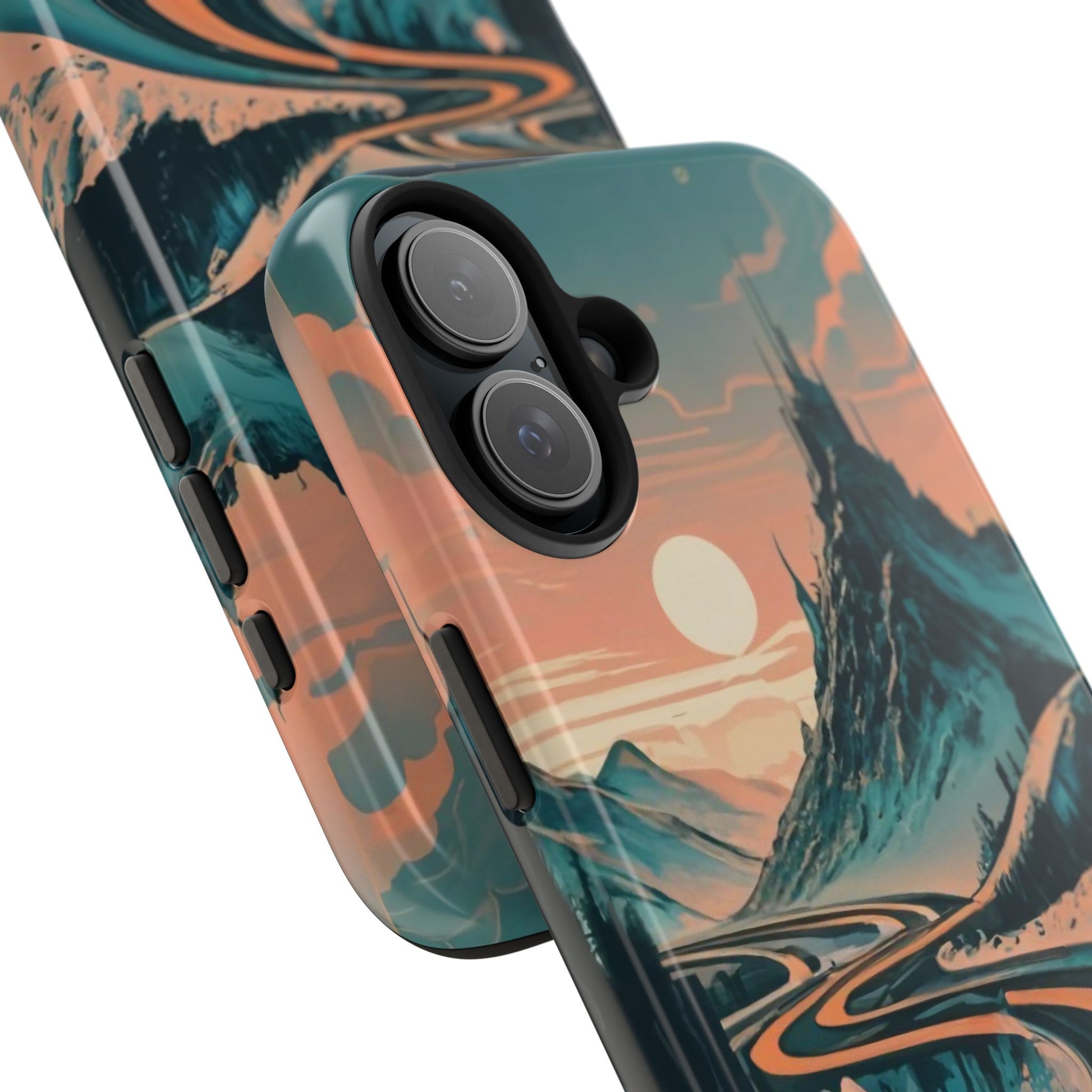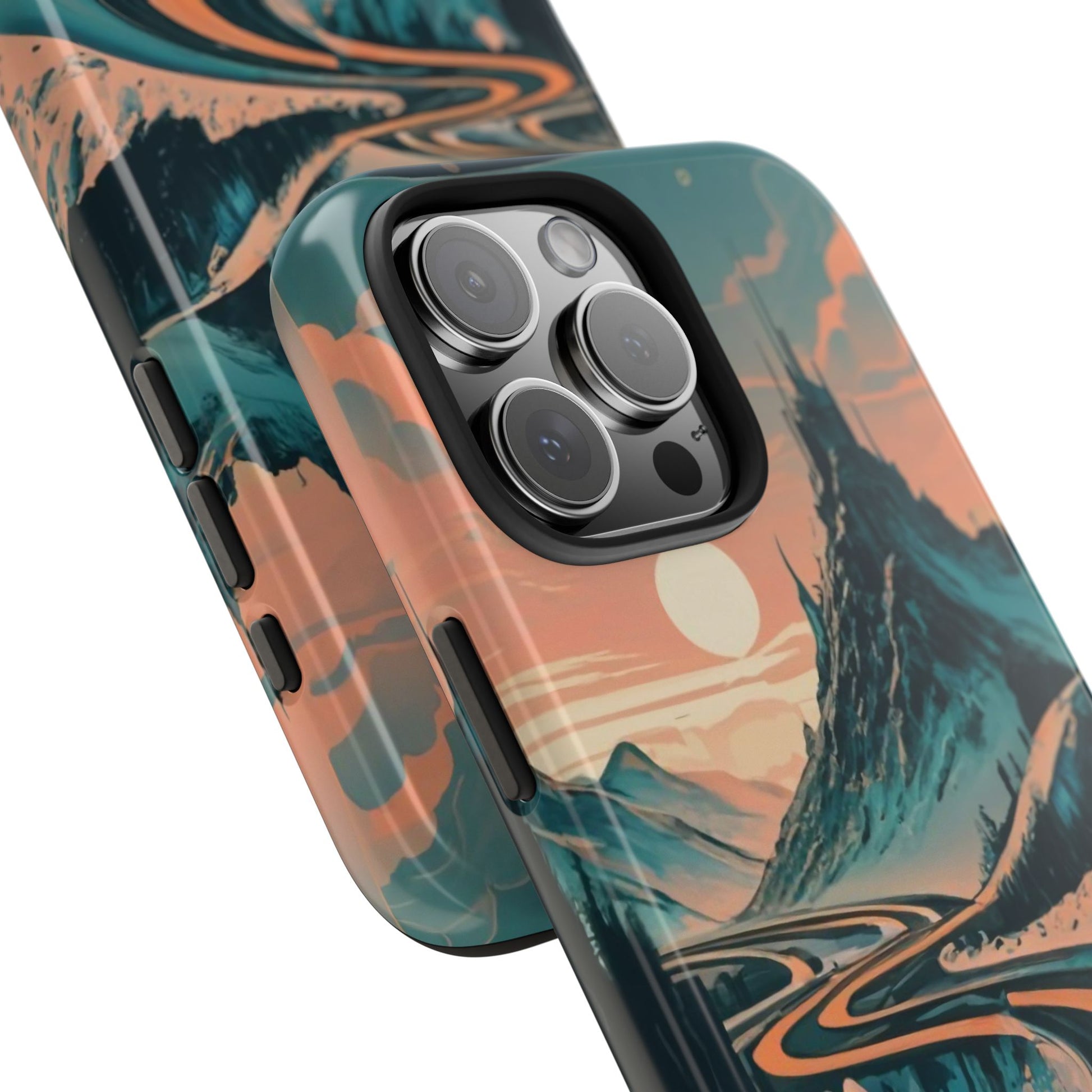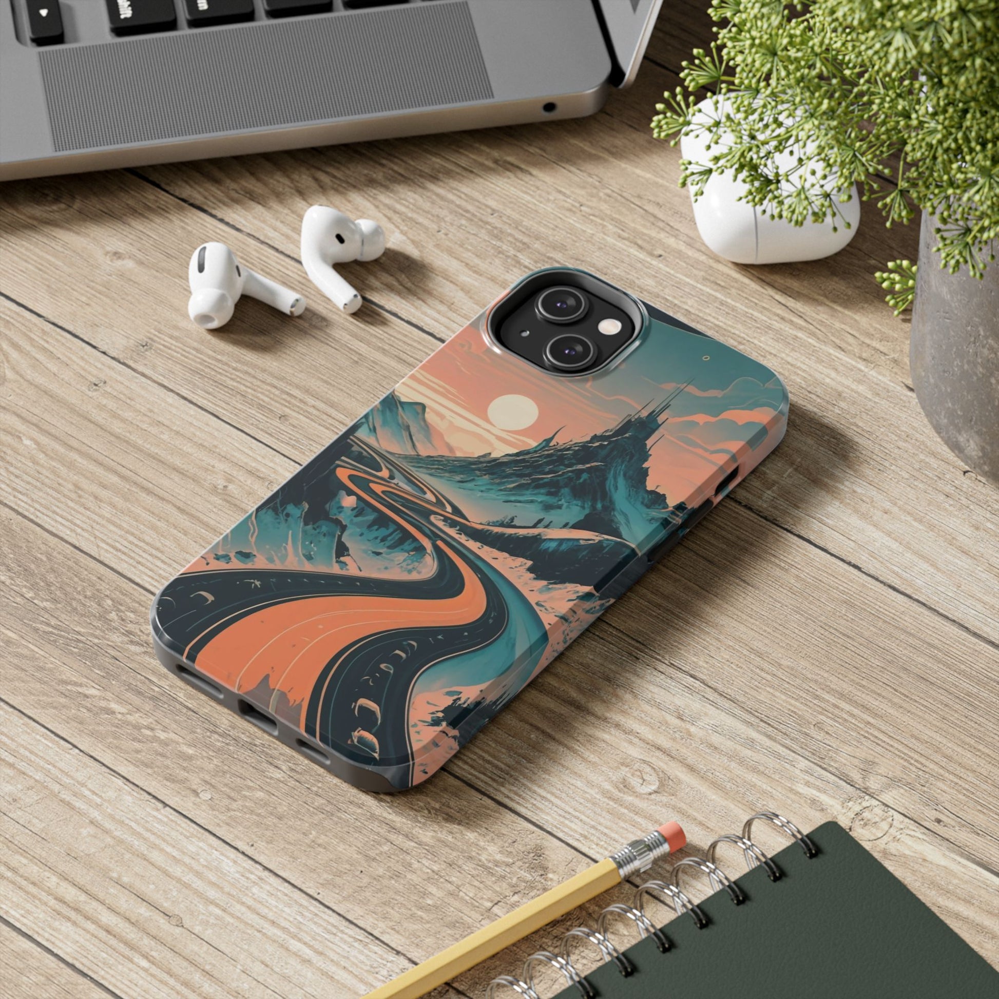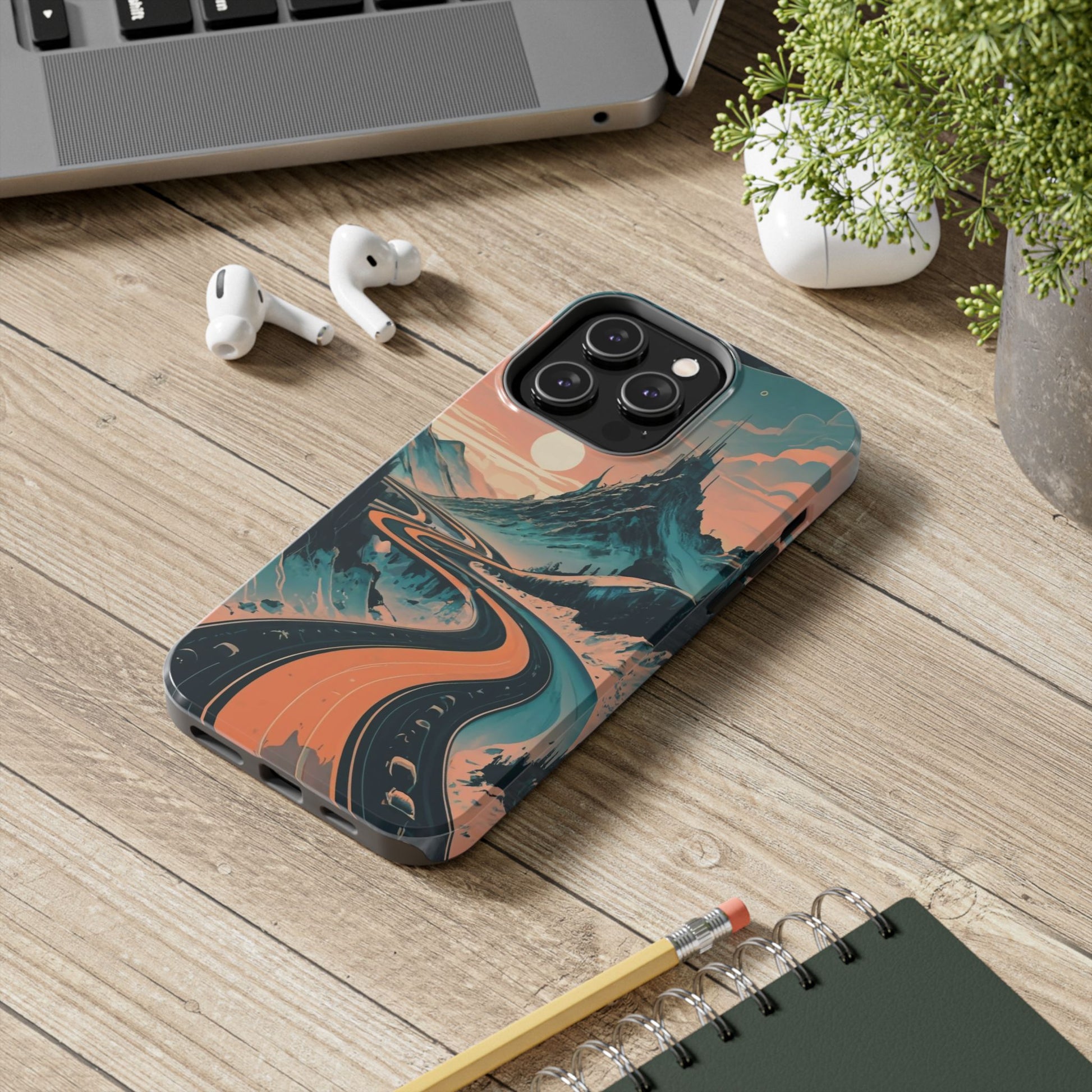Embark on a vivid journey with the Chromatic Journey Guardian Case, a tough and visually captivating accessory featuring artwork of a scenic highway winding through majestic mountain ranges in a vibrant palette of complementary colors. This unique design captures the exhilaration of travel and the stunning beauty of natural landscapes, making your device a symbol of adventure and exploration.Guardian Case Protection: Crafted for durability, the Chromatic Journey case is fortified with advanced Guardian technology, ensuring reliable protection against drops, impacts, and daily wear. Safeguard your device with strength and style.Scenic Highway and Mountain Range Artwork: The focal point of this phone case is a vibrant portrayal of a scenic highway winding through majestic mountain ranges. The bold and complementary color palette adds depth and dimension to the dynamic landscape, creating a visually stunning composition.Exhilarating Travel: The artwork captures the exhilaration of travel and adventure, inviting you to embark on a chromatic journey every time you use your device. The vibrant colors evoke a sense of excitement and wonder for exploring new horizons.Stylish and Functional: Beyond its artistic appeal, this phone case offers a perfect blend of style and functionality. The precise fit ensures easy access to buttons and ports, allowing for a seamless and user-friendly experience.Symbol of Exploration: The scenic highway and mountain range artwork symbolize the spirit of exploration and discovery, encouraging you to embrace new experiences and seek out the beauty of the world around you.Compatibility Across Models: Compatible with various phone models, including iPhone 11, 12, 13, 14, 15, and more. Explore our range of sizes to find the perfect match for your device. Embark on a vivid journey with the Chromatic Journey Guardian Case, an Etsy exclusive that captures the exhilaration of travel and the stunning beauty of natural landscapes, creating a harmonious fusion of style and protection for your device.
