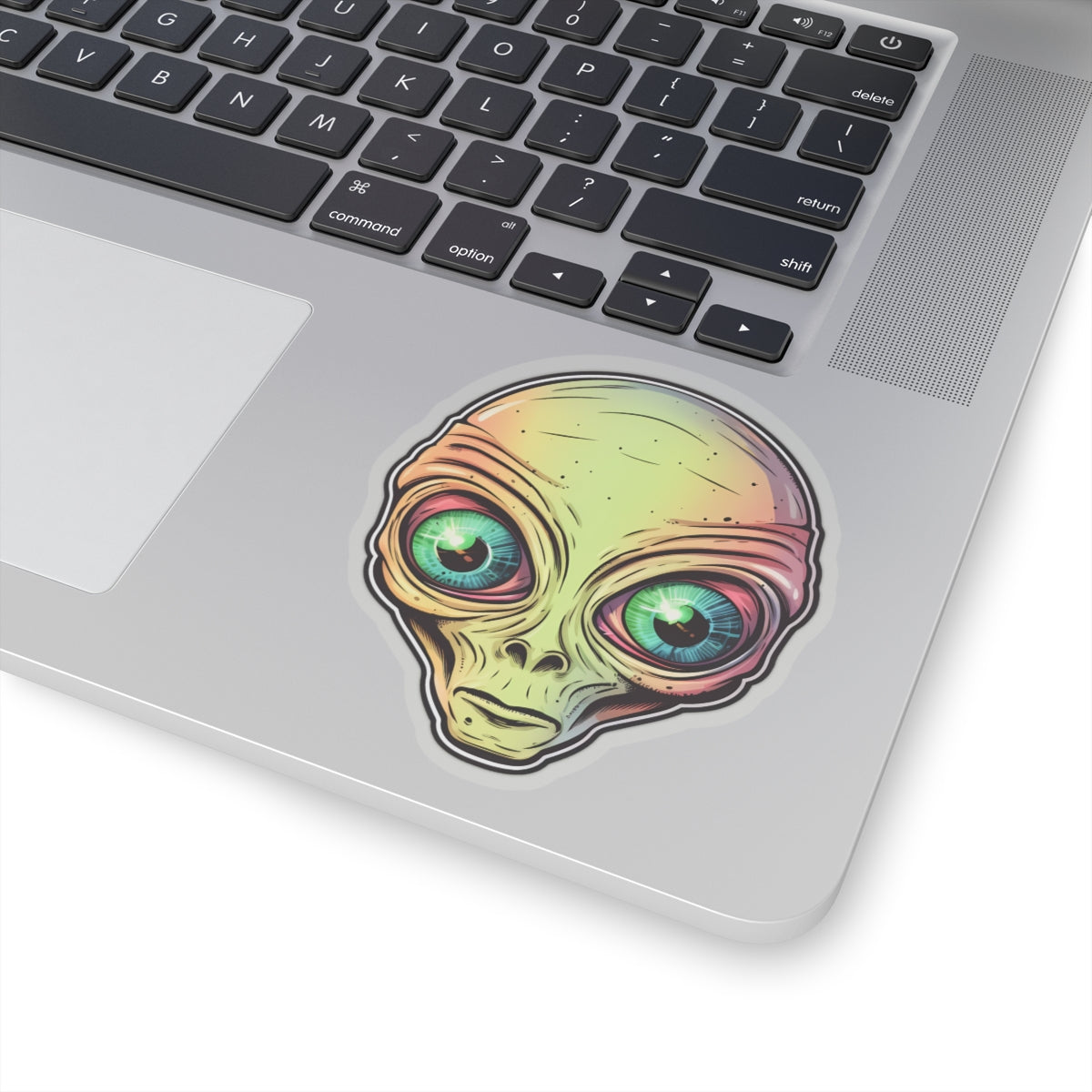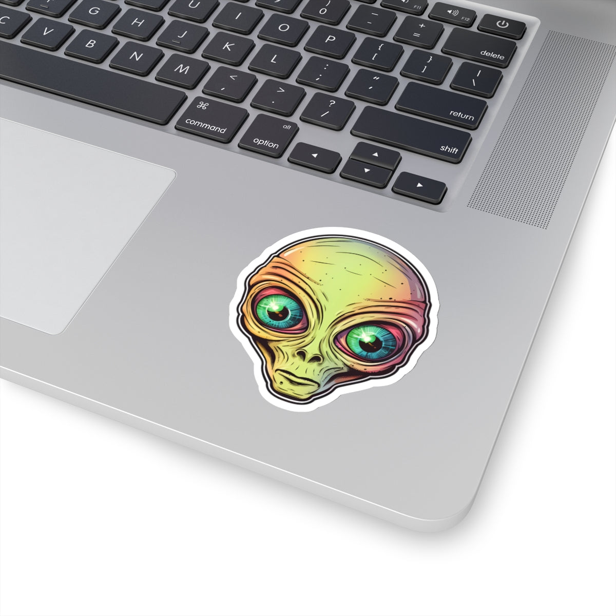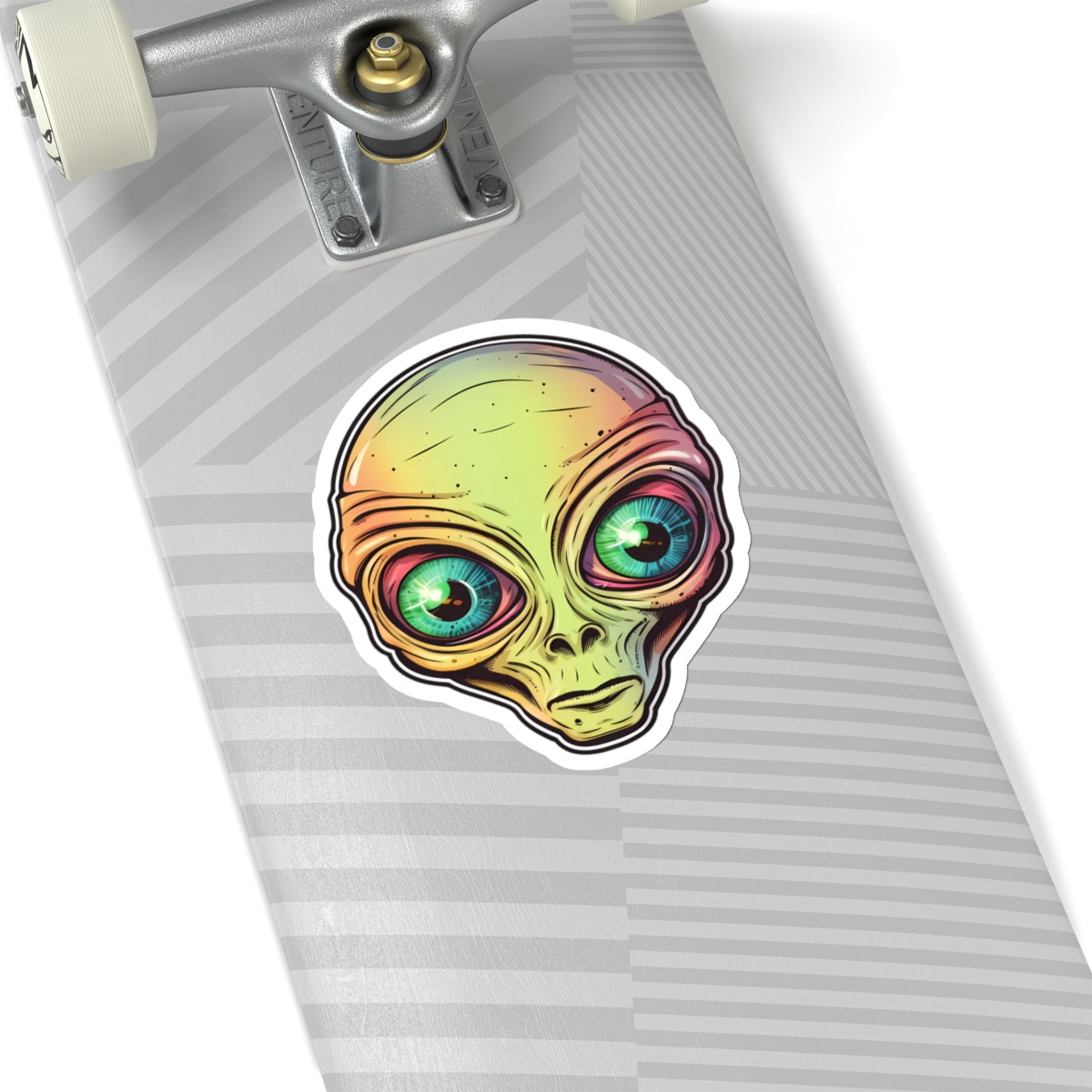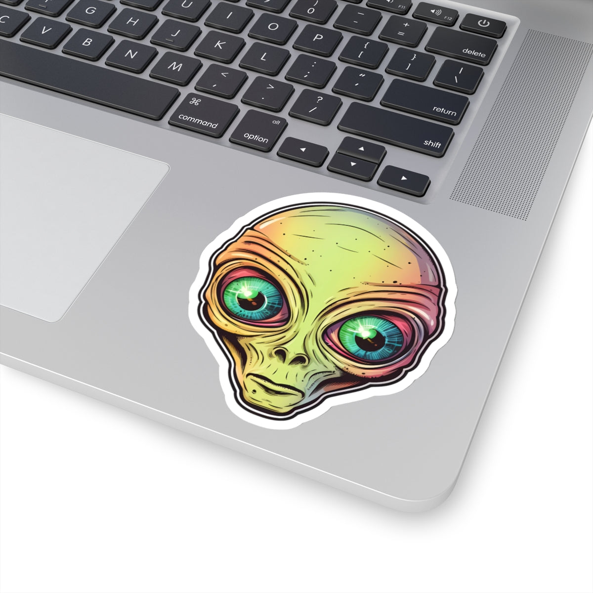 Unleash your extraterrestrial style with our Tan Alien Head Vinyl Sticker! This captivating sticker features the head of a tan-colored alien with mesmerizing blue orbs as eyes, adding a touch of otherworldly charm to laptops, notebooks, and more. Crafted from durable vinyl with strong 3M adhesive for long-lasting attachment, this sticker is perfect for sci-fi enthusiasts and those who dare to explore the unknown. The kiss-cut design allows for easy customization of shapes, and it's available in multiple sizes to suit your preferences. With a thickness of 0.004" (1mm) and a glossy finish, this sticker brings an intergalactic flair to any surface. Please note, these stickers are not waterproof but are perfect for indoor decor.