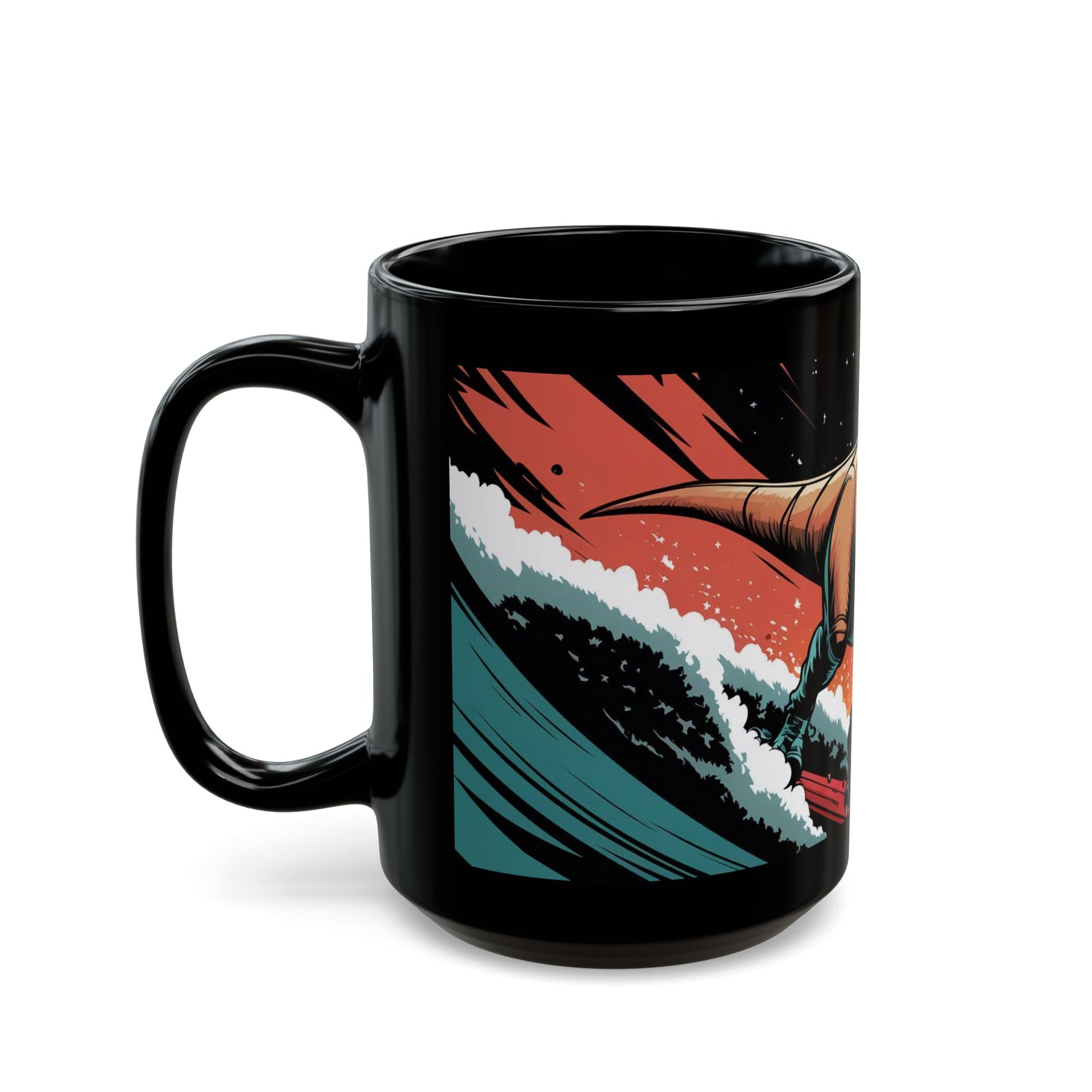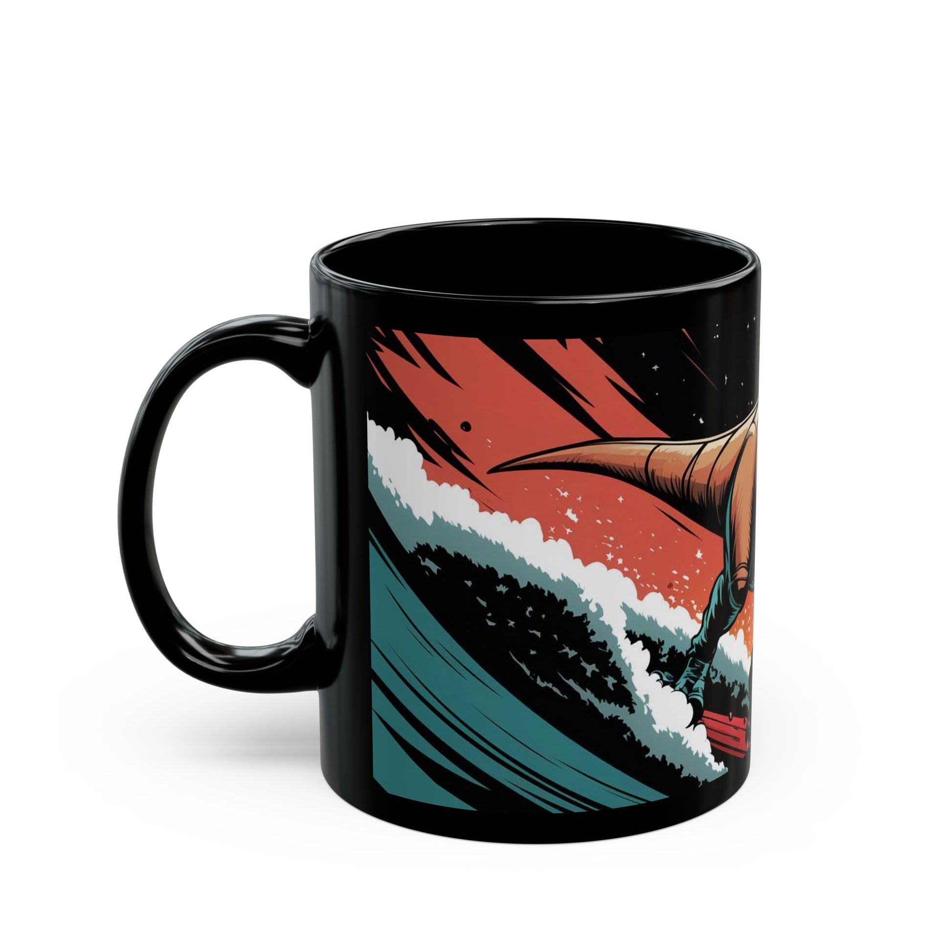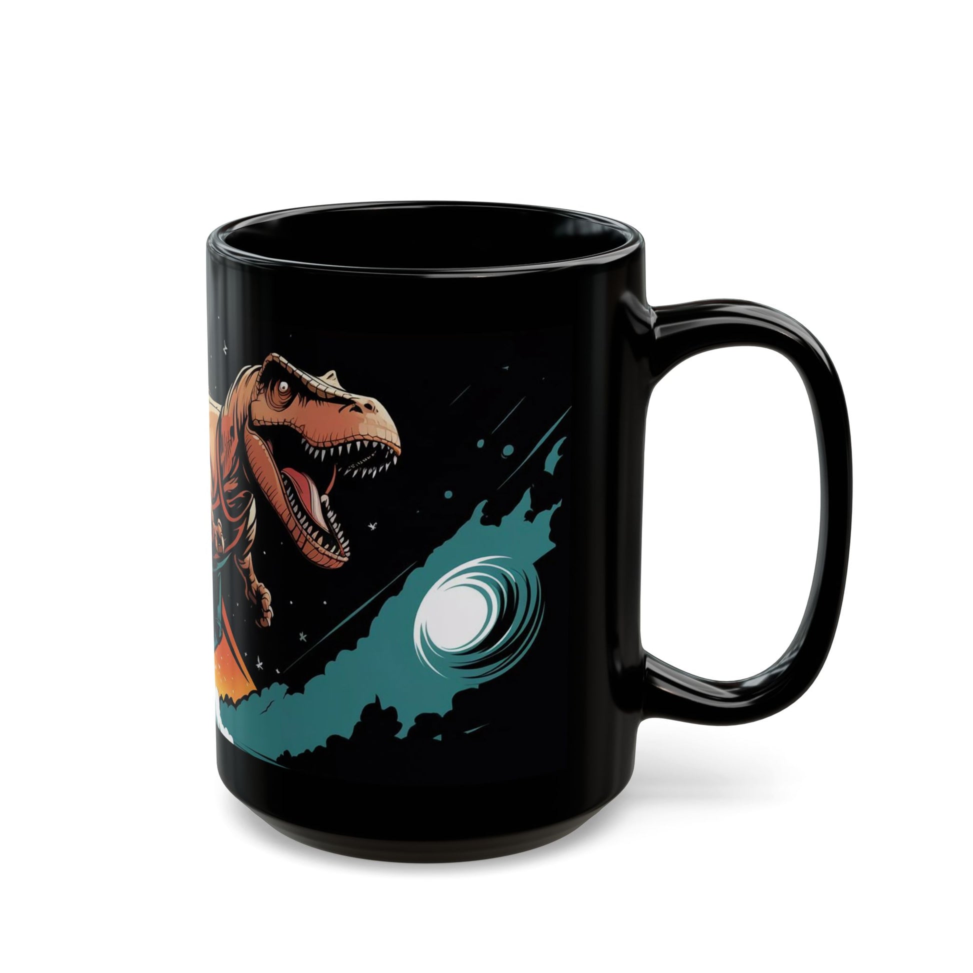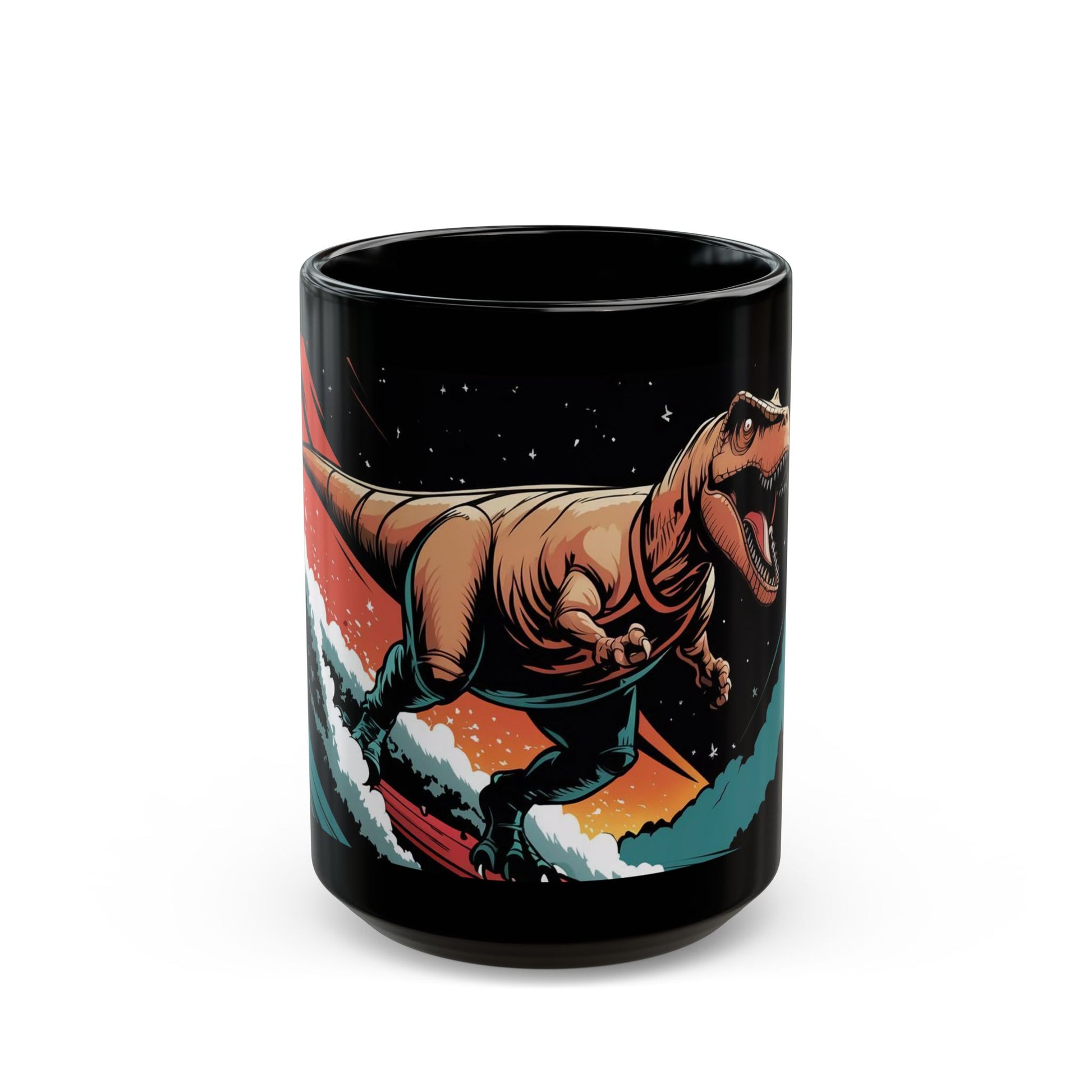 Cosmic Surfing T-Rex Mug – Bold Comic Book Style Adventure
