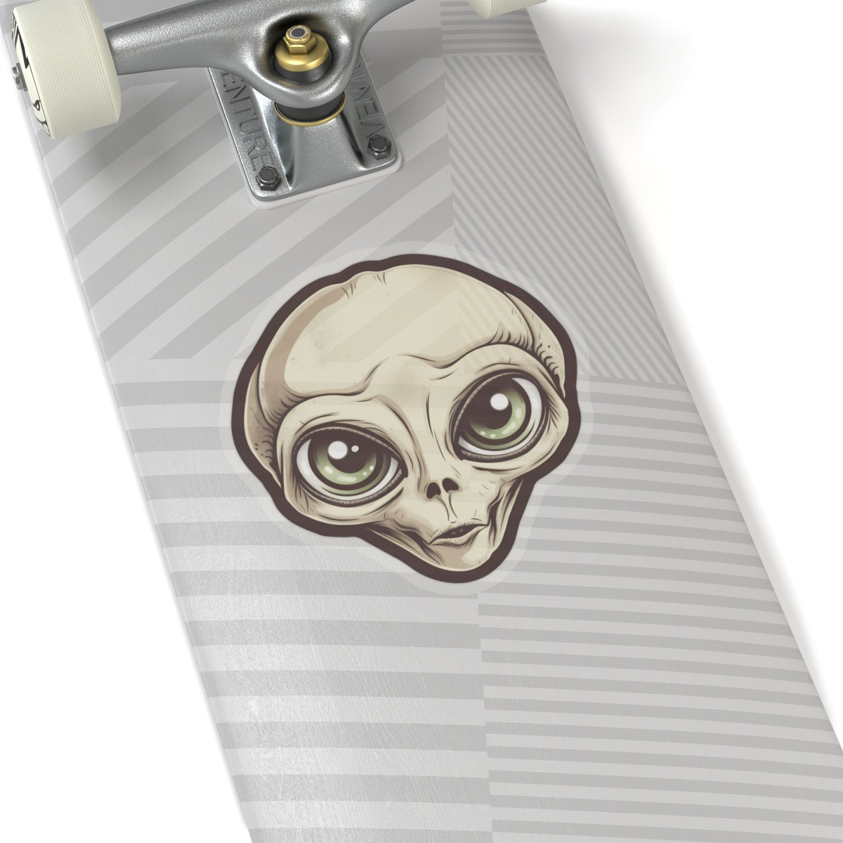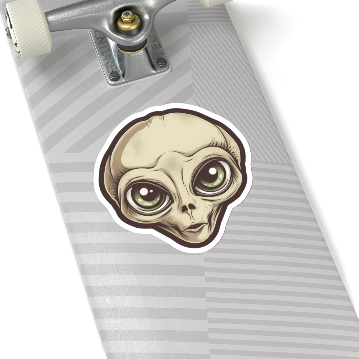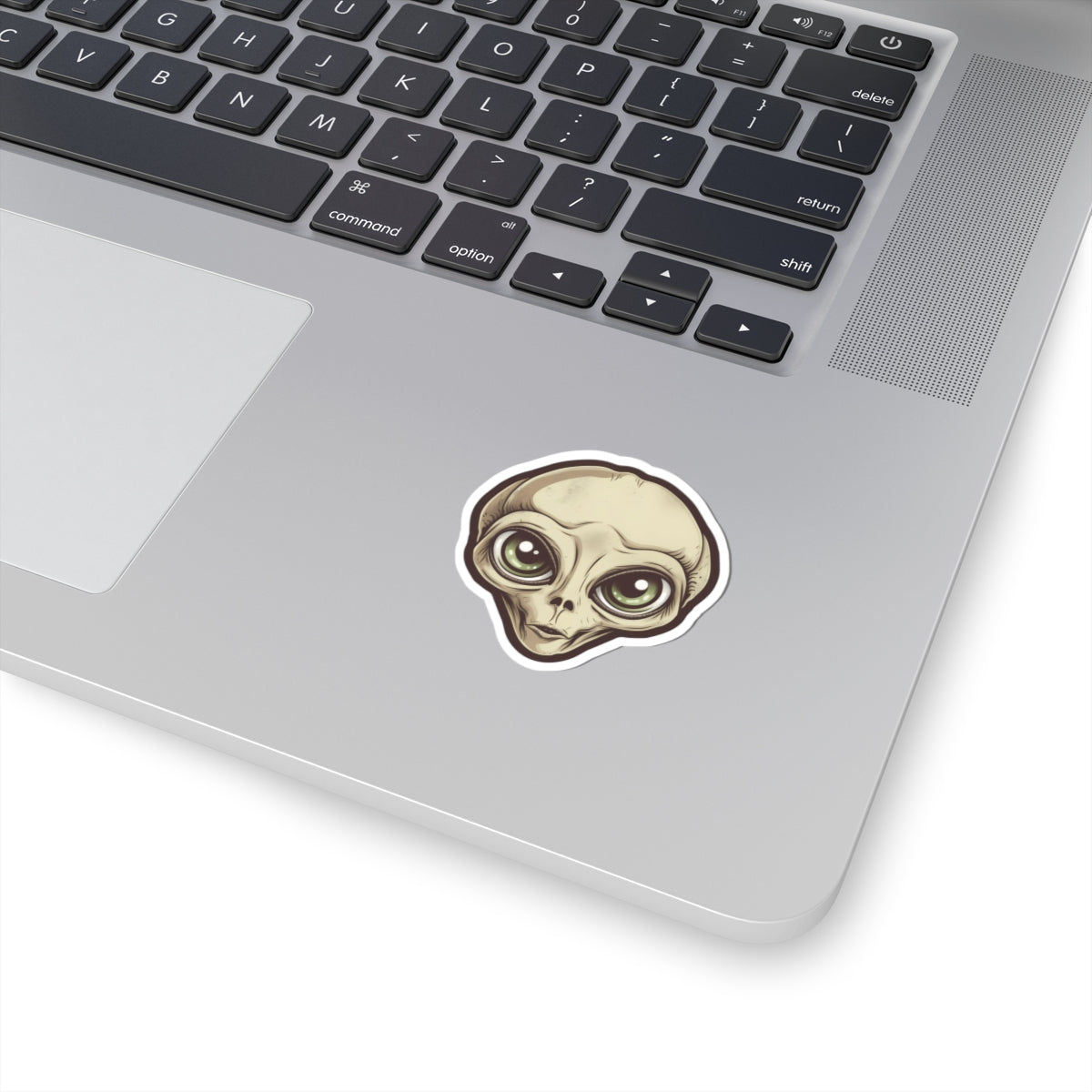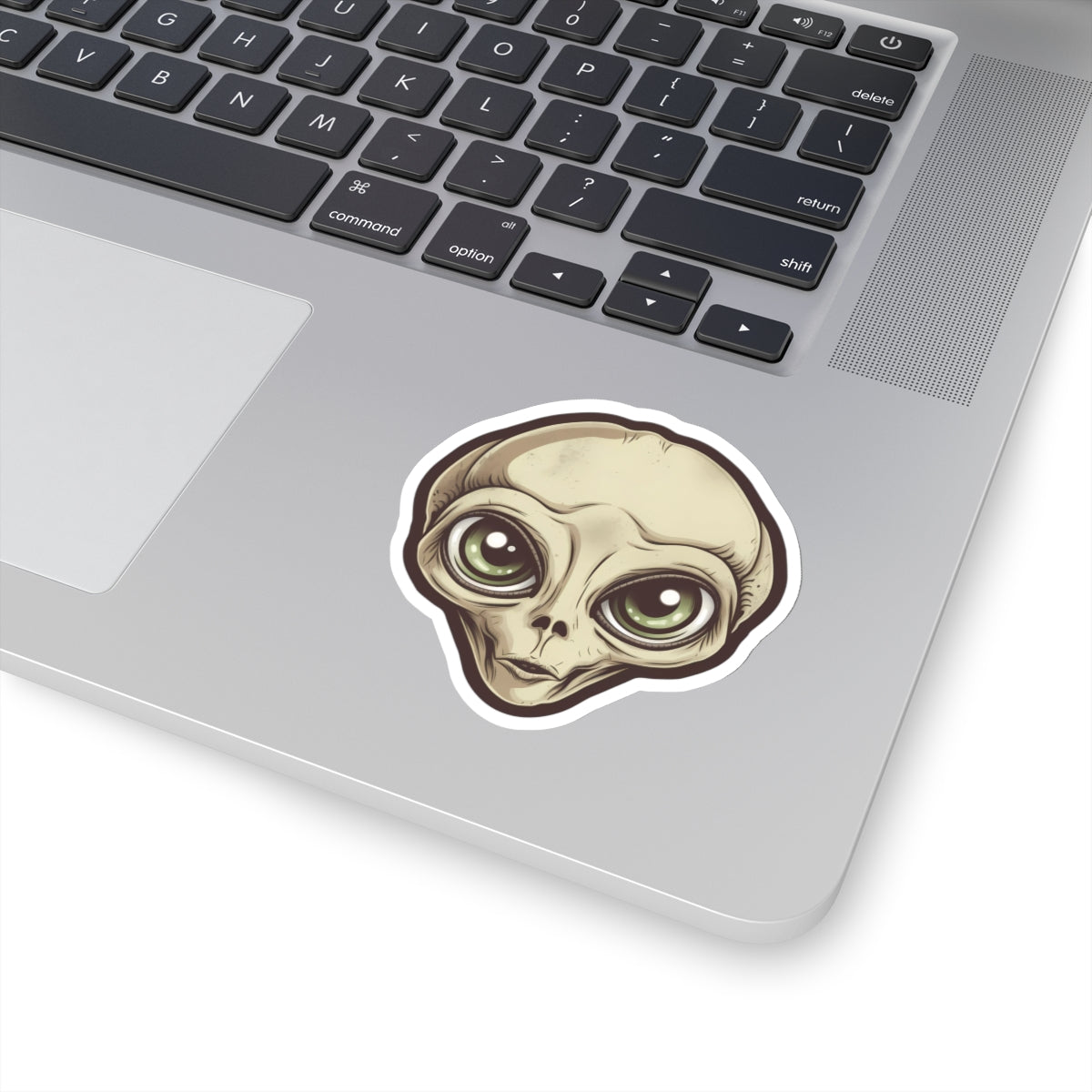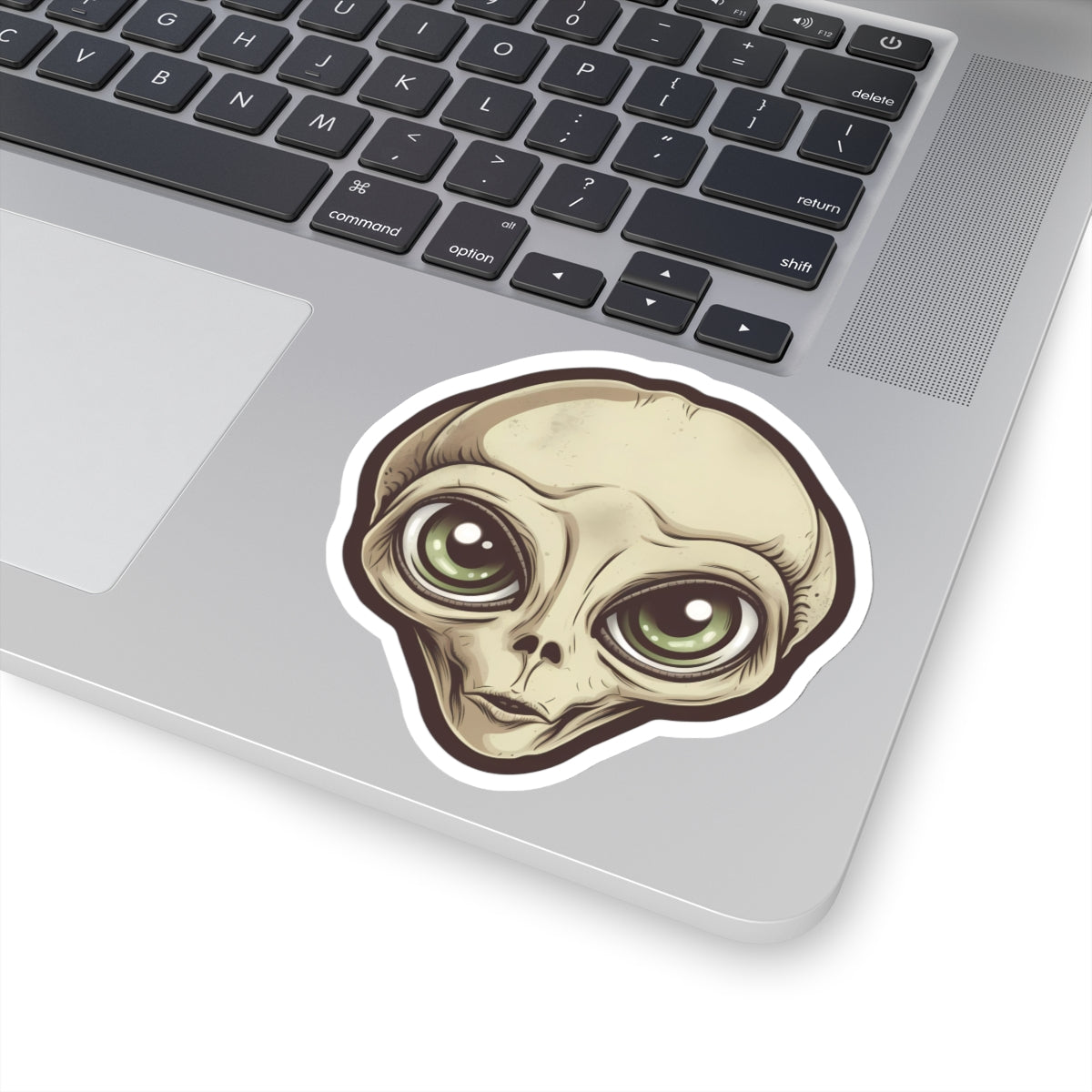 Unleash your extraterrestrial style with our Tan Alien Head Vinyl Sticker! This captivating sticker features the head of a tan-colored alien with mesmerizing blue orbs as eyes, adding a touch of otherworldly charm to laptops, notebooks, and more. Crafted from durable vinyl with strong 3M adhesive for long-lasting attachment, this sticker is perfect for sci-fi enthusiasts and those who dare to explore the unknown. The kiss-cut design allows for easy customization of shapes, and it's available in multiple sizes to suit your preferences. With a thickness of 0.004" (1mm) and a glossy finish, this sticker brings an intergalactic flair to any surface. Please note, these stickers are not waterproof but are perfect for indoor decor.