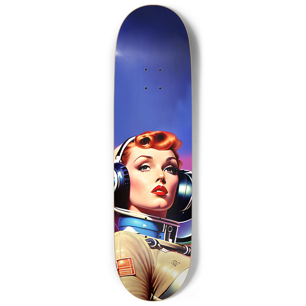 Made with premium 7-ply 100% Canadian maple wood, this skateboard is designed to provide a smooth and stable ride, making it ideal for all skill levels. The cutting-edge, high-resolution graphics are inspired by retro-futurism, giving it a unique and eye-catching look that is sure to turn heads.