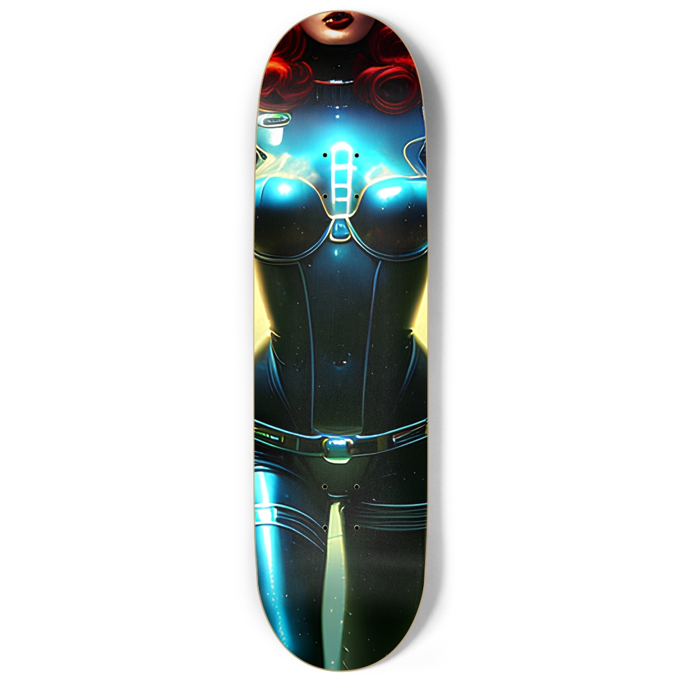 The Galactic Glam Girl Nakotris 9 Inch Popsicle Skateboard takes you on a trip back to the futuristic retro space era. With its eye-catching graphics inspired by space-age fashion and technology, this skateboard is perfect for riders who want to stand out from the crowd. The 7-ply 100% Canadian maple wood construction provides a sturdy foundation for all your cosmic cruising adventures. Whether you're shredding the streets or soaring through the galaxy, the Galactic Glam Girl Nakotris skateboard is the perfect choice for those who want to add a touch of retro-space style to their ride. So, gear up, strap on your helmet, and get ready to blast off into a retro-futuristic skateboarding experience like no other.