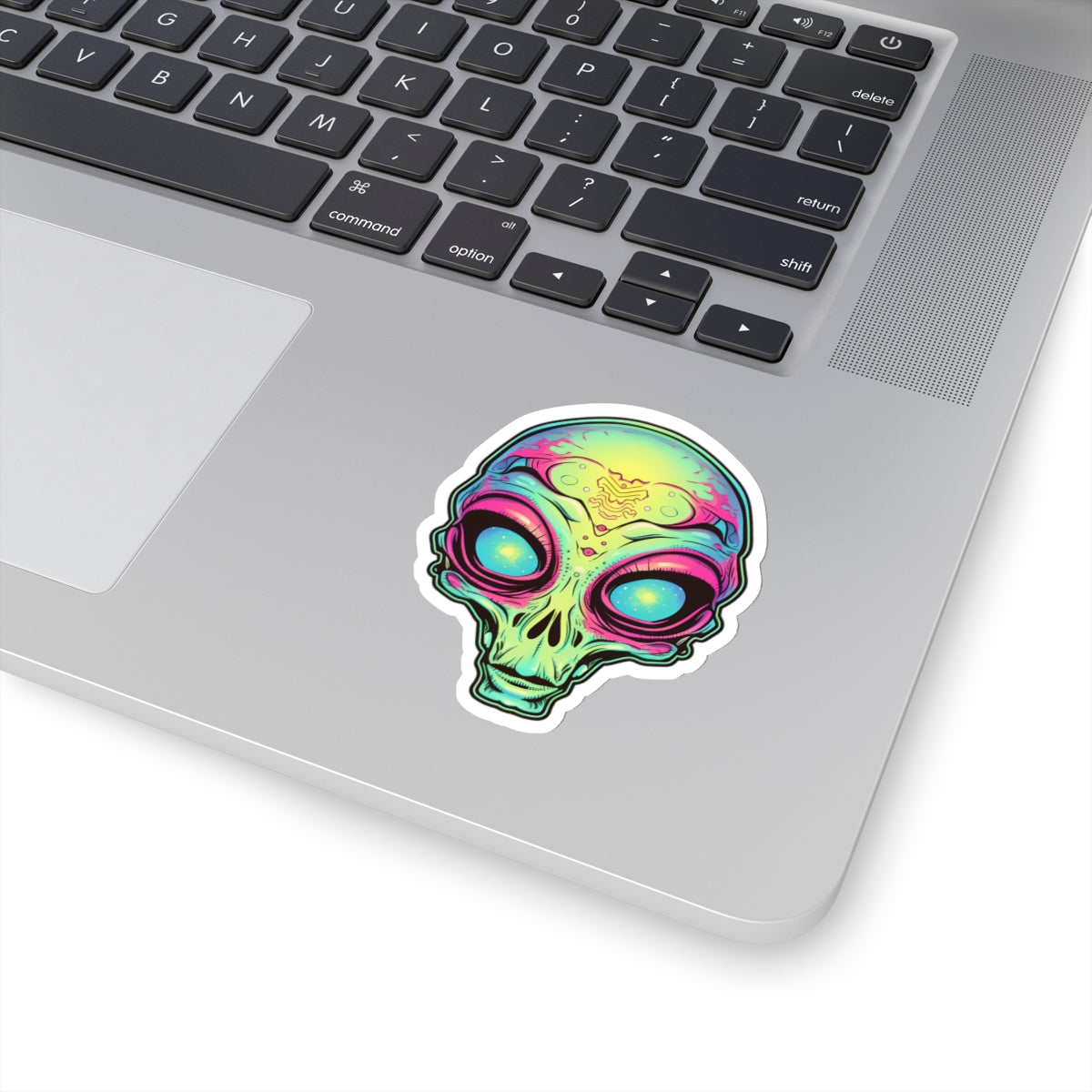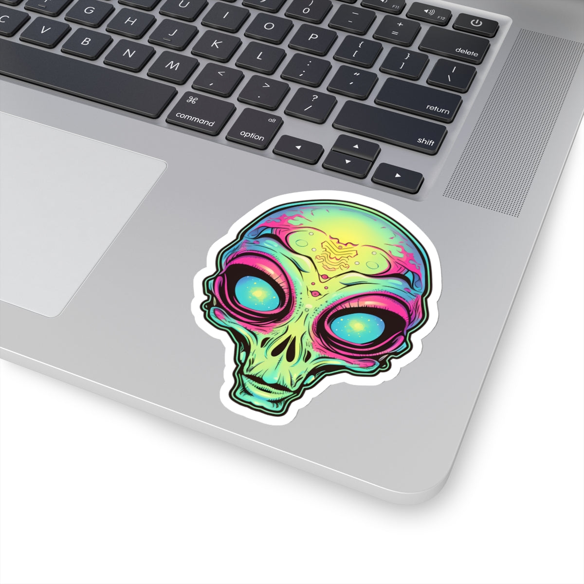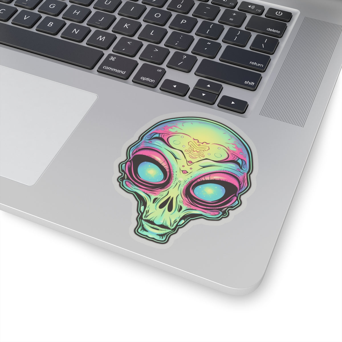 Unleash your extraterrestrial style with our Tan Alien Head Vinyl Sticker! This captivating sticker features the head of a tan-colored alien with mesmerizing blue orbs as eyes, adding a touch of otherworldly charm to laptops, notebooks, and more. Crafted from durable vinyl with strong 3M adhesive for long-lasting attachment, this sticker is perfect for sci-fi enthusiasts and those who dare to explore the unknown. The kiss-cut design allows for easy customization of shapes, and it's available in multiple sizes to suit your preferences. With a thickness of 0.004" (1mm) and a glossy finish, this sticker brings an intergalactic flair to any surface. Please note, these stickers are not waterproof but are perfect for indoor decor.