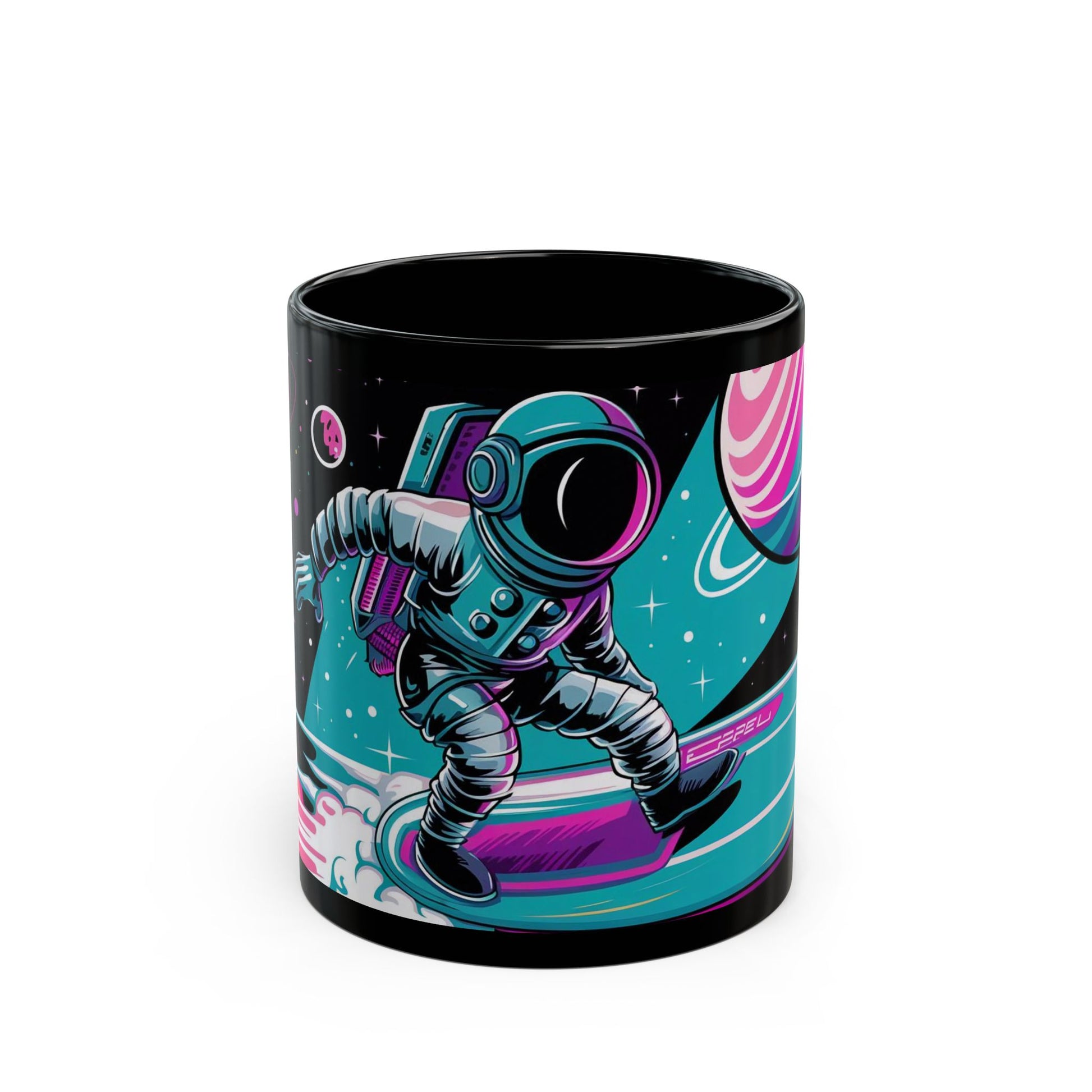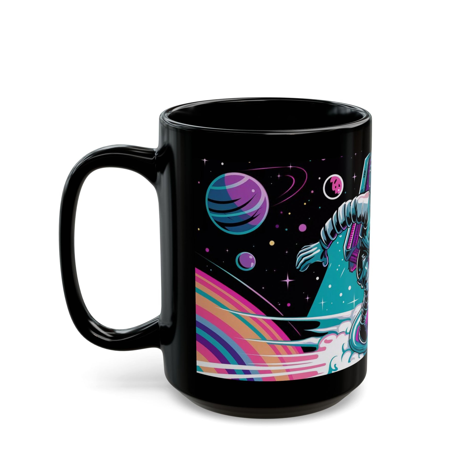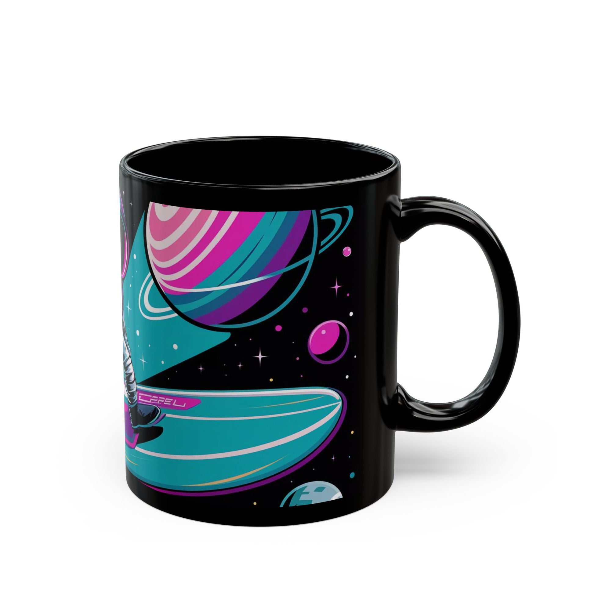 Galactic Surf Adventure Mug – Astronaut Riding Waves in Space