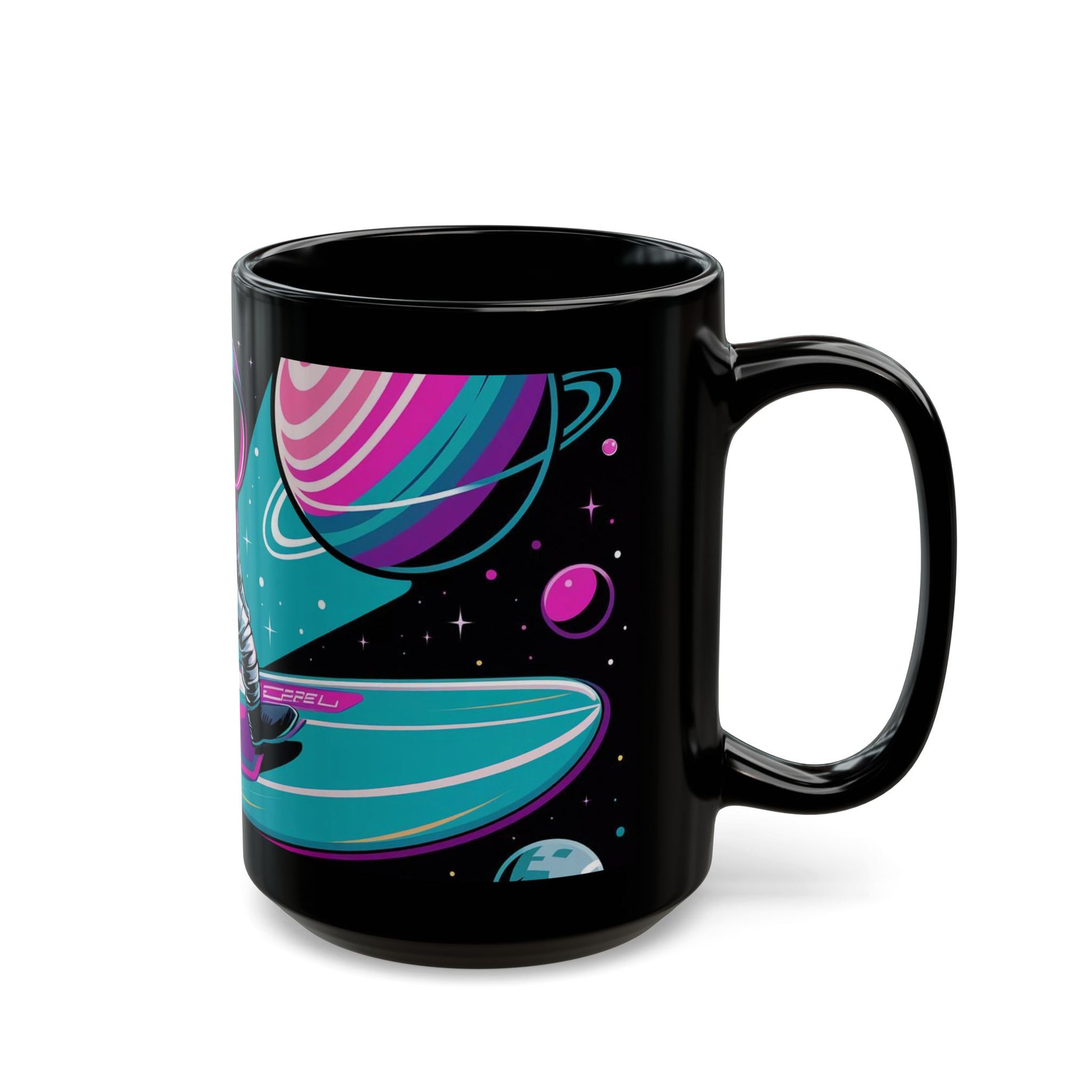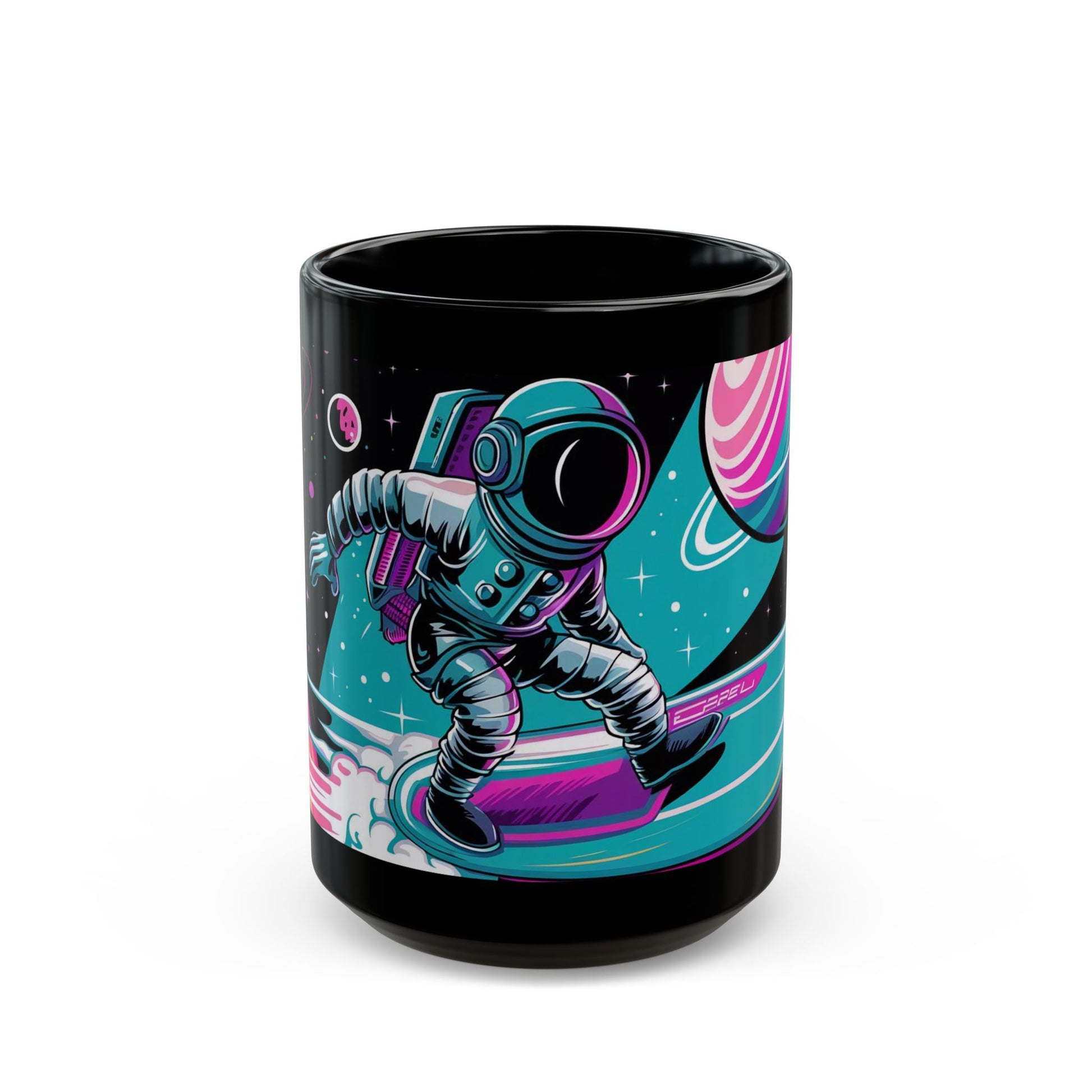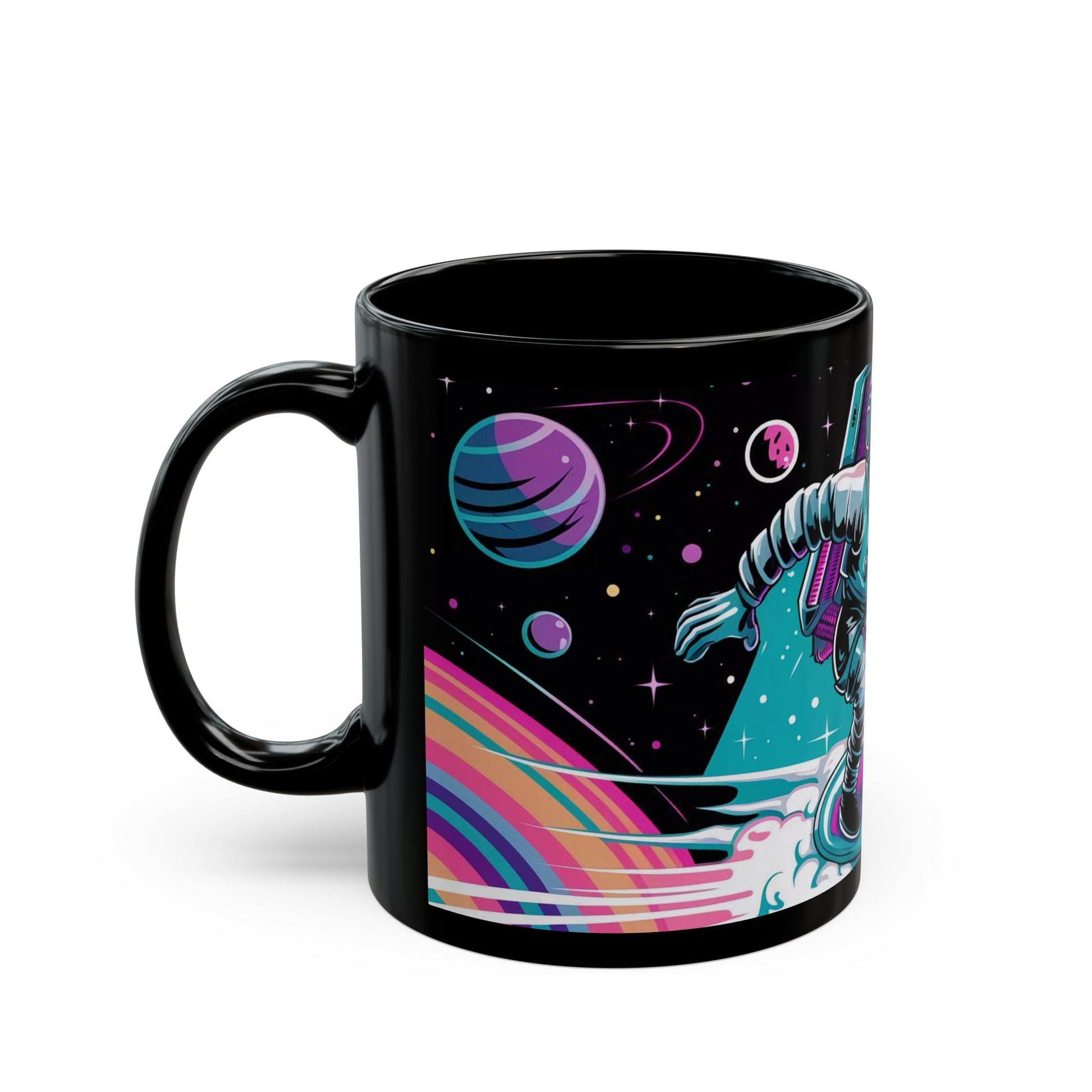 Galactic Surf Adventure Mug – Astronaut Riding Waves in Space