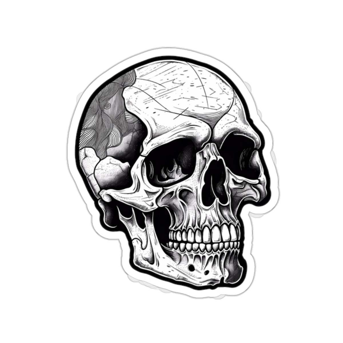 Embrace the classic contrast of our Monochrome Skull Sticker! This striking sticker features a black and white skull design, perfect for