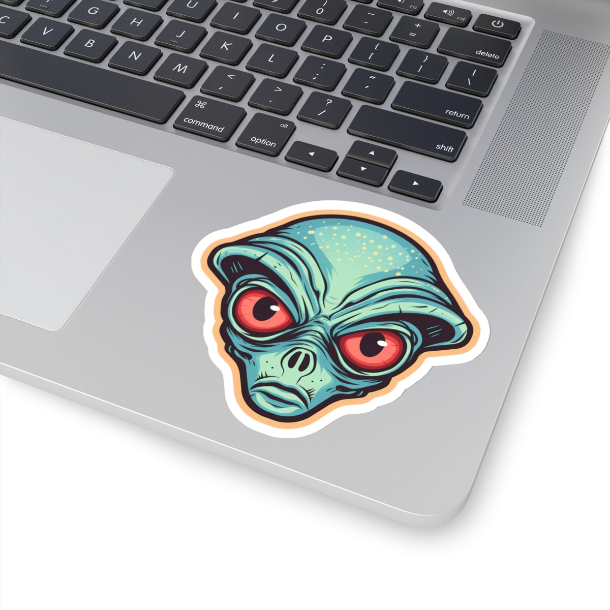 Unleash your extraterrestrial style with our Tan Alien Head Vinyl Sticker! This captivating sticker features the head of a tan-colored alien with mesmerizing blue orbs as eyes, adding a touch of otherworldly charm to laptops, notebooks, and more. Crafted from durable vinyl with strong 3M adhesive for long-lasting attachment, this sticker is perfect for sci-fi enthusiasts and those who dare to explore the unknown. The kiss-cut design allows for easy customization of shapes, and it's available in multiple sizes to suit your preferences. With a thickness of 0.004" (1mm) and a glossy finish, this sticker brings an intergalactic flair to any surface. Please note, these stickers are not waterproof but are perfect for indoor decor.