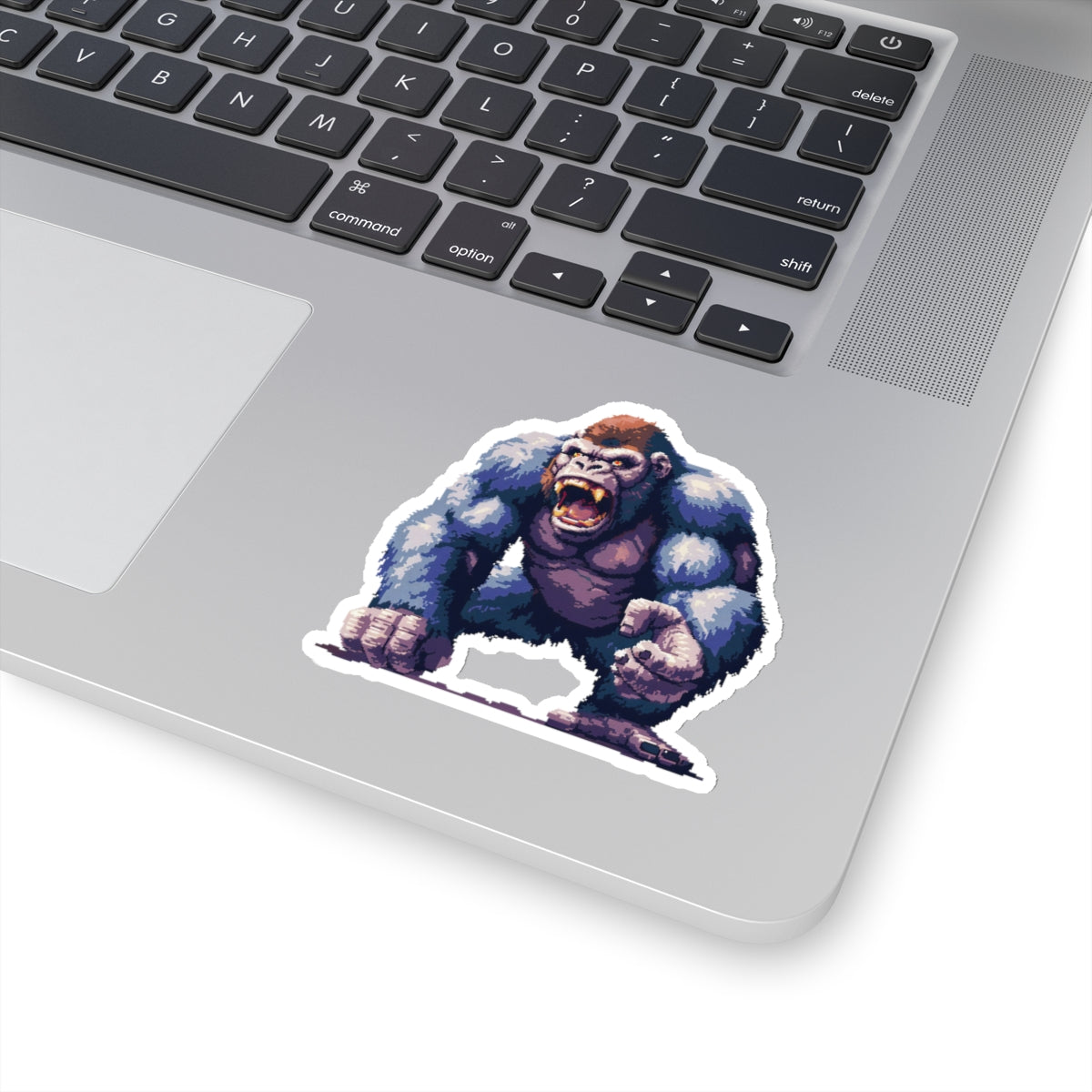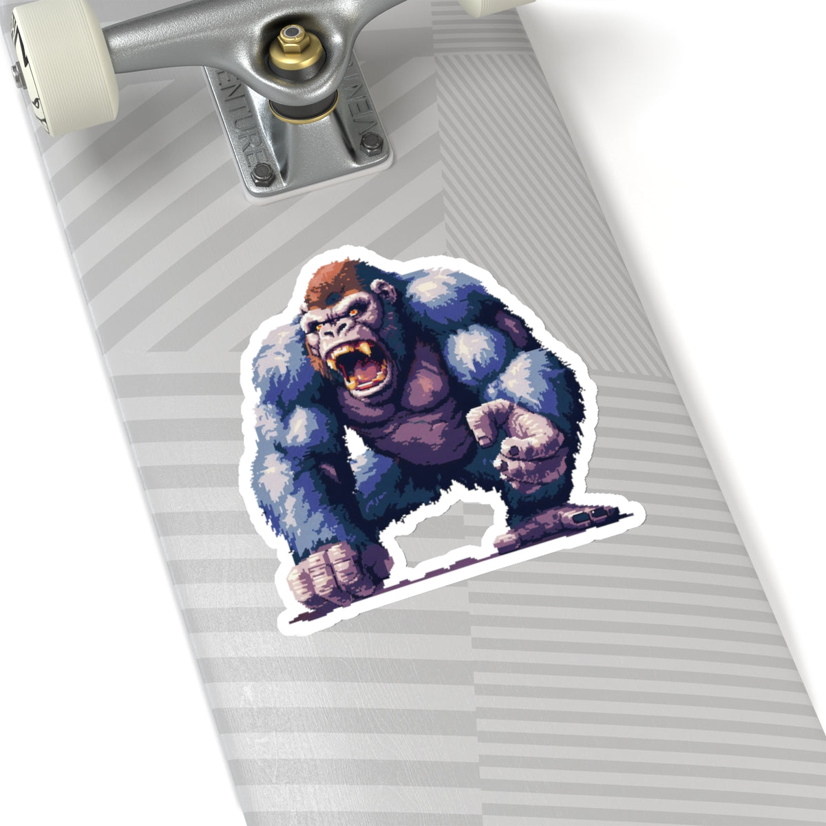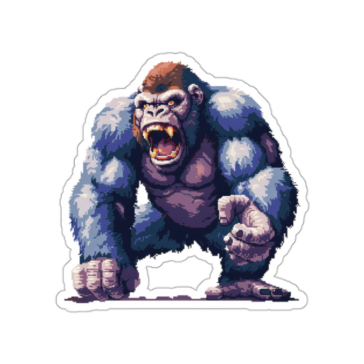 Unleash the fury of the jungle with our Pixelated Angry Ape Titan Vinyl Sticker! This striking sticker features a pixelated rendition of a fierce ape titan, depicted in a moment of fury with its mouth wide open in anger. Crafted with intricate detail, this design embodies the raw power and ferocity of the jungle's guardian. Perfect for fans of classic cinema and lovers of pixel art, this sticker adds a touch of retro charm to laptops, notebooks, and more. Crafted from durable vinyl with strong 3M adhesive for long-lasting attachment, the kiss-cut design allows for easy customization of shapes. Available in multiple sizes to suit your preferences, with a thickness of 0.004" (1mm) and a glossy finish, this sticker brings the formidable presence of the angry ape titan to any surface. Please note, these stickers are not waterproof but are perfect for indoor decor.