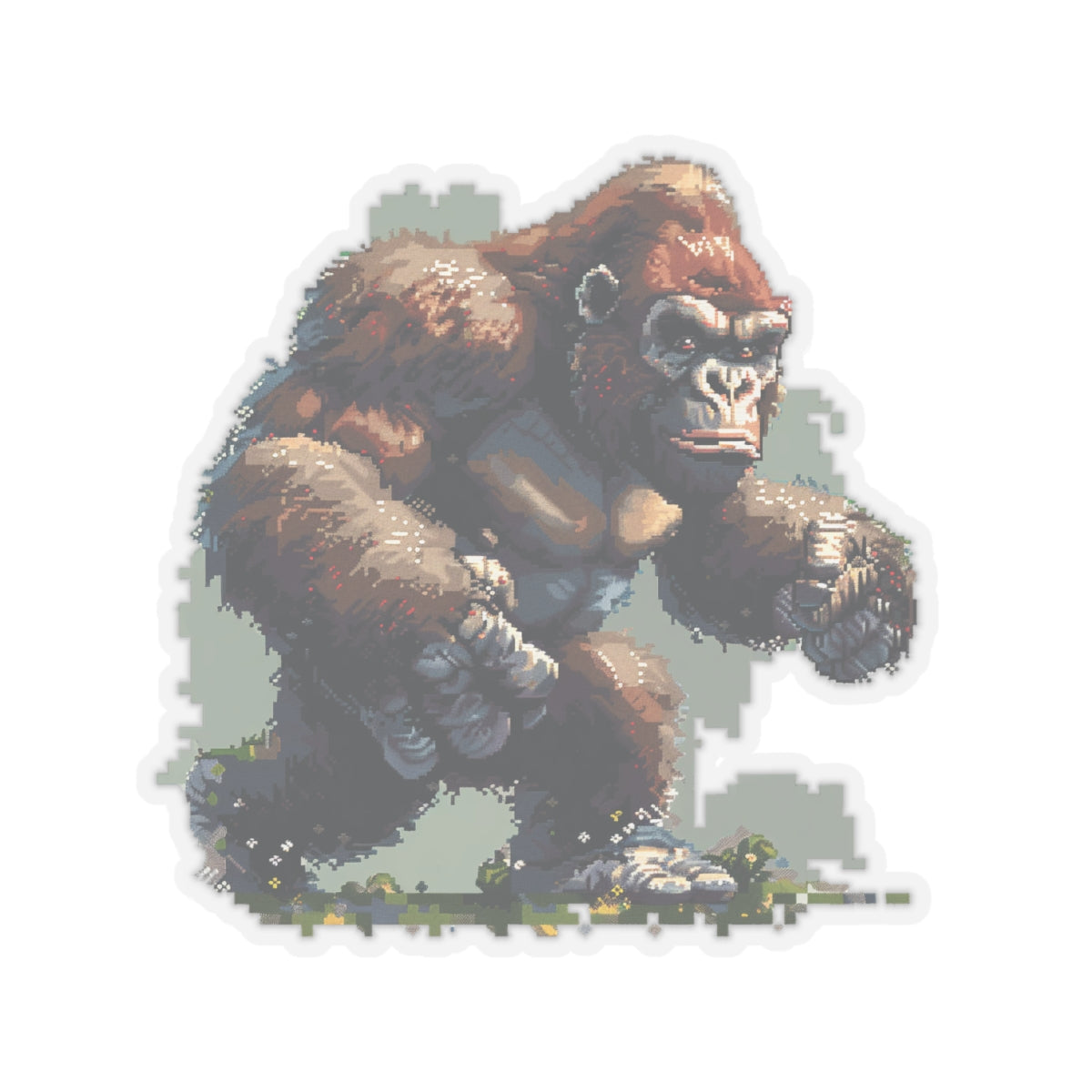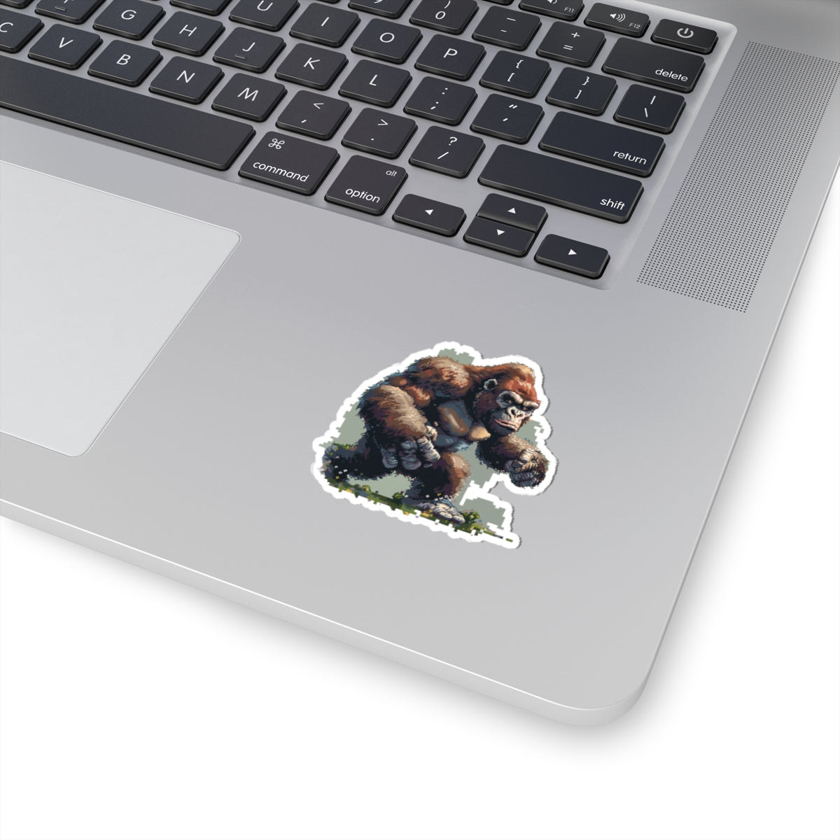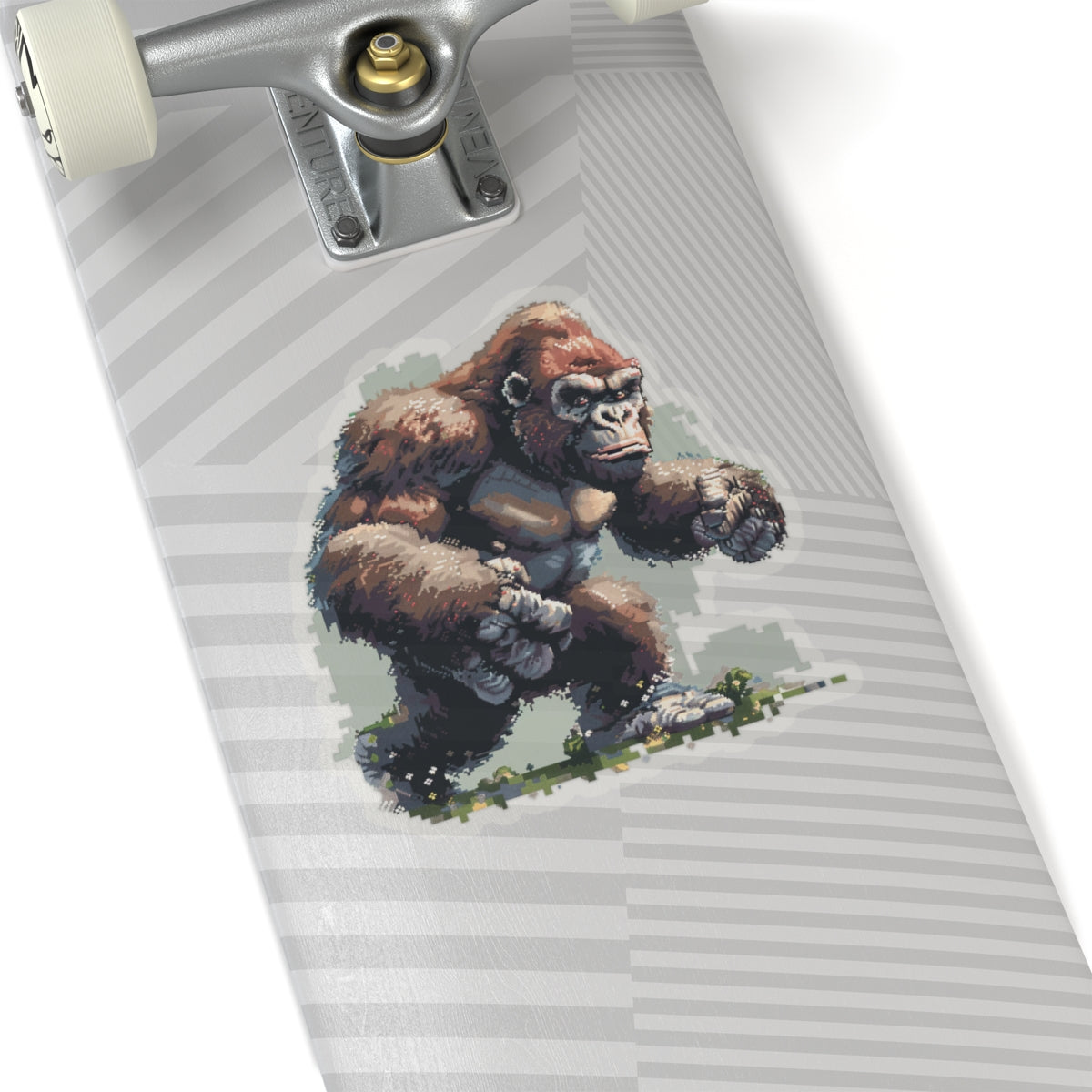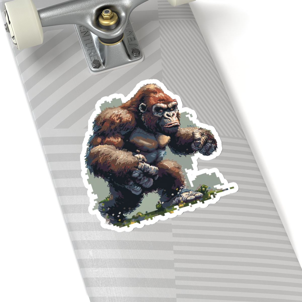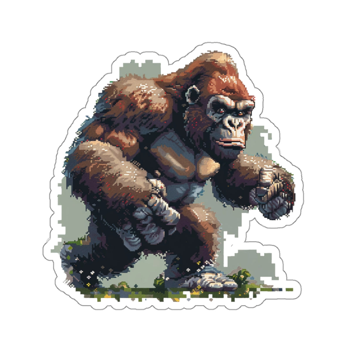 Experience the thrill of the jungle with our Pixelated Battle-Ready Ape Runner Vinyl Sticker! This dynamic sticker features a pixelated rendition of a hulking ape, depicted in full stride as it charges into battle with its eyes gleaming in readiness. Crafted with intricate detail, this design captures the raw power and ferocity of the jungle. Perfect for fans of classic cinema and lovers of pixel art, this sticker adds a touch of retro charm to laptops, notebooks, and more. Crafted from durable vinyl with strong 3M adhesive for long-lasting attachment, the kiss-cut design allows for easy customization of shapes. Available in multiple sizes to suit your preferences, with a thickness of 0.004" (1mm) and a glossy finish, this sticker brings the mighty presence of the jungle to any surface. Please note, these stickers are not waterproof but are perfect for indoor decor.