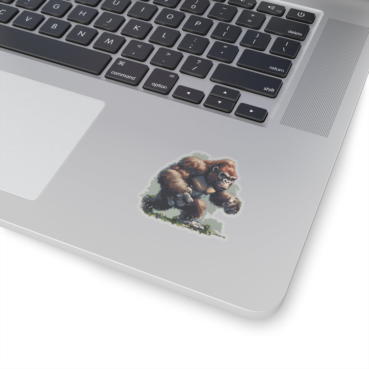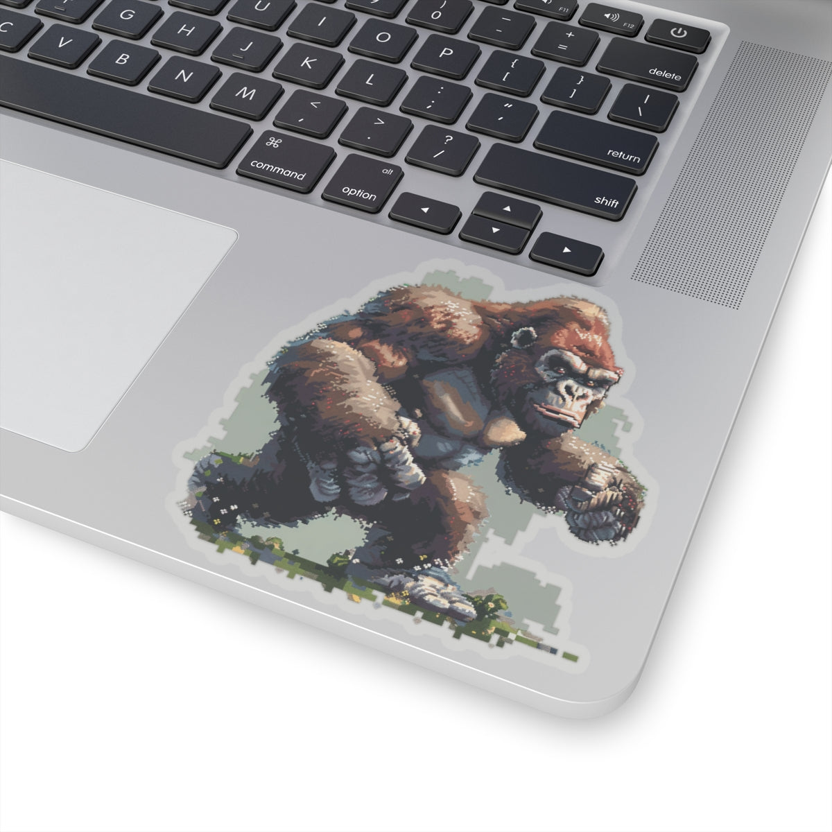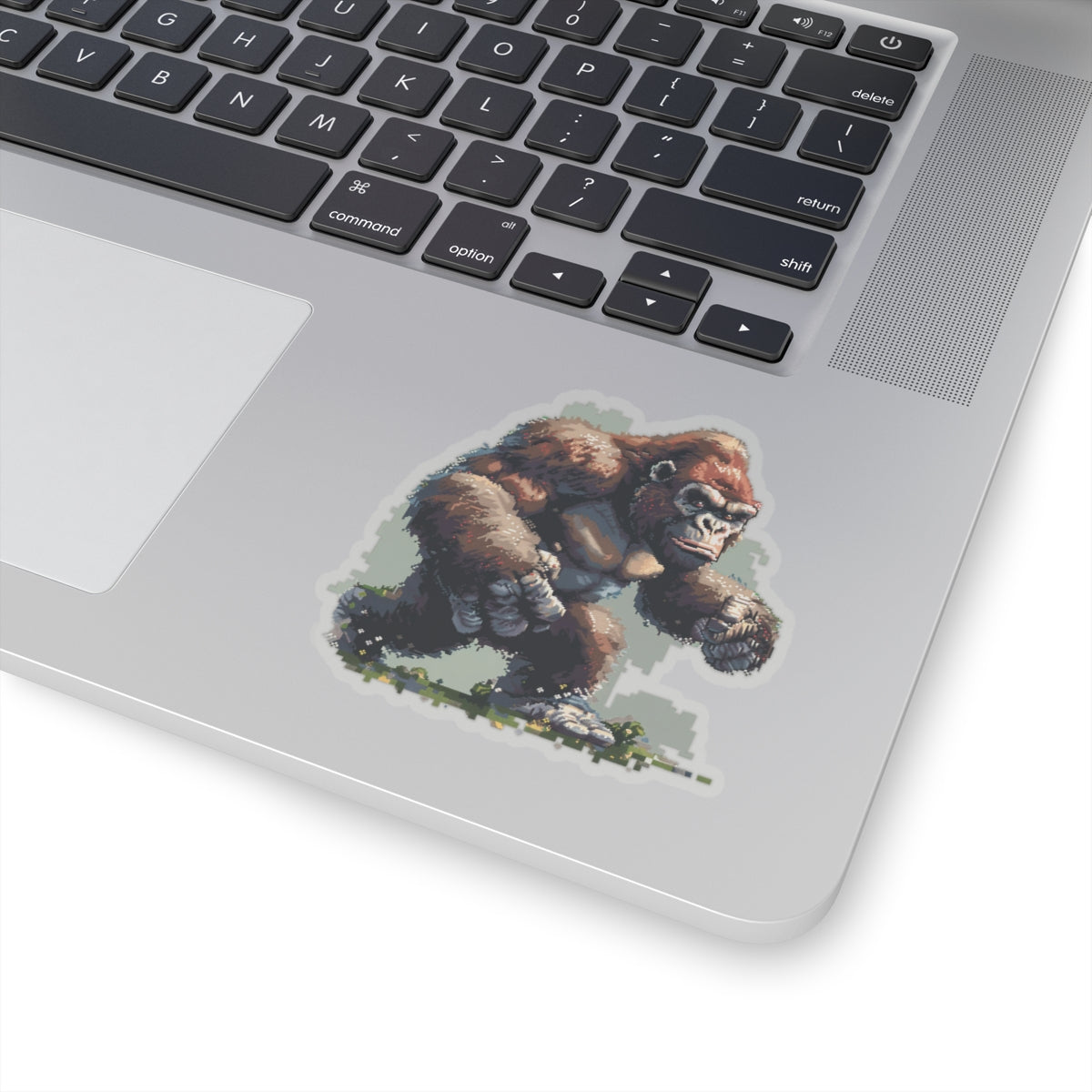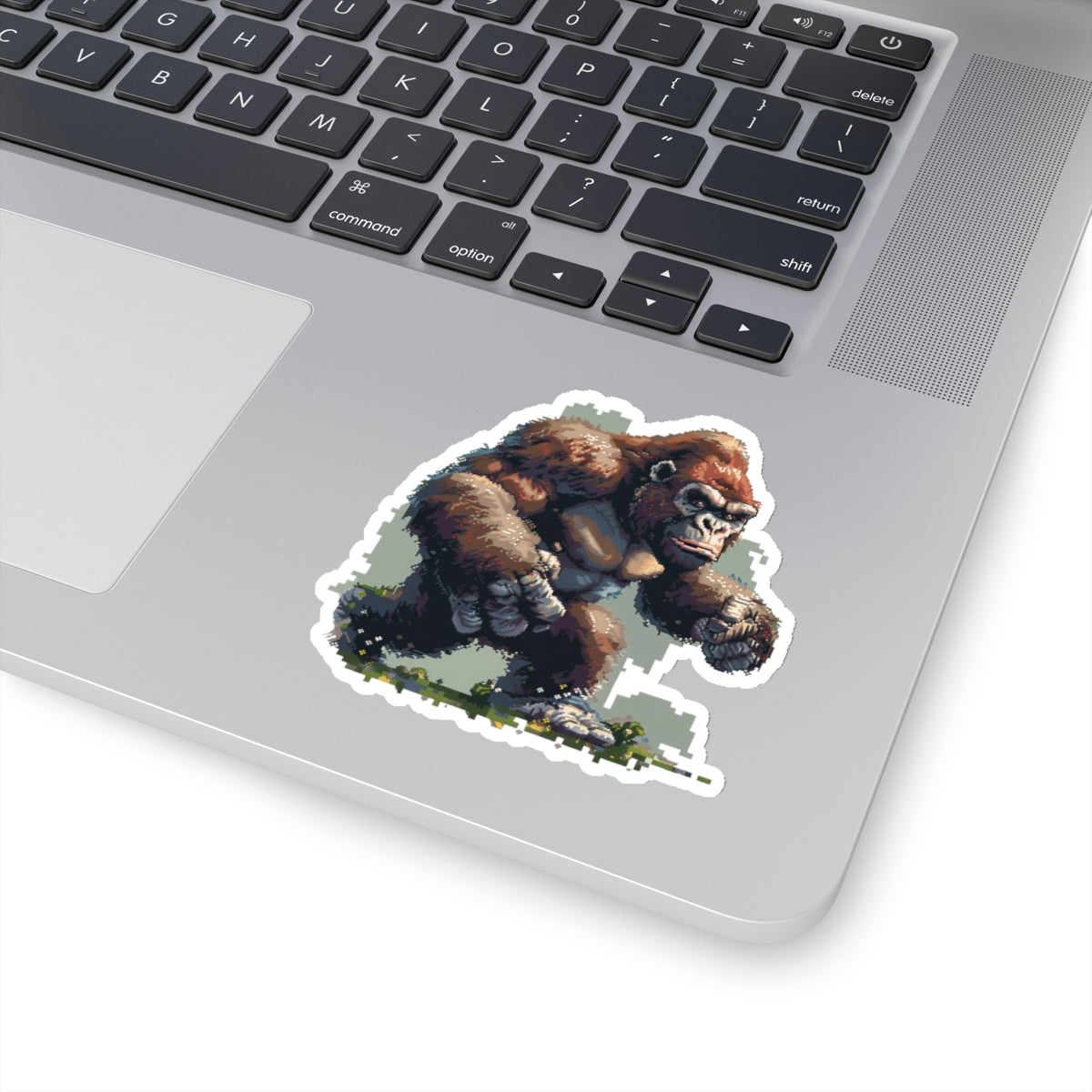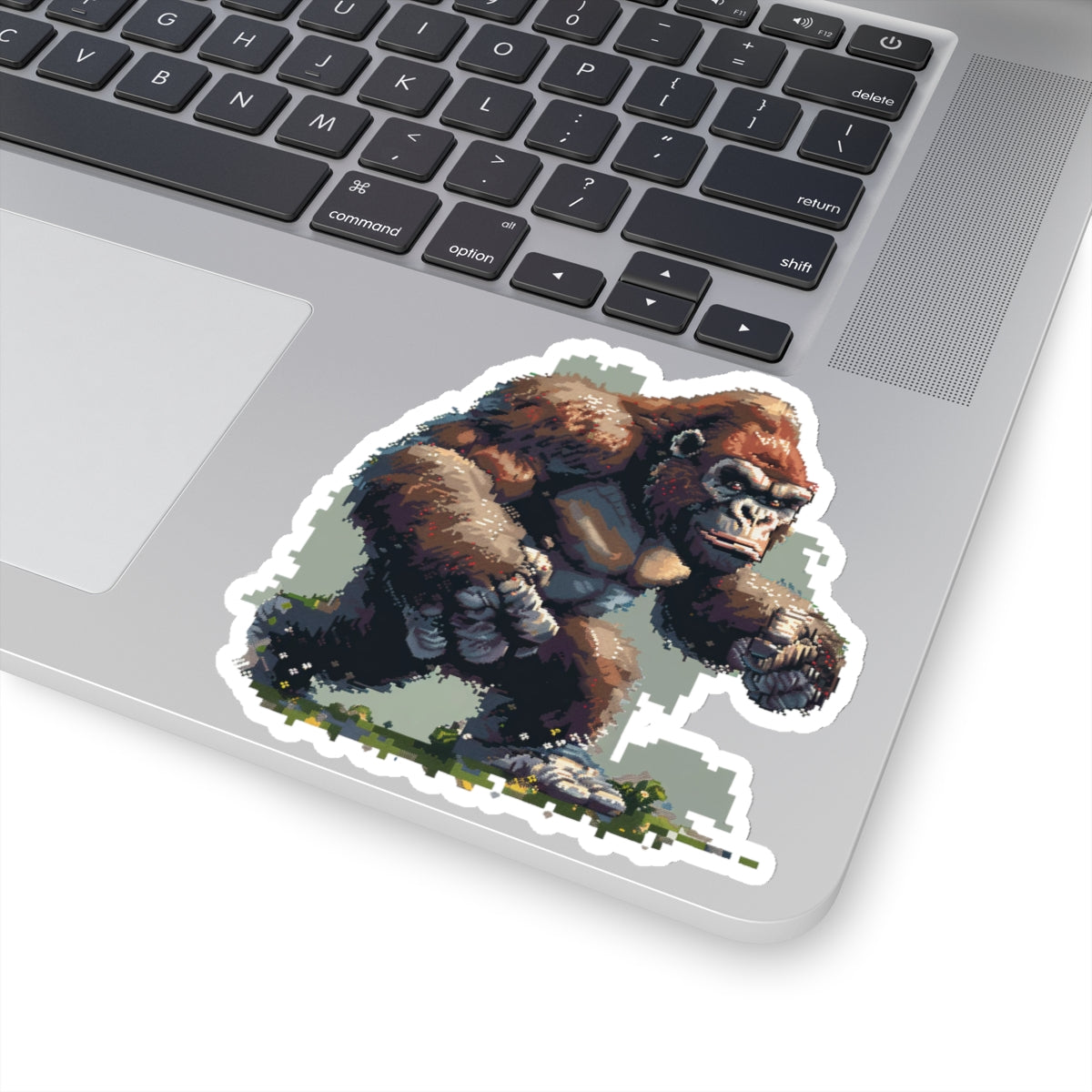 Experience the thrill of the jungle with our Pixelated Battle-Ready Ape Runner Vinyl Sticker! This dynamic sticker features a pixelated rendition of a hulking ape, depicted in full stride as it charges into battle with its eyes gleaming in readiness. Crafted with intricate detail, this design captures the raw power and ferocity of the jungle. Perfect for fans of classic cinema and lovers of pixel art, this sticker adds a touch of retro charm to laptops, notebooks, and more. Crafted from durable vinyl with strong 3M adhesive for long-lasting attachment, the kiss-cut design allows for easy customization of shapes. Available in multiple sizes to suit your preferences, with a thickness of 0.004" (1mm) and a glossy finish, this sticker brings the mighty presence of the jungle to any surface. Please note, these stickers are not waterproof but are perfect for indoor decor.