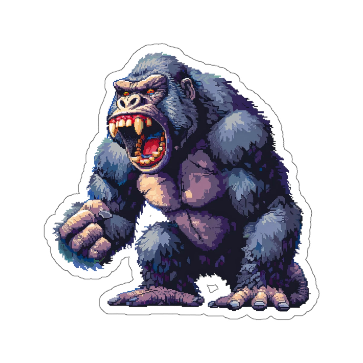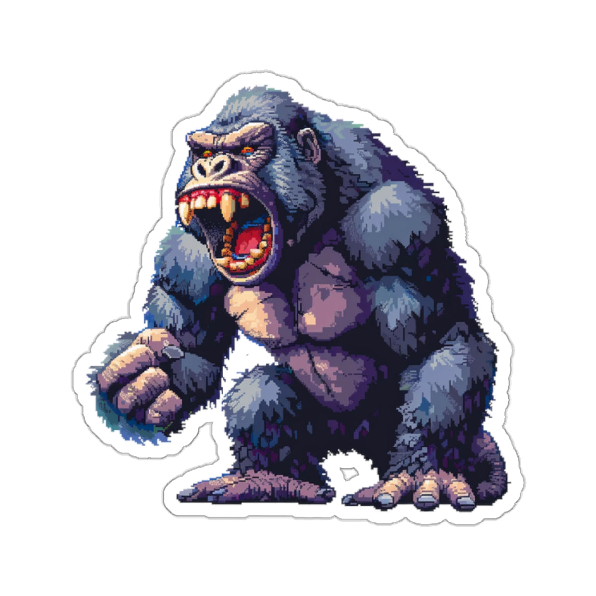 Experience the wrath of the jungle with our Pixelated Furious Ape Launch Vinyl Sticker! This intense sticker features a pixelated rendition of a raging ape, seething with anger as it prepares to launch into action. Crafted with intricate detail, this design captures the raw power and ferocity of the jungle's guardian. Perfect for fans of classic cinema and lovers of pixel art, this sticker adds a touch of retro charm to laptops, notebooks, and more. Crafted from durable vinyl with strong 3M adhesive for long-lasting attachment, the kiss-cut design allows for easy customization of shapes. Available in multiple sizes to suit your preferences, with a thickness of 0.004" (1mm) and a glossy finish, this sticker brings the indomitable presence of the jungle to any surface. Please note, these stickers are not waterproof but are perfect for indoor decor.