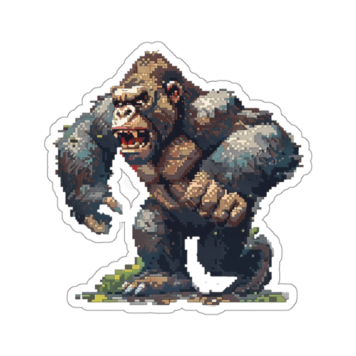 Experience the ultimate showdown with our Pixelated Monster Clash Vinyl Sticker! This dynamic sticker depicts a pixelated rendition of hulking beasts charging towards each other in an epic clash. One side showcases a pixelated King Kong running towards another monster, arms ready to charge, capturing the raw power and intensity of the confrontation. Crafted with intricate detail, this design adds a touch of retro charm to laptops, notebooks, and more. Crafted from durable vinyl with strong 3M adhesive for long-lasting attachment, the kiss-cut design allows for easy customization of shapes. Available in multiple sizes to suit your preferences, with a thickness of 0.004" (1mm) and a glossy finish, this sticker brings the excitement of a monster clash to any surface. Please note, these stickers are not waterproof but are perfect for indoor decor.