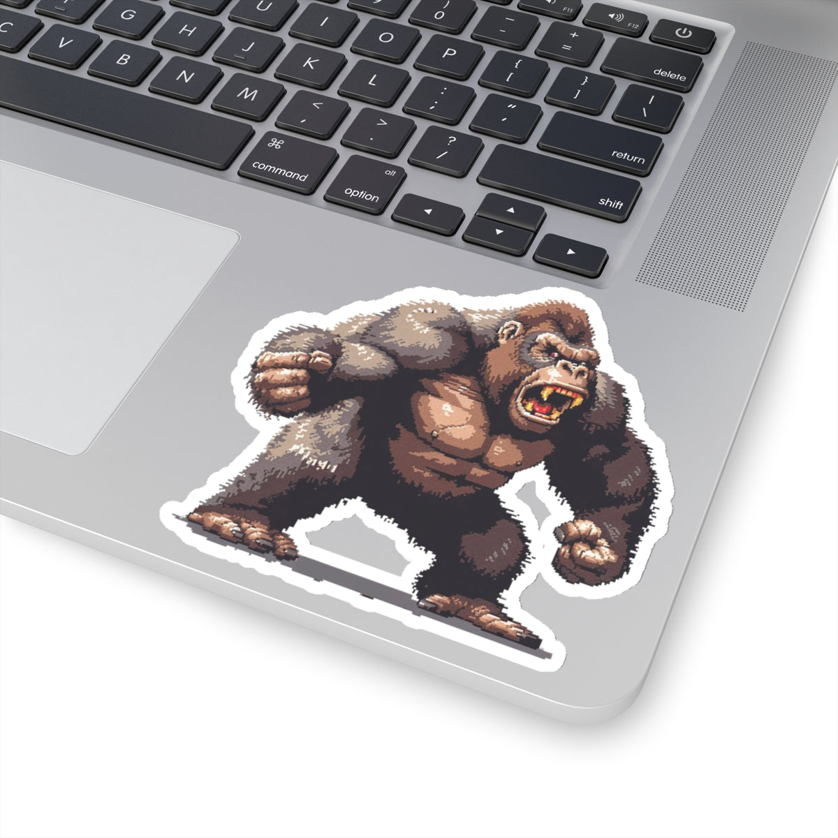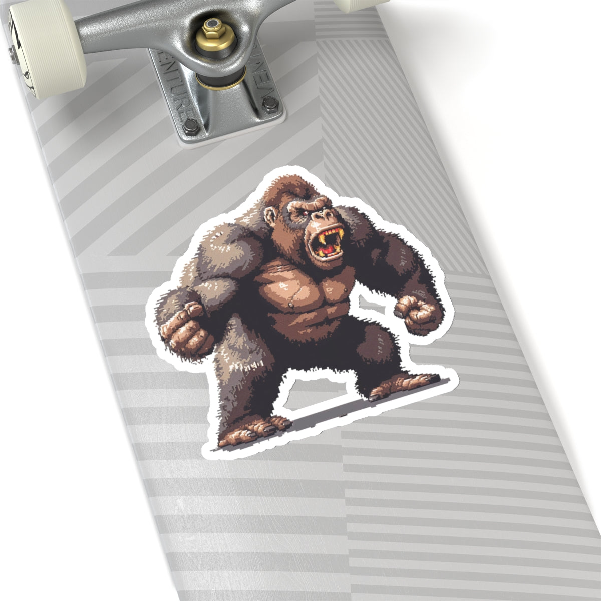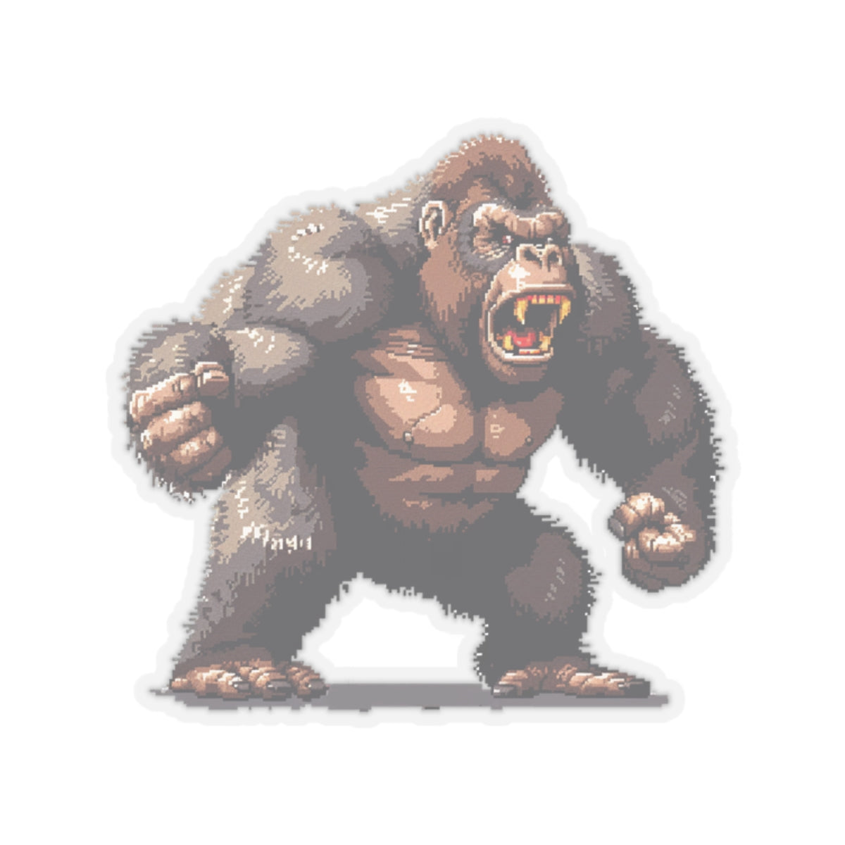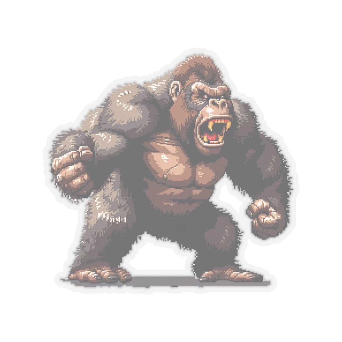Embrace the strength of the jungle with our Pixelated Titan's Stand Vinyl Sticker! This captivating sticker features a pixelated rendition of a mighty ape, standing its ground with a raised fist, ready for action. Crafted with intricate detail, this design captures the raw power and determination of the jungle's guardian. Perfect for fans of classic cinema and lovers of pixel art, this sticker adds a touch of retro charm to laptops, notebooks, and more. Crafted from durable vinyl with strong 3M adhesive for long-lasting attachment, the kiss-cut design allows for easy customization of shapes. Available in multiple sizes to suit your preferences, with a thickness of 0.004" (1mm) and a glossy finish, this sticker brings the indomitable presence of the jungle to any surface. Please note, these stickers are not waterproof but are perfect for indoor decor.