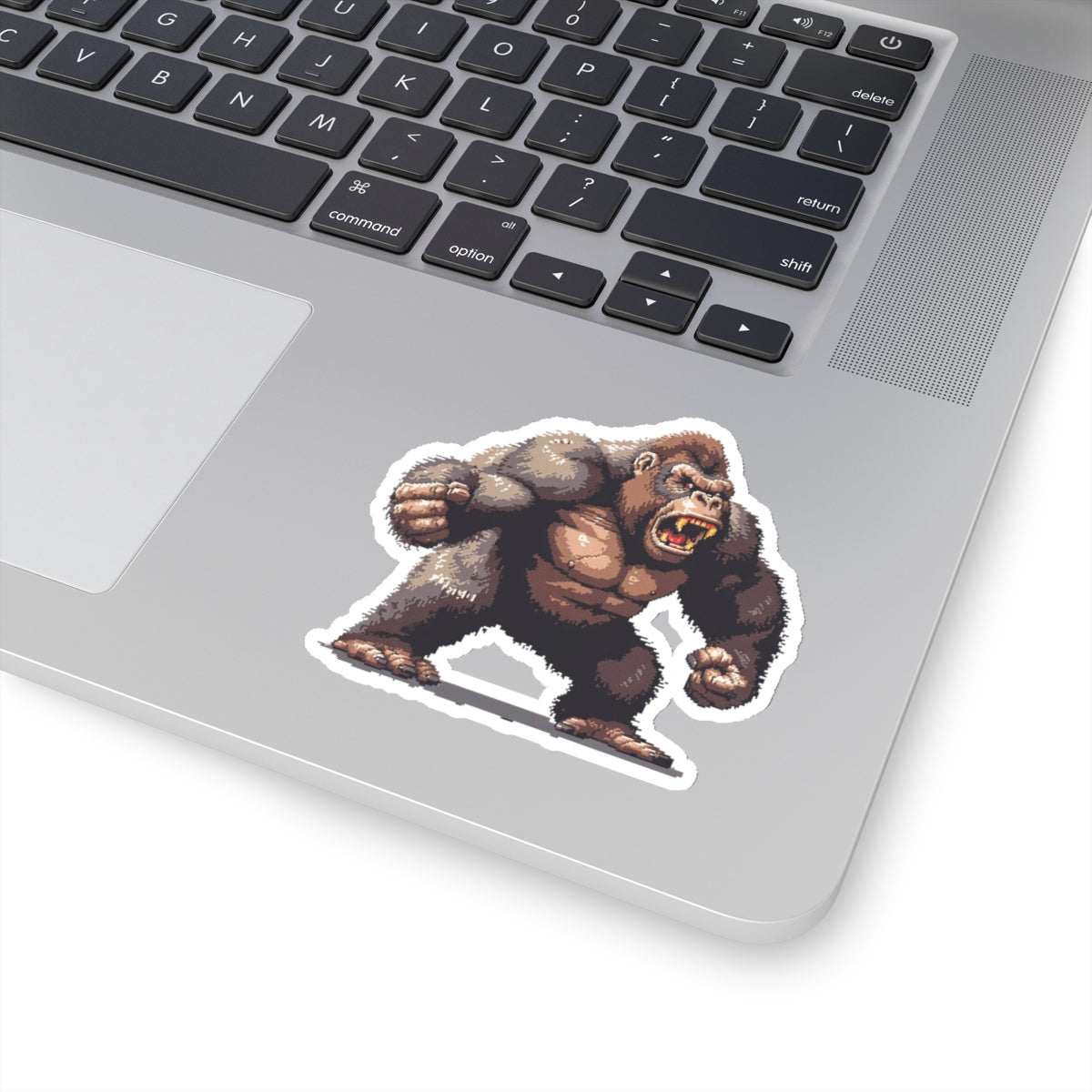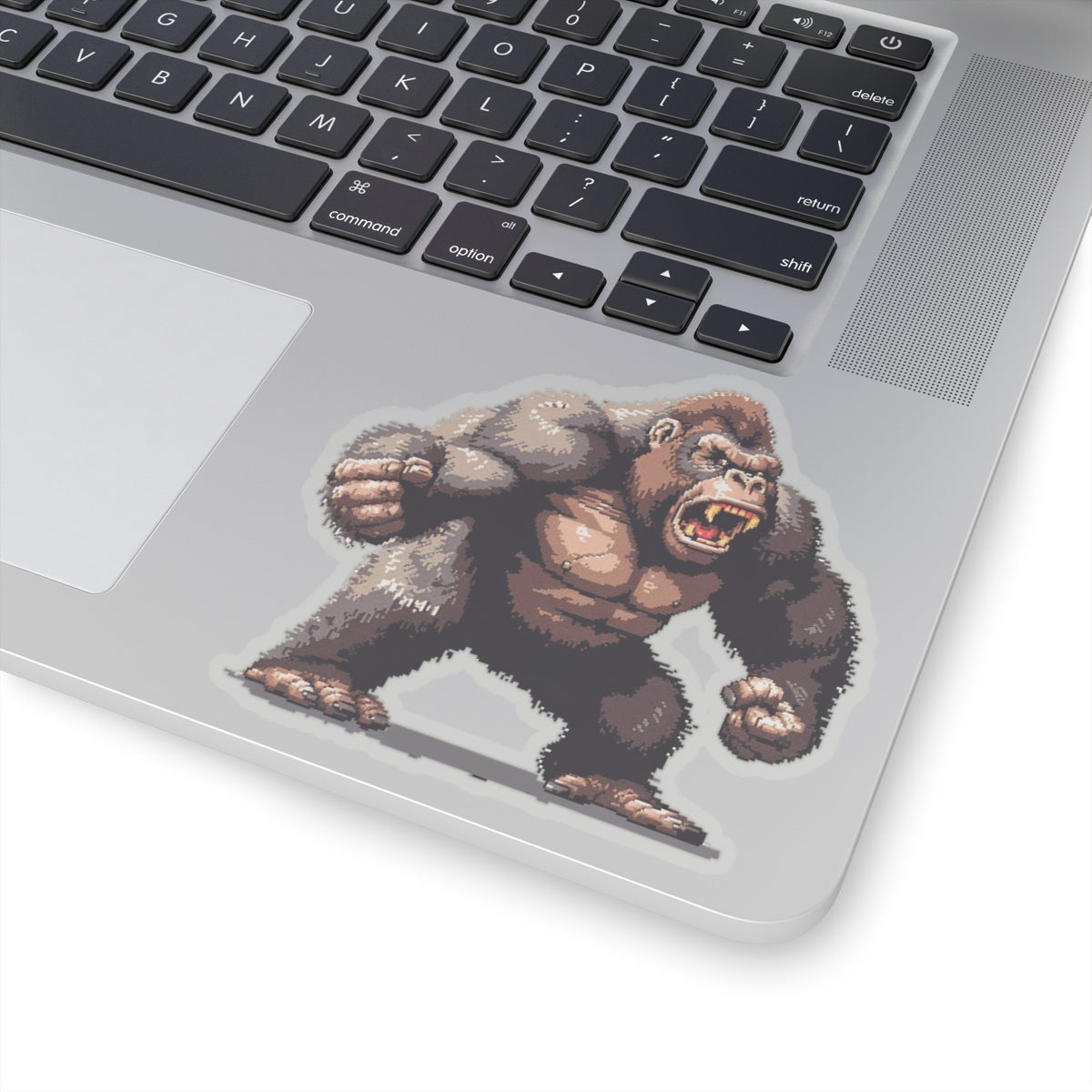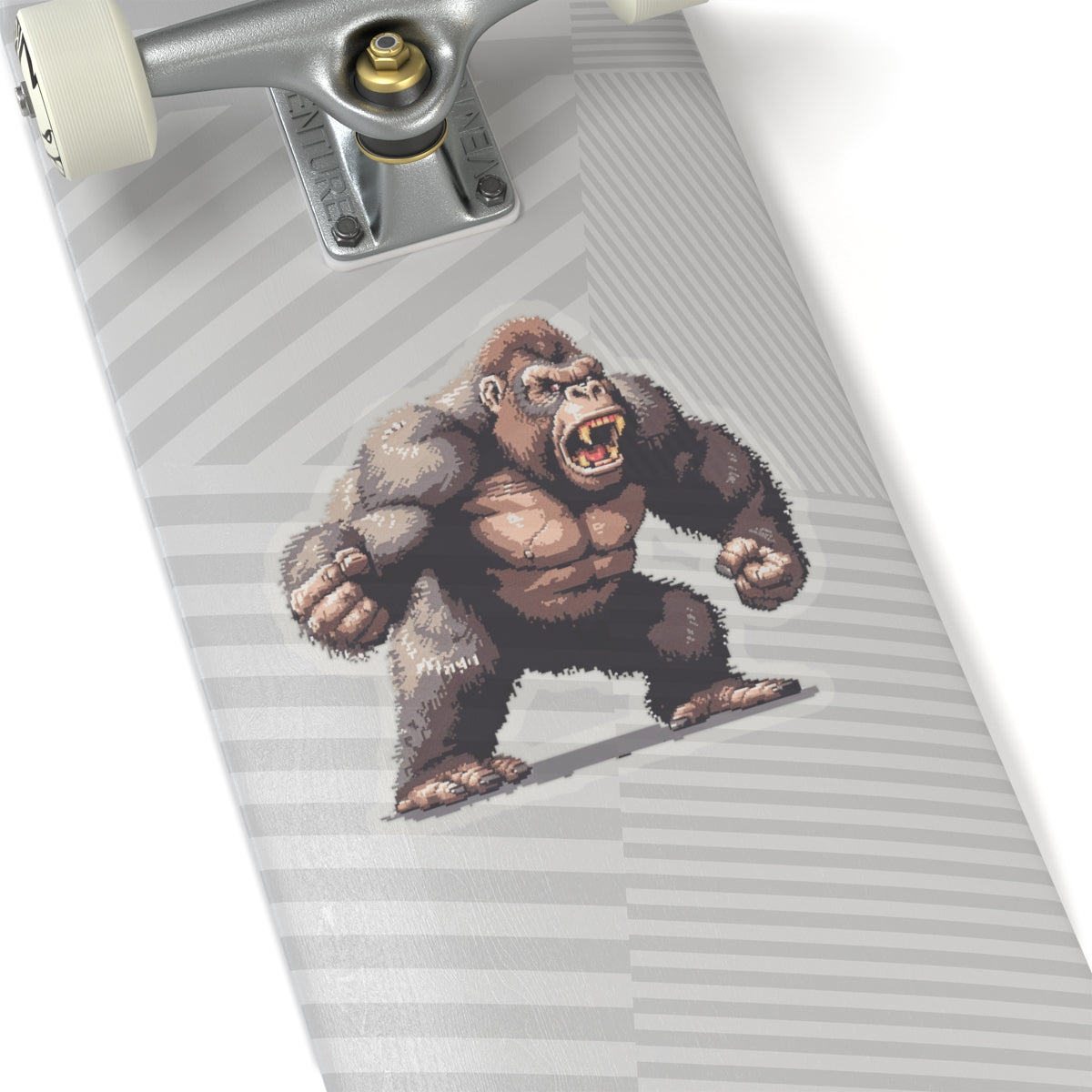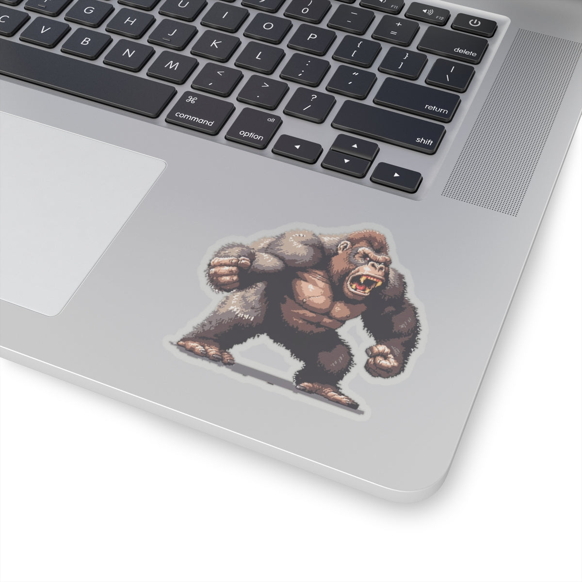 Embrace the strength of the jungle with our Pixelated Titan's Stand Vinyl Sticker! This captivating sticker features a pixelated rendition of a mighty ape, standing its ground with a raised fist, ready for action. Crafted with intricate detail, this design captures the raw power and determination of the jungle's guardian. Perfect for fans of classic cinema and lovers of pixel art, this sticker adds a touch of retro charm to laptops, notebooks, and more. Crafted from durable vinyl with strong 3M adhesive for long-lasting attachment, the kiss-cut design allows for easy customization of shapes. Available in multiple sizes to suit your preferences, with a thickness of 0.004" (1mm) and a glossy finish, this sticker brings the indomitable presence of the jungle to any surface. Please note, these stickers are not waterproof but are perfect for indoor decor.